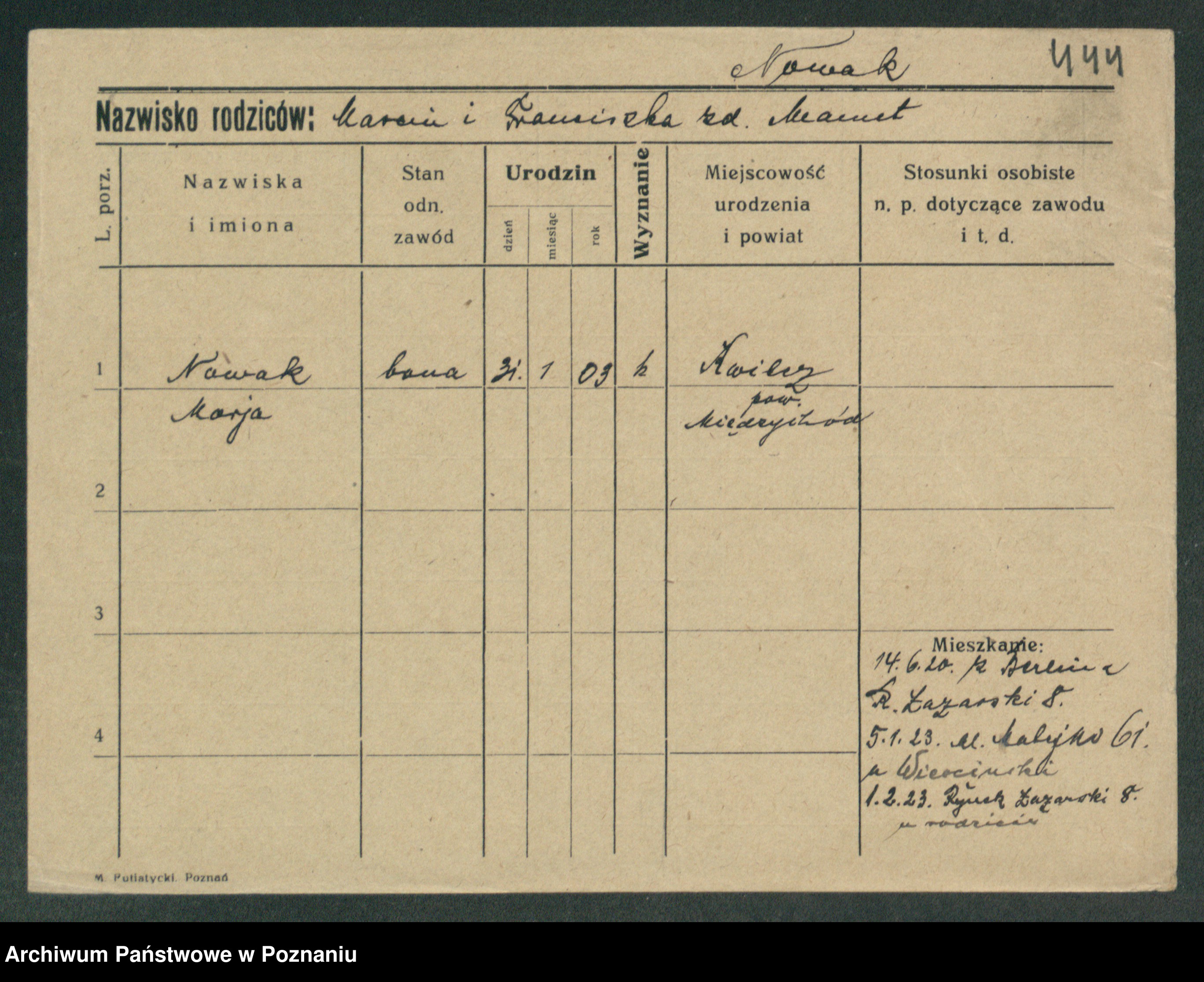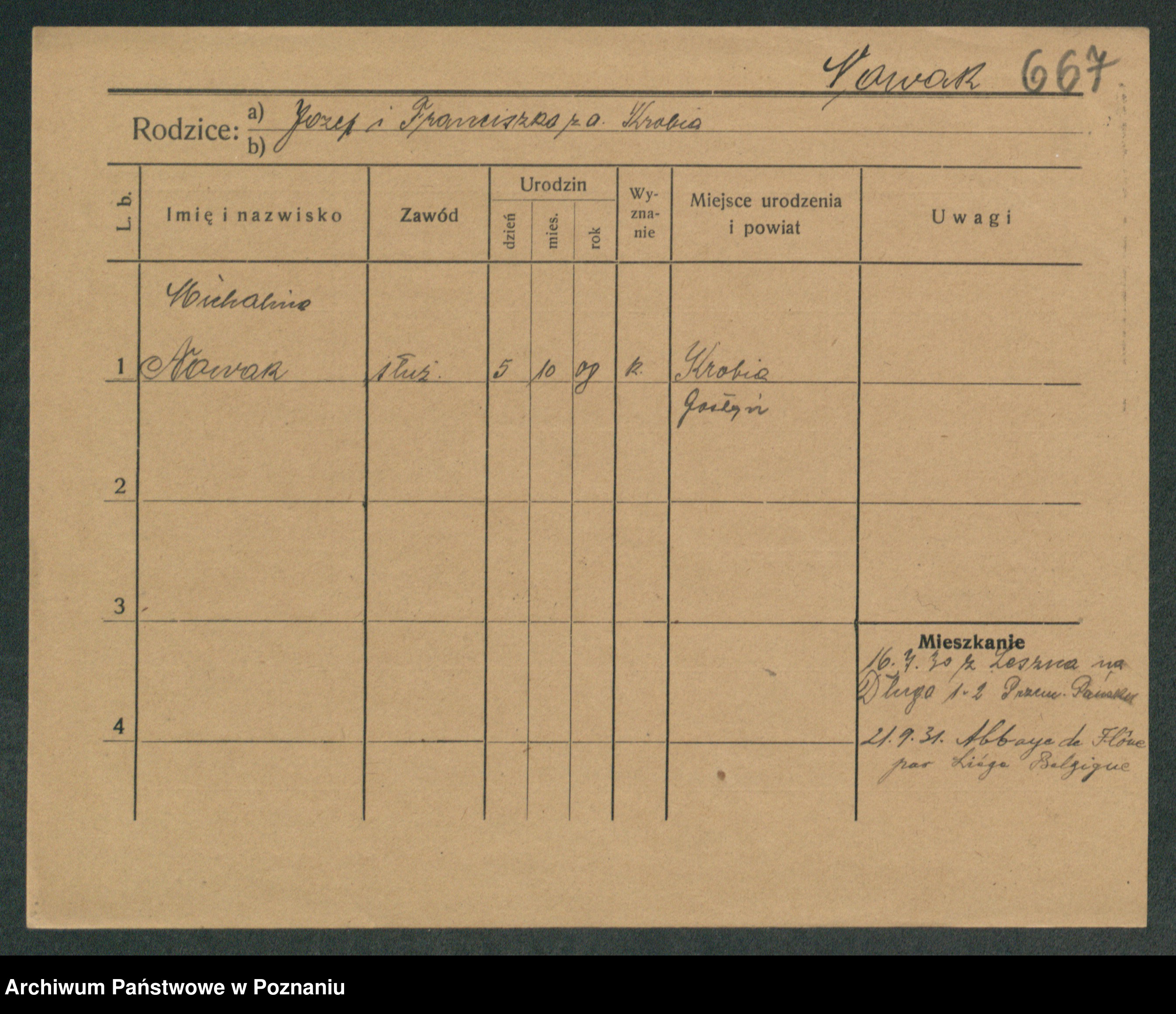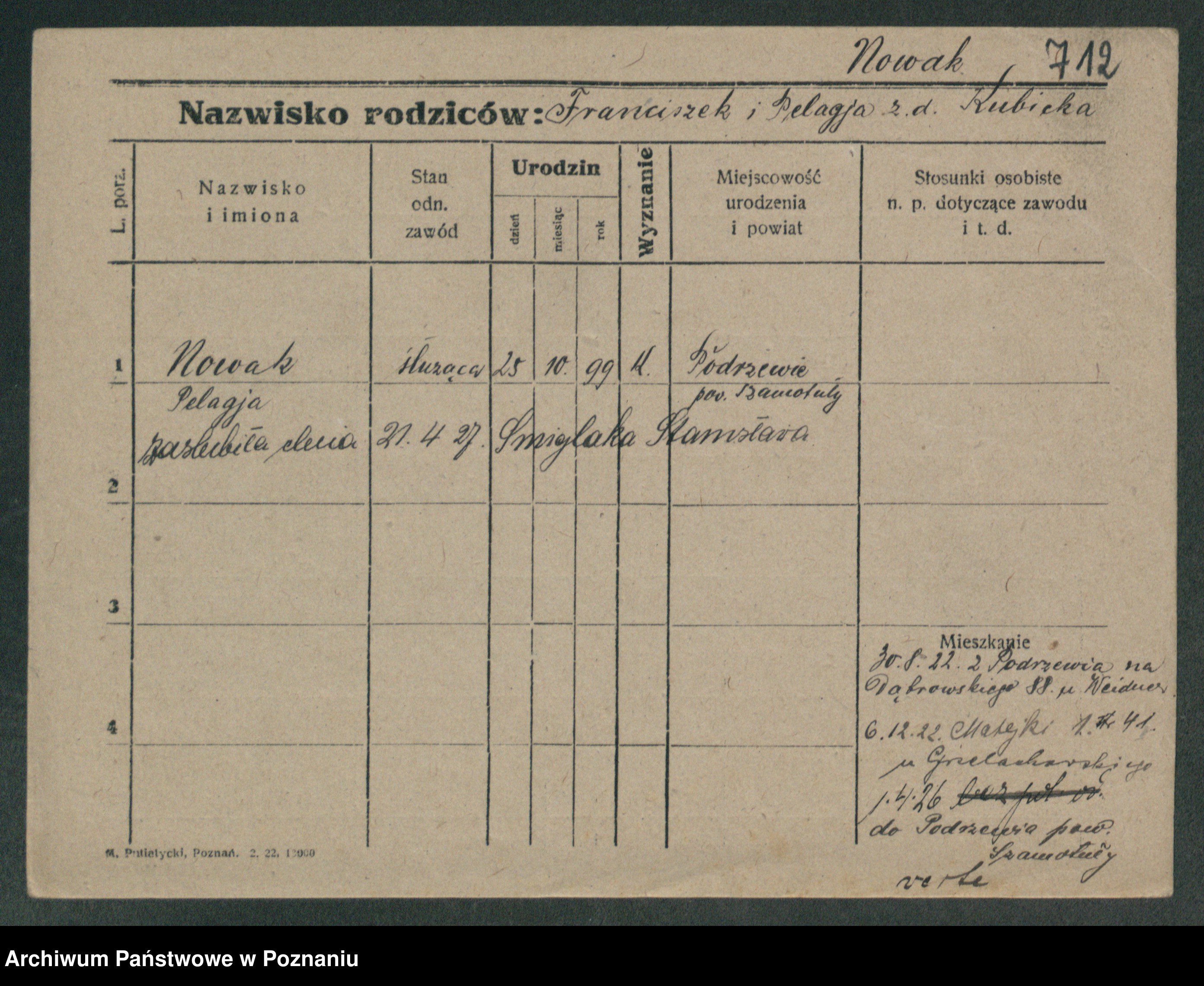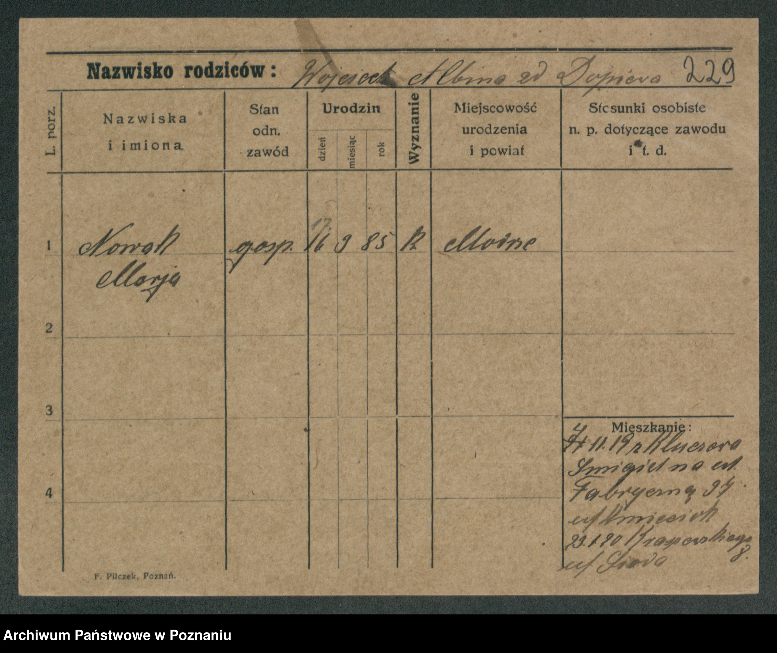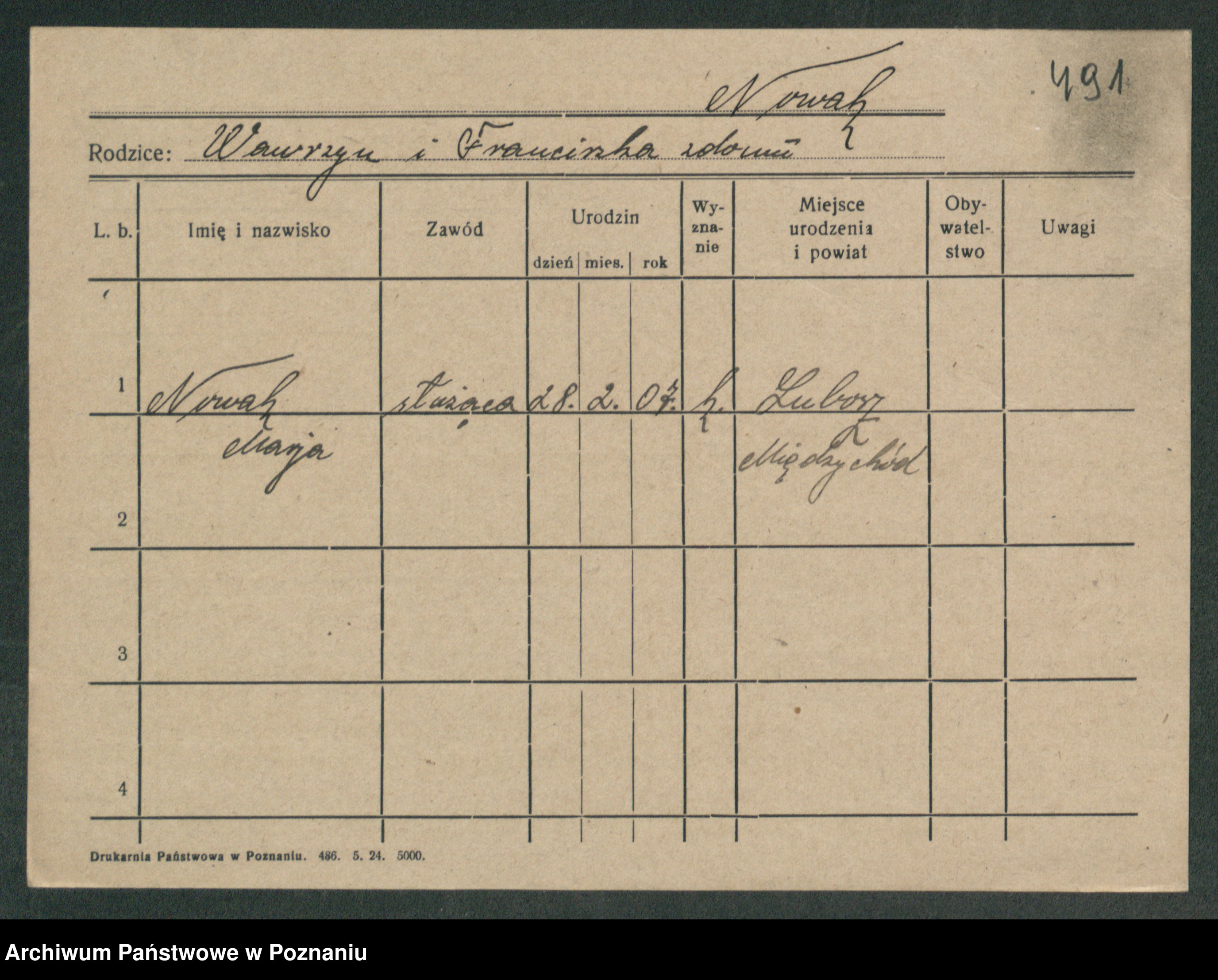 Podgląd karty osobowej dostępny jest po kliknięciu na nazwisko lub ikonkę karty. Można dokonywać powiększenia (ikony na górze) lub przechodzić między kolejnymi skanami (strzałki po bokach).
