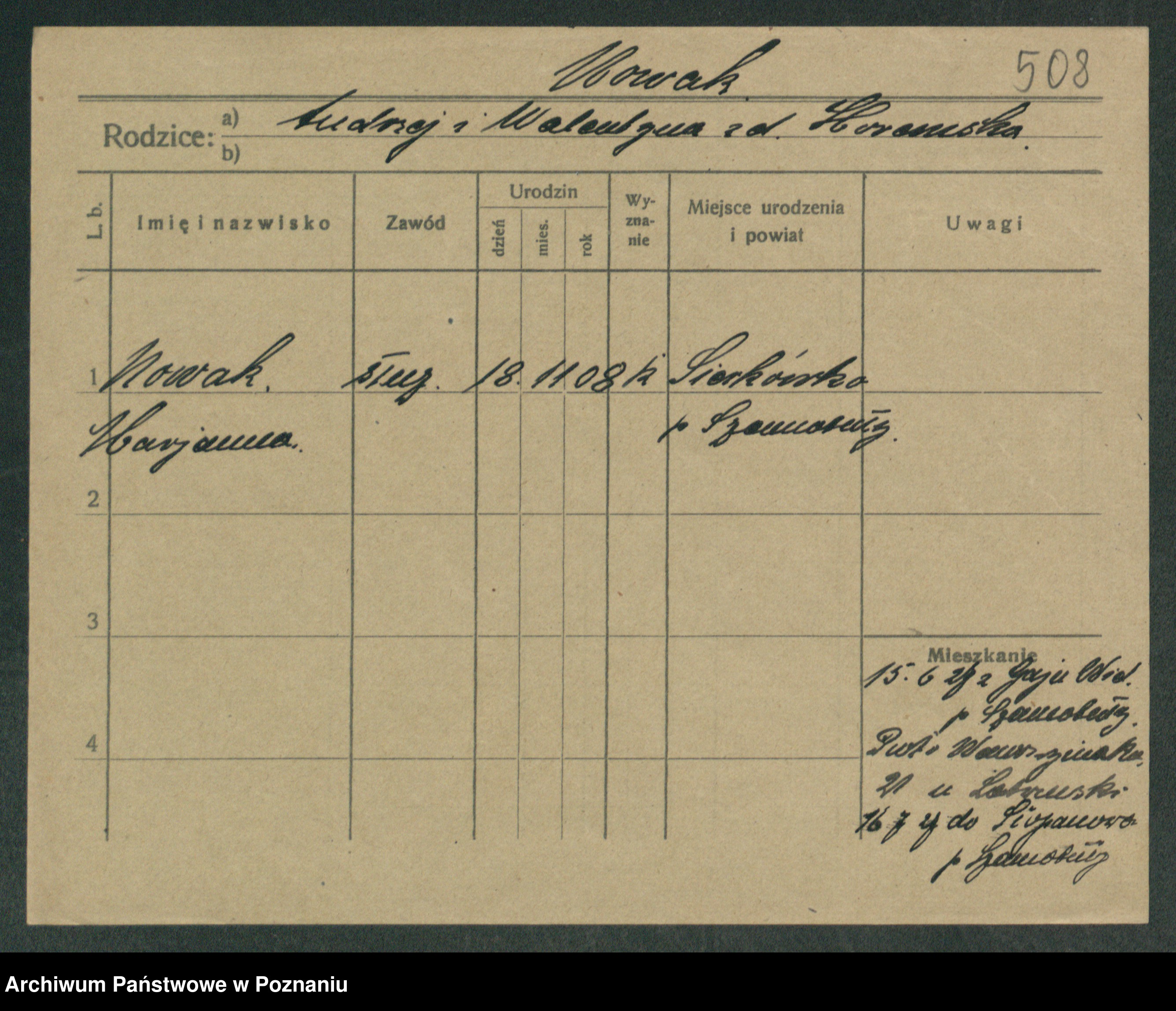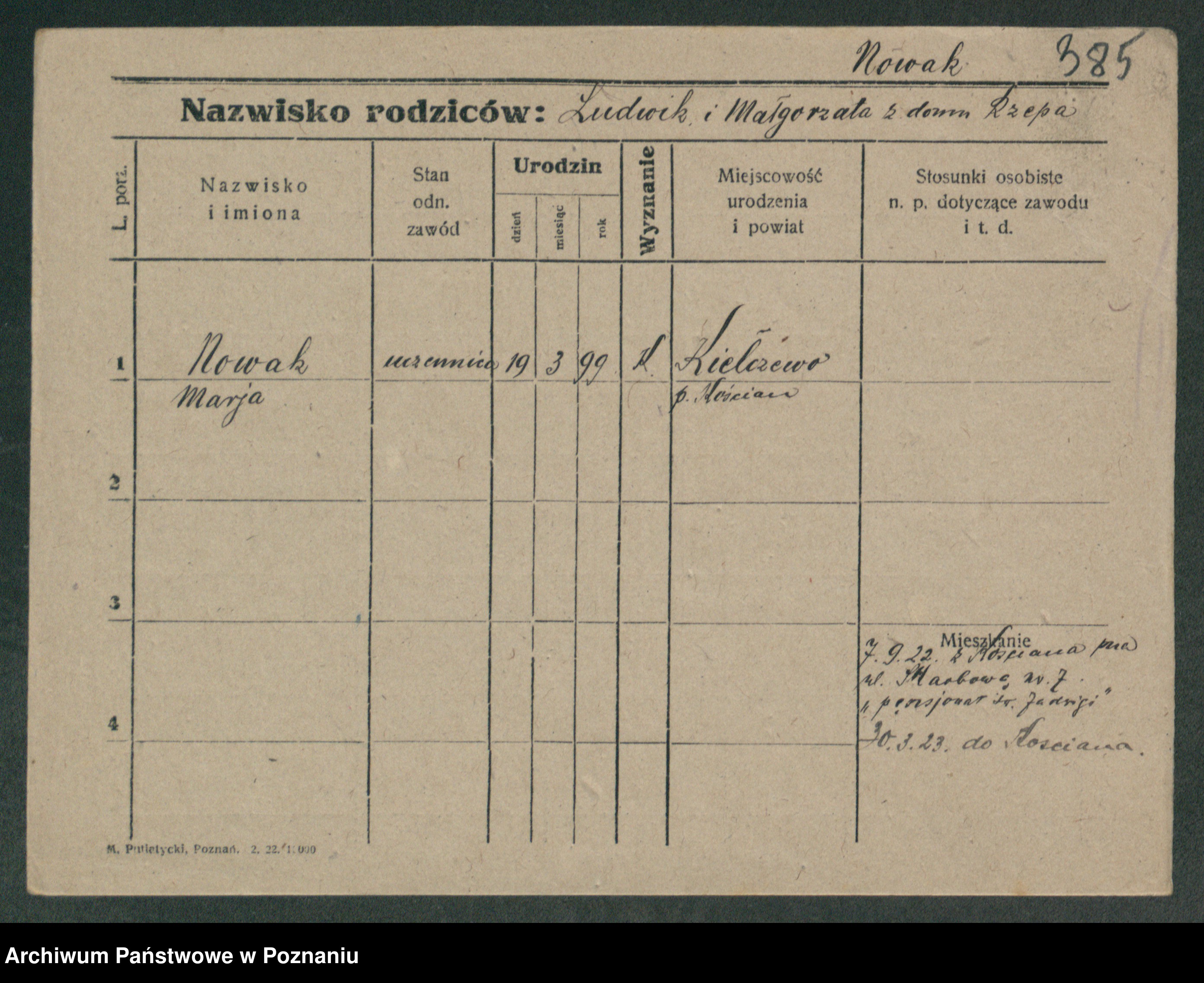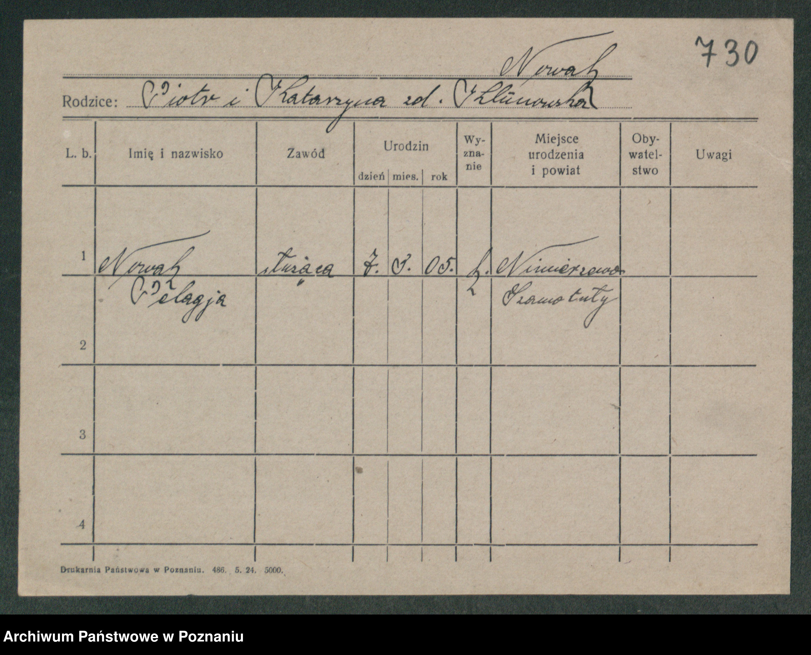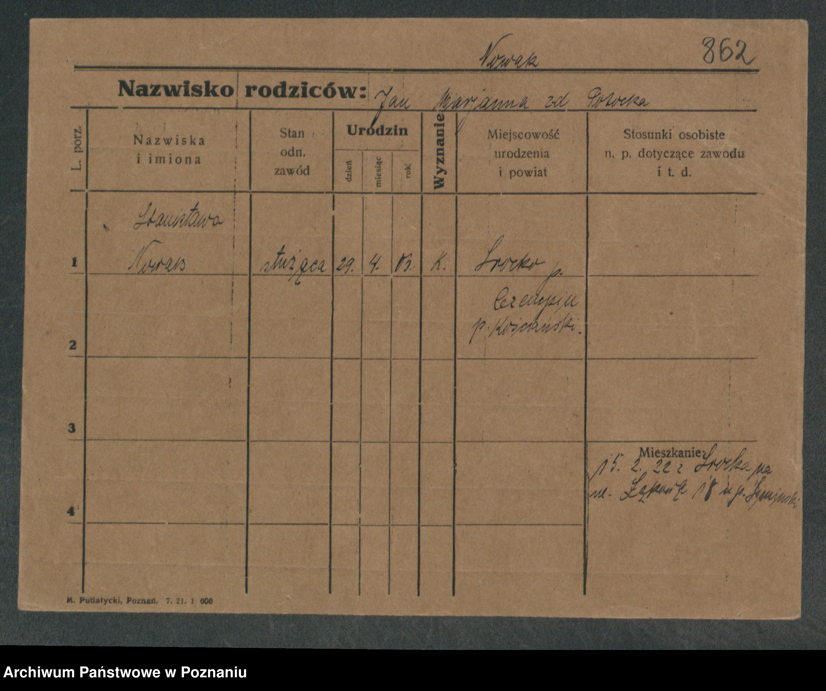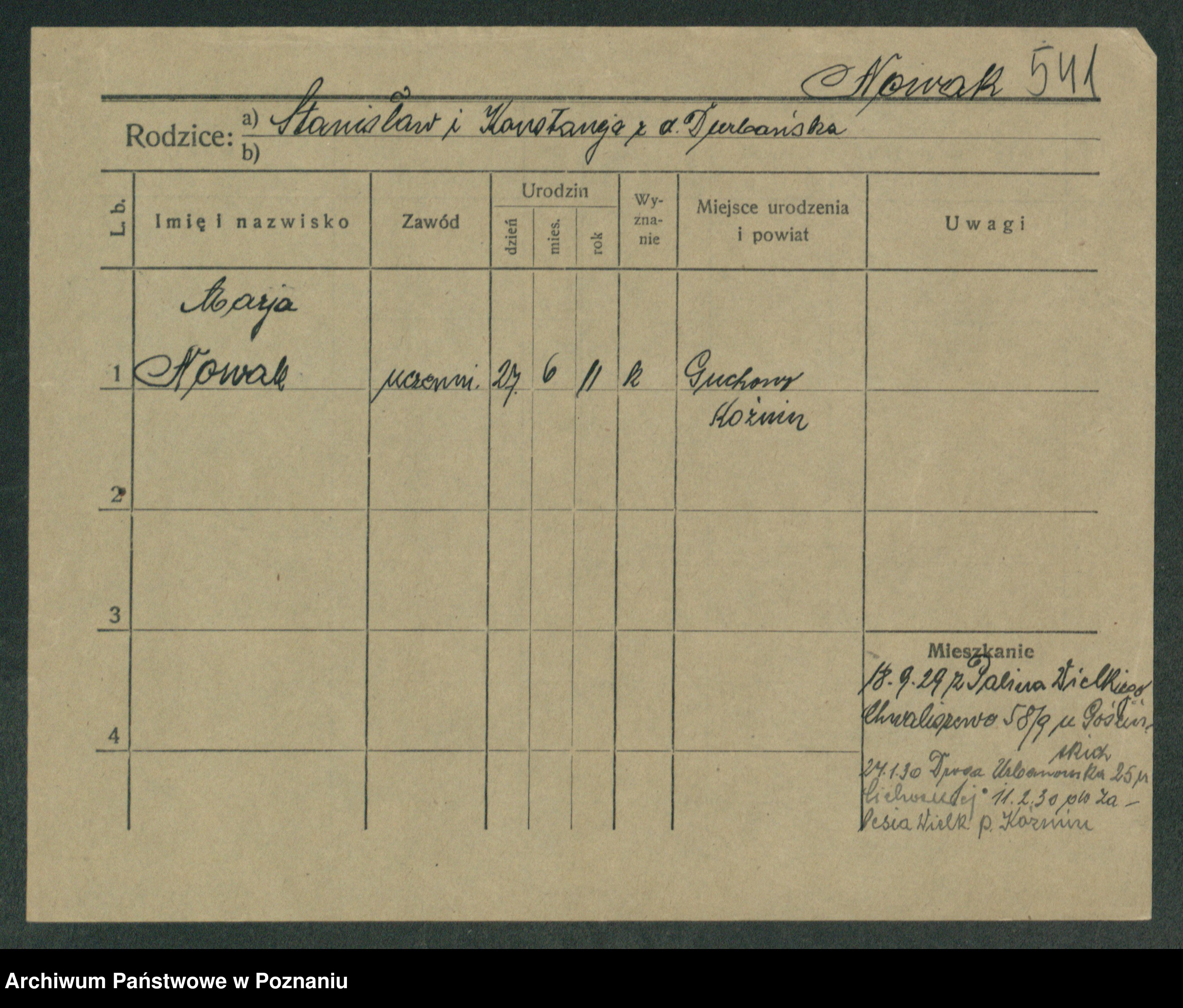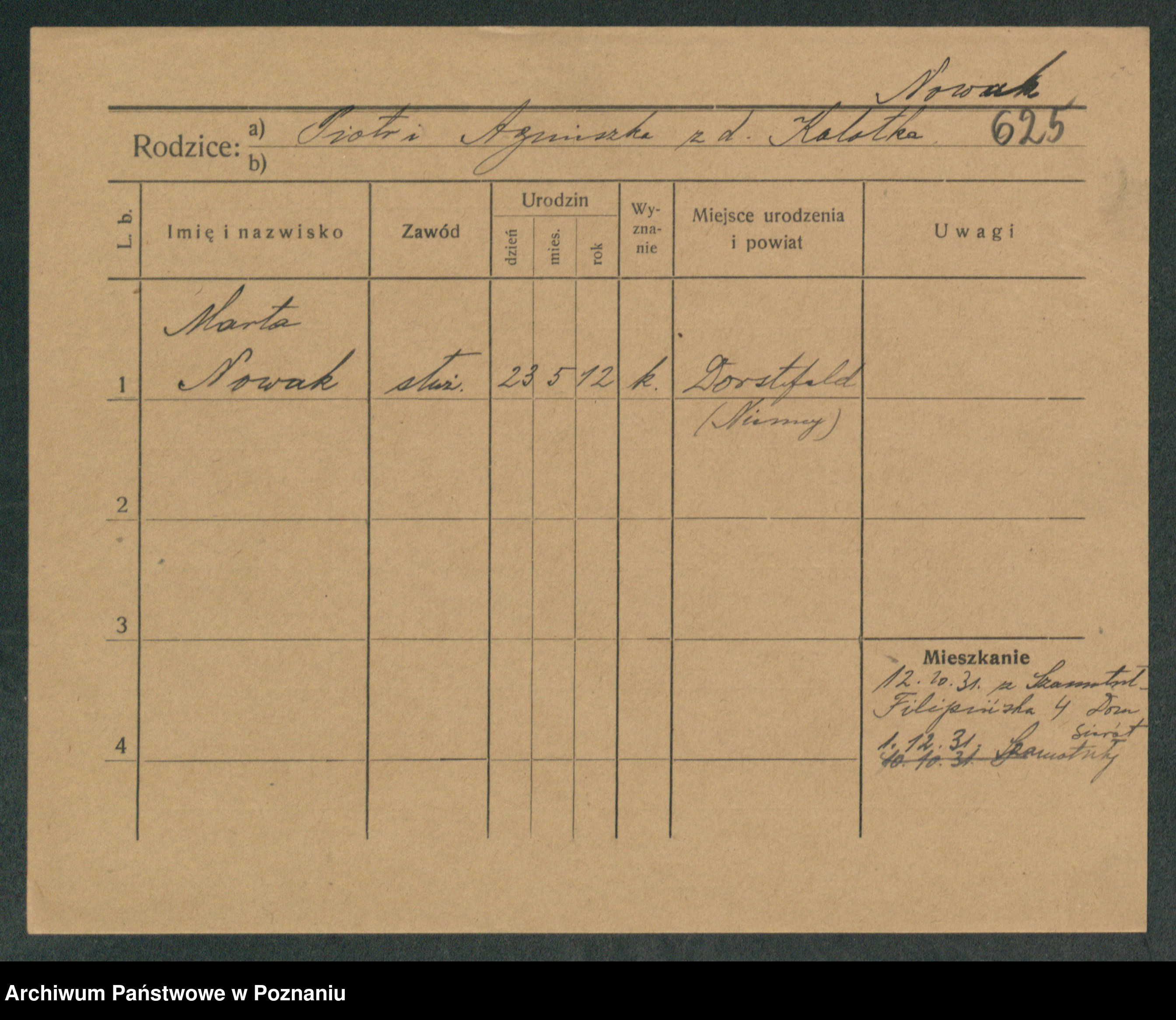 Podgląd karty osobowej dostępny jest po kliknięciu na nazwisko lub ikonkę karty. Można dokonywać powiększenia (ikony na górze) lub przechodzić między kolejnymi skanami (strzałki po bokach).