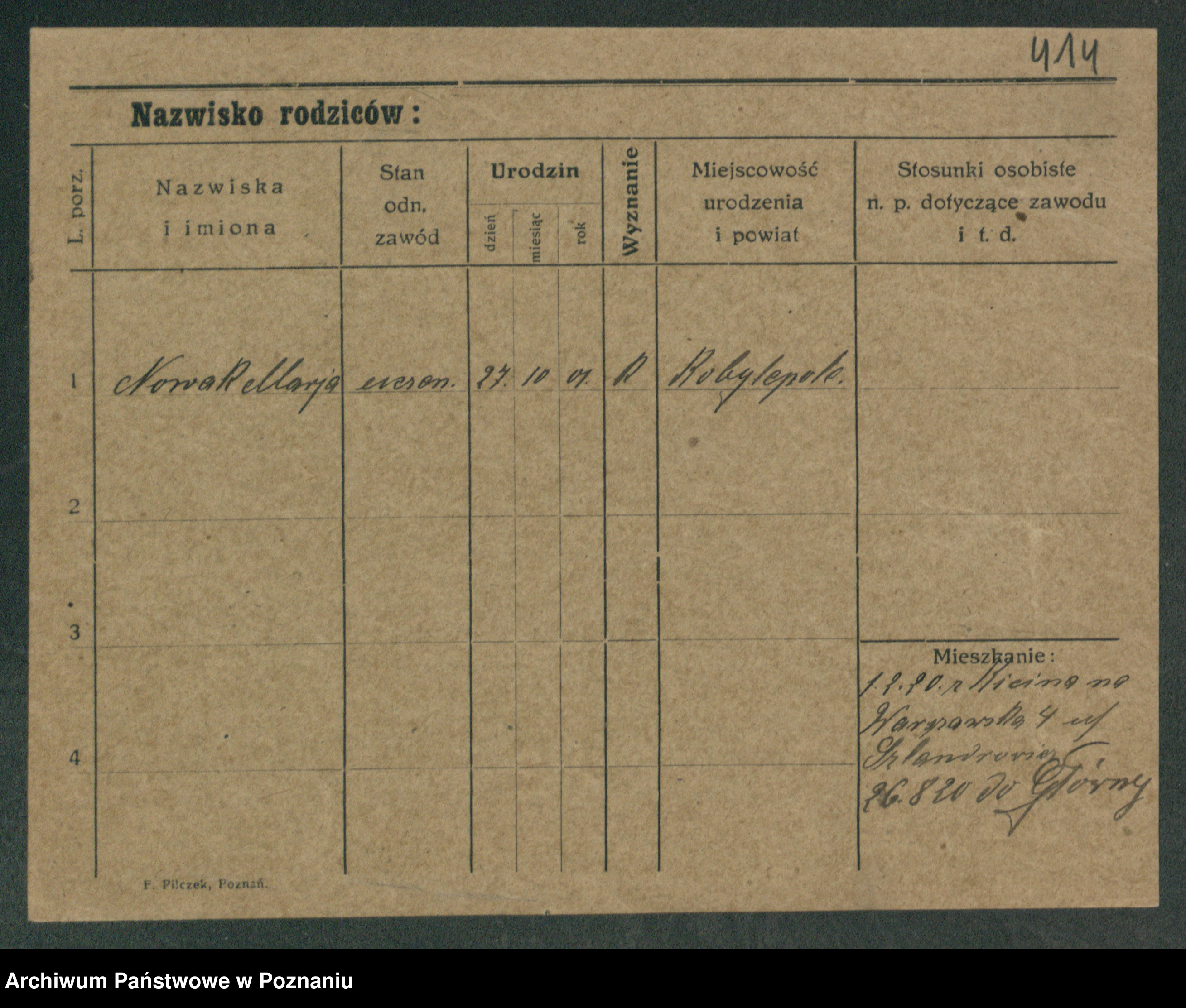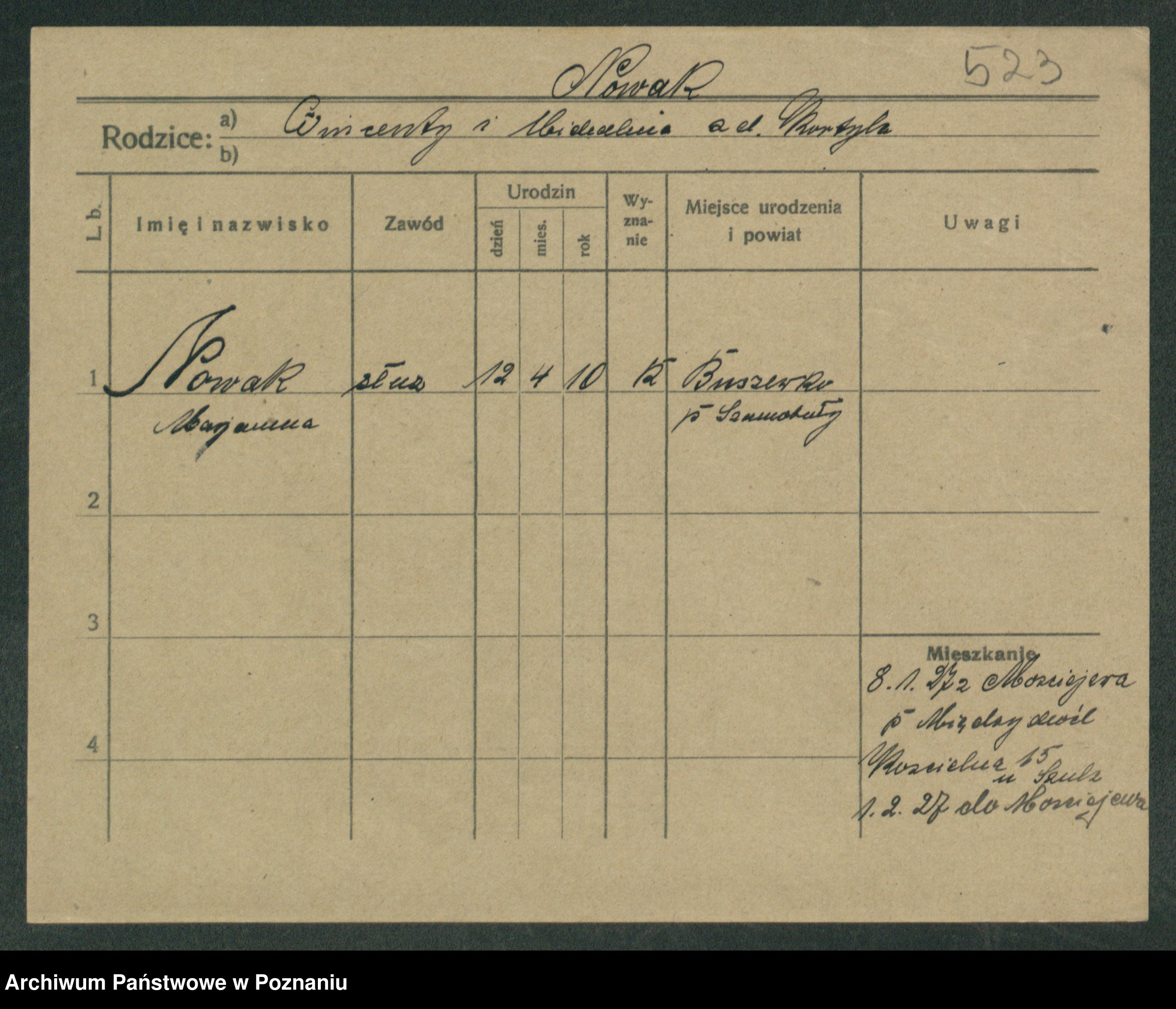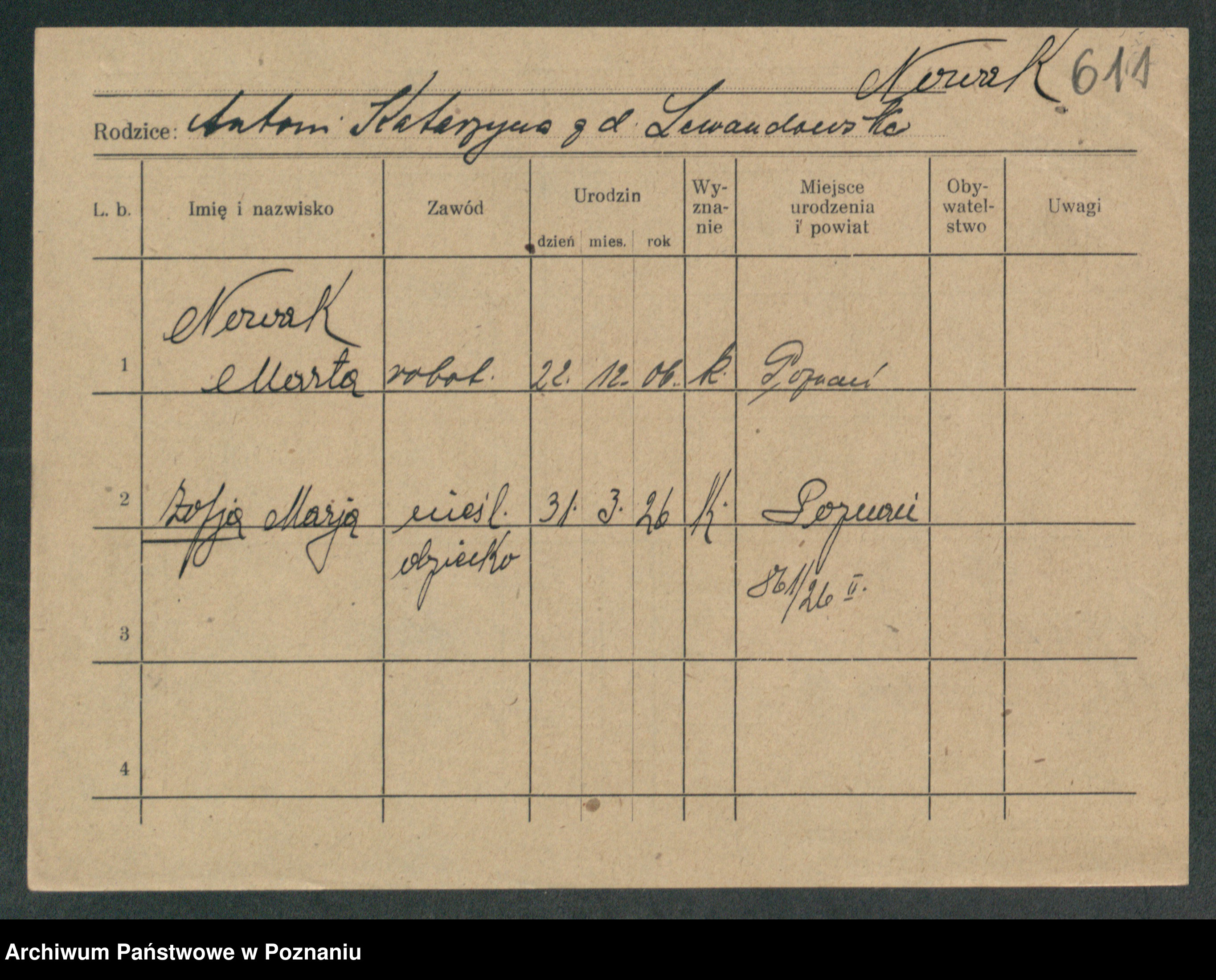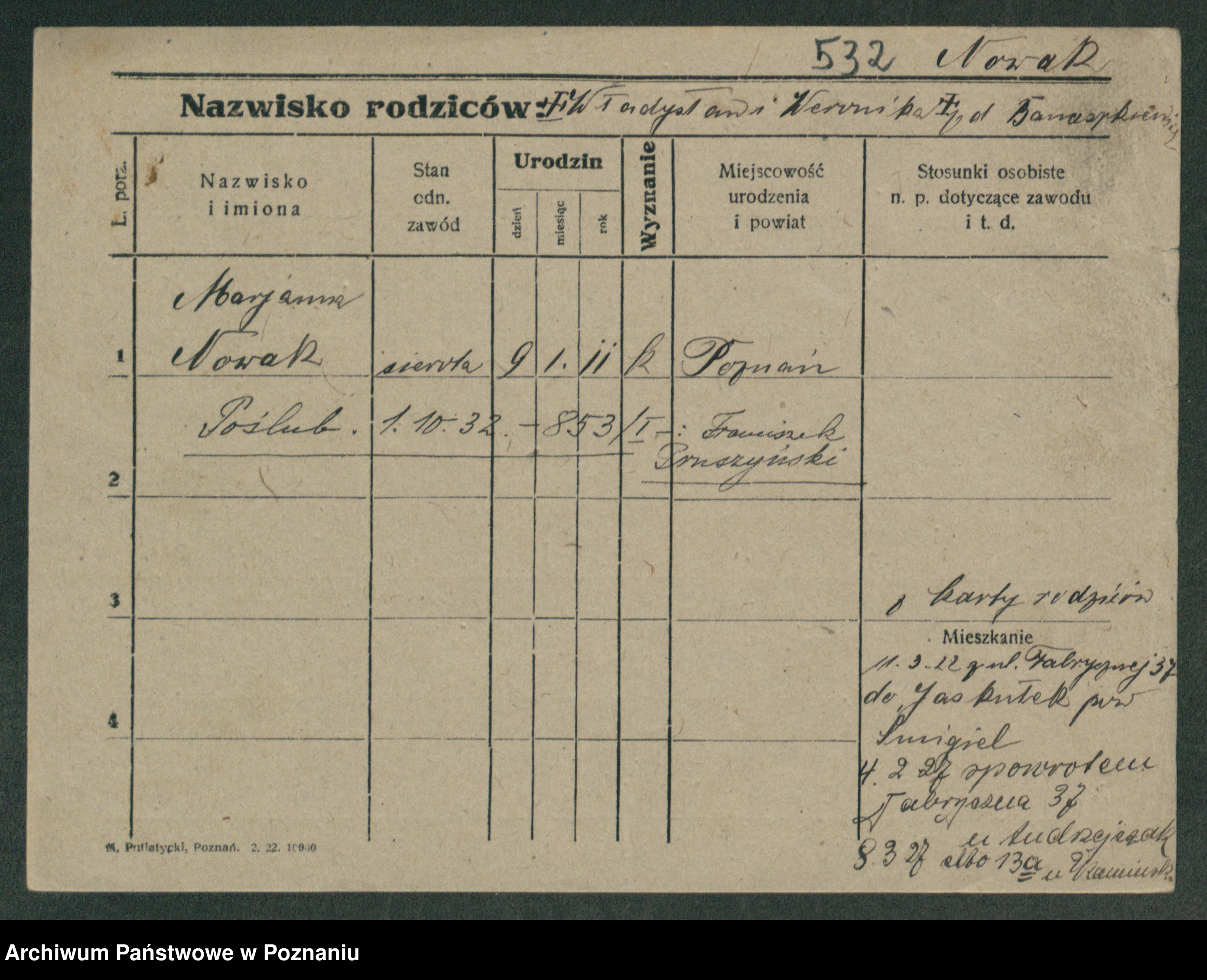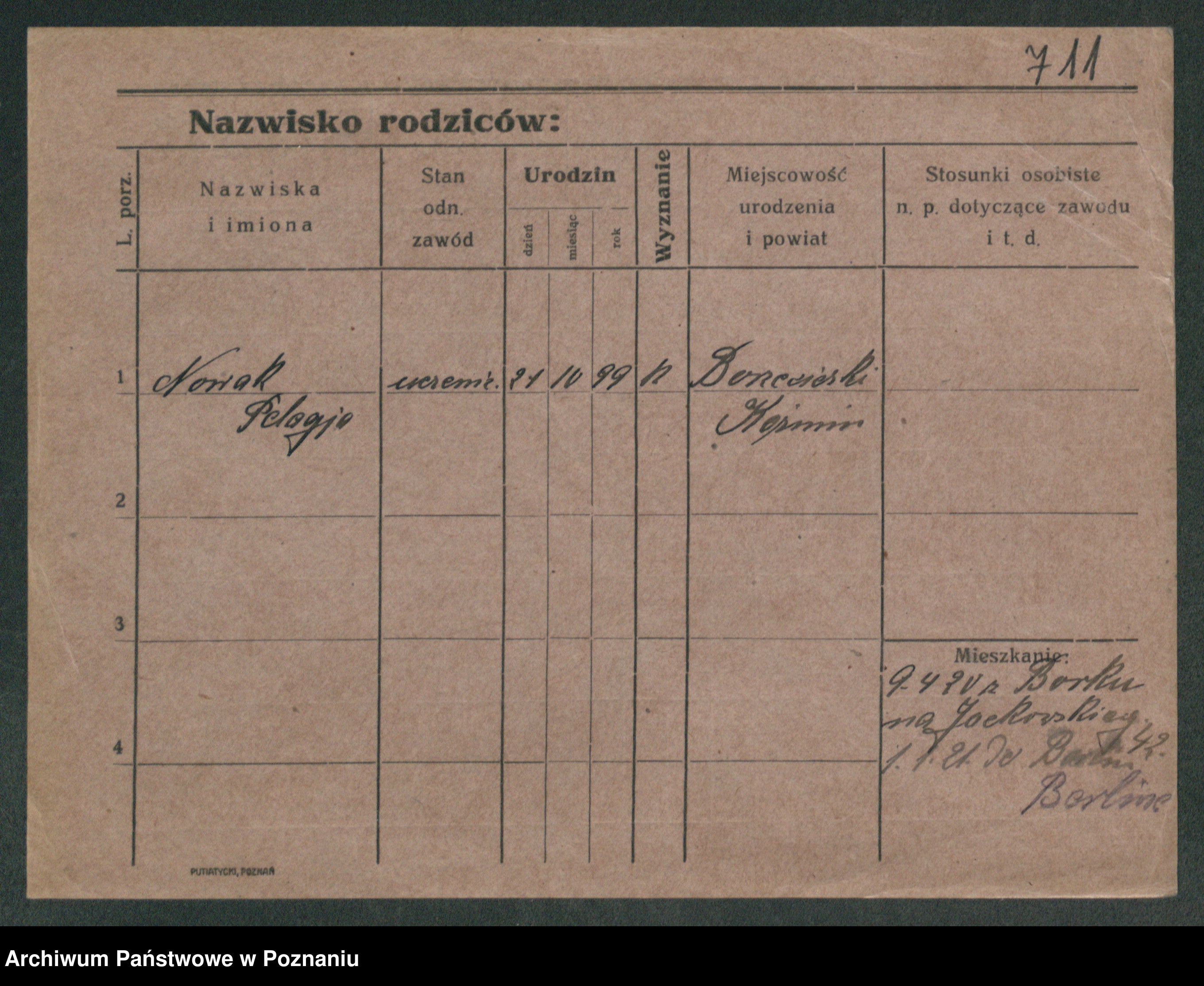 Podgląd karty osobowej dostępny jest po kliknięciu na nazwisko lub ikonkę karty. Można dokonywać powiększenia (ikony na górze) lub przechodzić między kolejnymi skanami (strzałki po bokach).