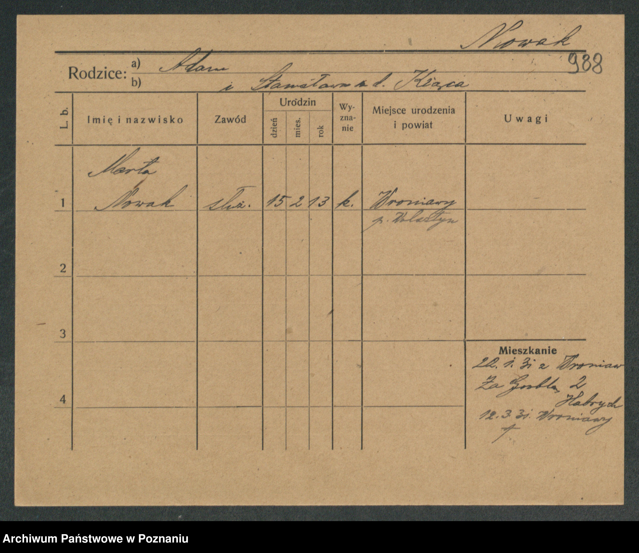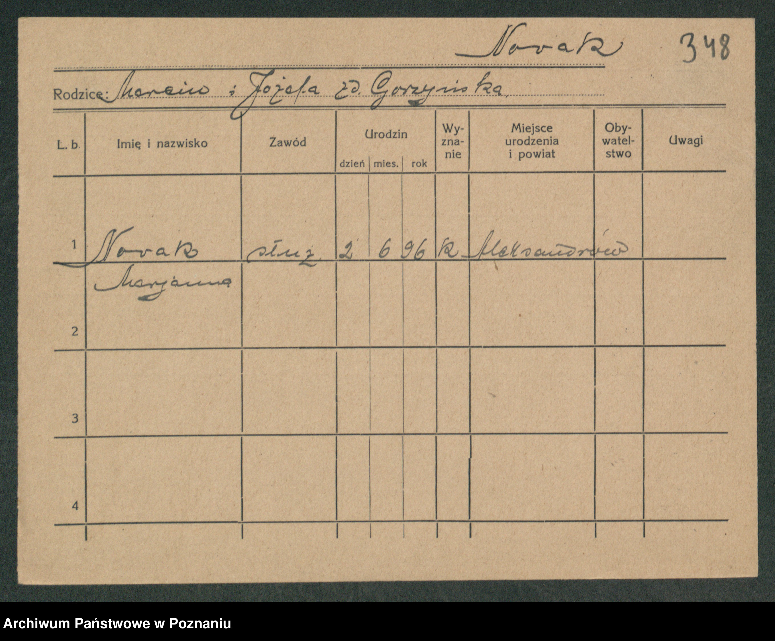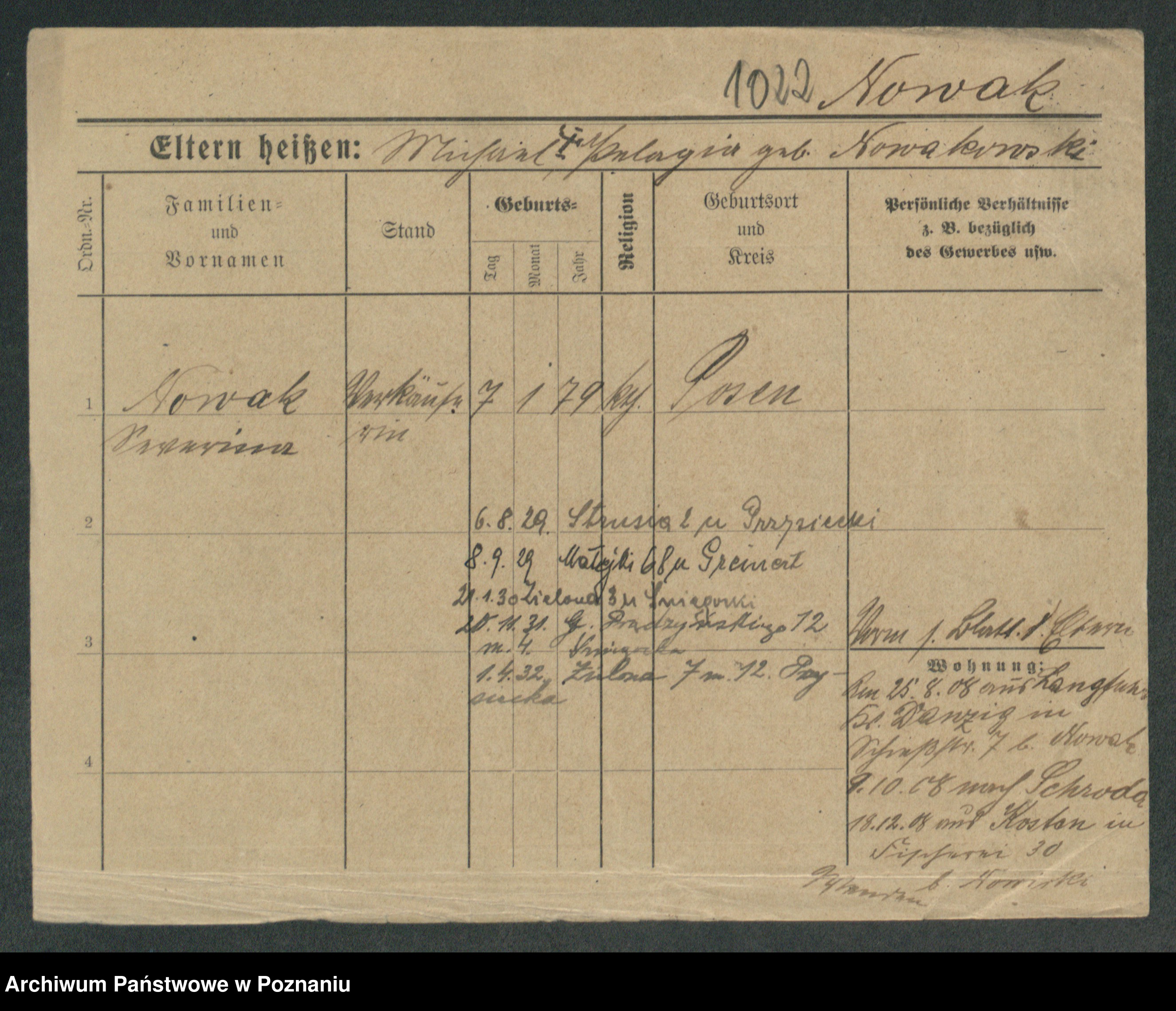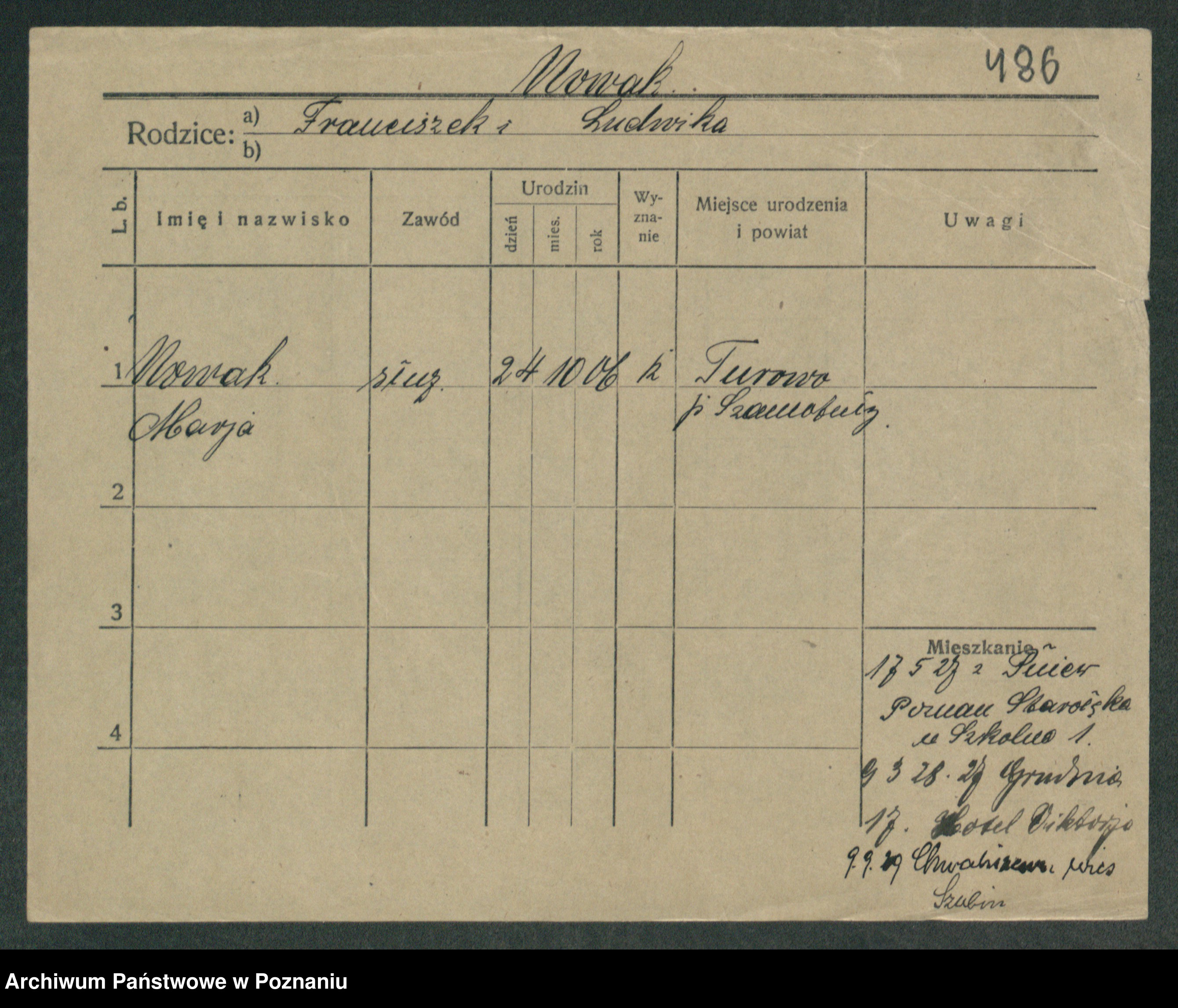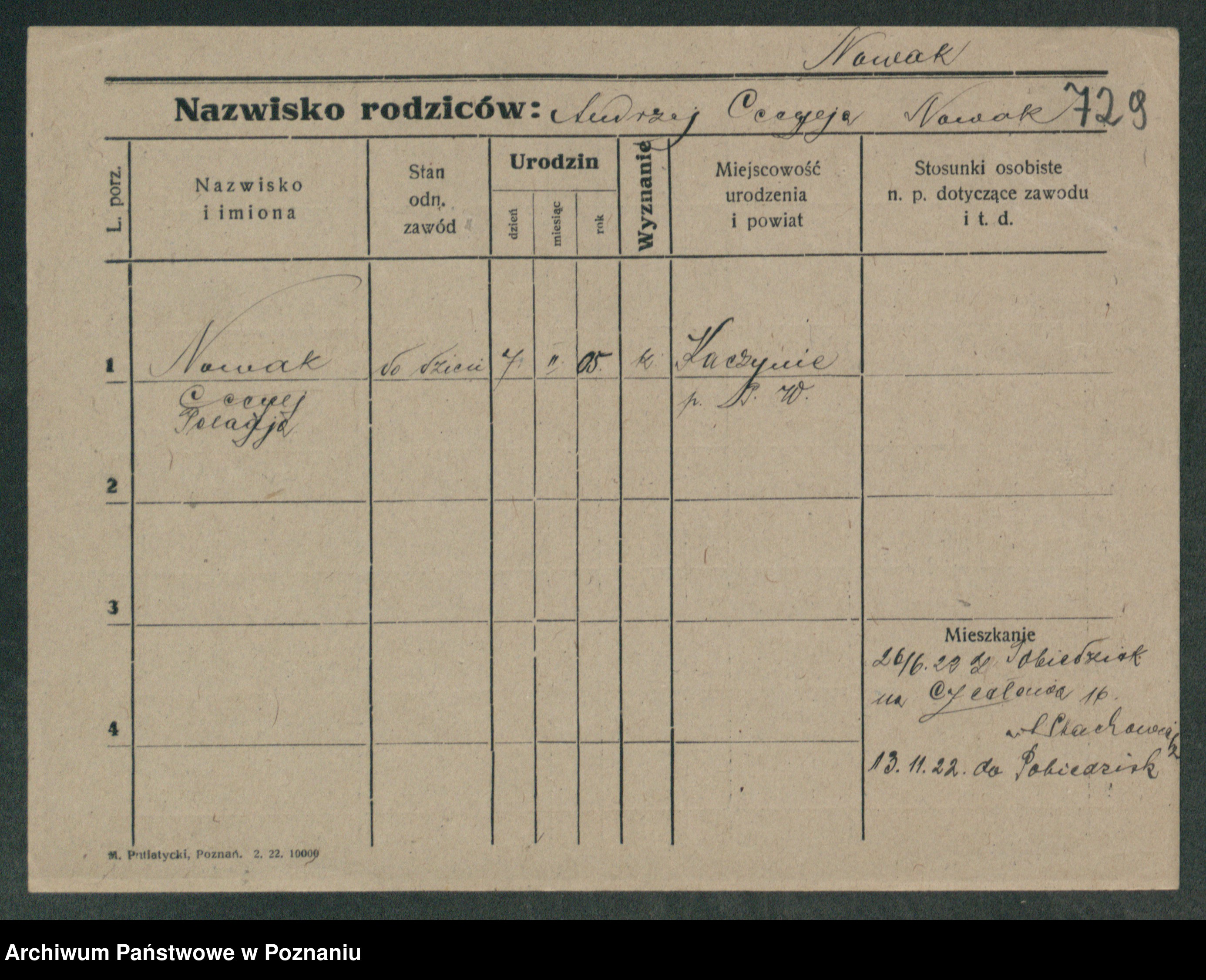Podgląd karty osobowej dostępny jest po kliknięciu na nazwisko lub ikonkę karty. Można dokonywać powiększenia (ikony na górze) lub przechodzić między kolejnymi skanami (strzałki po bokach).
