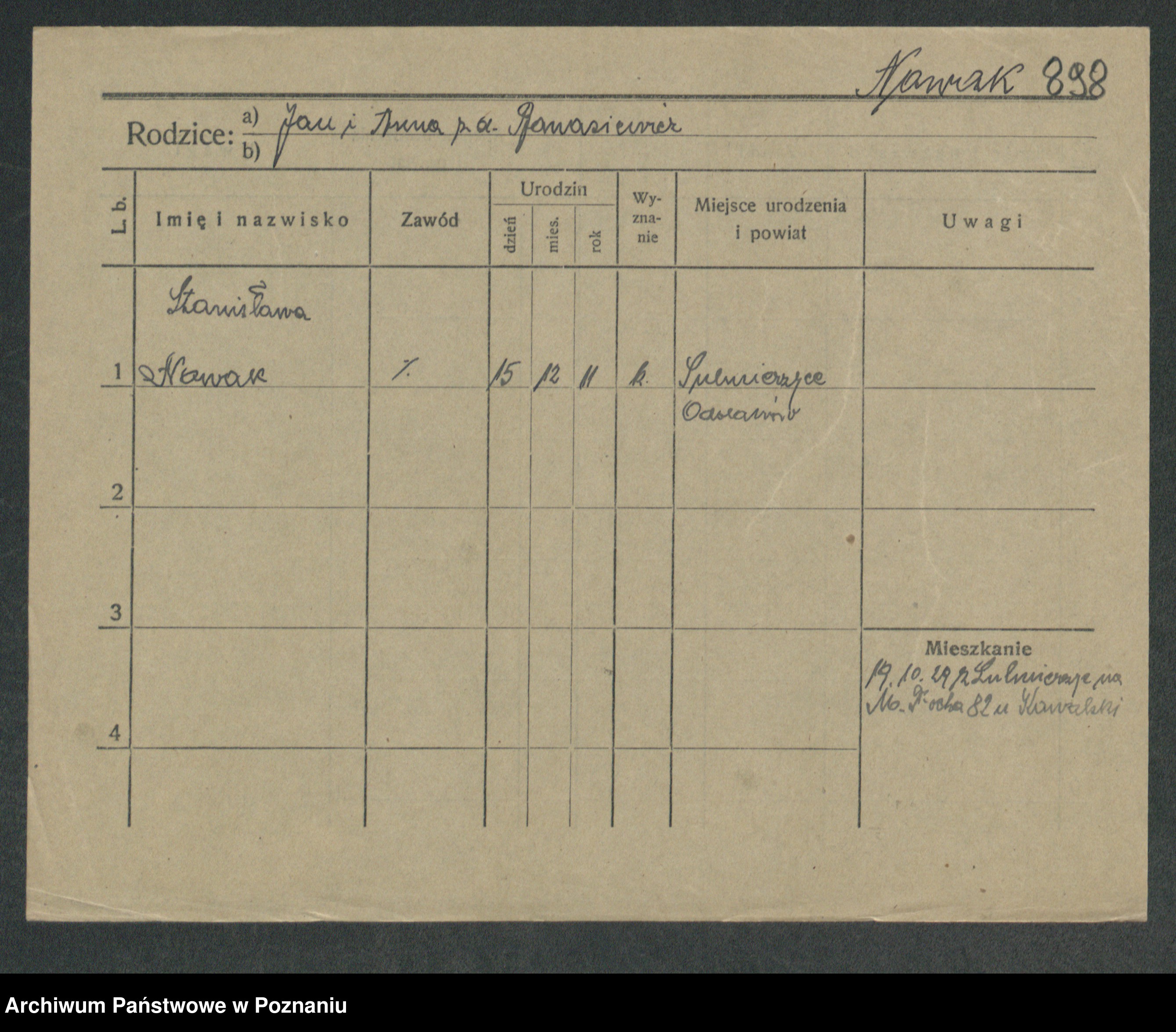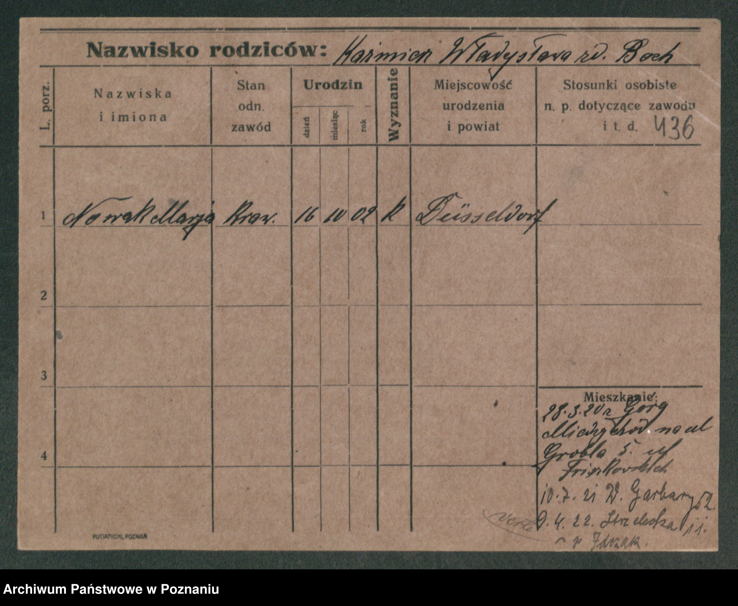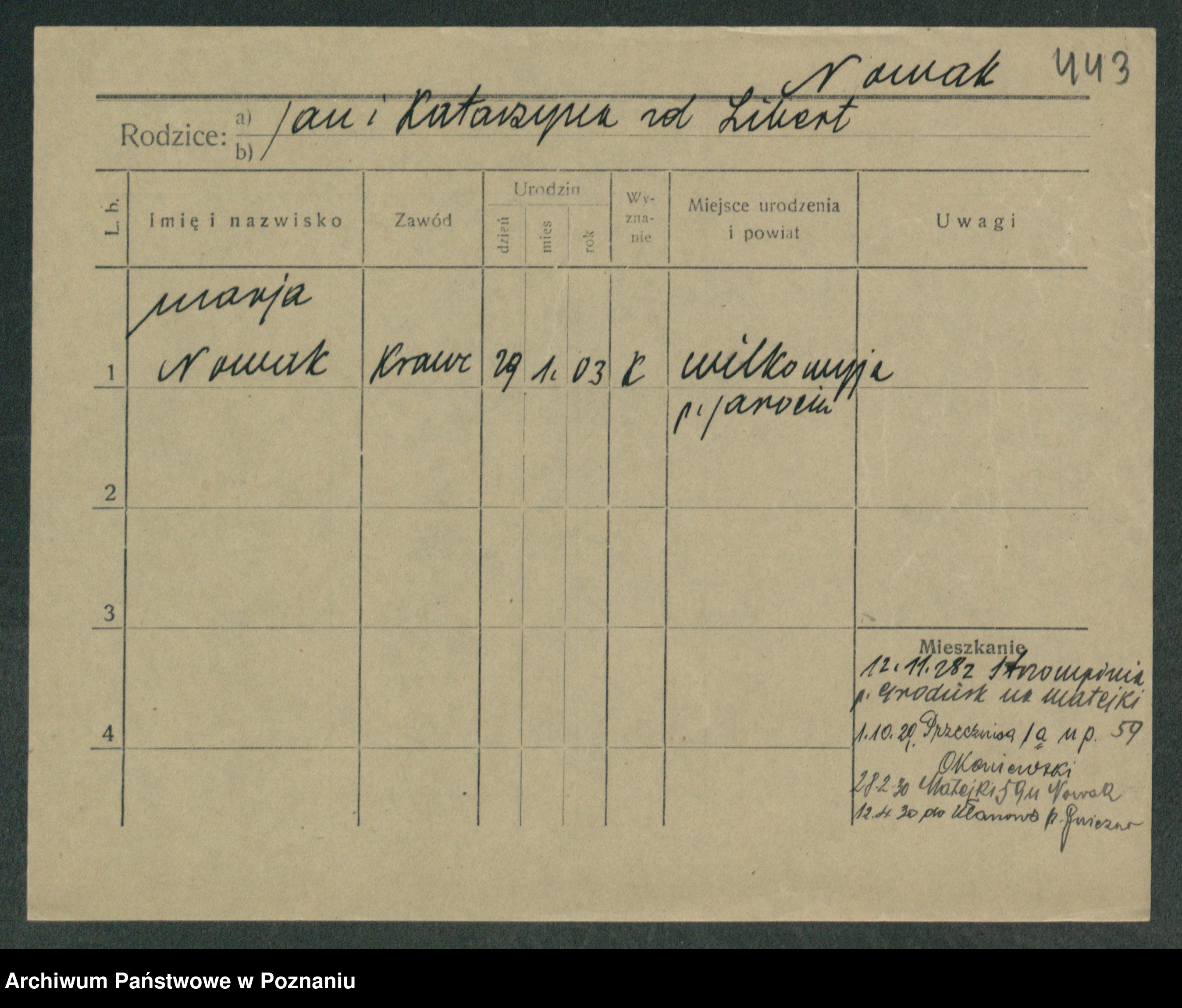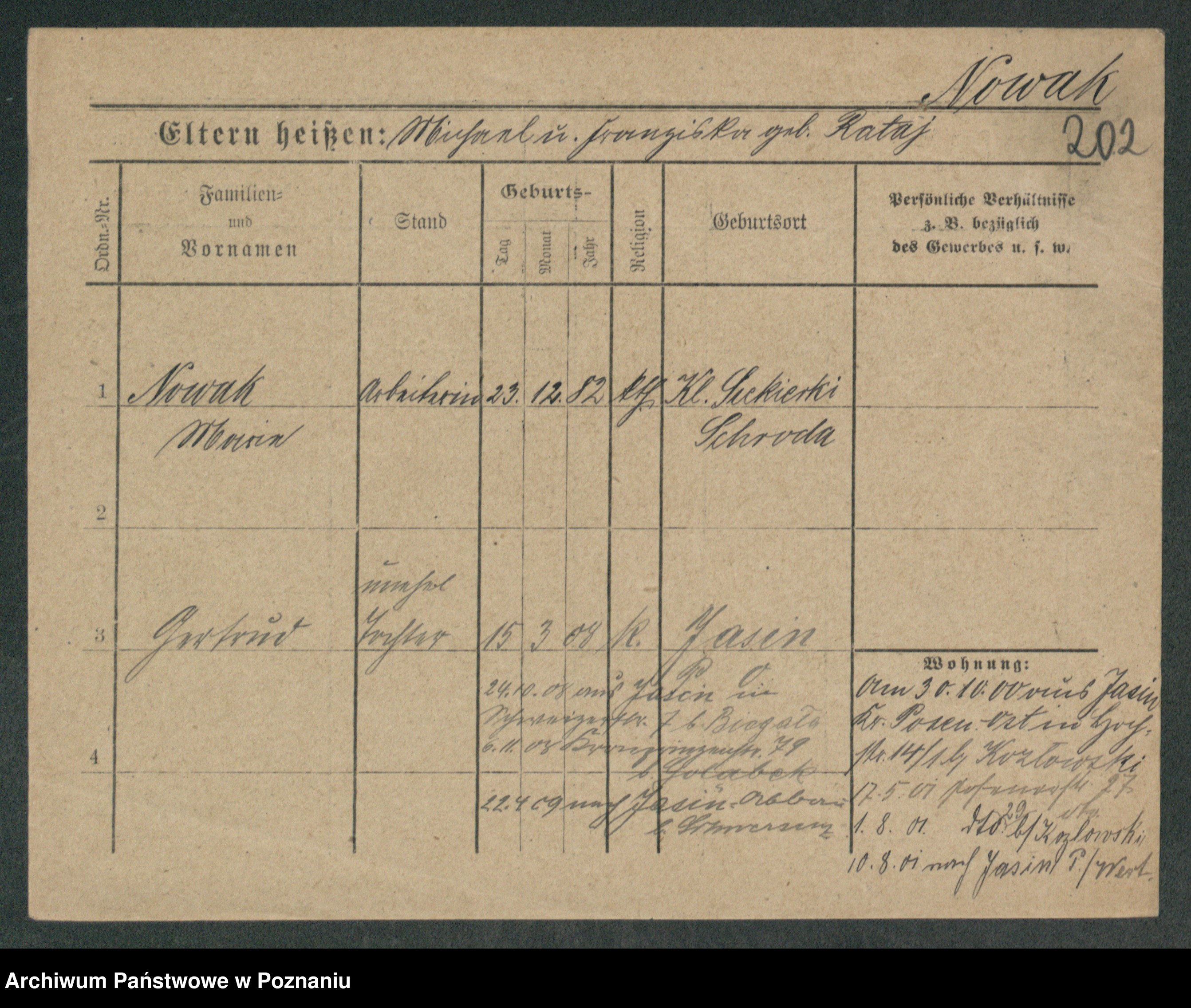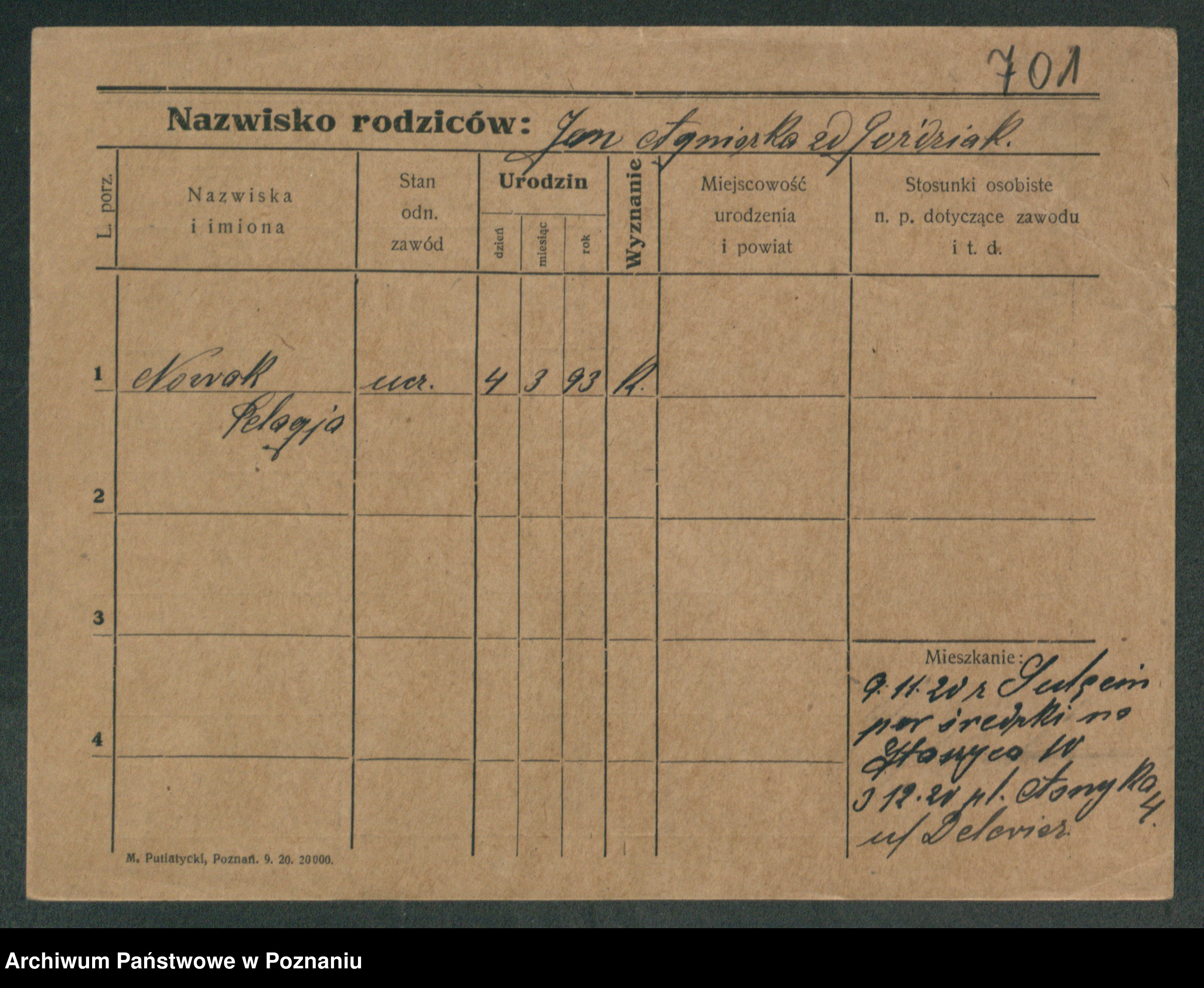 Podgląd karty osobowej dostępny jest po kliknięciu na nazwisko lub ikonkę karty. Można dokonywać powiększenia (ikony na górze) lub przechodzić między kolejnymi skanami (strzałki po bokach).