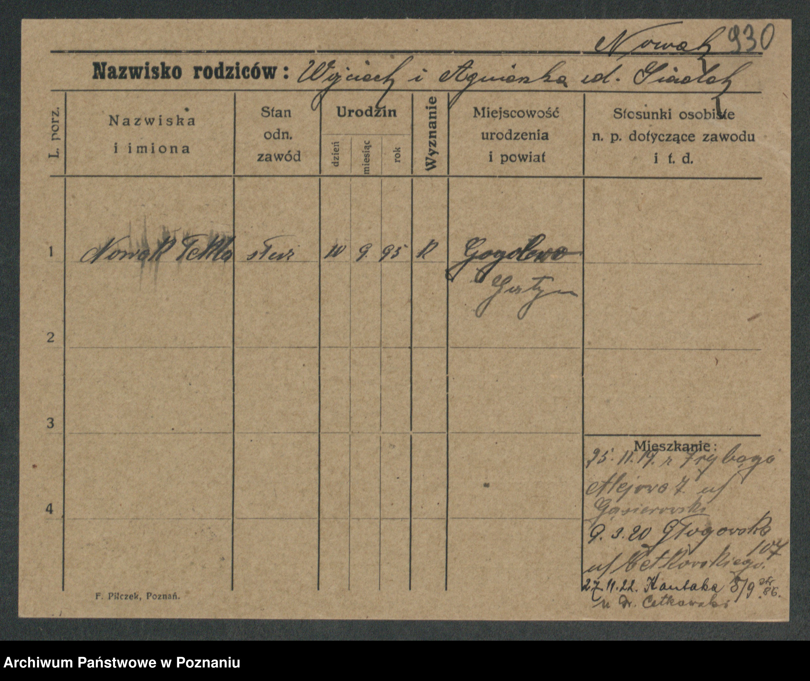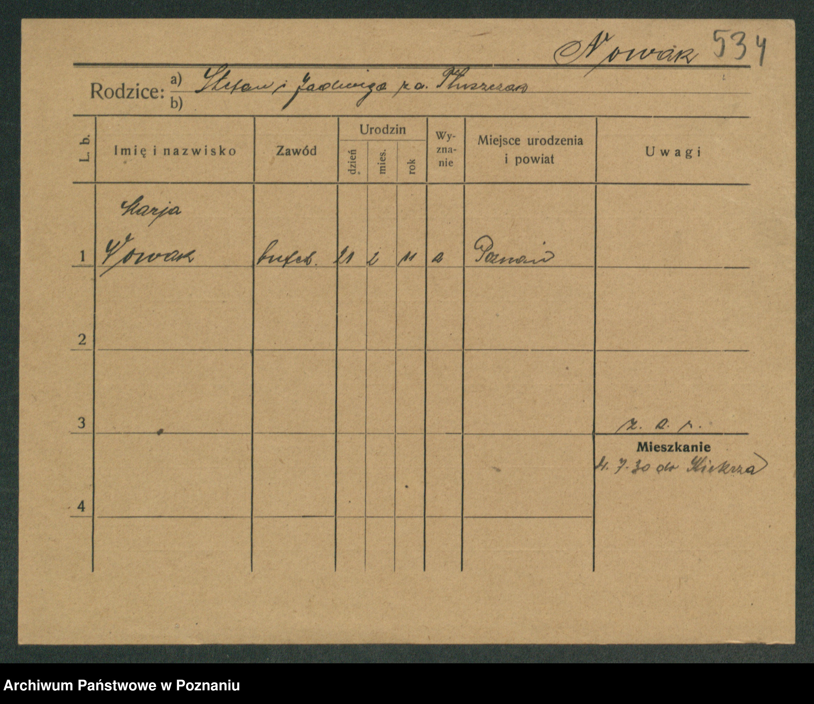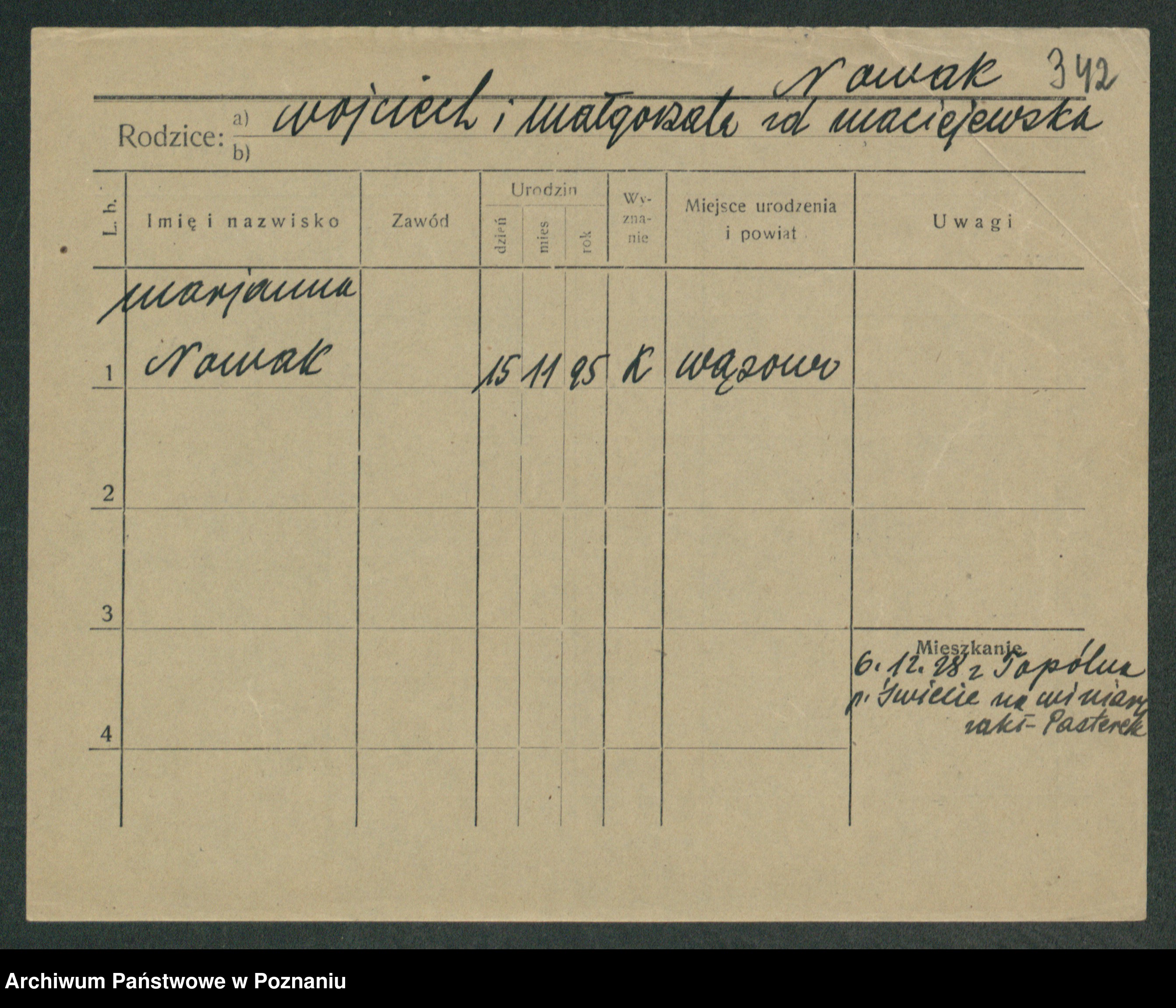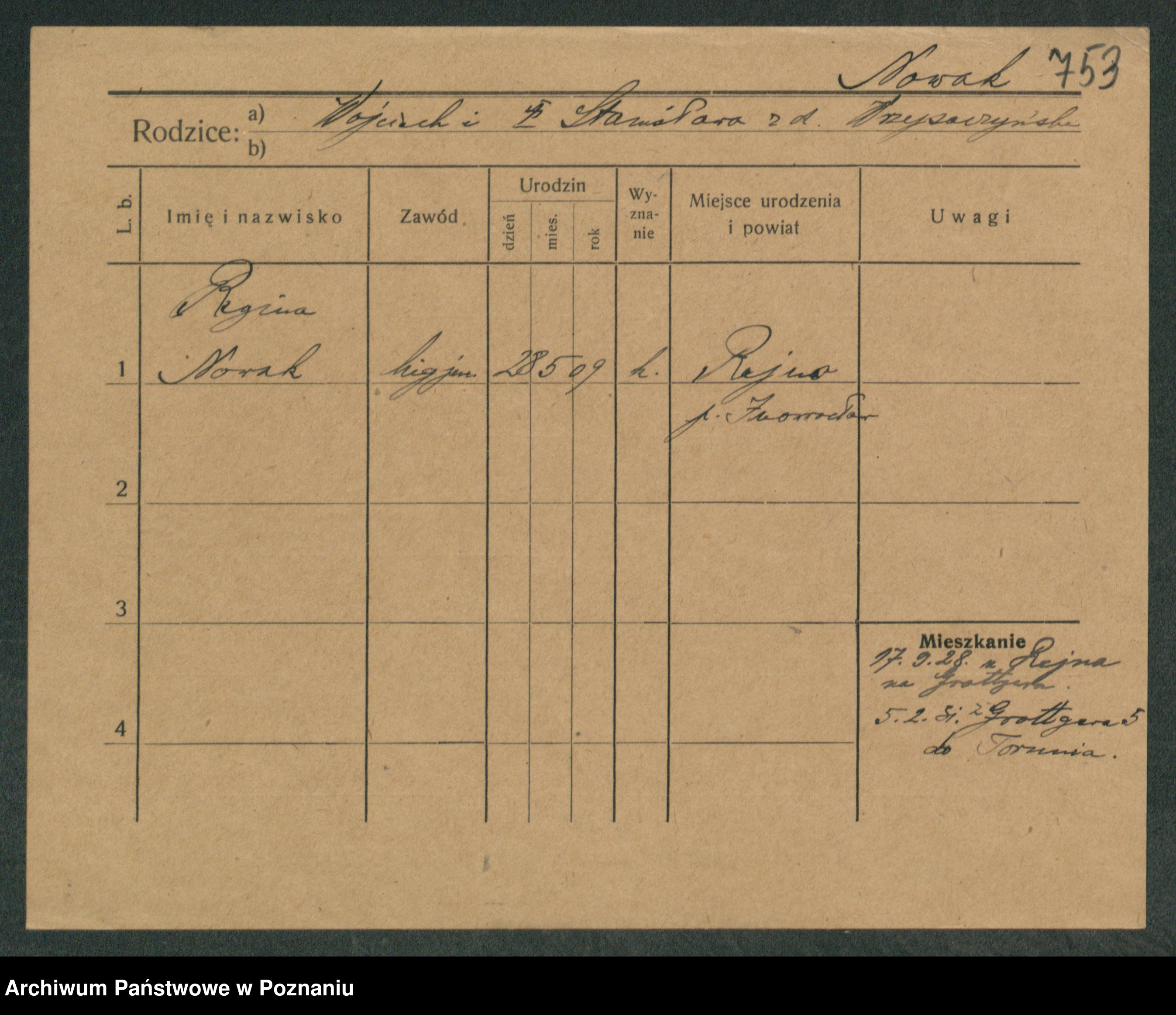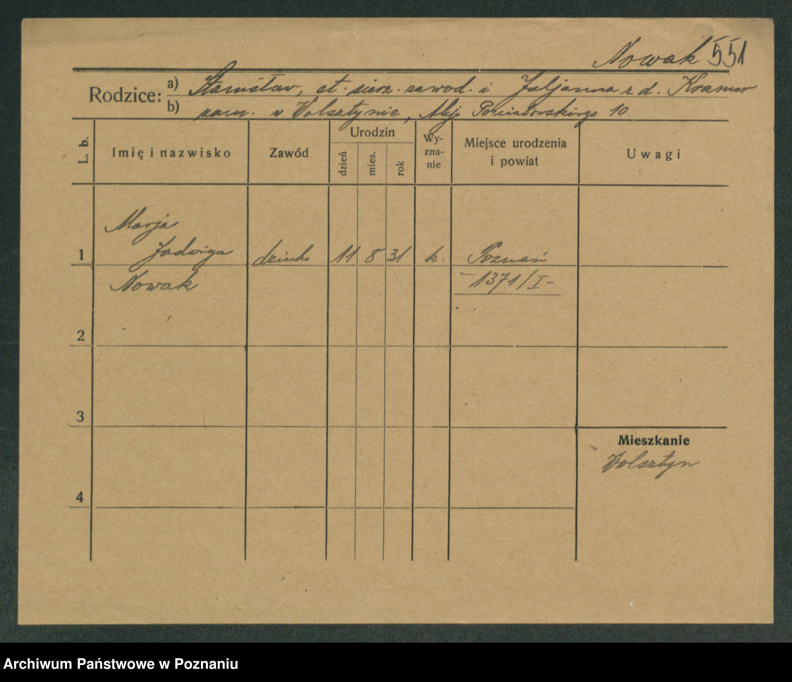 Podgląd karty osobowej dostępny jest po kliknięciu na nazwisko lub ikonkę karty. Można dokonywać powiększenia (ikony na górze) lub przechodzić między kolejnymi skanami (strzałki po bokach).