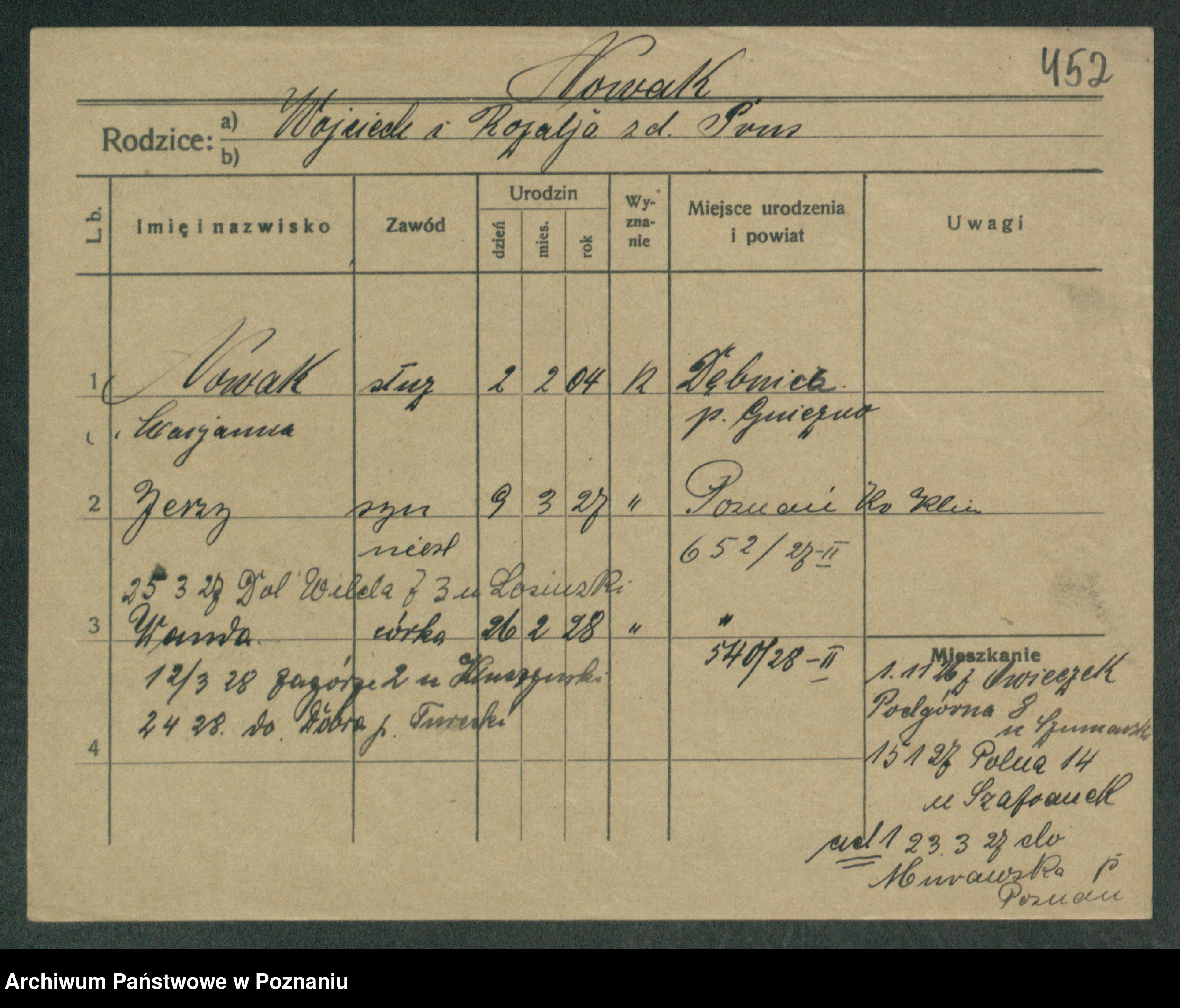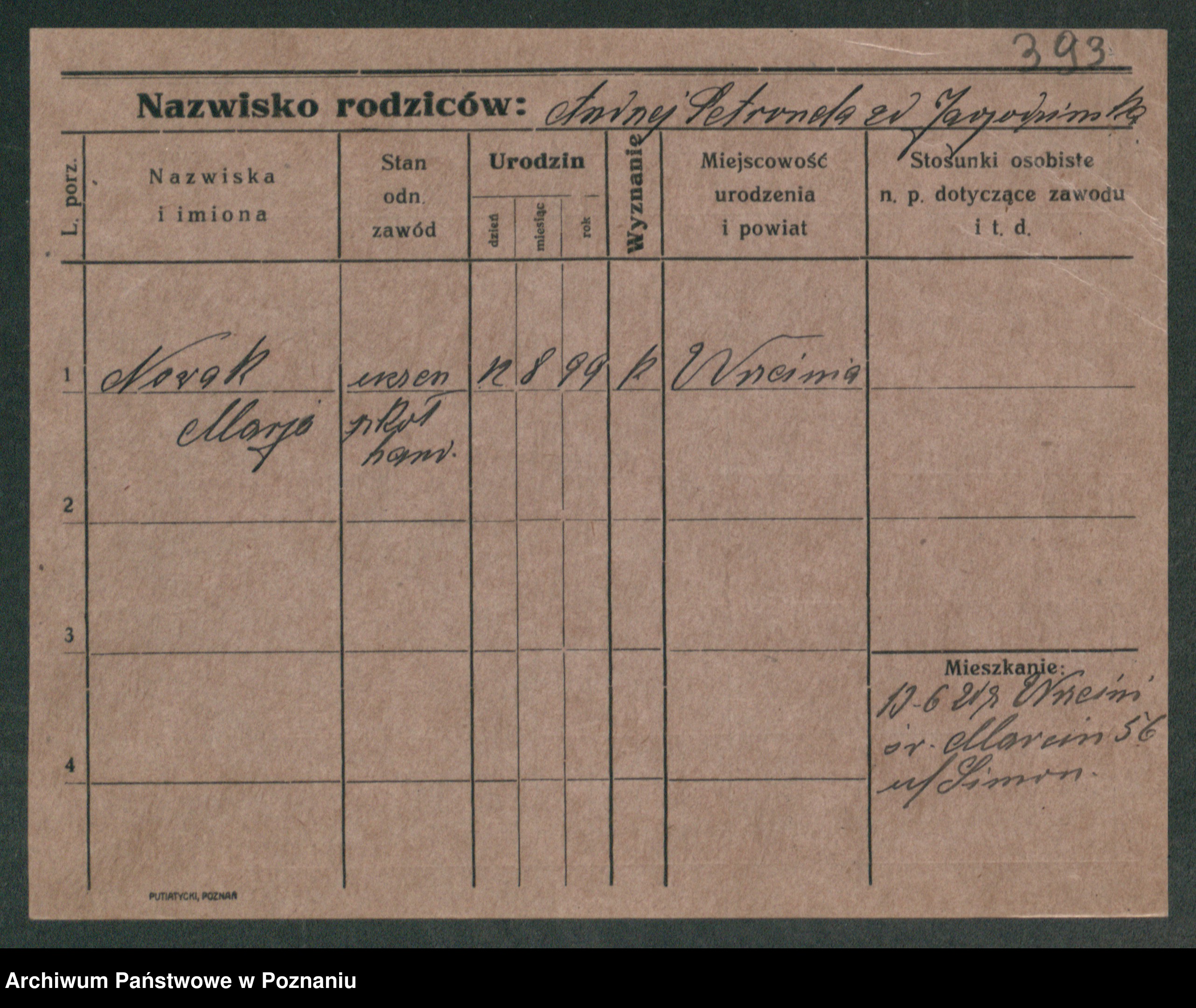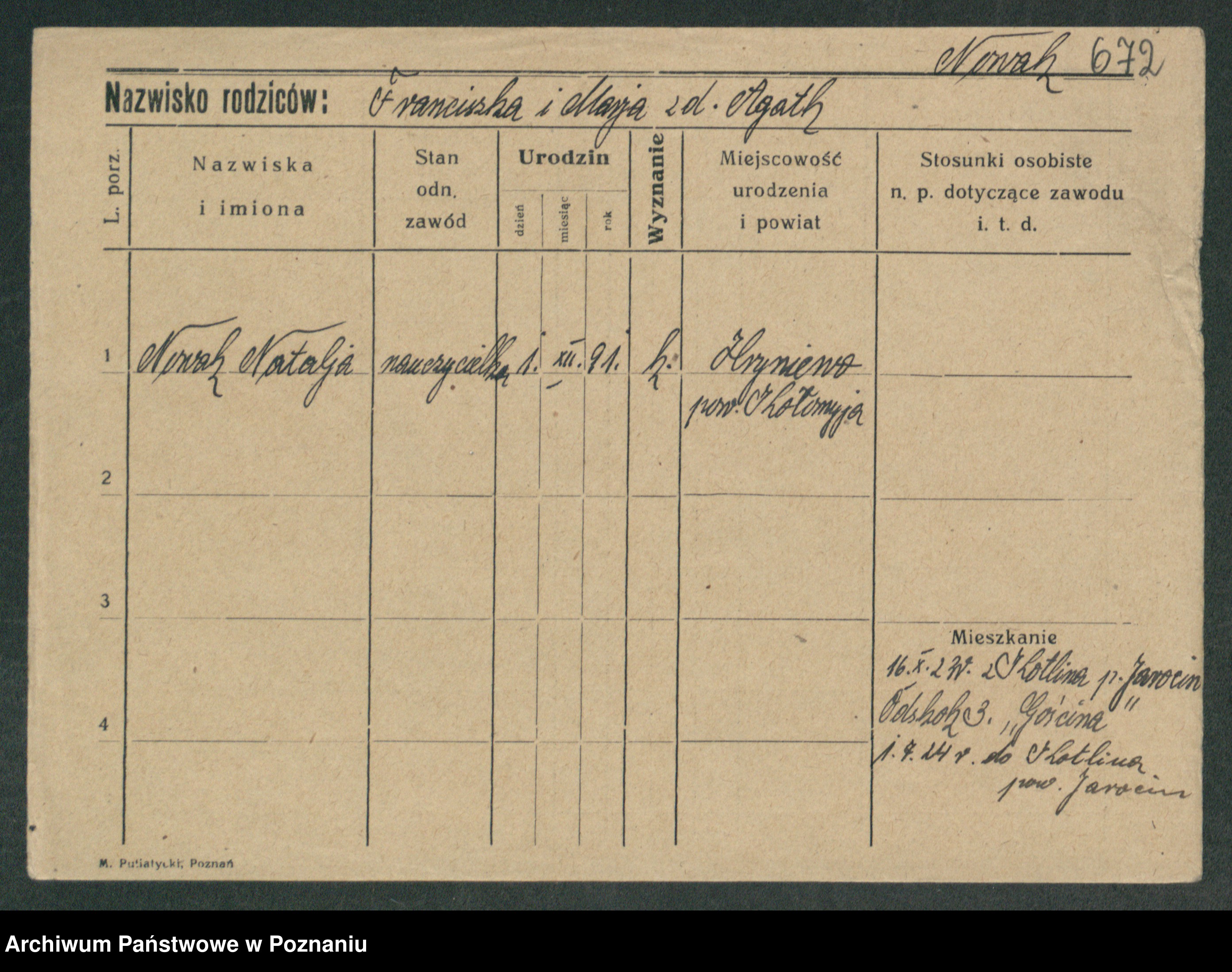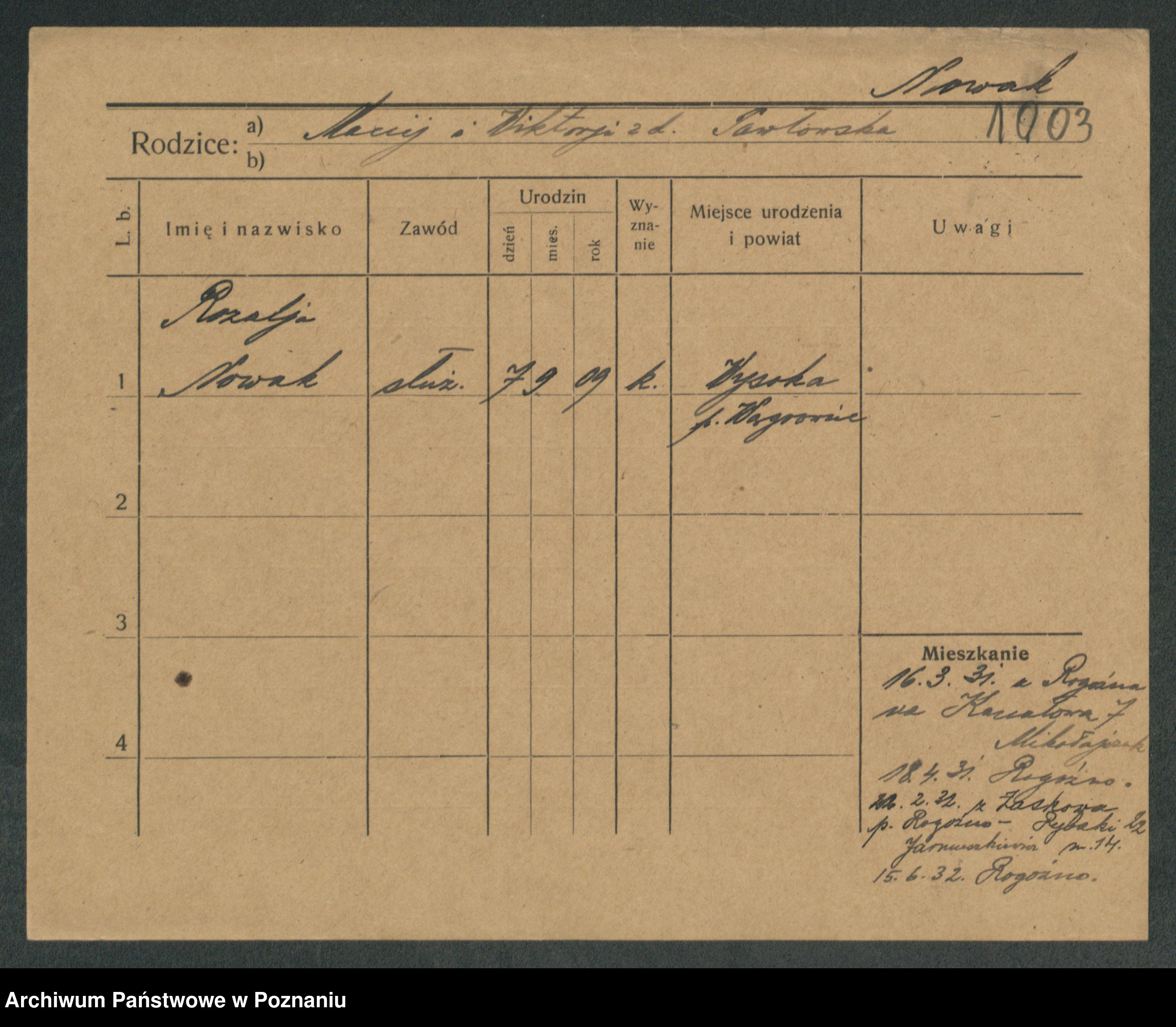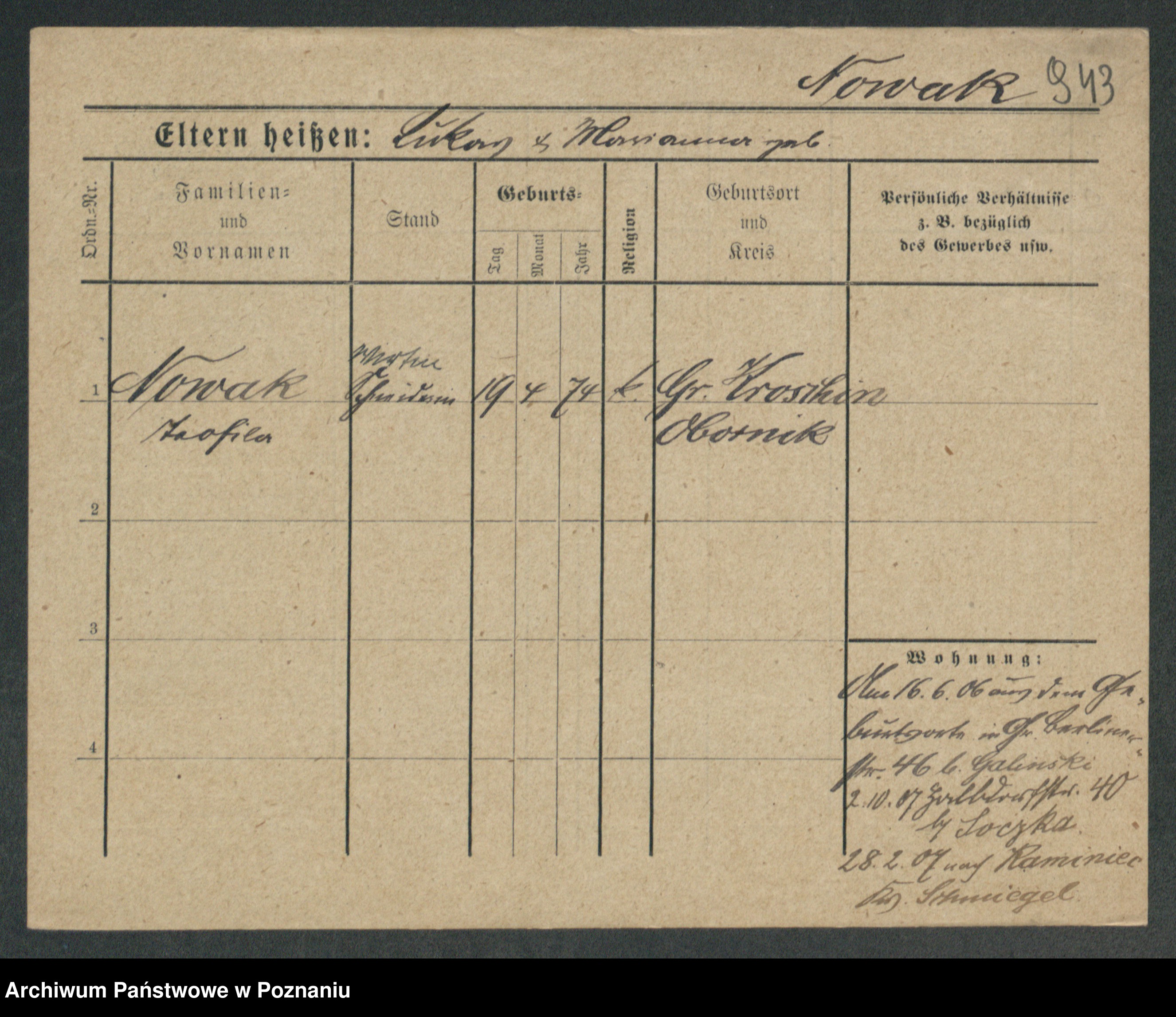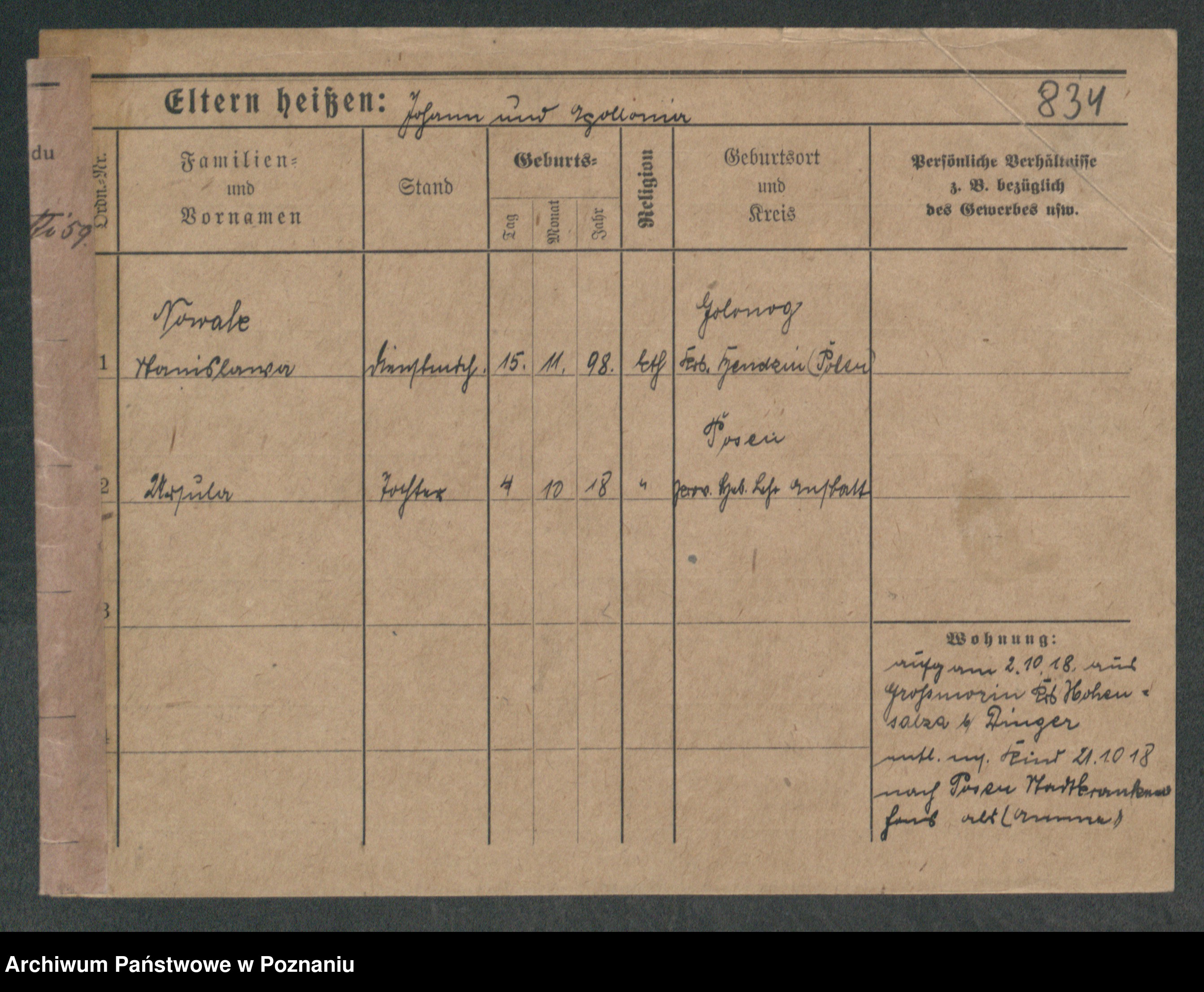 Podgląd karty osobowej dostępny jest po kliknięciu na nazwisko lub ikonkę karty. Można dokonywać powiększenia (ikony na górze) lub przechodzić między kolejnymi skanami (strzałki po bokach).