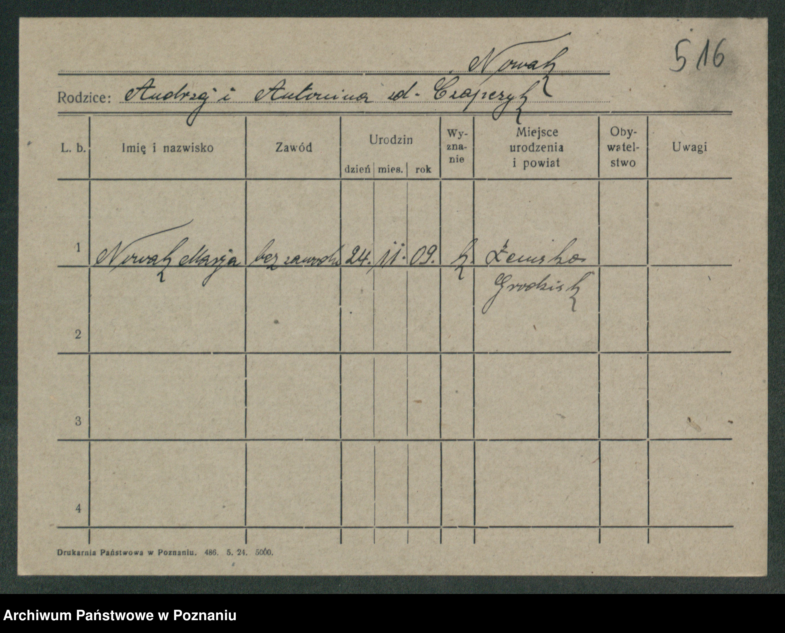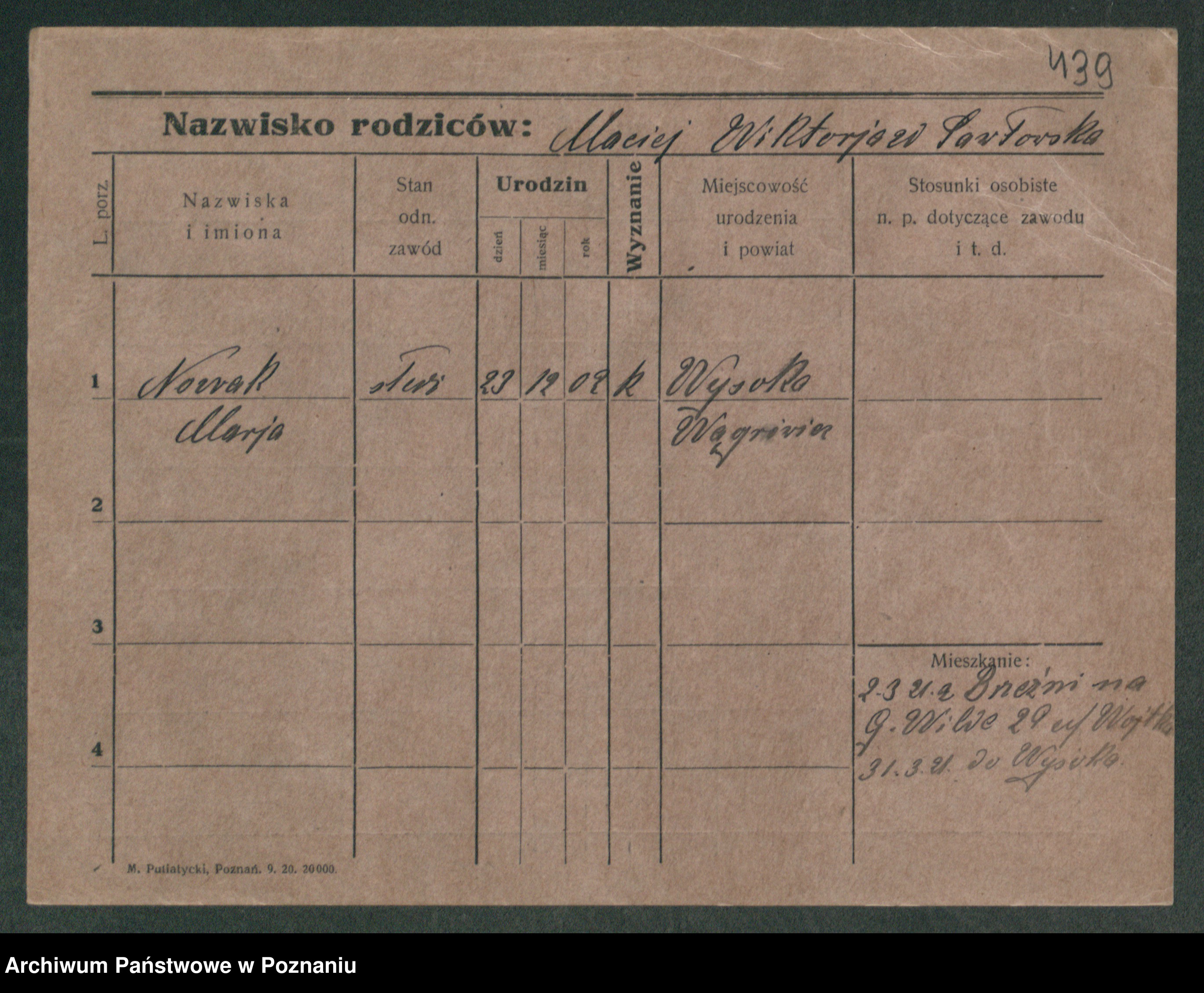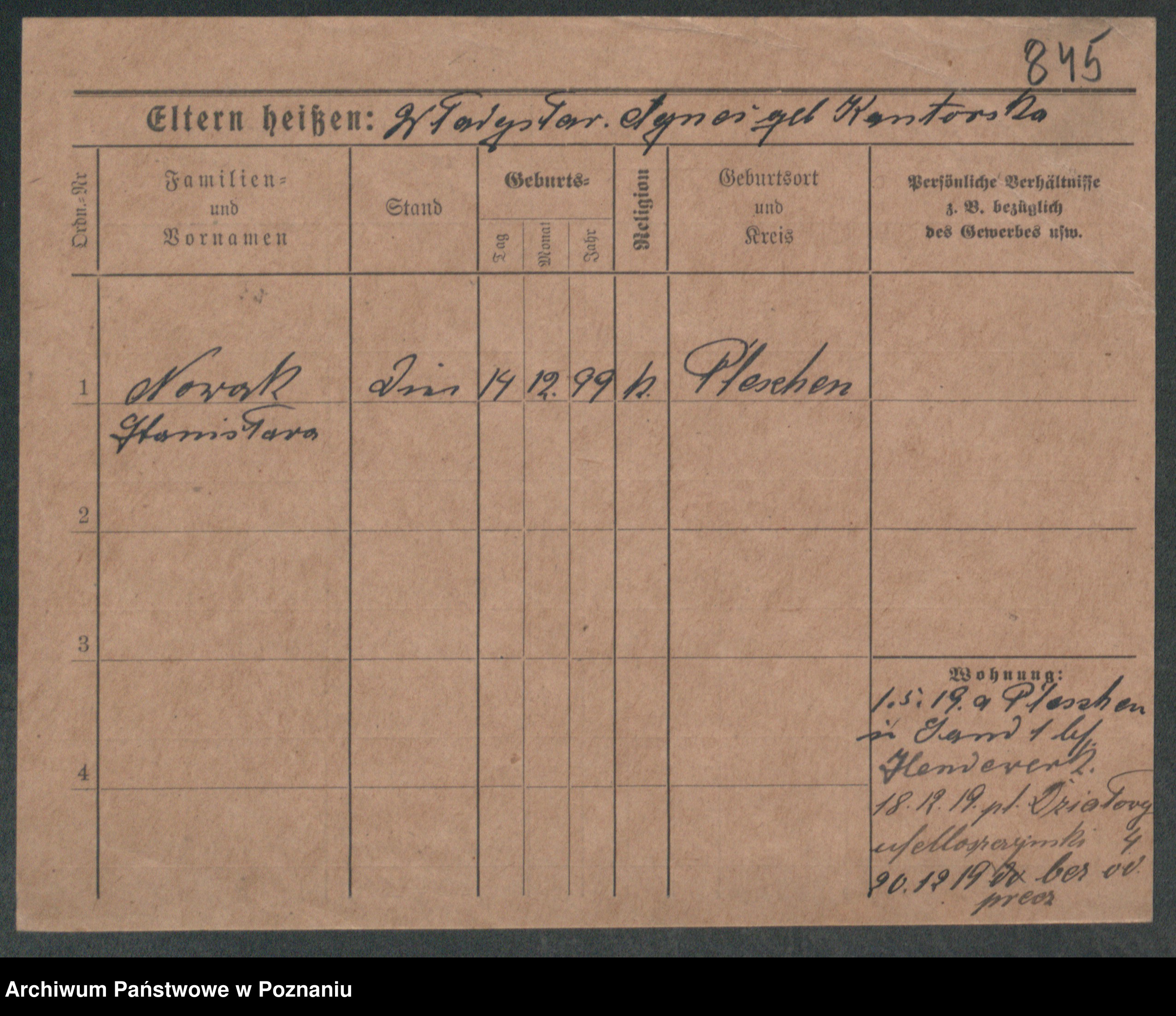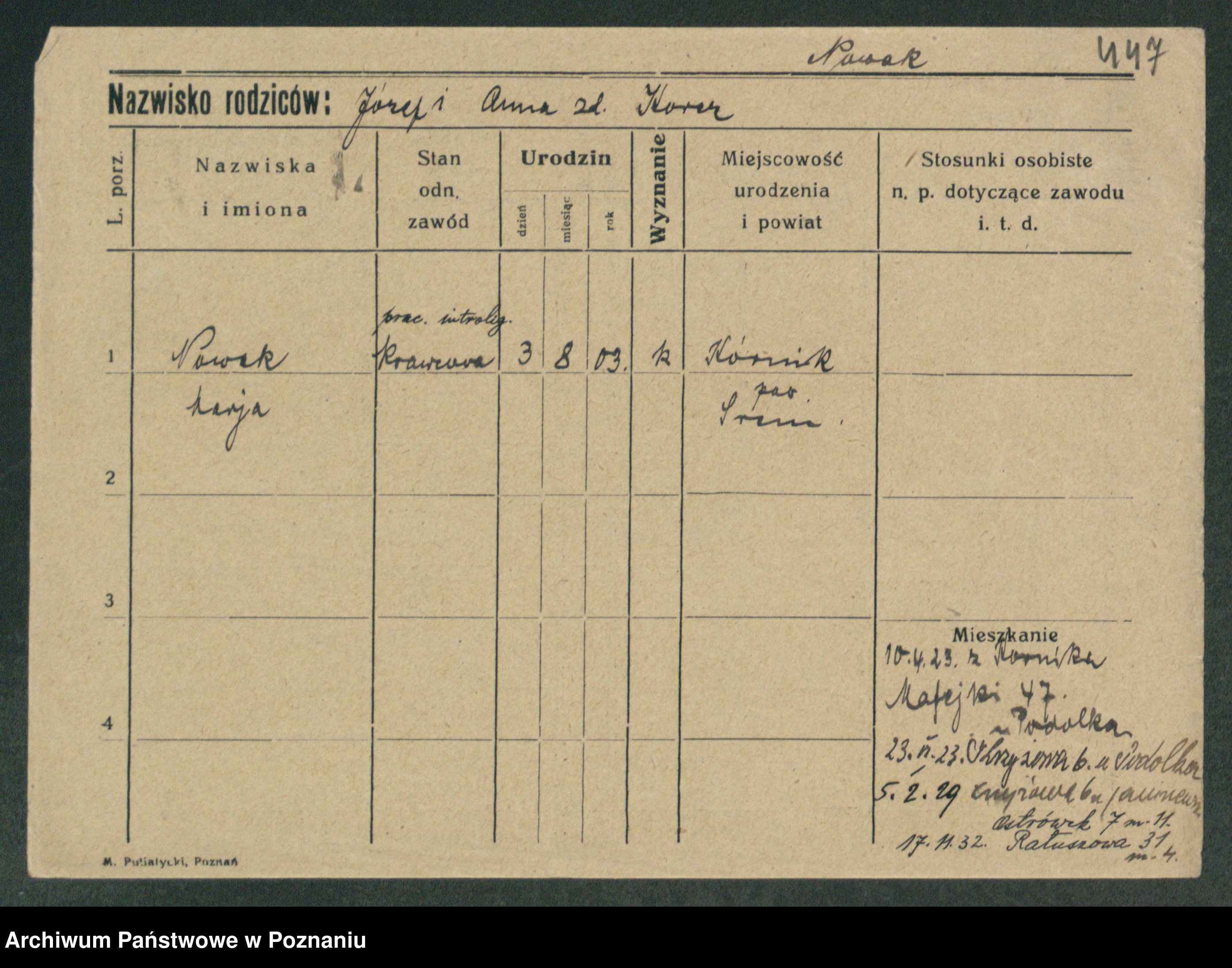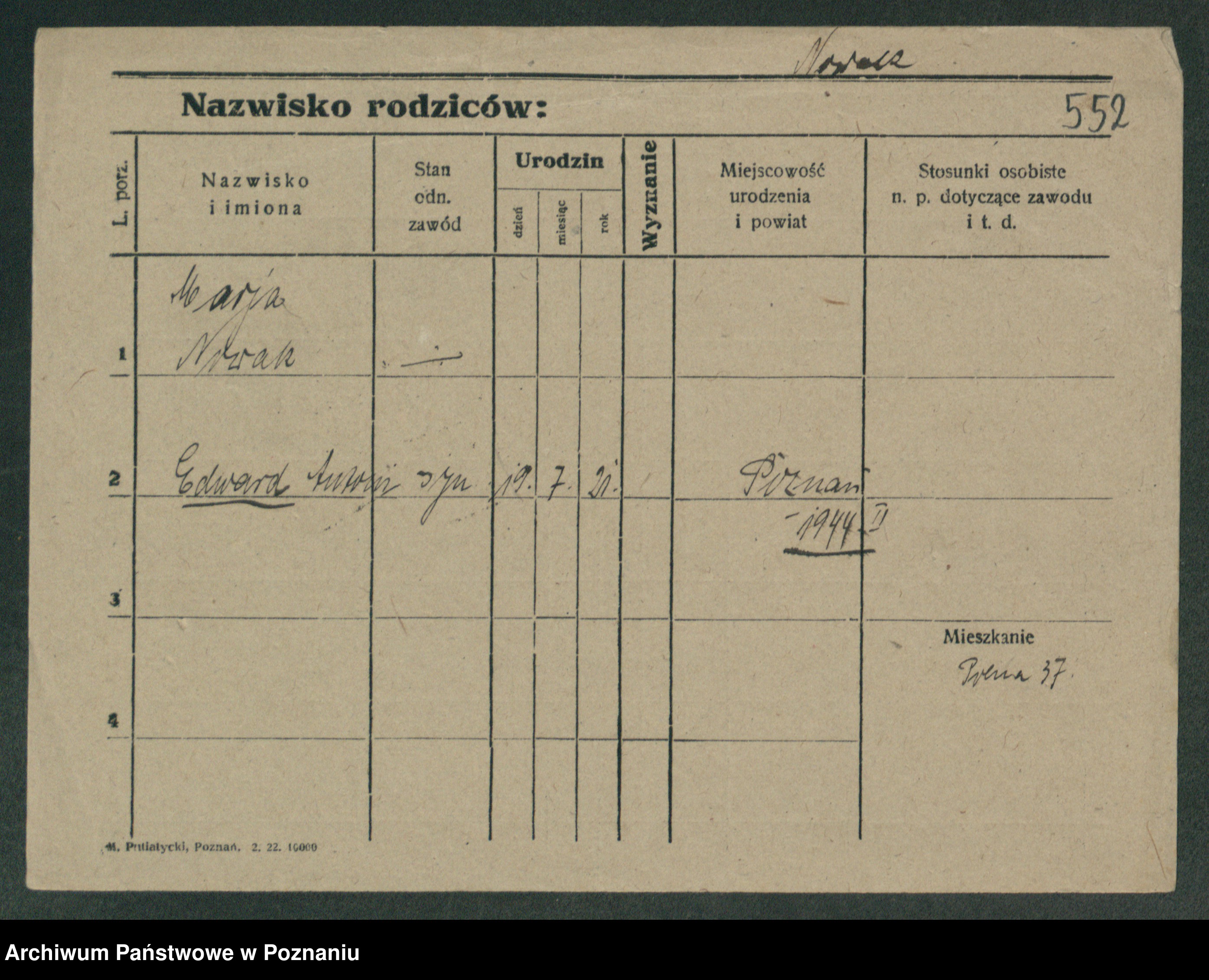 Podgląd karty osobowej dostępny jest po kliknięciu na nazwisko lub ikonkę karty. Można dokonywać powiększenia (ikony na górze) lub przechodzić między kolejnymi skanami (strzałki po bokach).