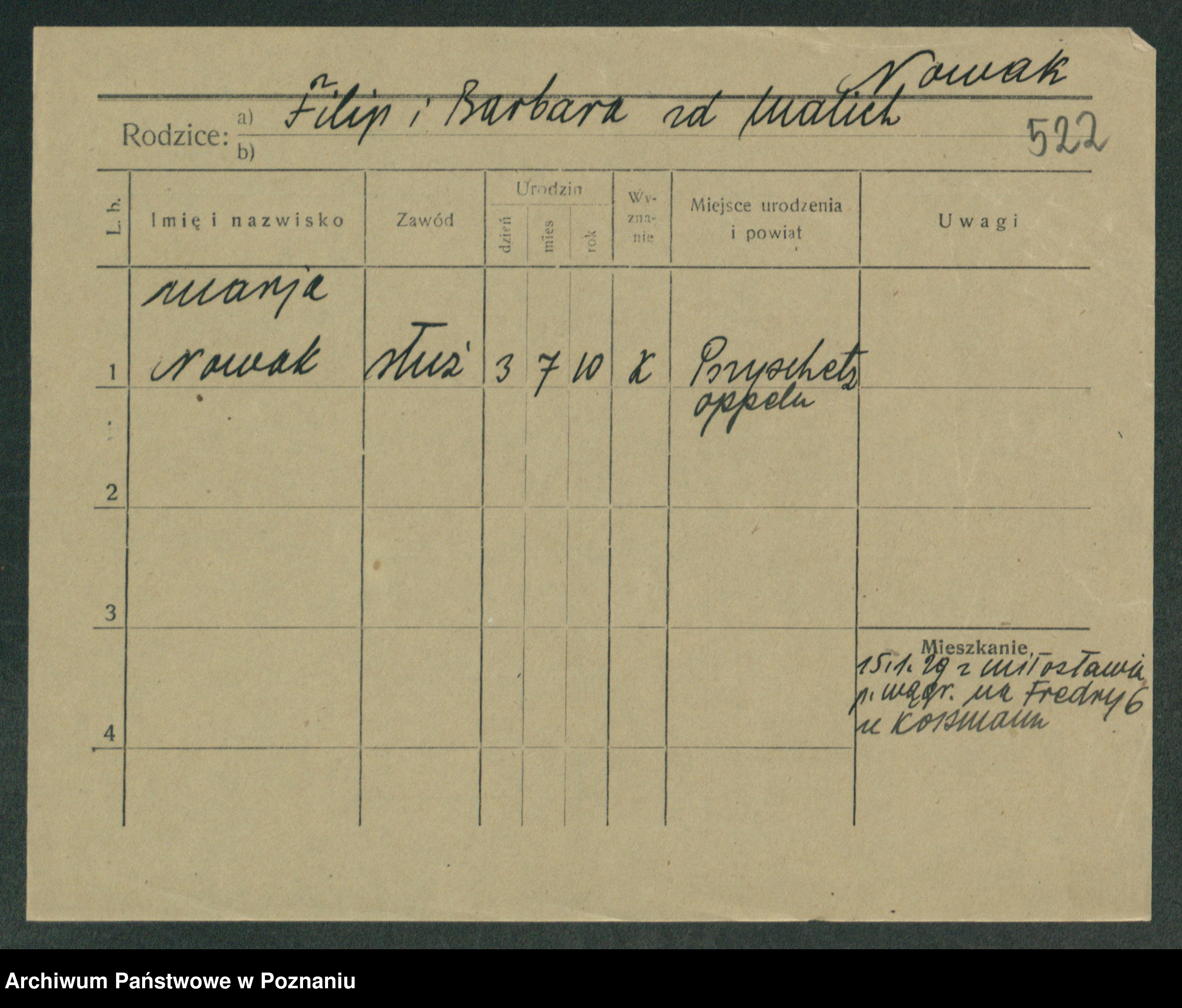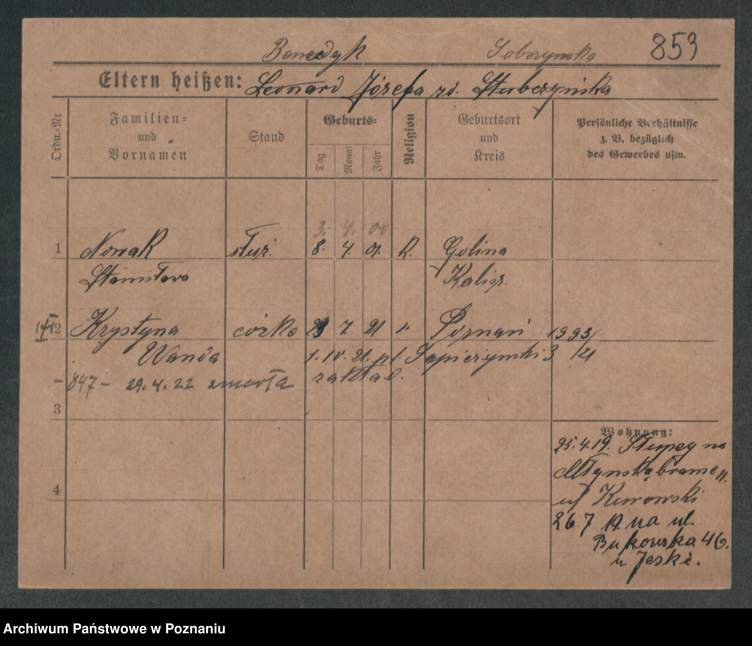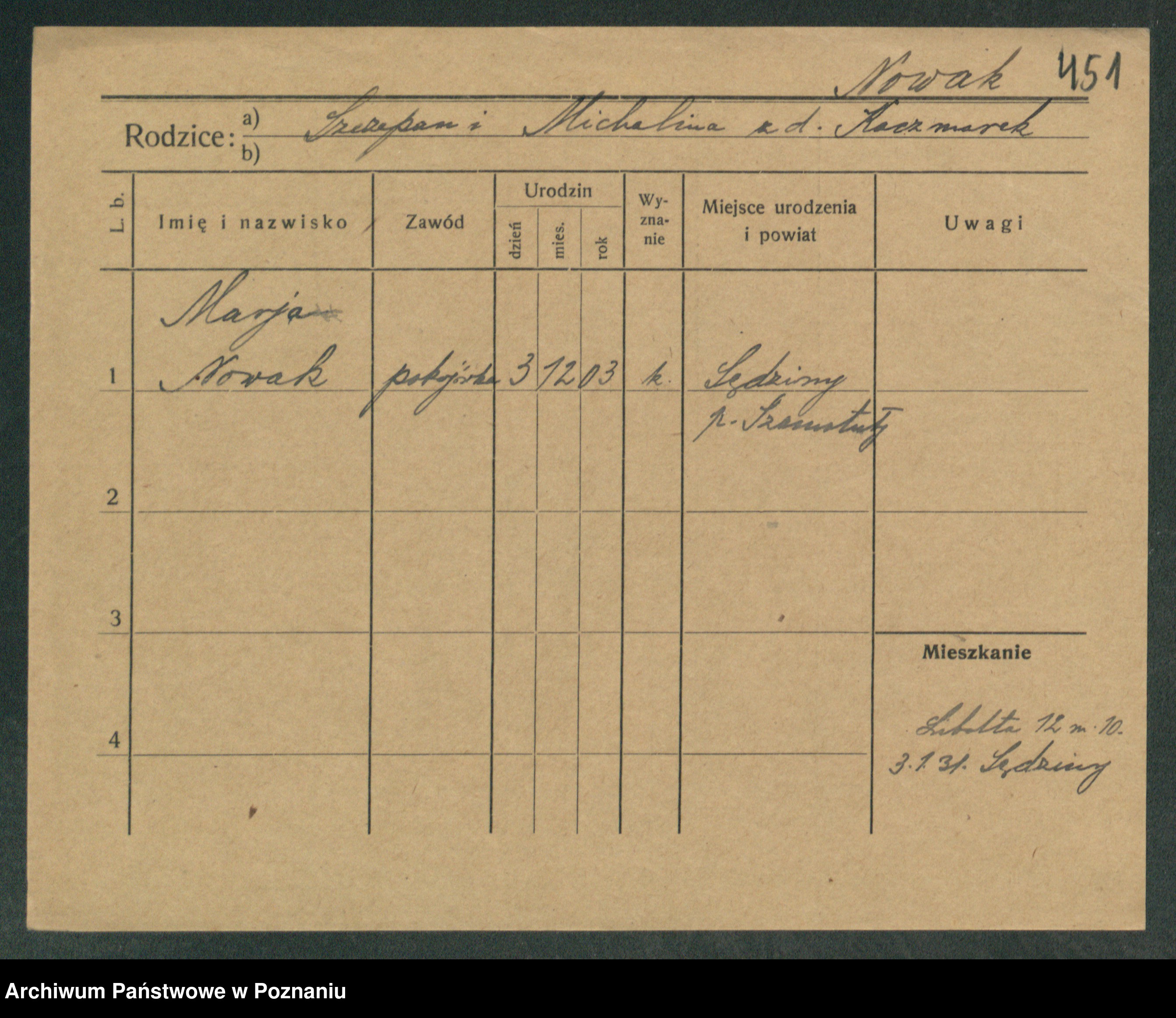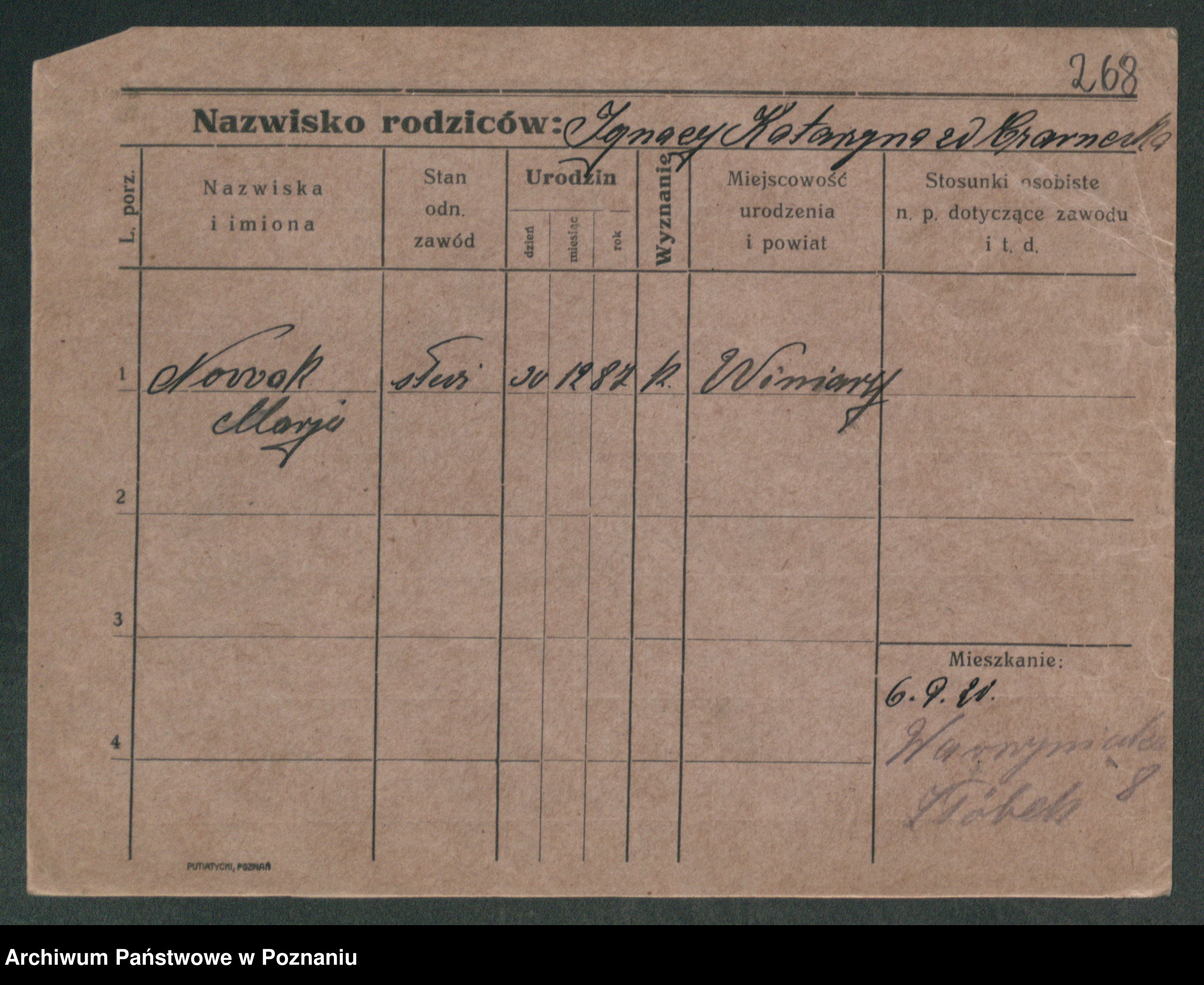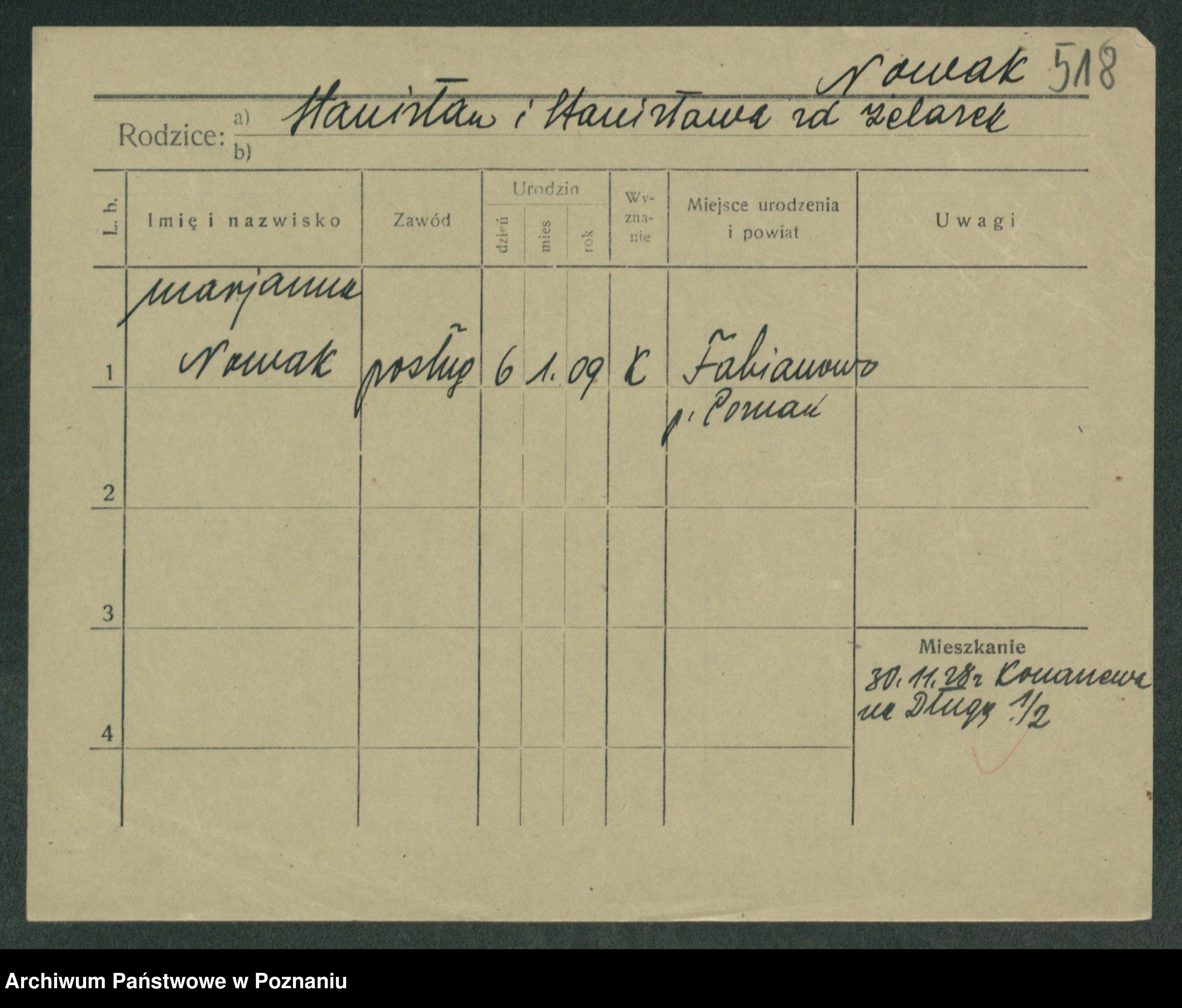 Podgląd karty osobowej dostępny jest po kliknięciu na nazwisko lub ikonkę karty. Można dokonywać powiększenia (ikony na górze) lub przechodzić między kolejnymi skanami (strzałki po bokach).