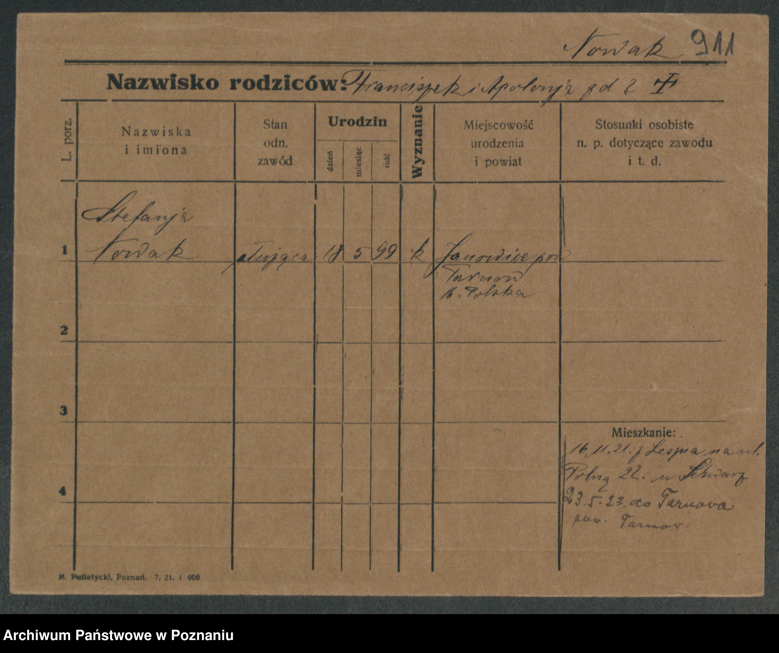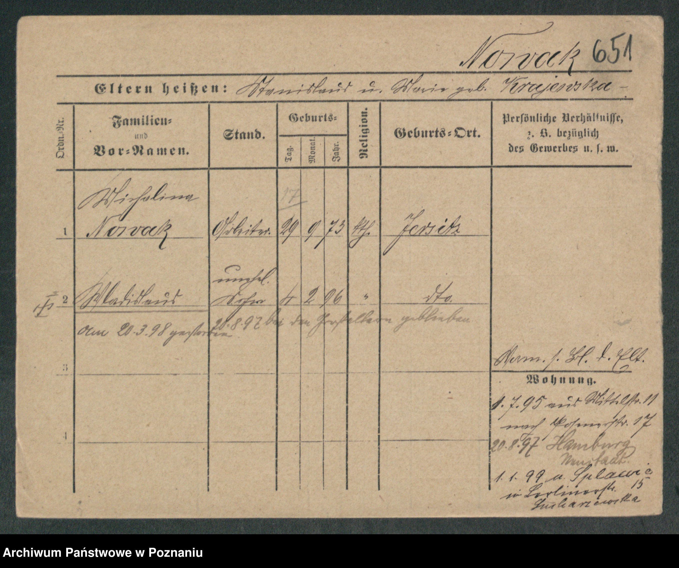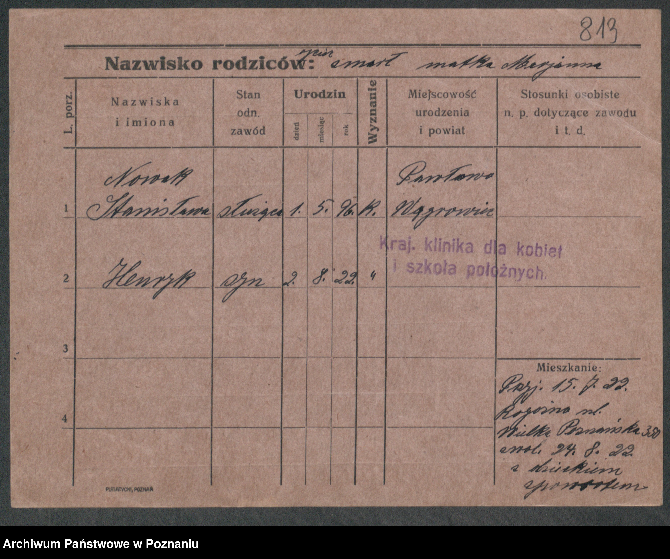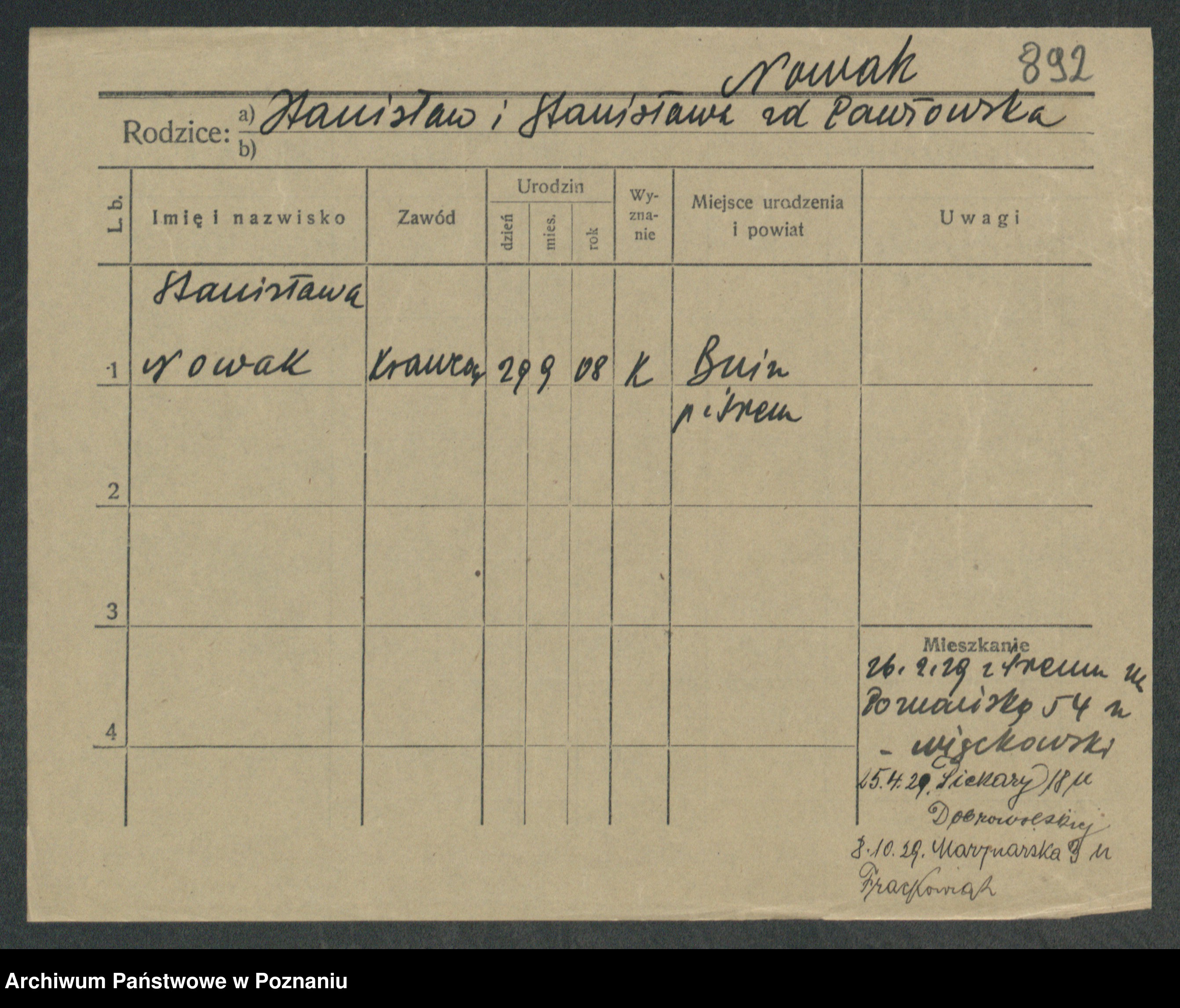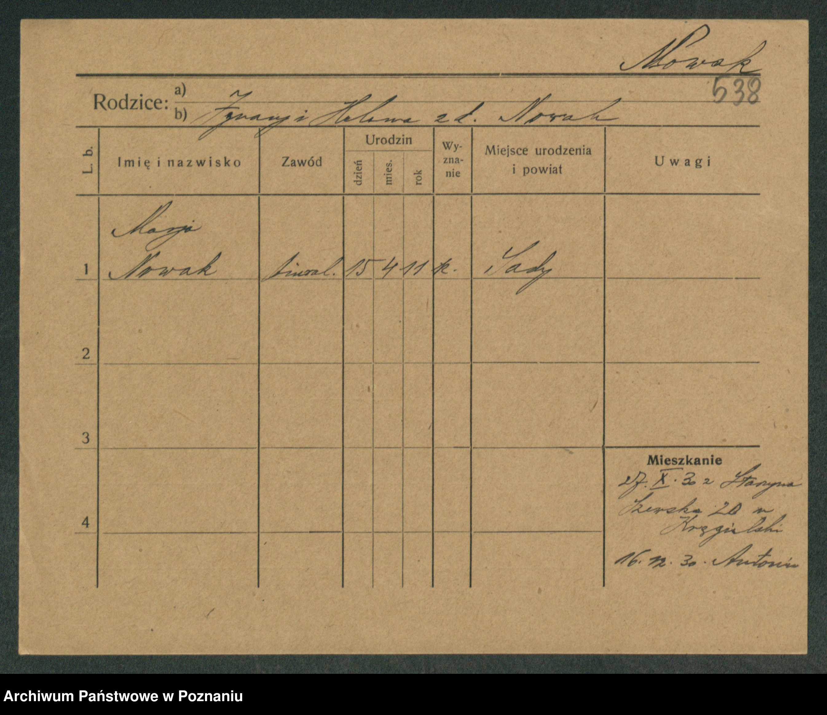 Podgląd karty osobowej dostępny jest po kliknięciu na nazwisko lub ikonkę karty. Można dokonywać powiększenia (ikony na górze) lub przechodzić między kolejnymi skanami (strzałki po bokach).