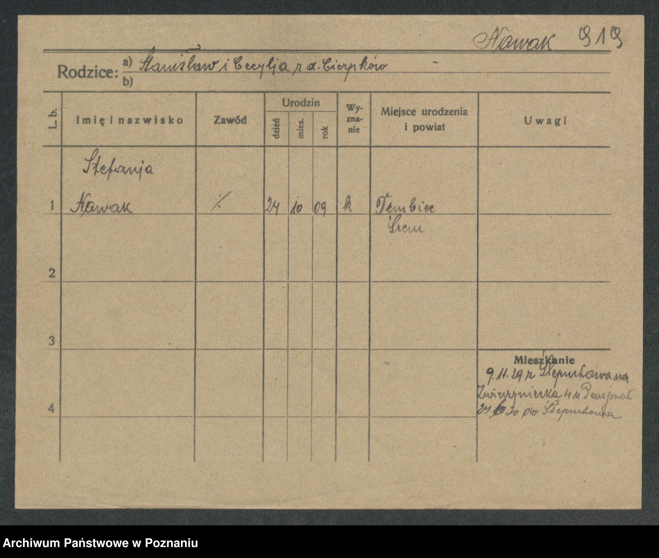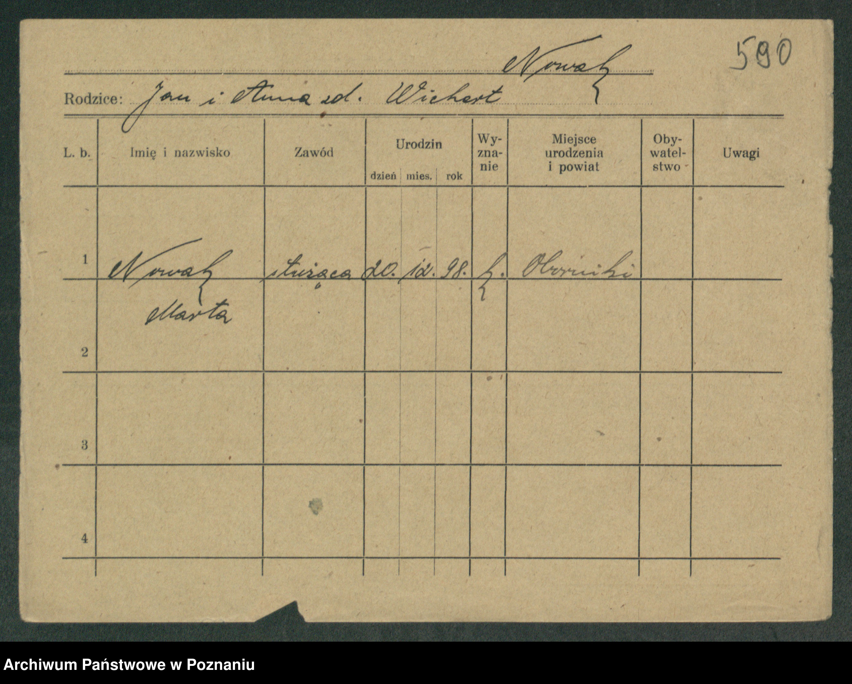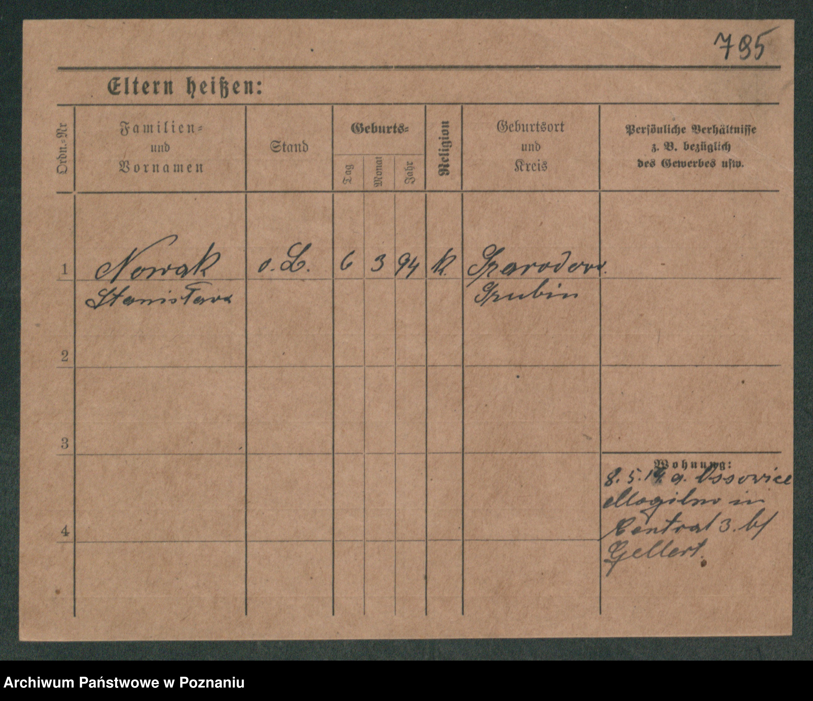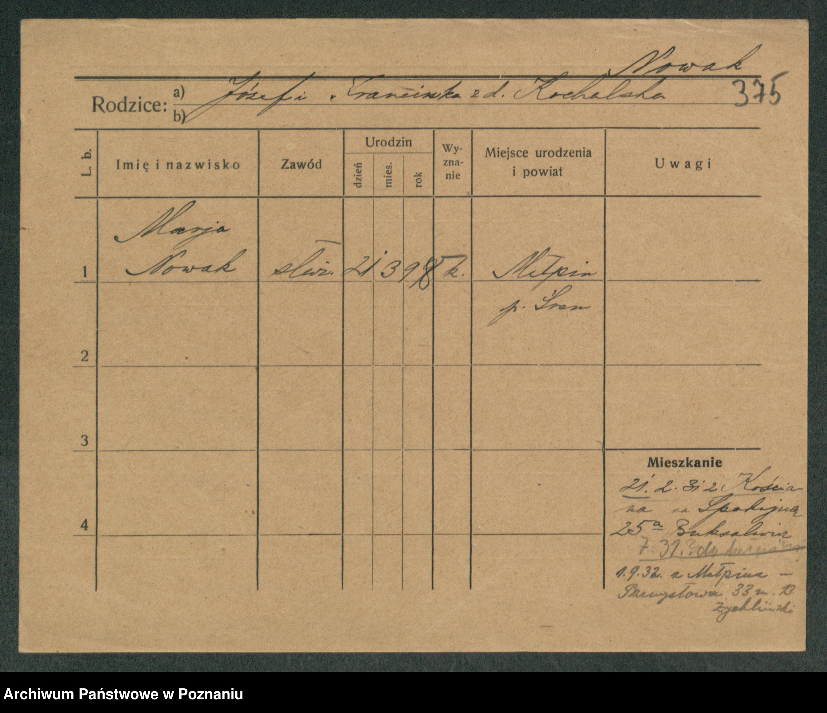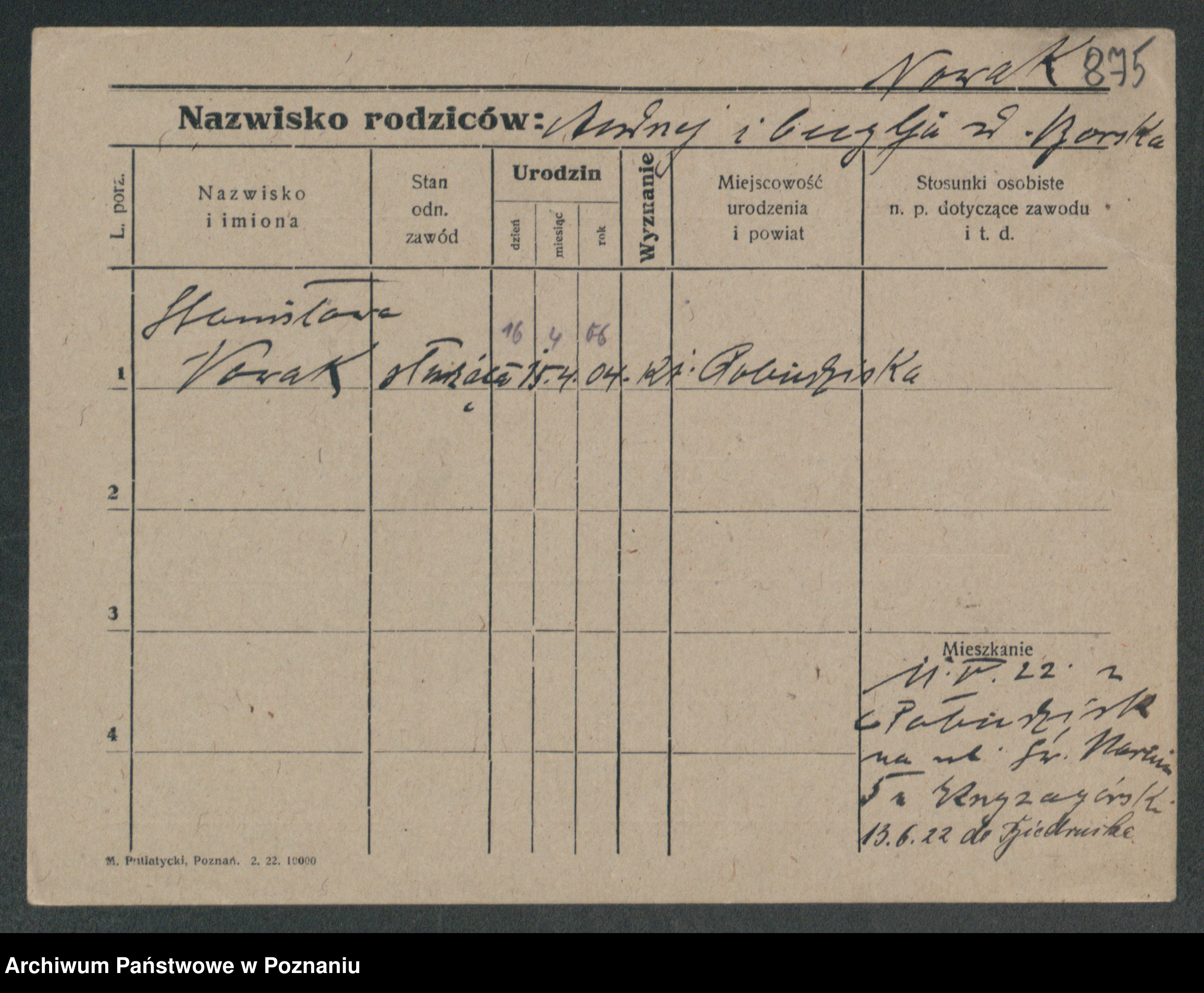 Podgląd karty osobowej dostępny jest po kliknięciu na nazwisko lub ikonkę karty. Można dokonywać powiększenia (ikony na górze) lub przechodzić między kolejnymi skanami (strzałki po bokach).