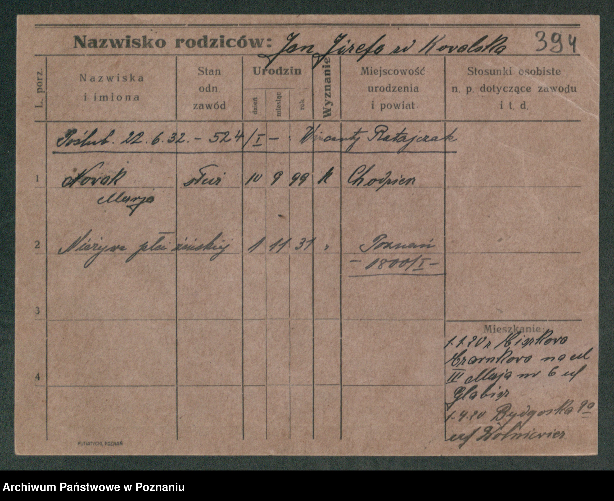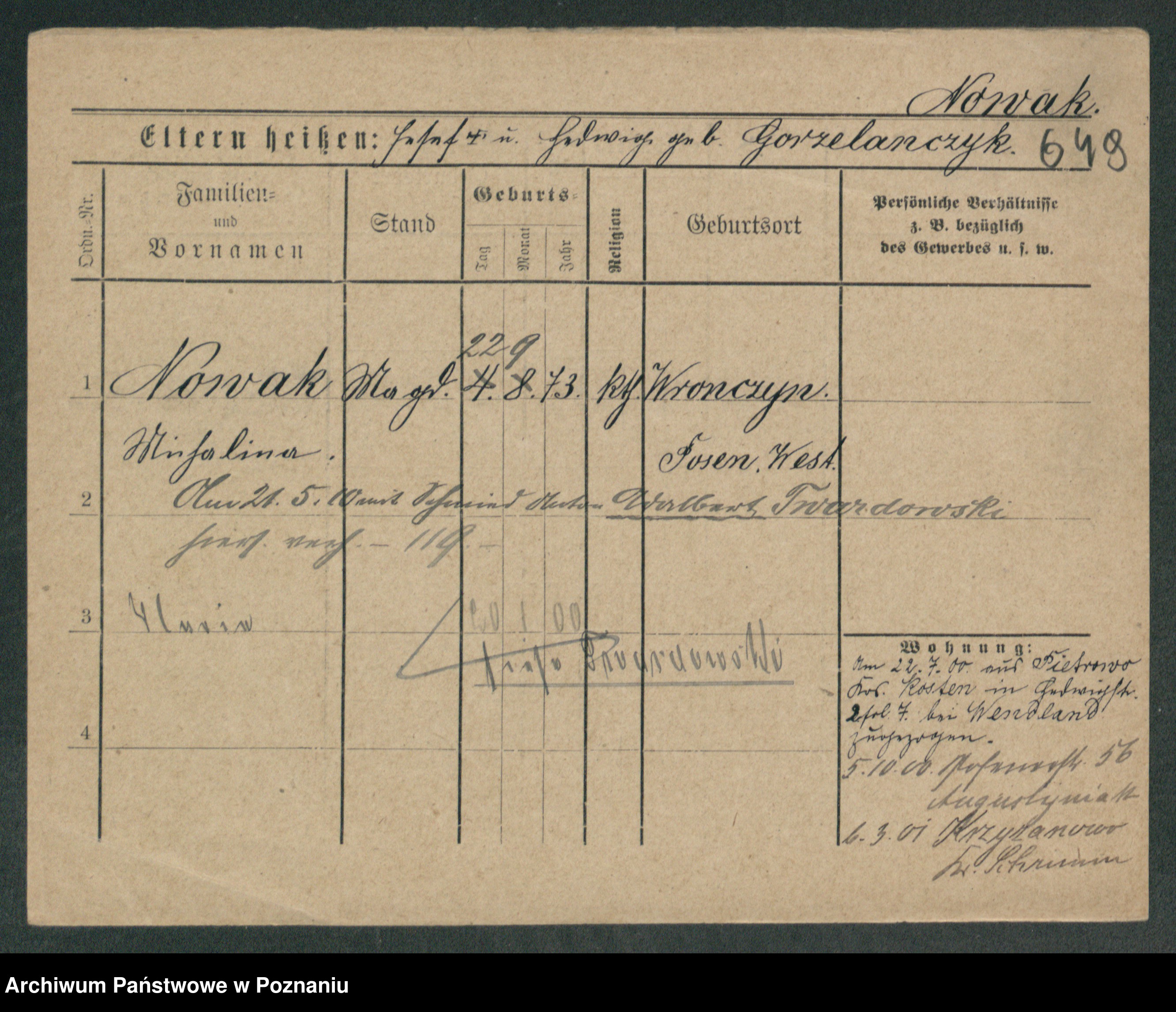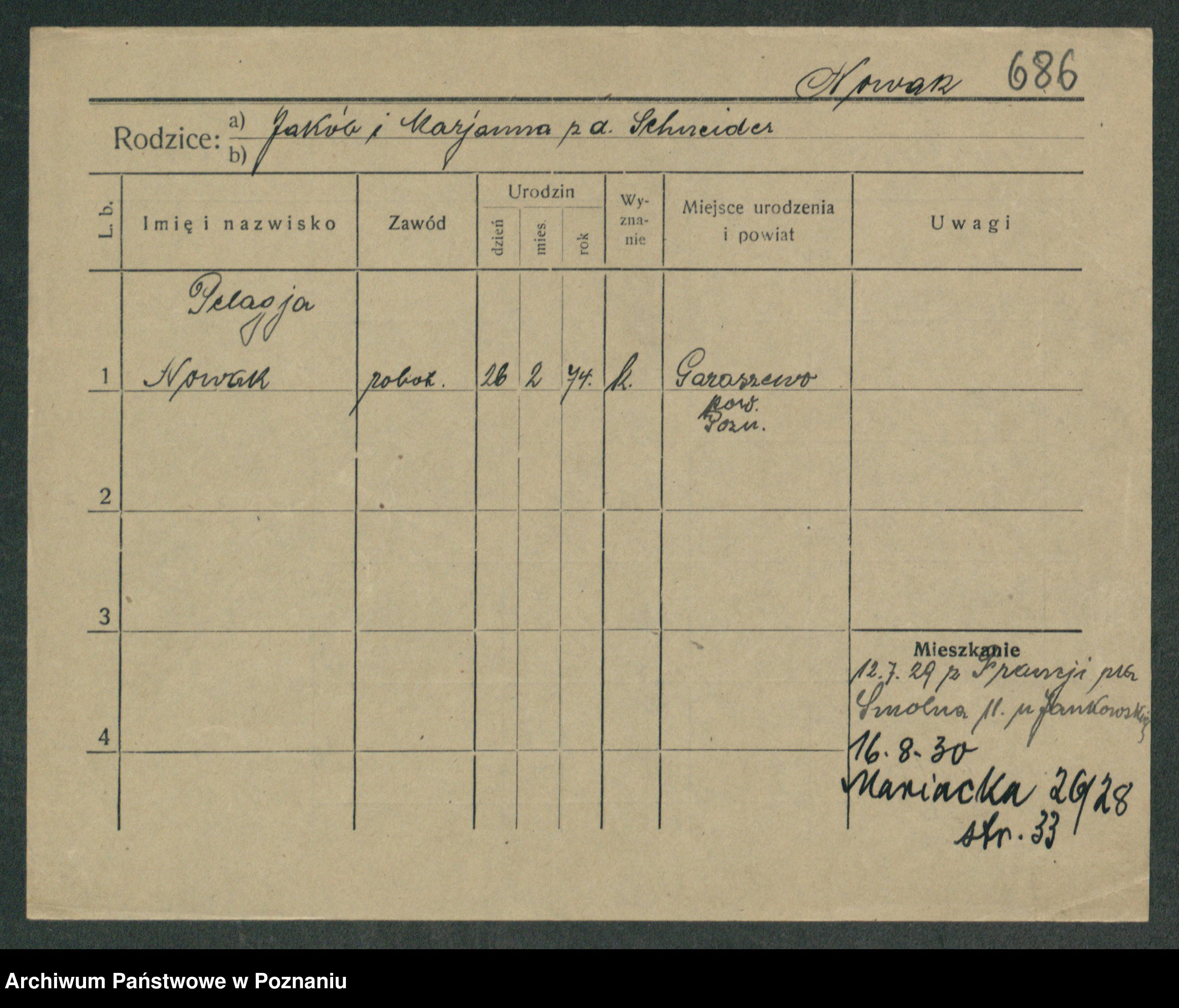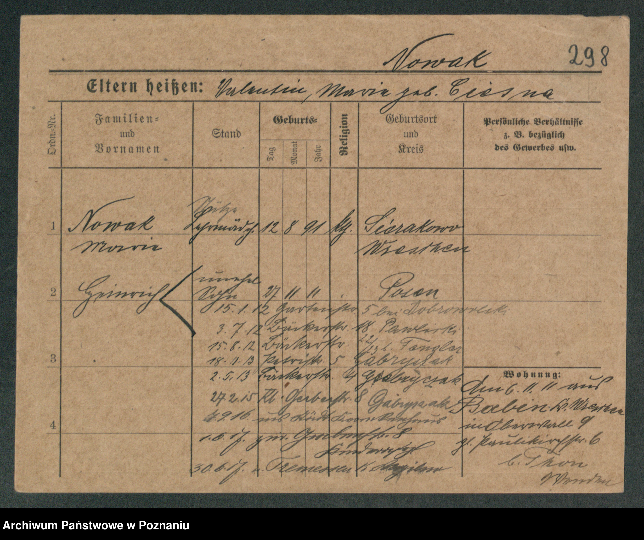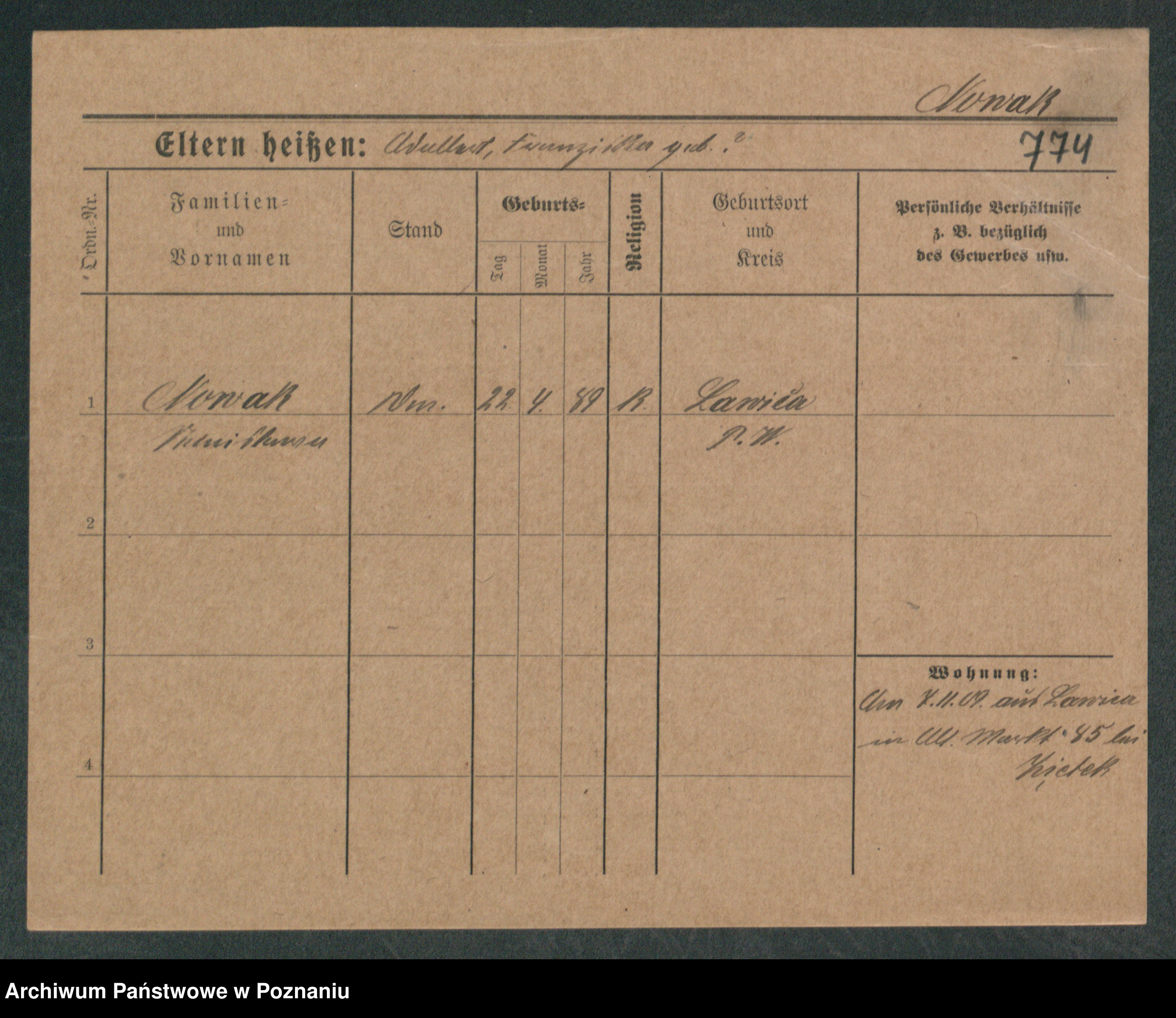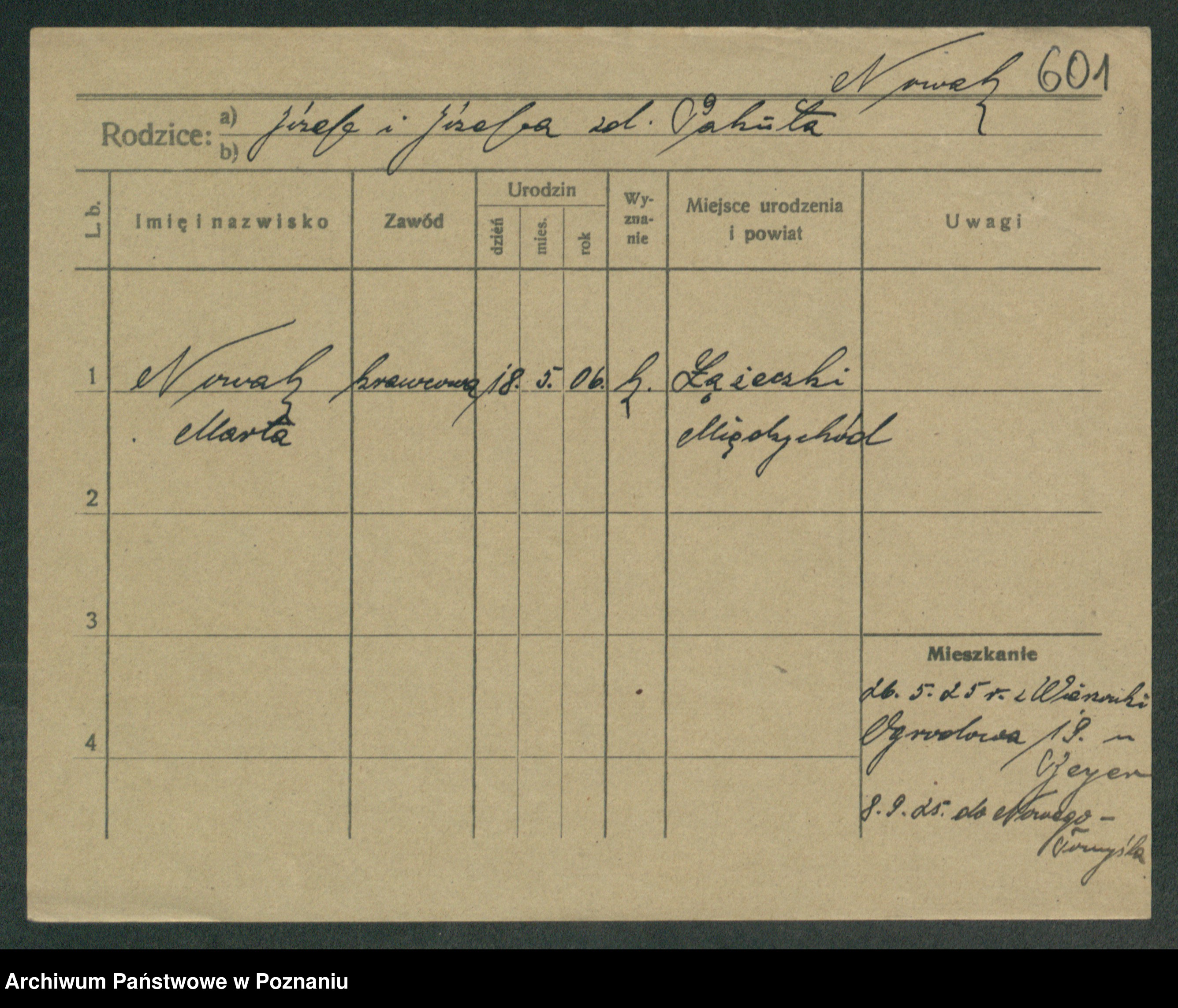 Podgląd karty osobowej dostępny jest po kliknięciu na nazwisko lub ikonkę karty. Można dokonywać powiększenia (ikony na górze) lub przechodzić między kolejnymi skanami (strzałki po bokach).