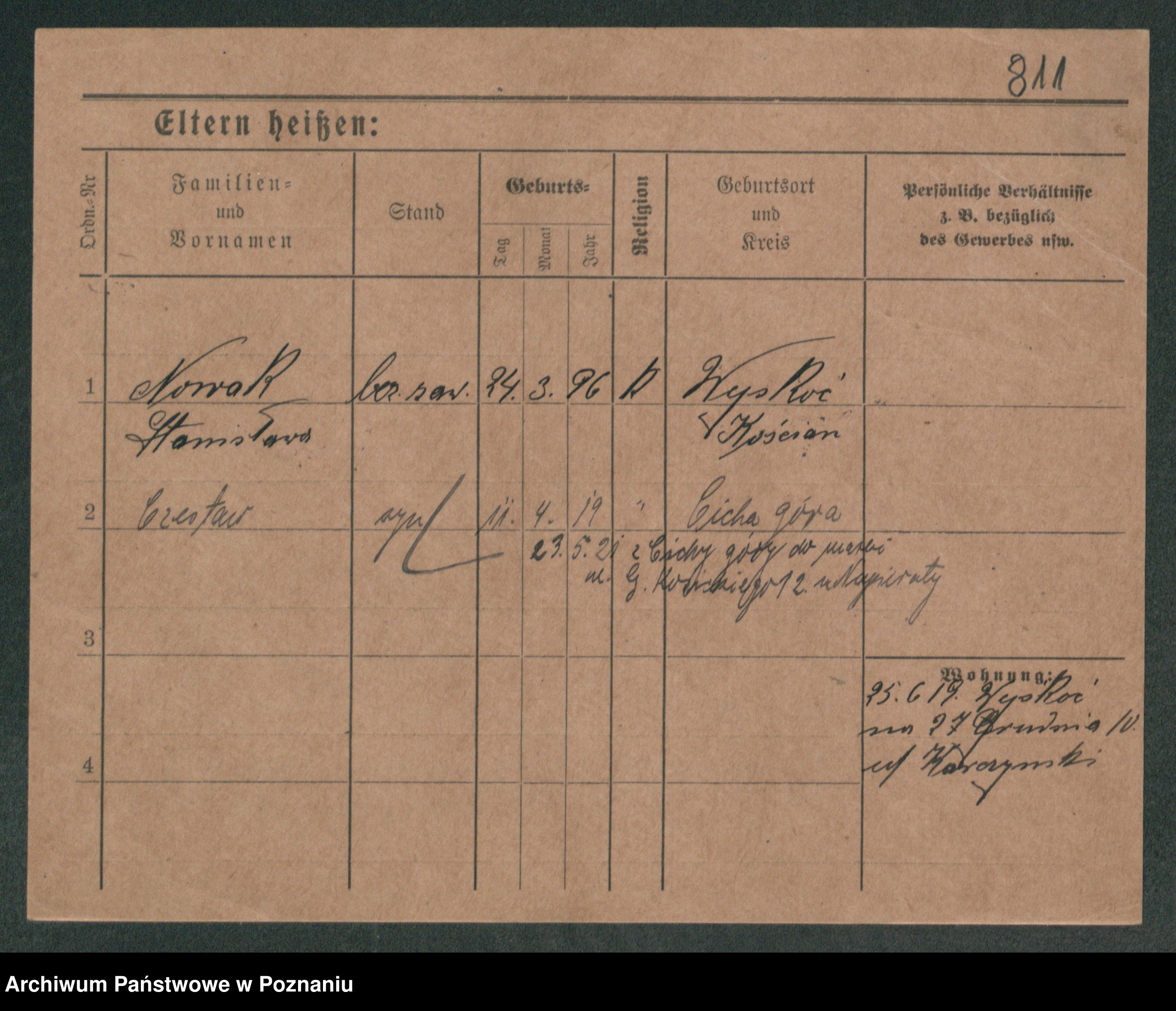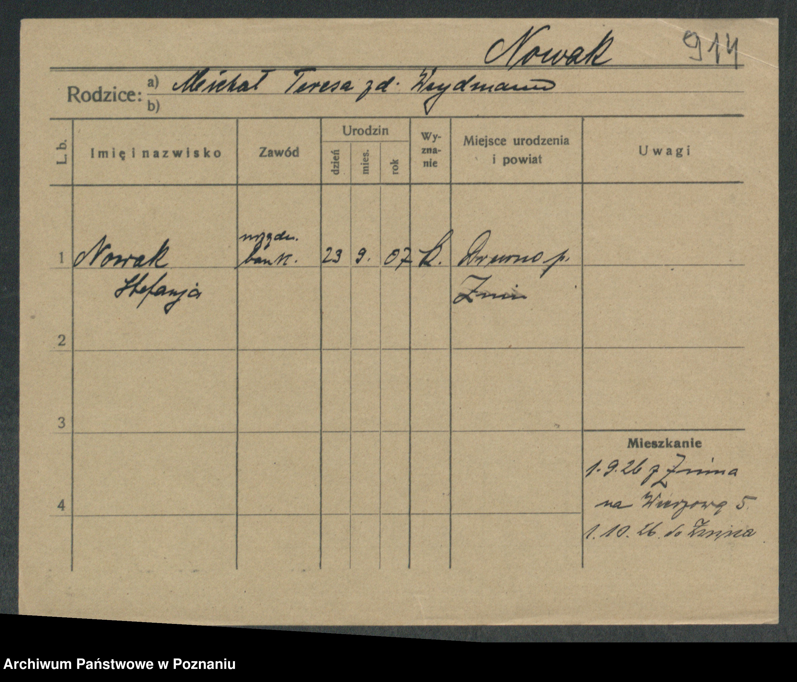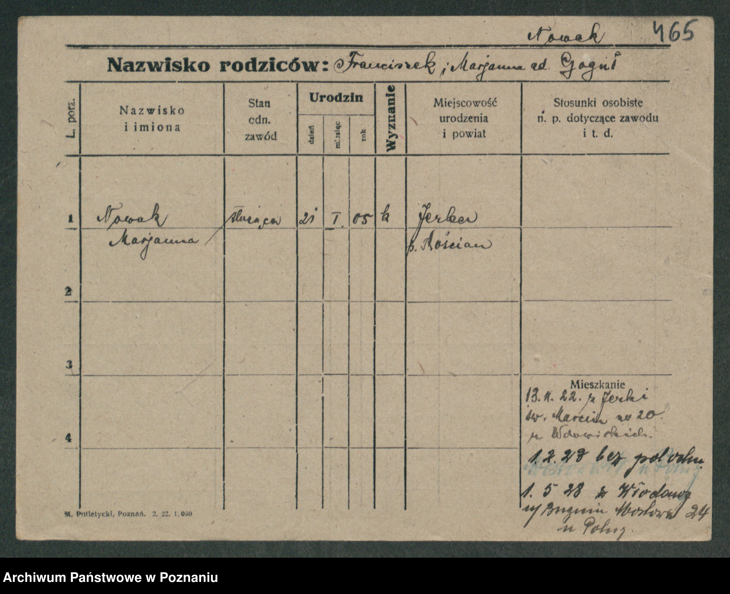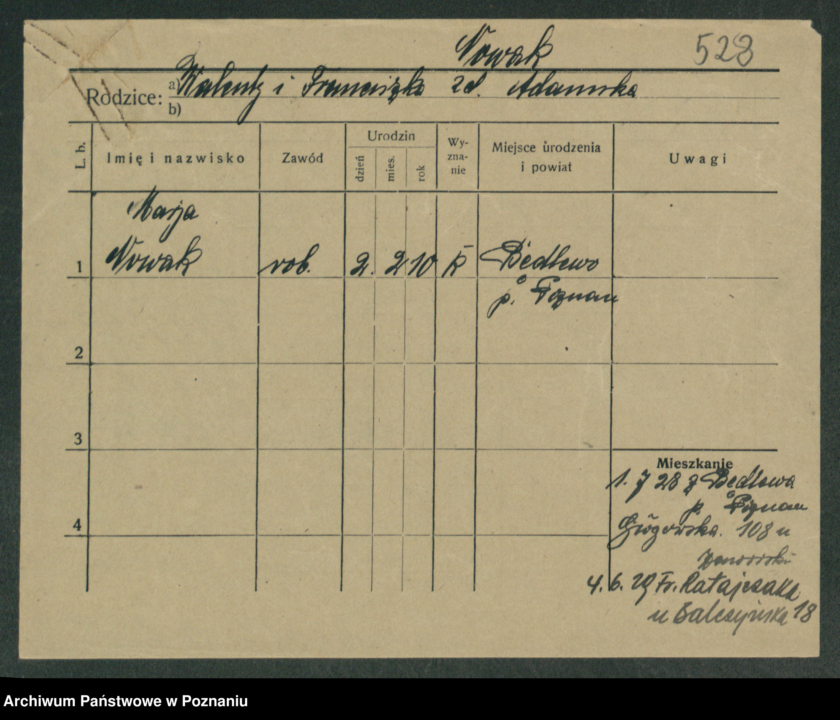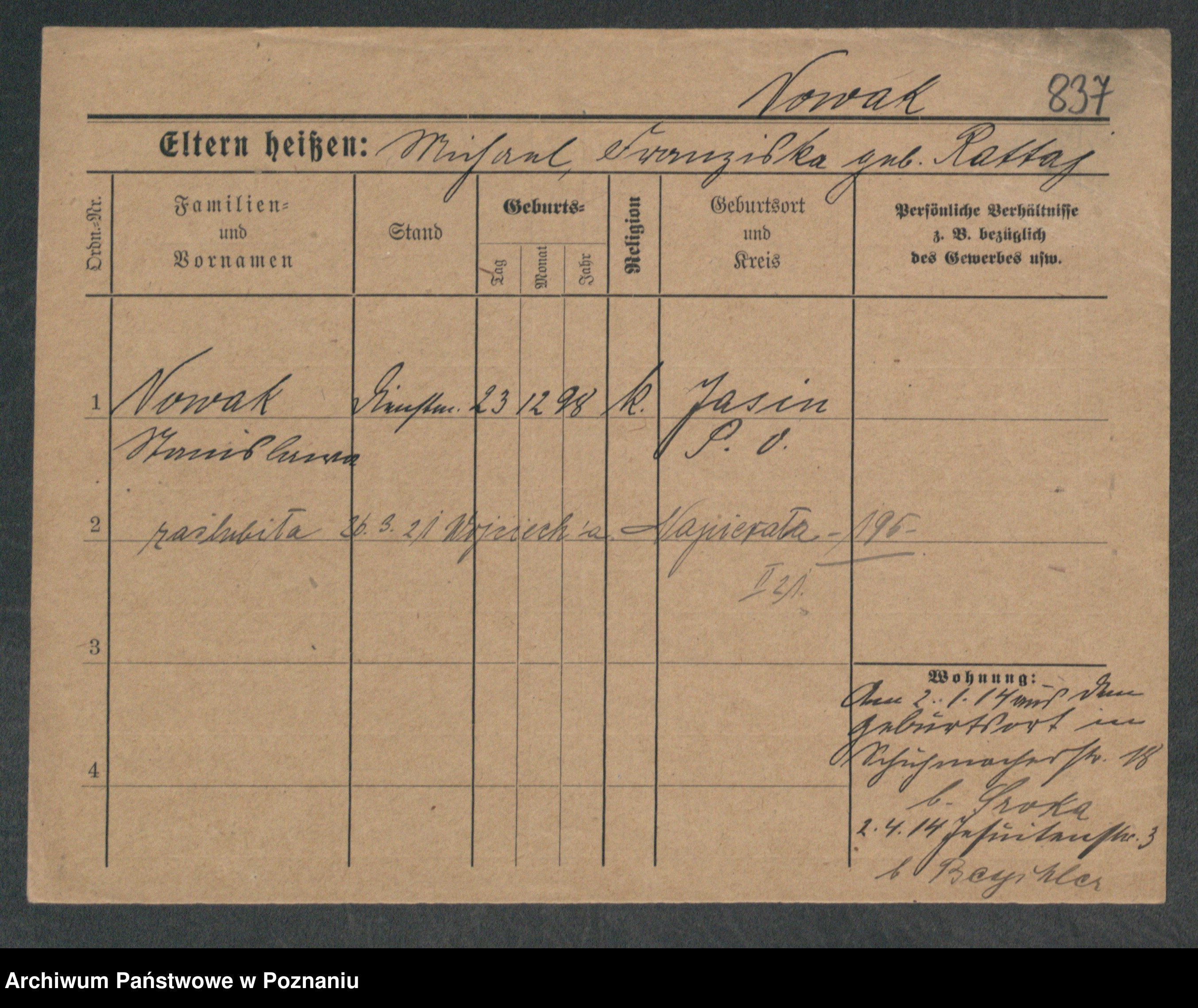 Podgląd karty osobowej dostępny jest po kliknięciu na nazwisko lub ikonkę karty. Można dokonywać powiększenia (ikony na górze) lub przechodzić między kolejnymi skanami (strzałki po bokach).