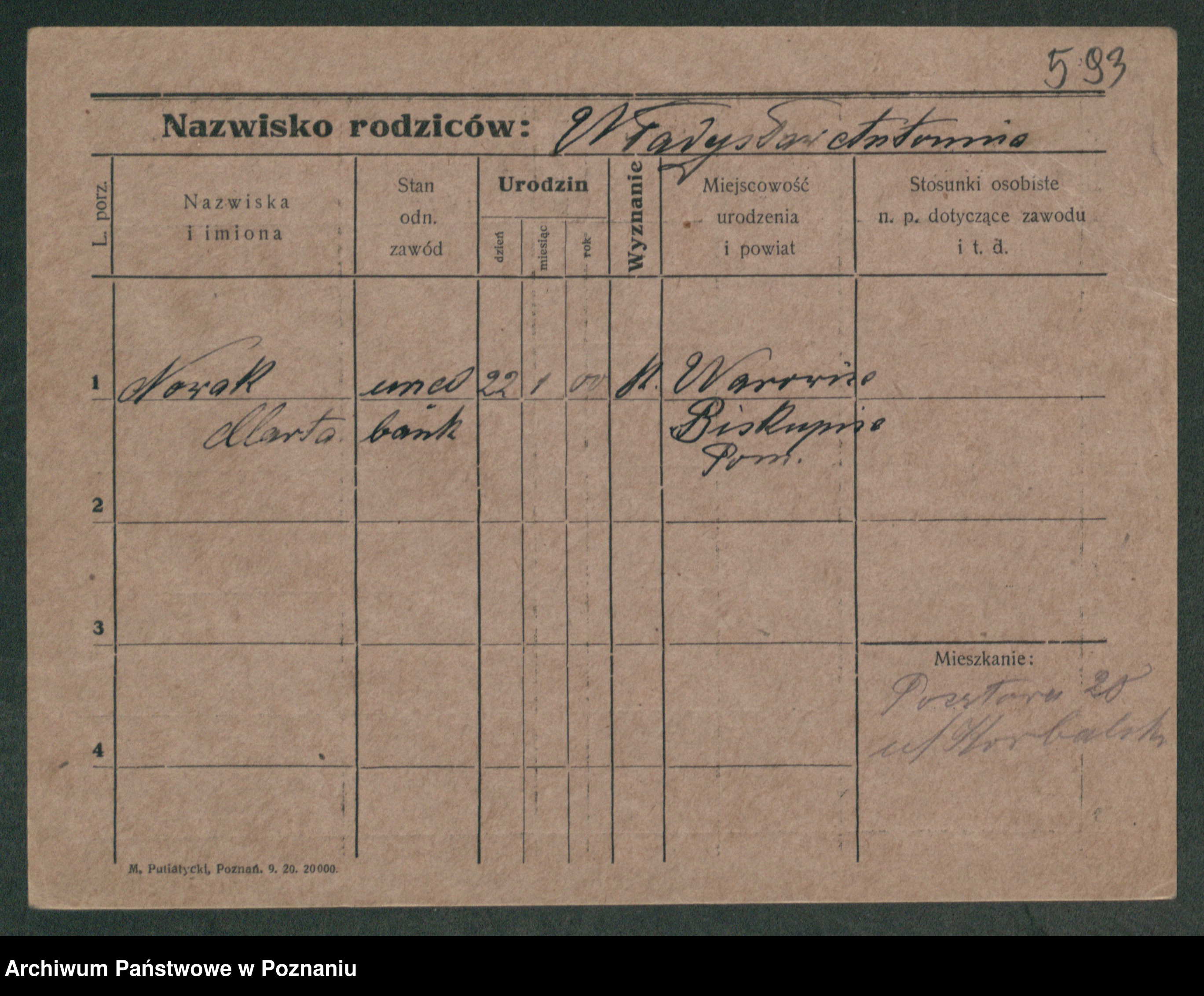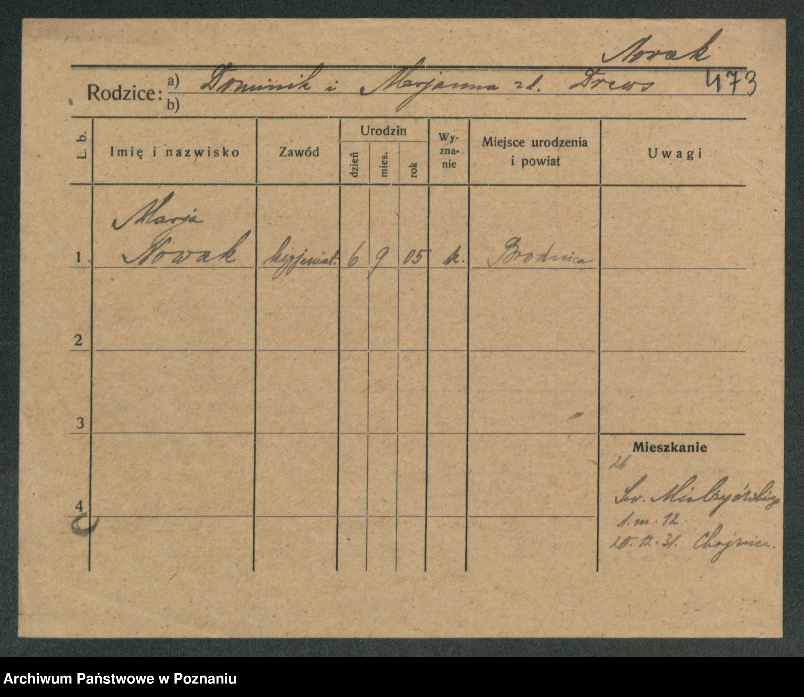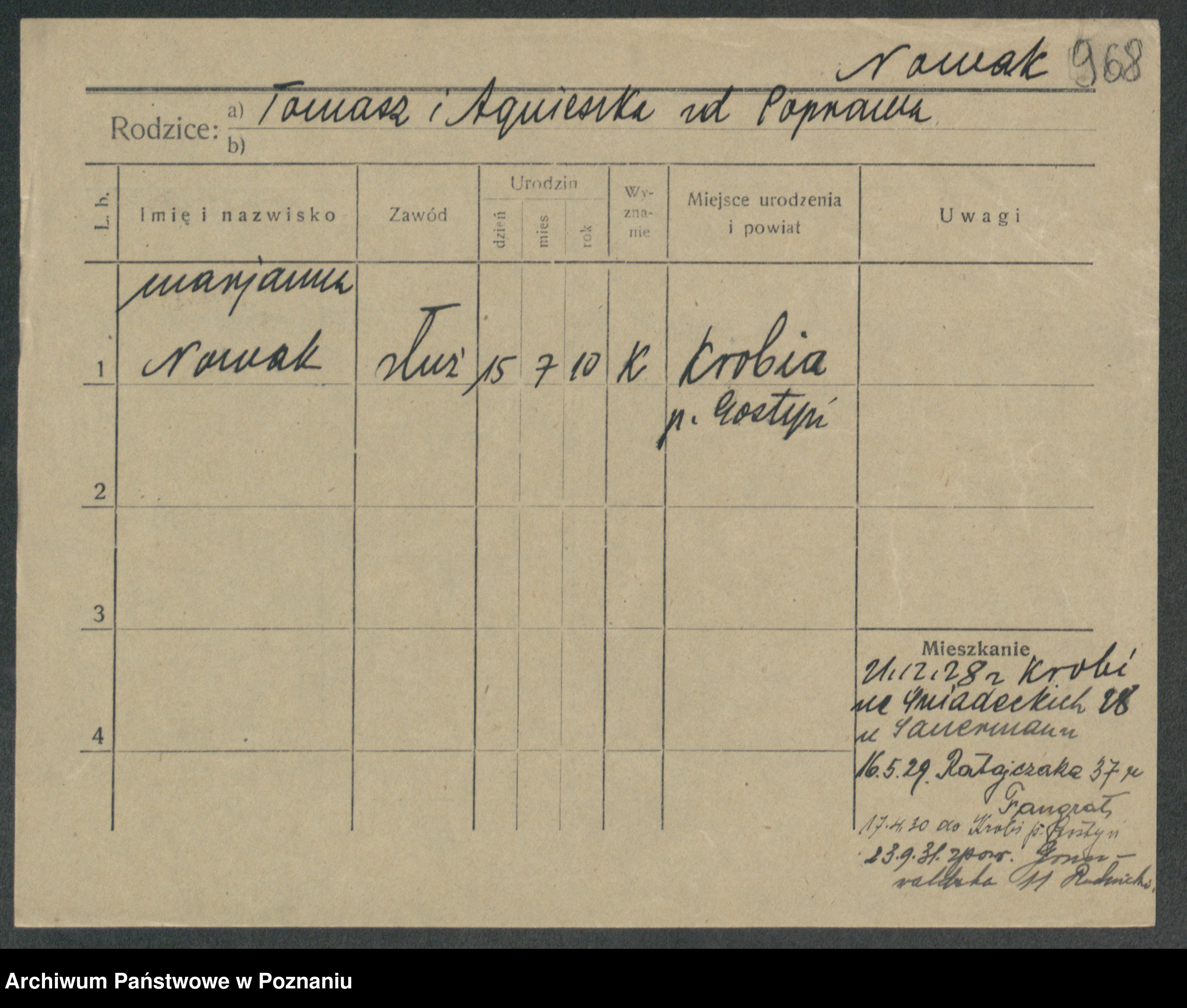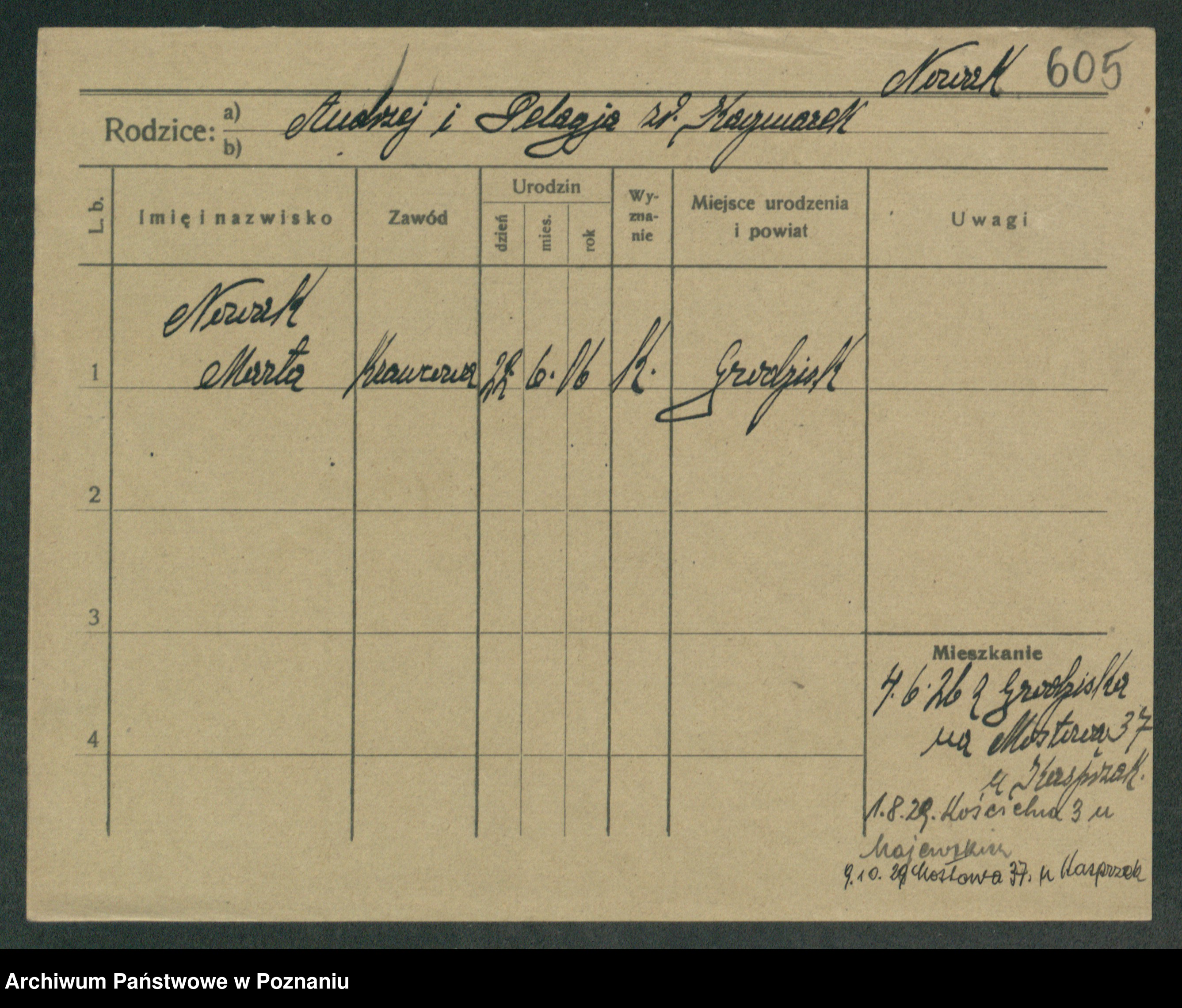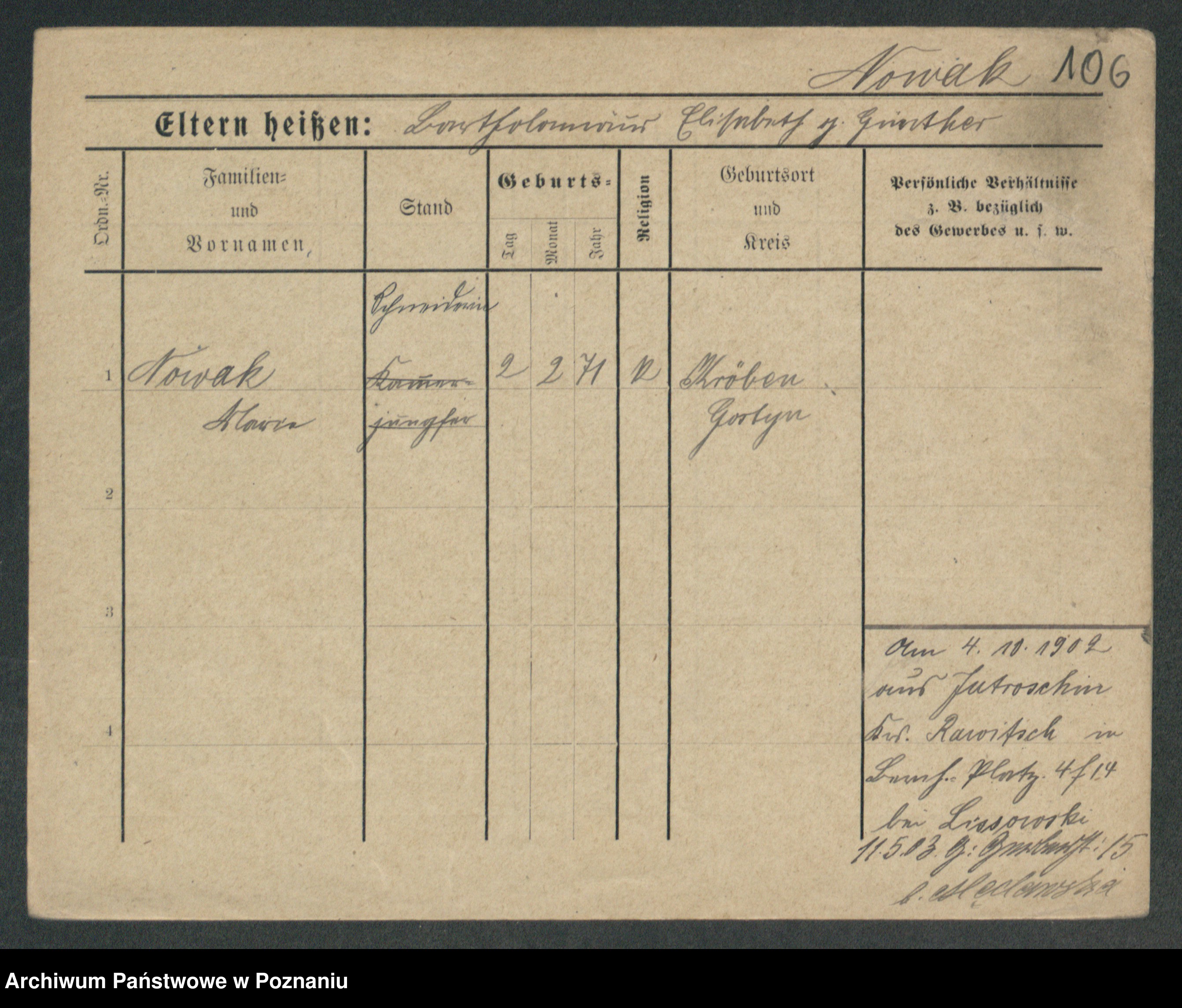 Podgląd karty osobowej dostępny jest po kliknięciu na nazwisko lub ikonkę karty. Można dokonywać powiększenia (ikony na górze) lub przechodzić między kolejnymi skanami (strzałki po bokach).