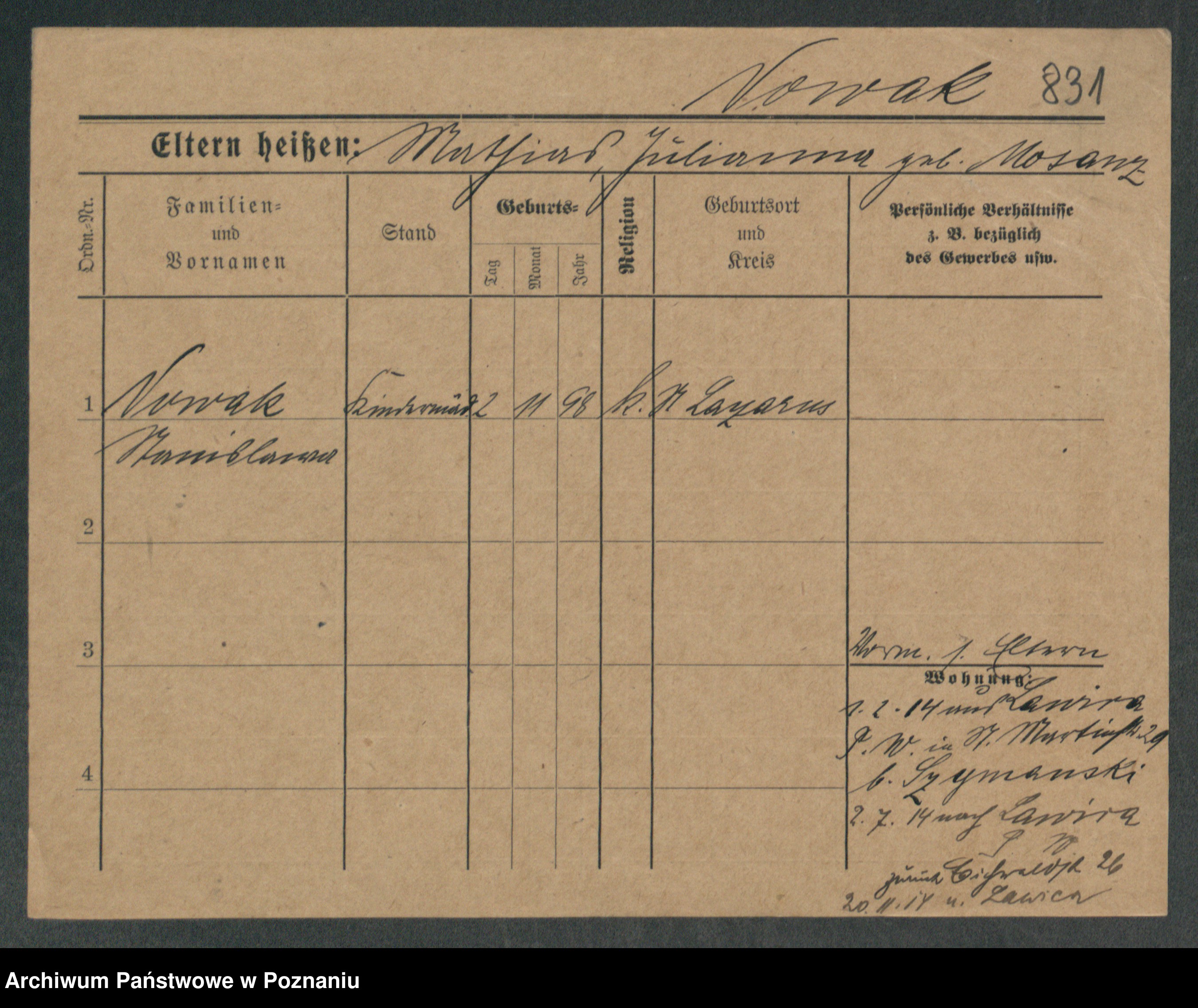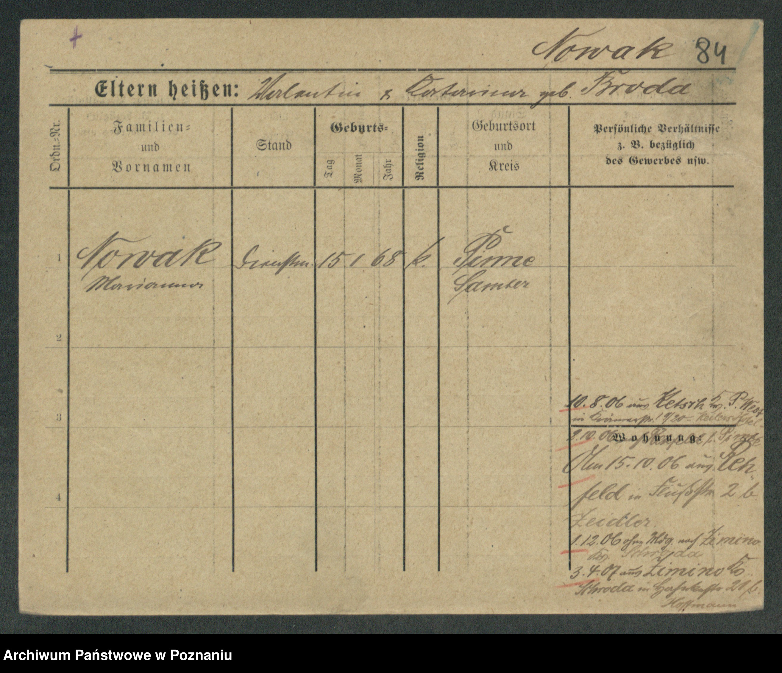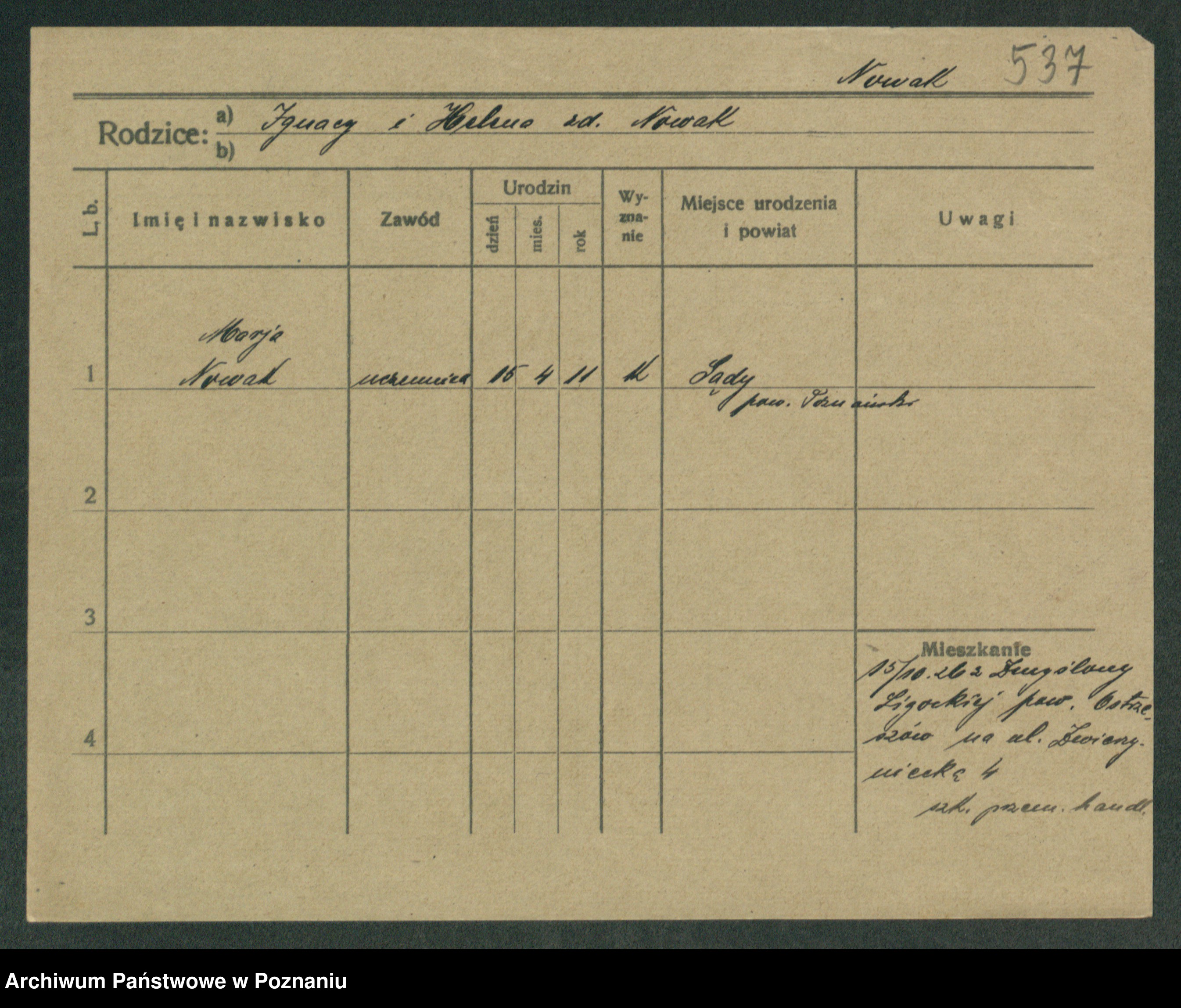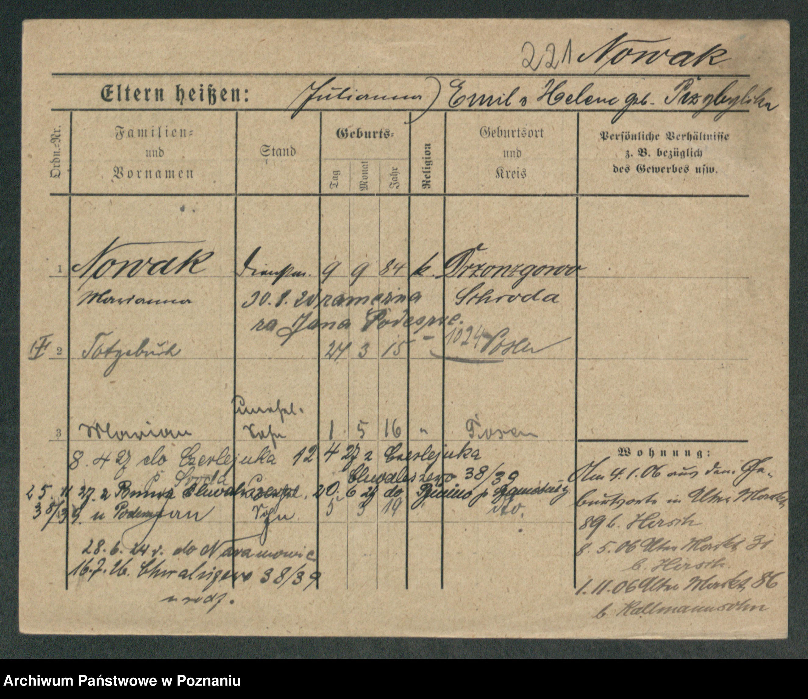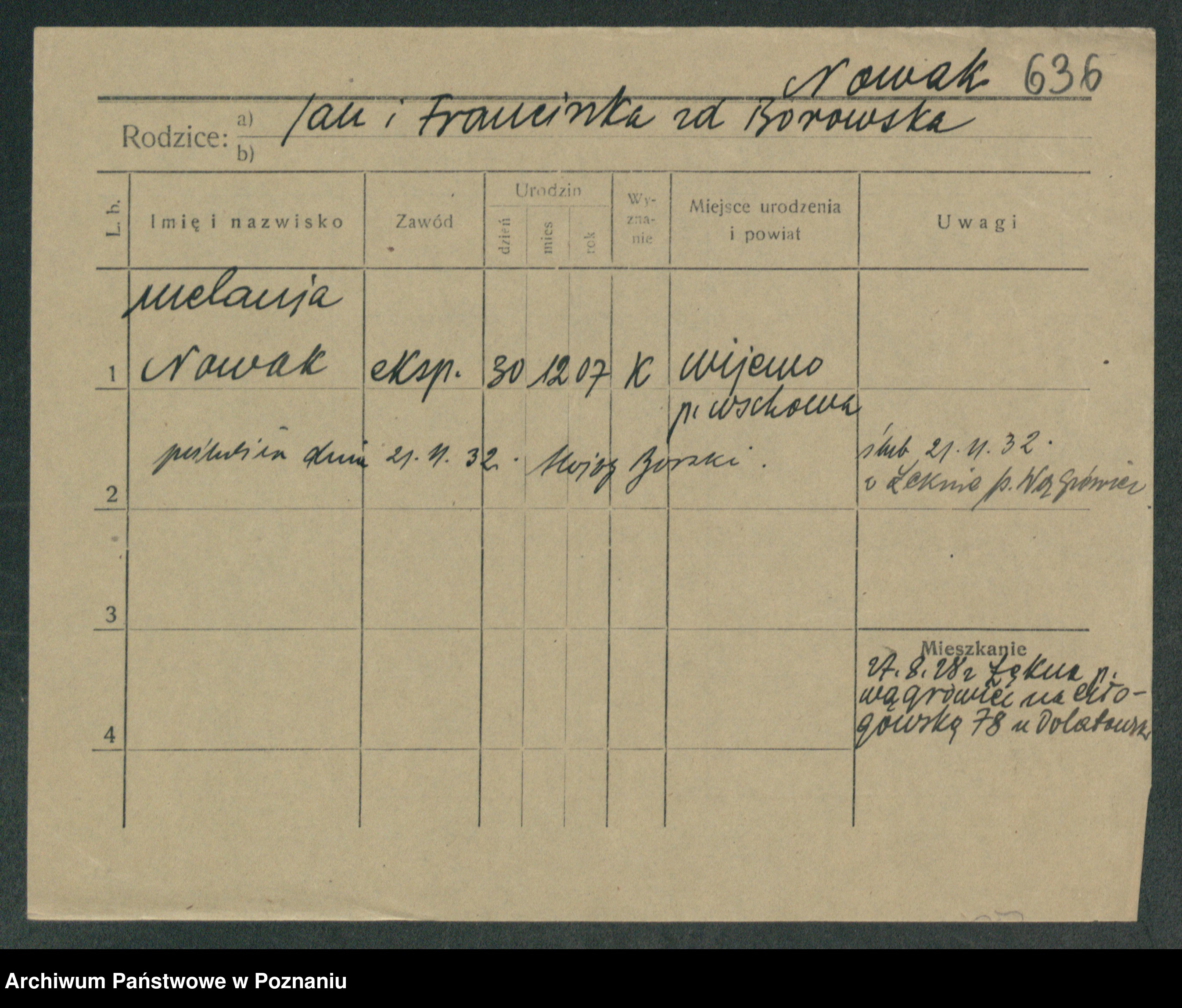 Podgląd karty osobowej dostępny jest po kliknięciu na nazwisko lub ikonkę karty. Można dokonywać powiększenia (ikony na górze) lub przechodzić między kolejnymi skanami (strzałki po bokach).