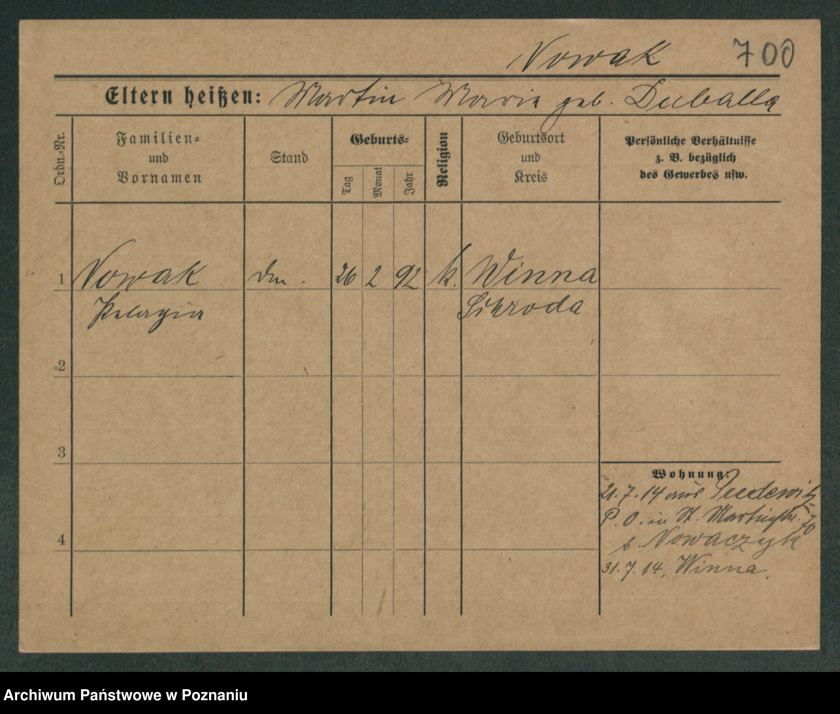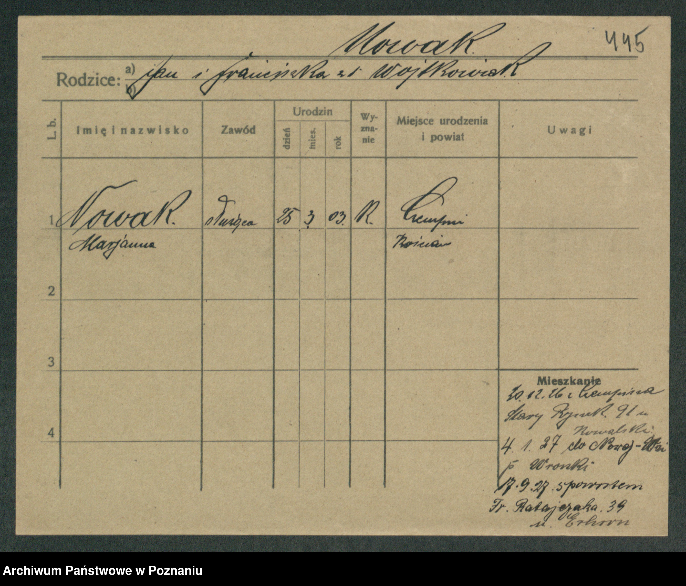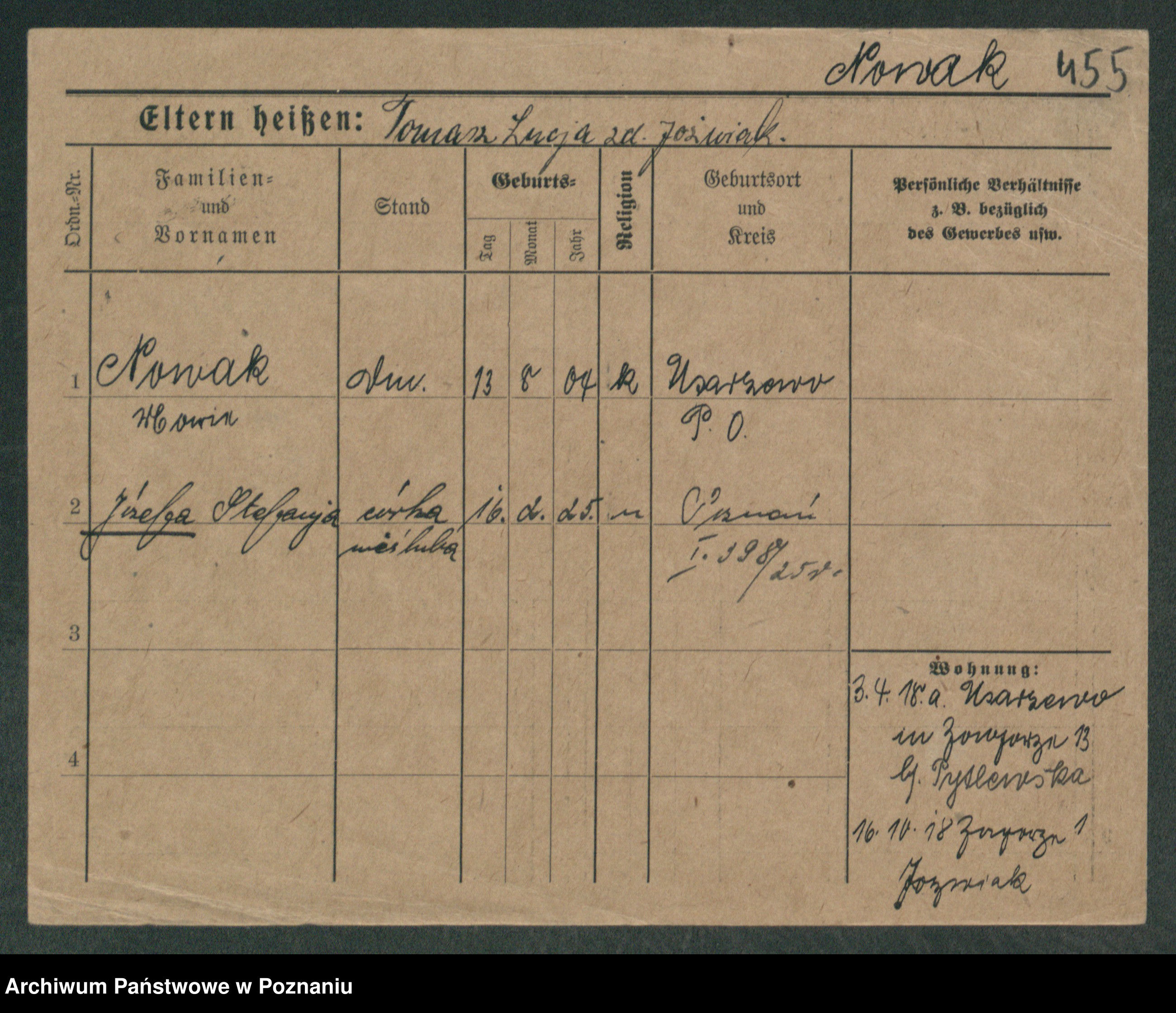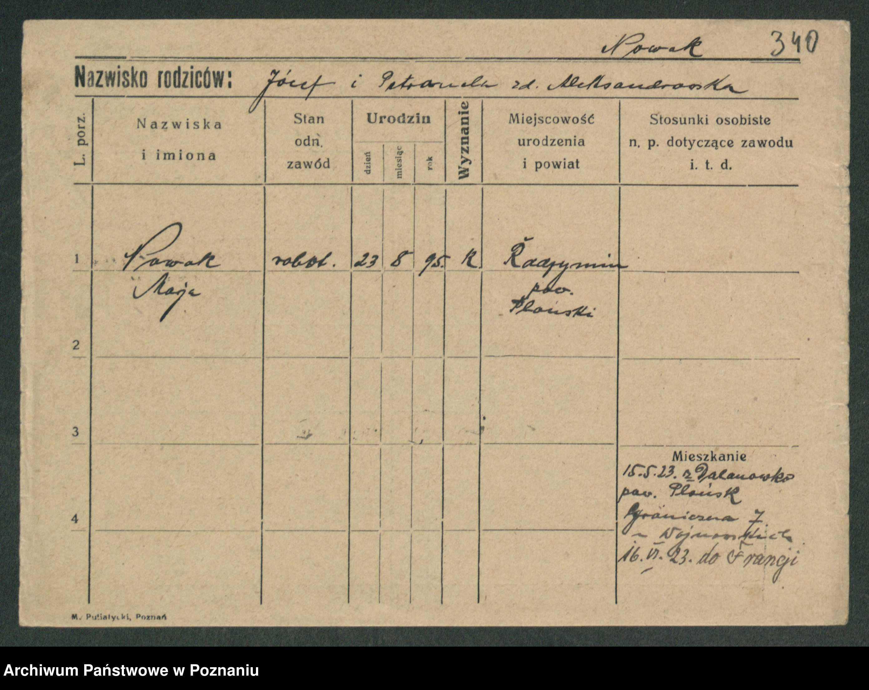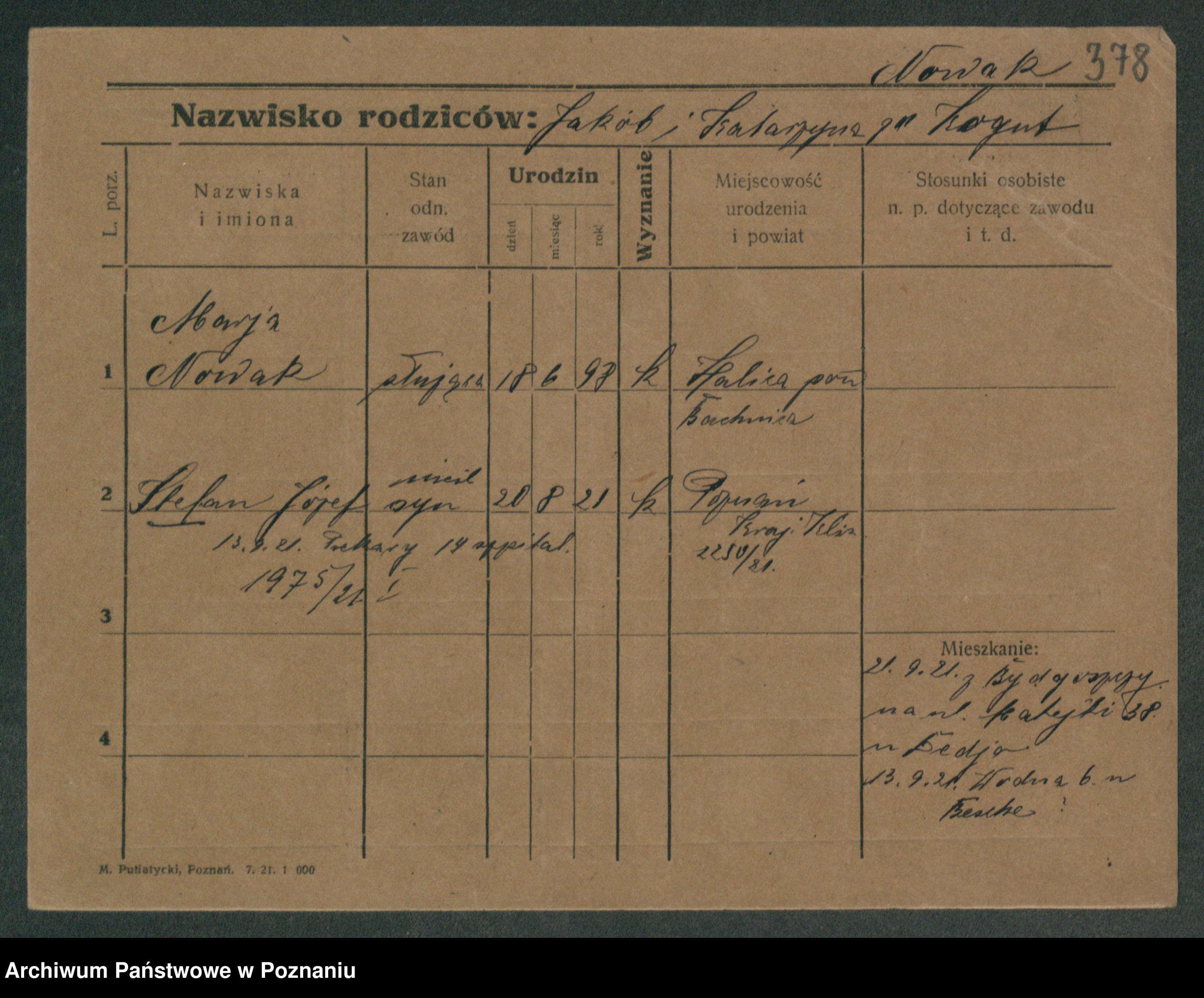 Podgląd karty osobowej dostępny jest po kliknięciu na nazwisko lub ikonkę karty. Można dokonywać powiększenia (ikony na górze) lub przechodzić między kolejnymi skanami (strzałki po bokach).