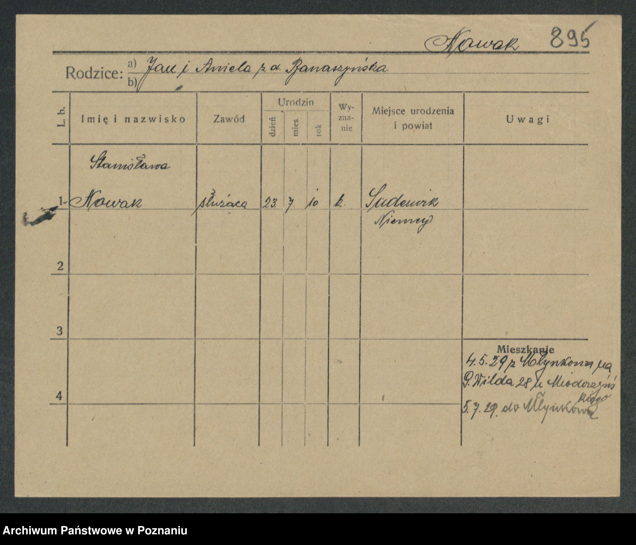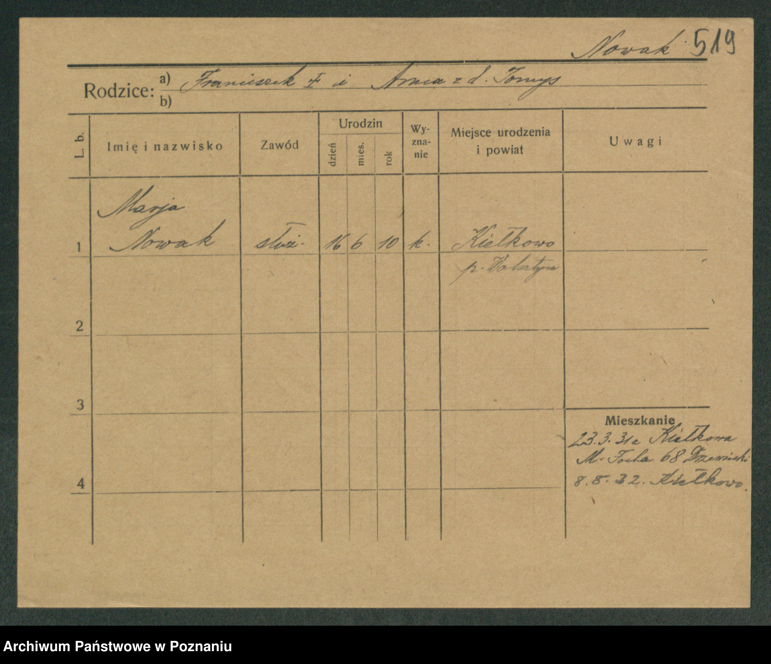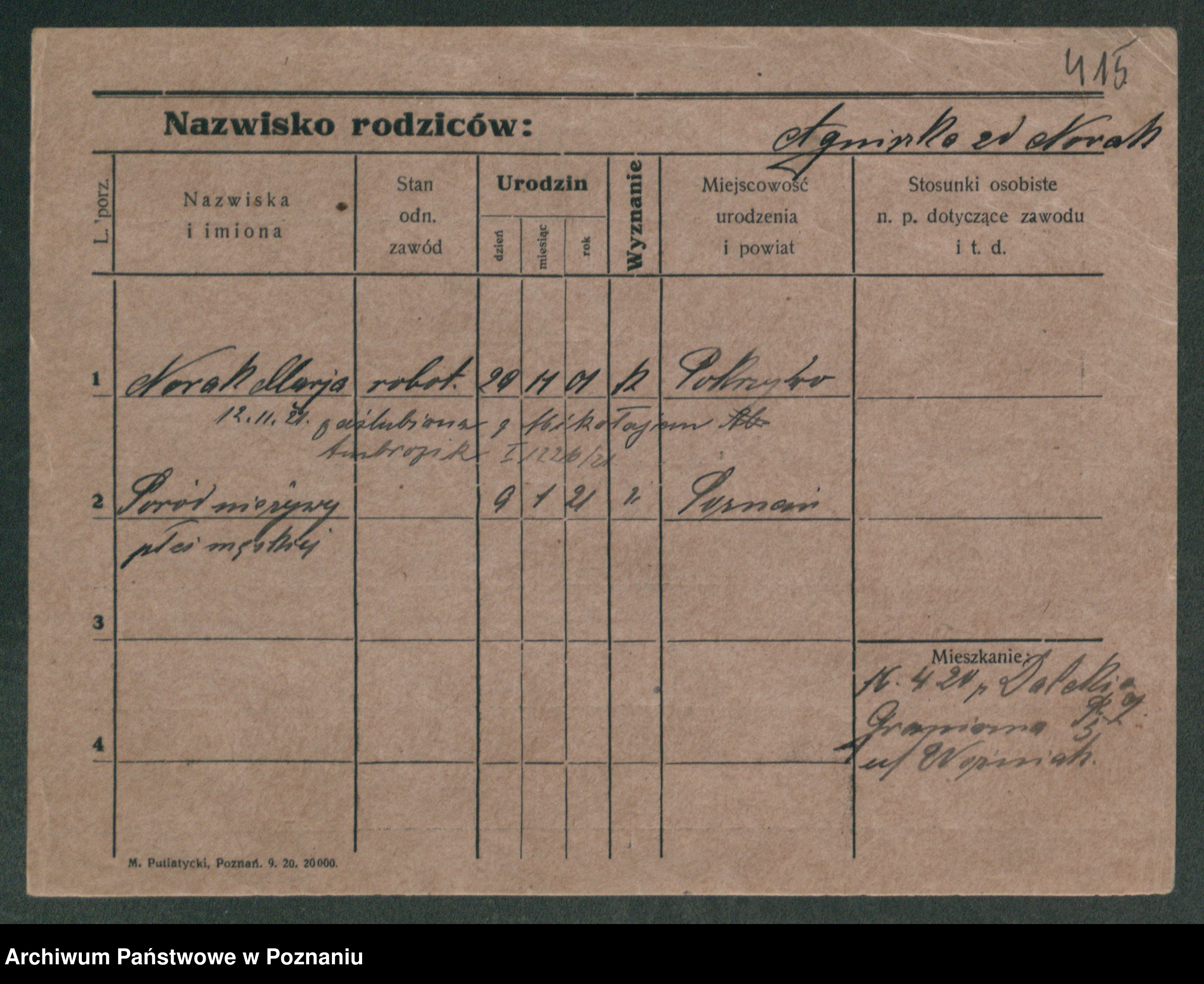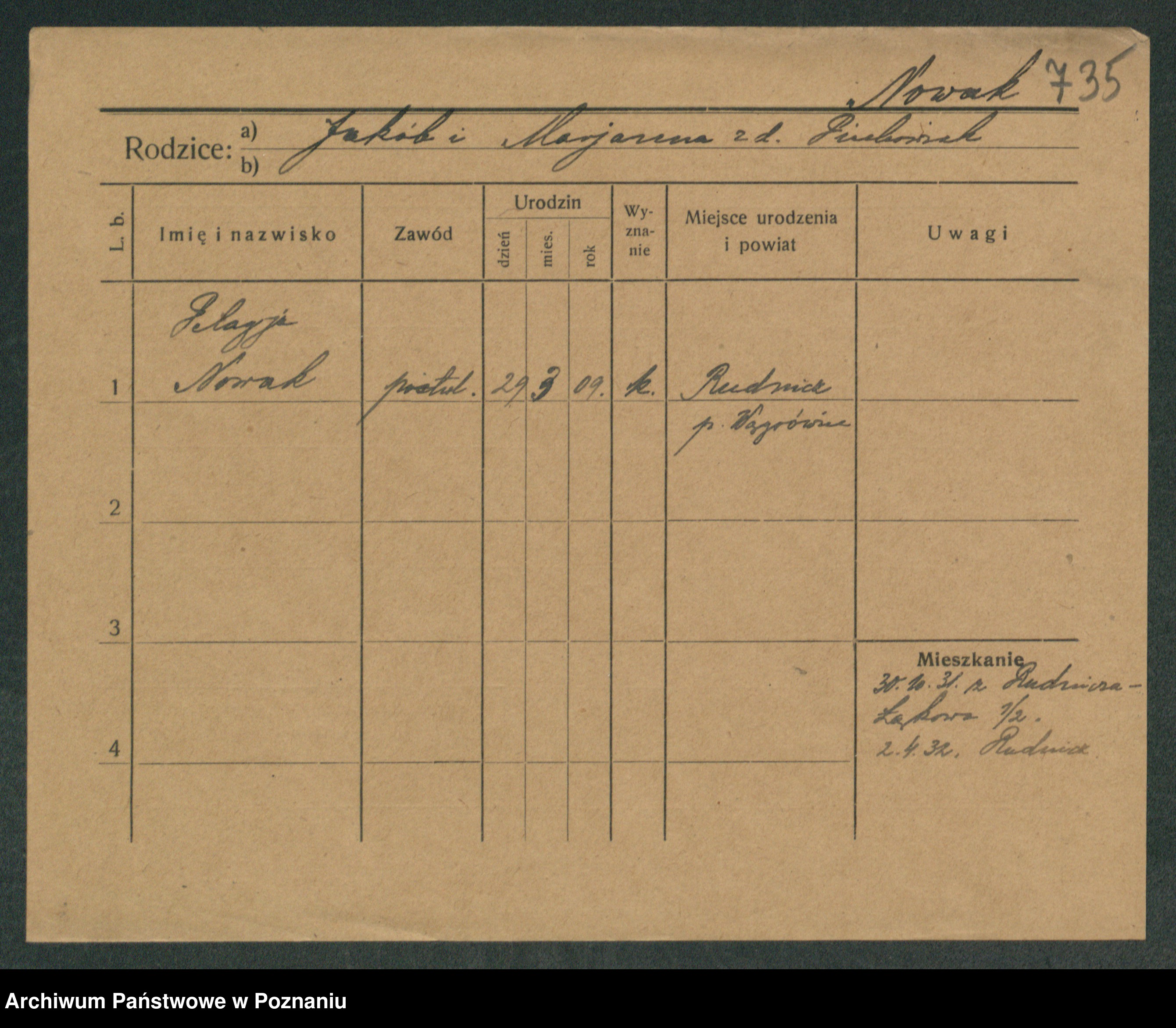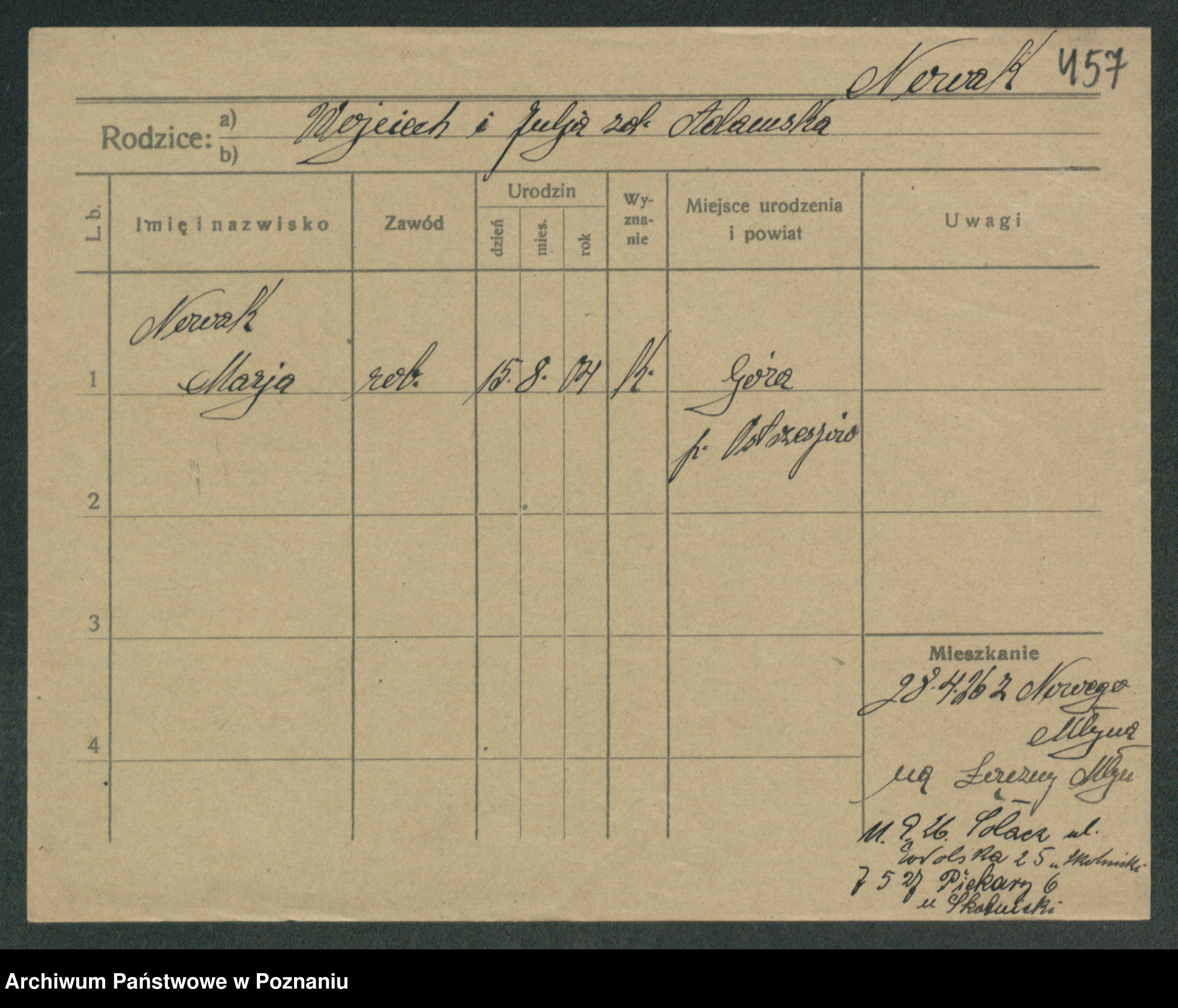 Podgląd karty osobowej dostępny jest po kliknięciu na nazwisko lub ikonkę karty. Można dokonywać powiększenia (ikony na górze) lub przechodzić między kolejnymi skanami (strzałki po bokach).