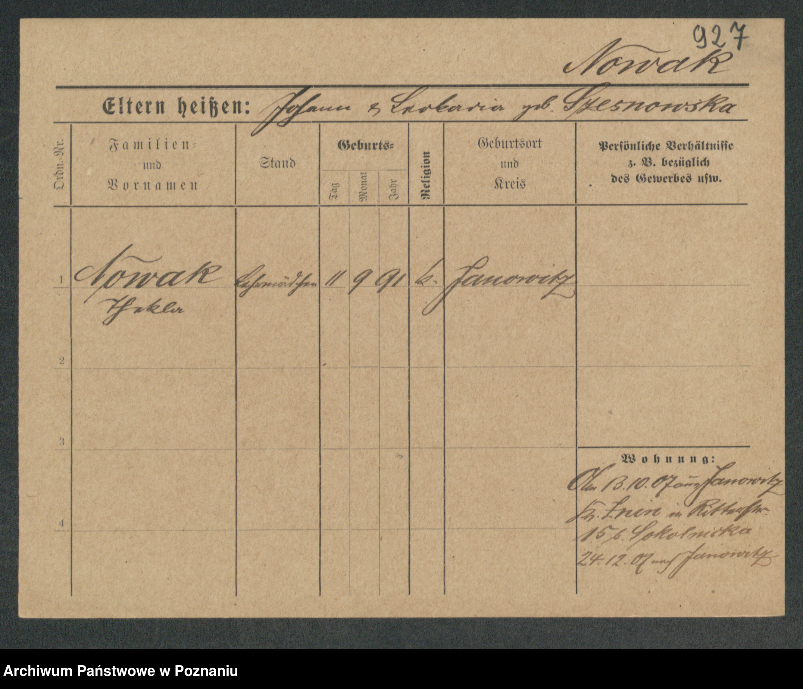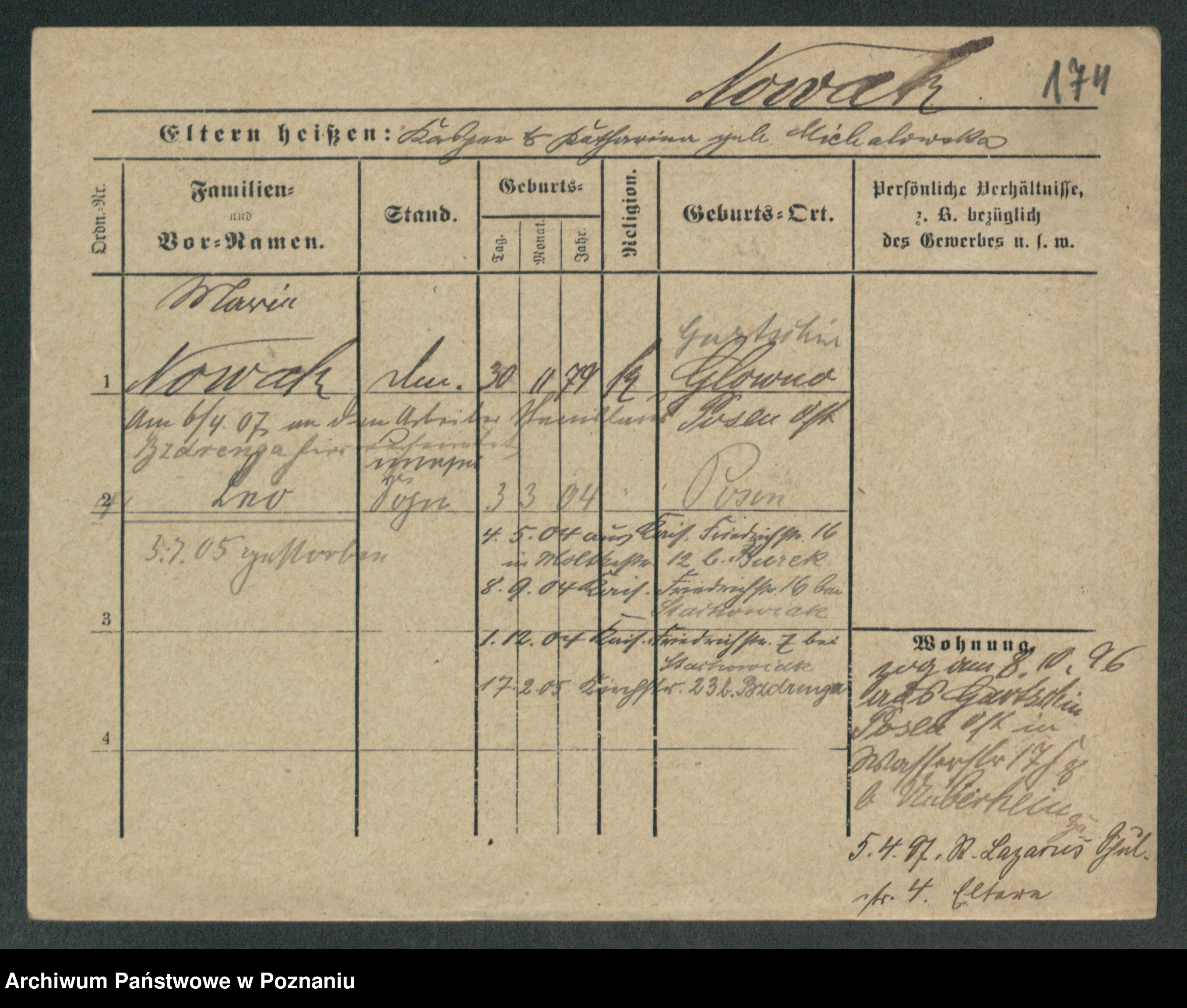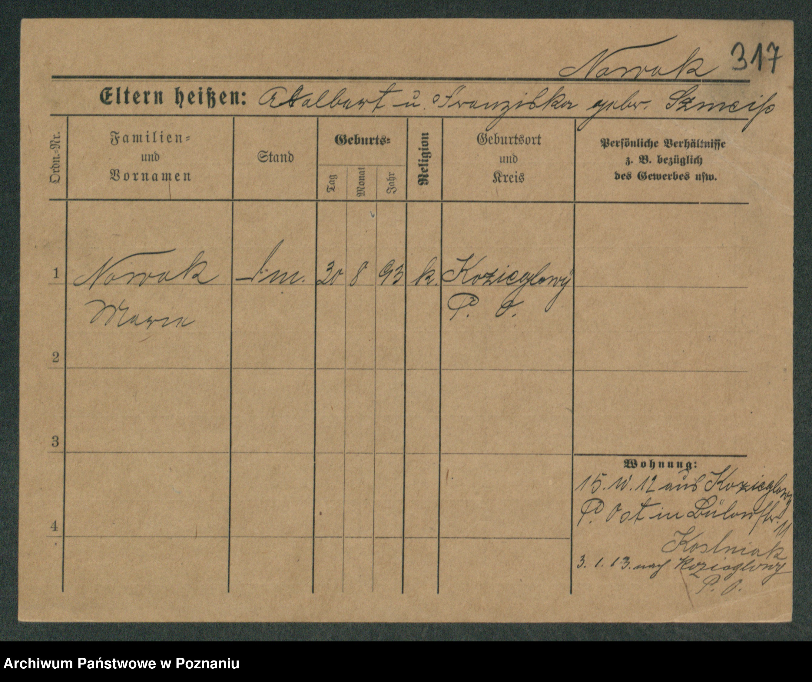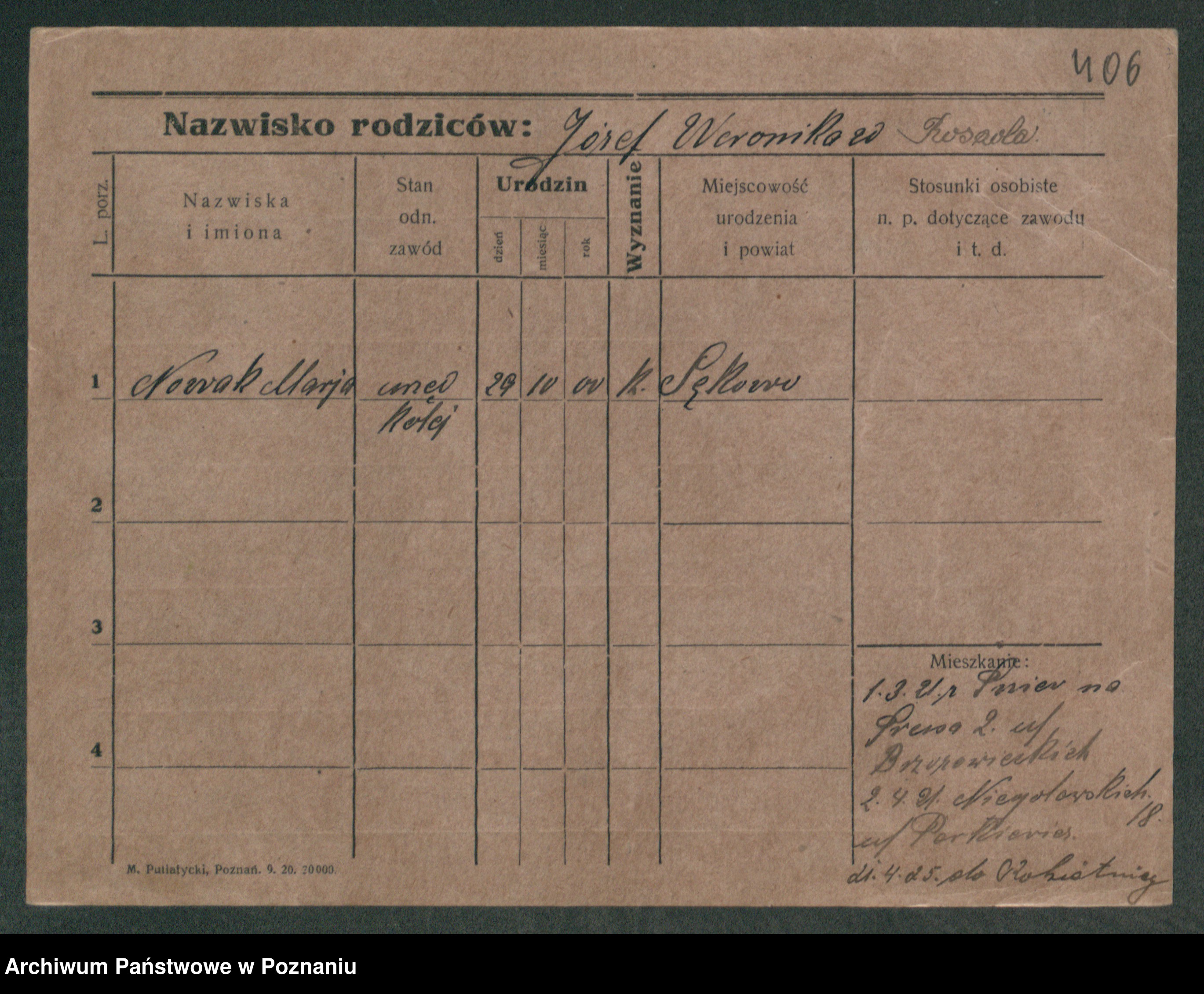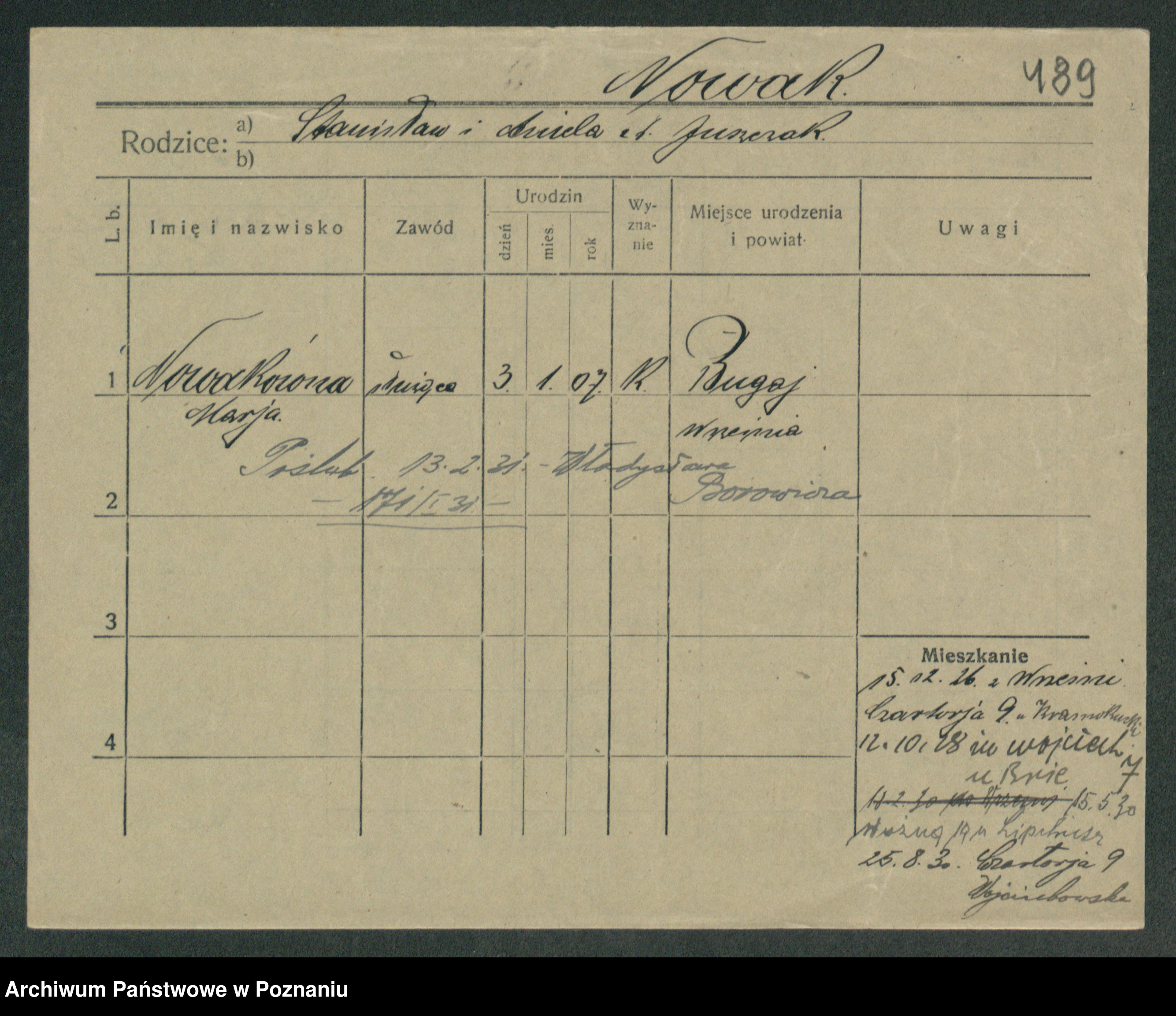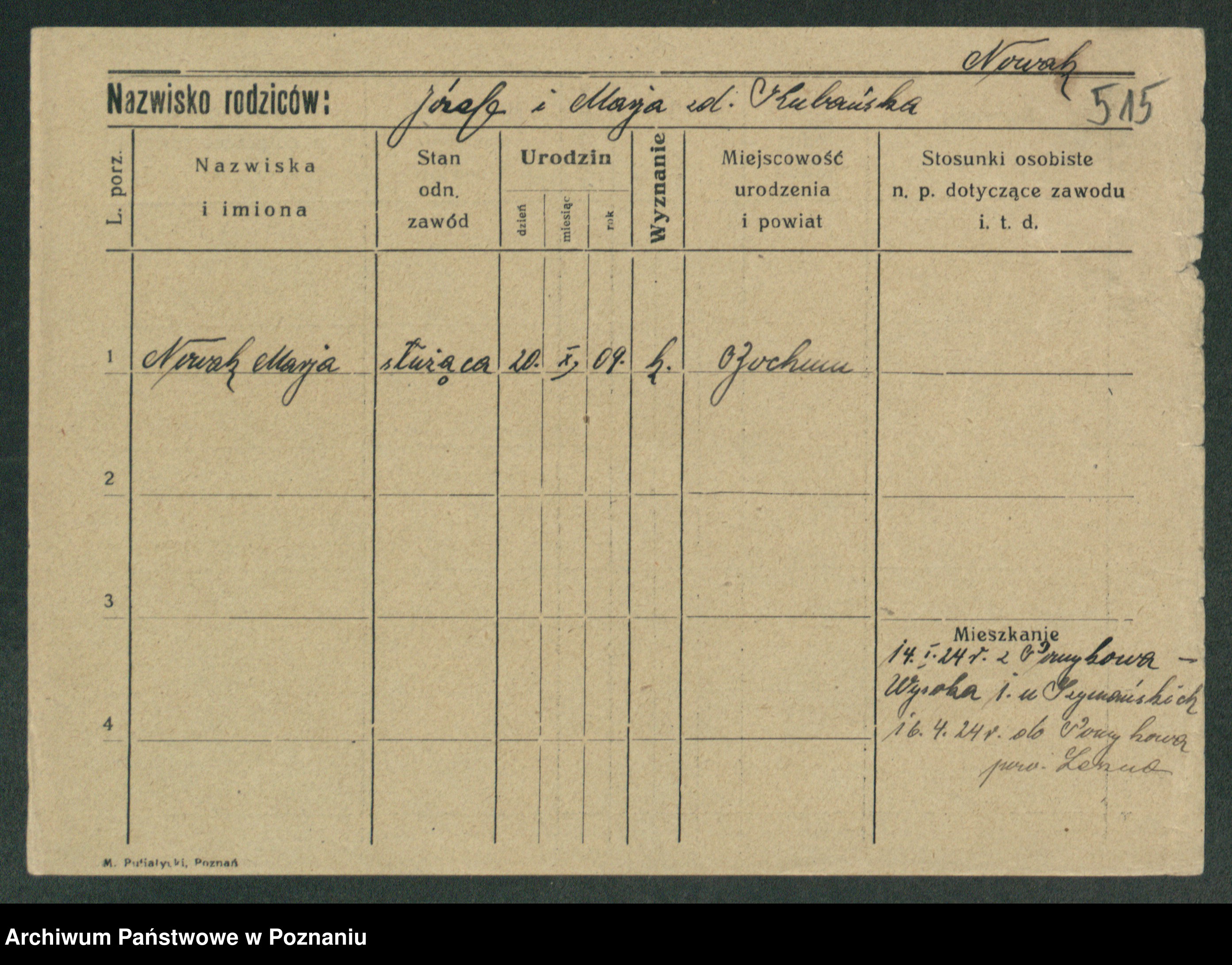 Podgląd karty osobowej dostępny jest po kliknięciu na nazwisko lub ikonkę karty. Można dokonywać powiększenia (ikony na górze) lub przechodzić między kolejnymi skanami (strzałki po bokach).