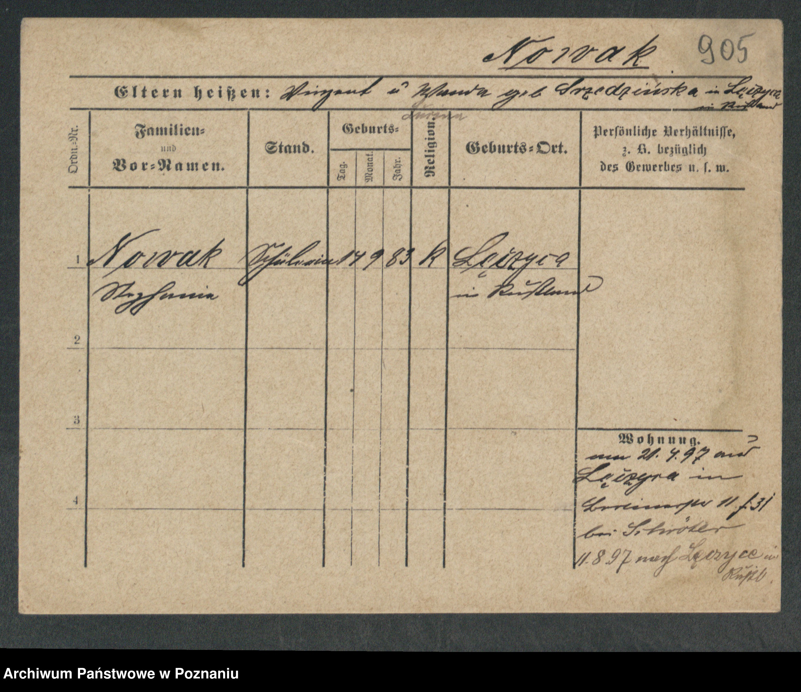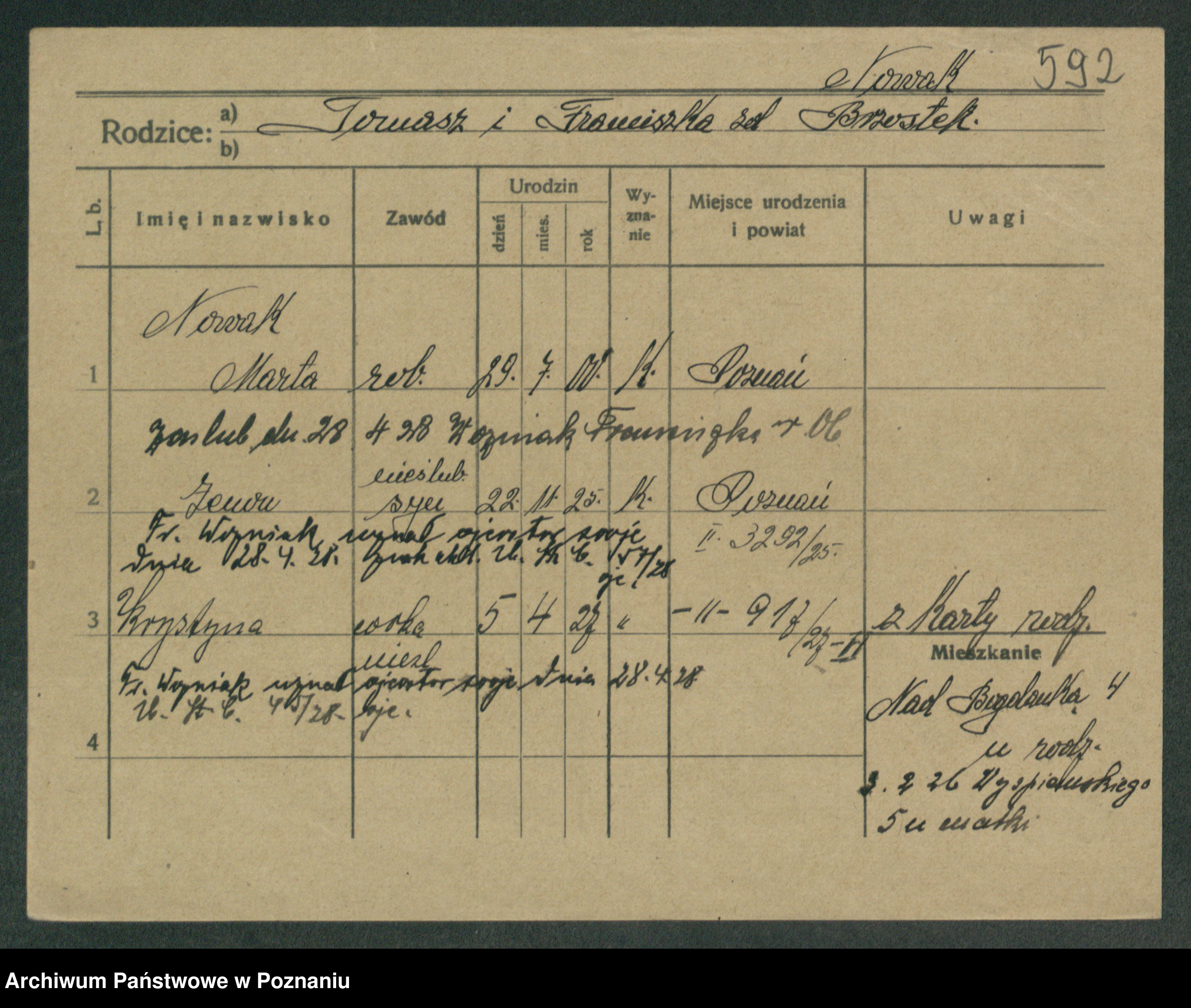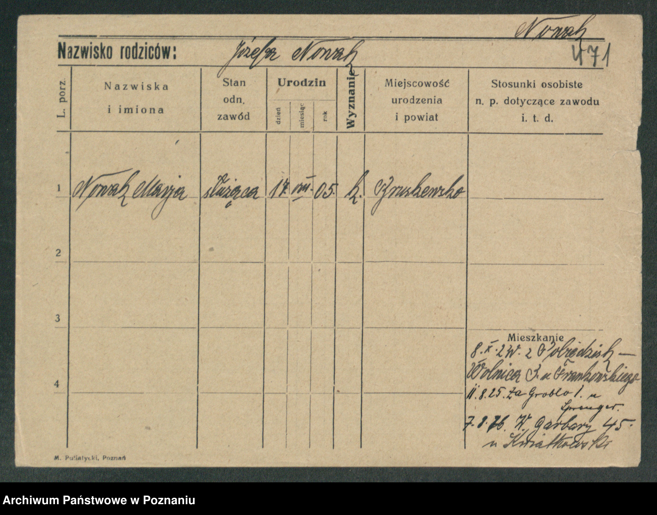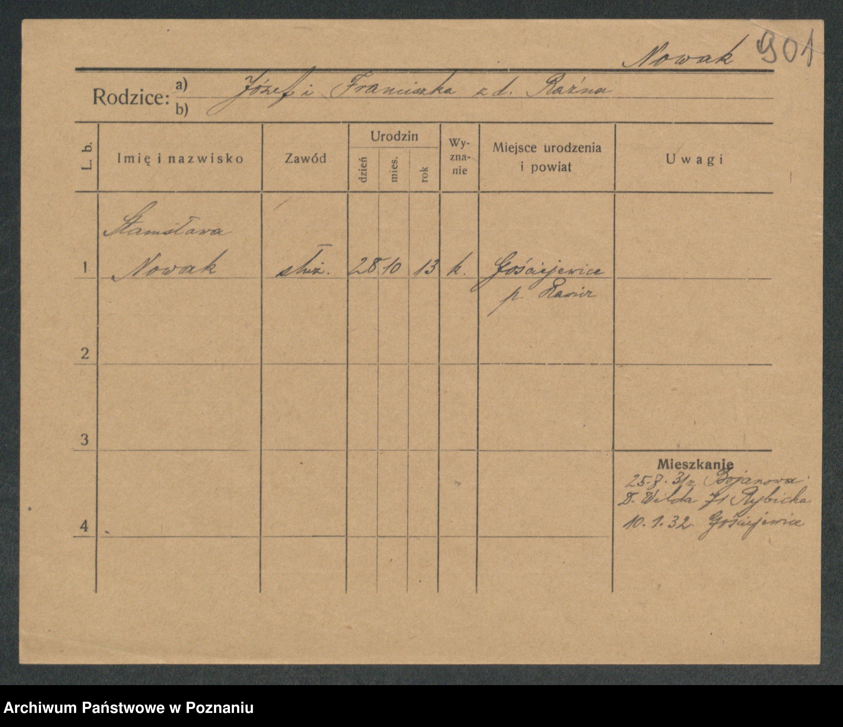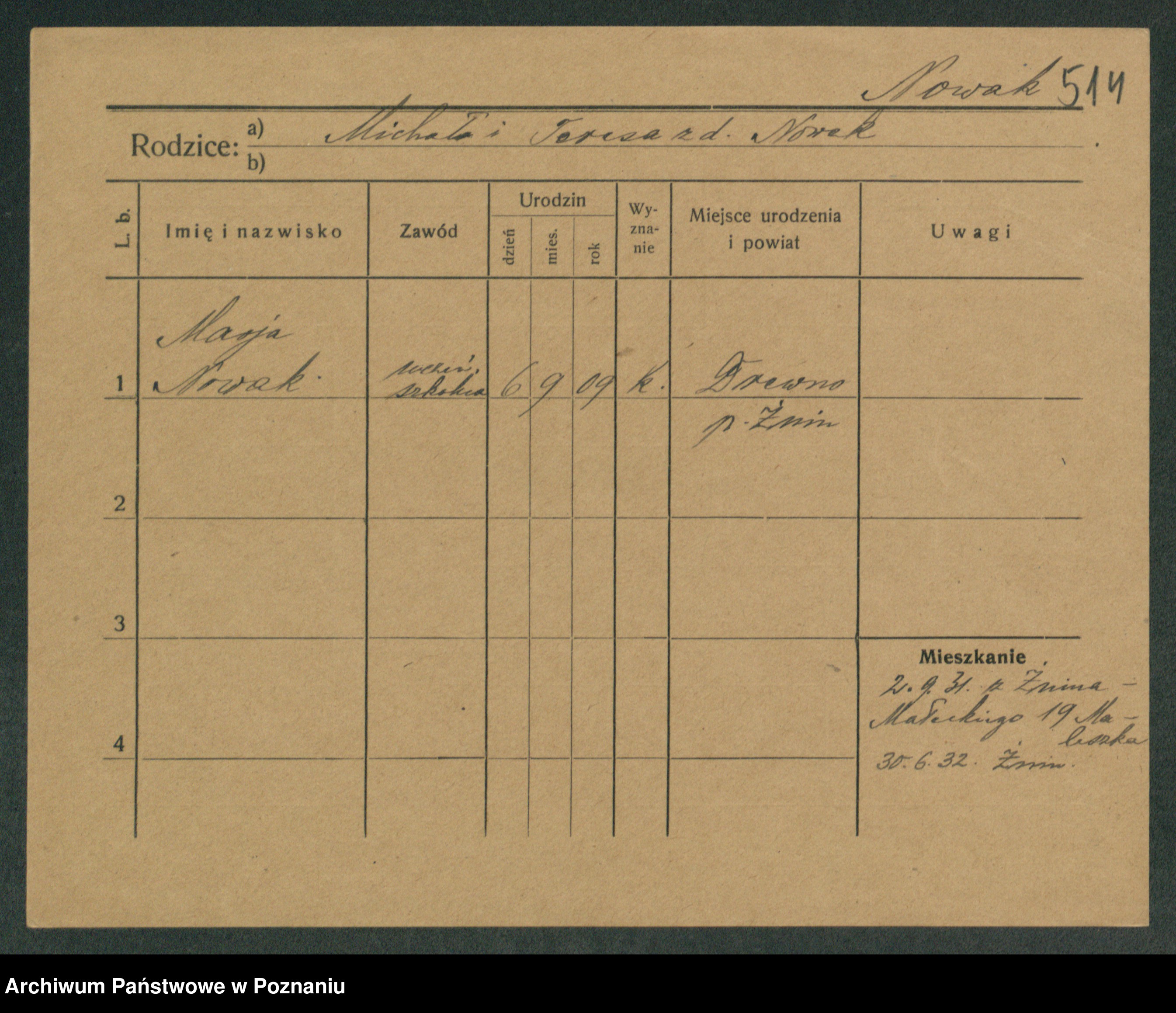 Podgląd karty osobowej dostępny jest po kliknięciu na nazwisko lub ikonkę karty. Można dokonywać powiększenia (ikony na górze) lub przechodzić między kolejnymi skanami (strzałki po bokach).