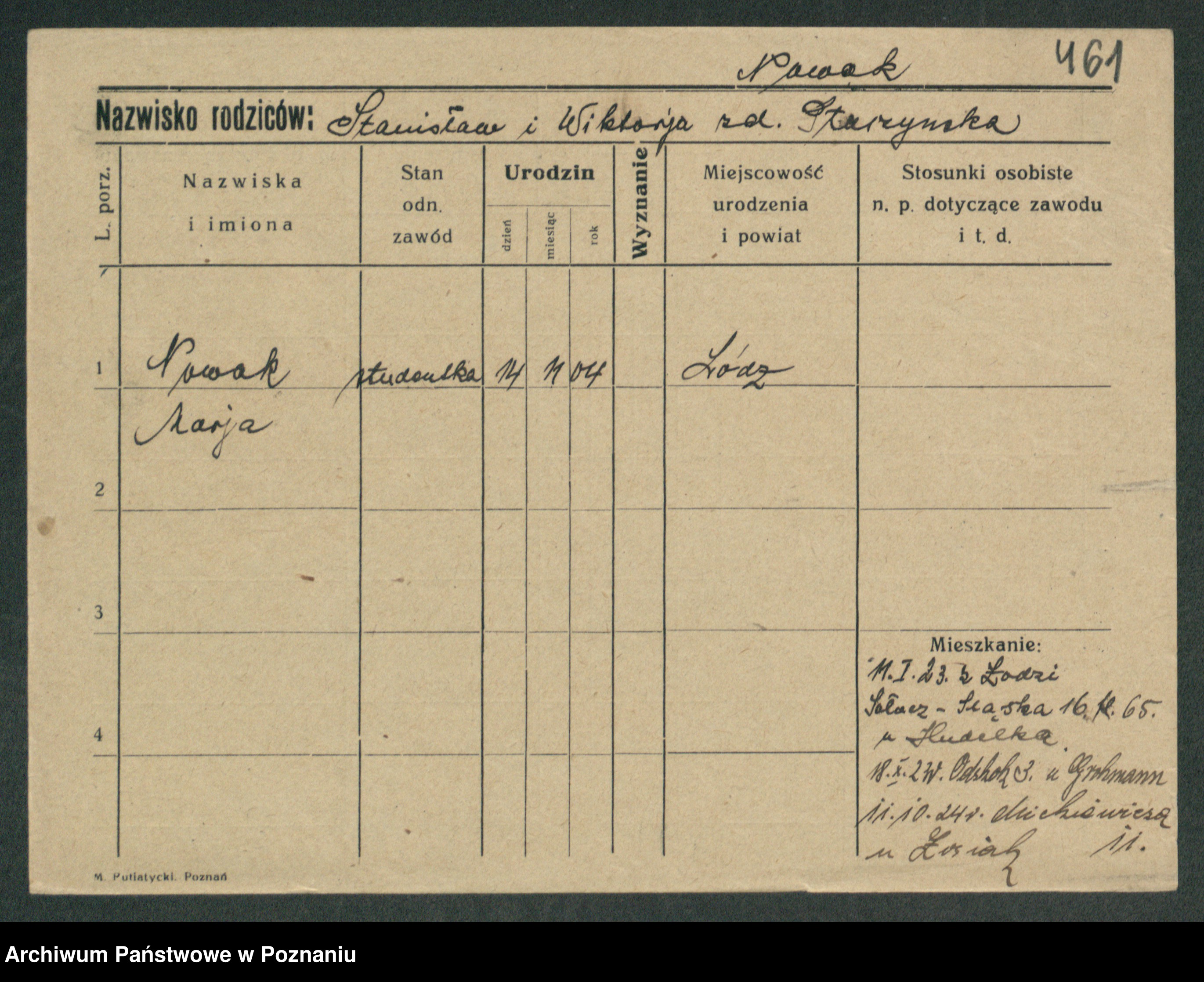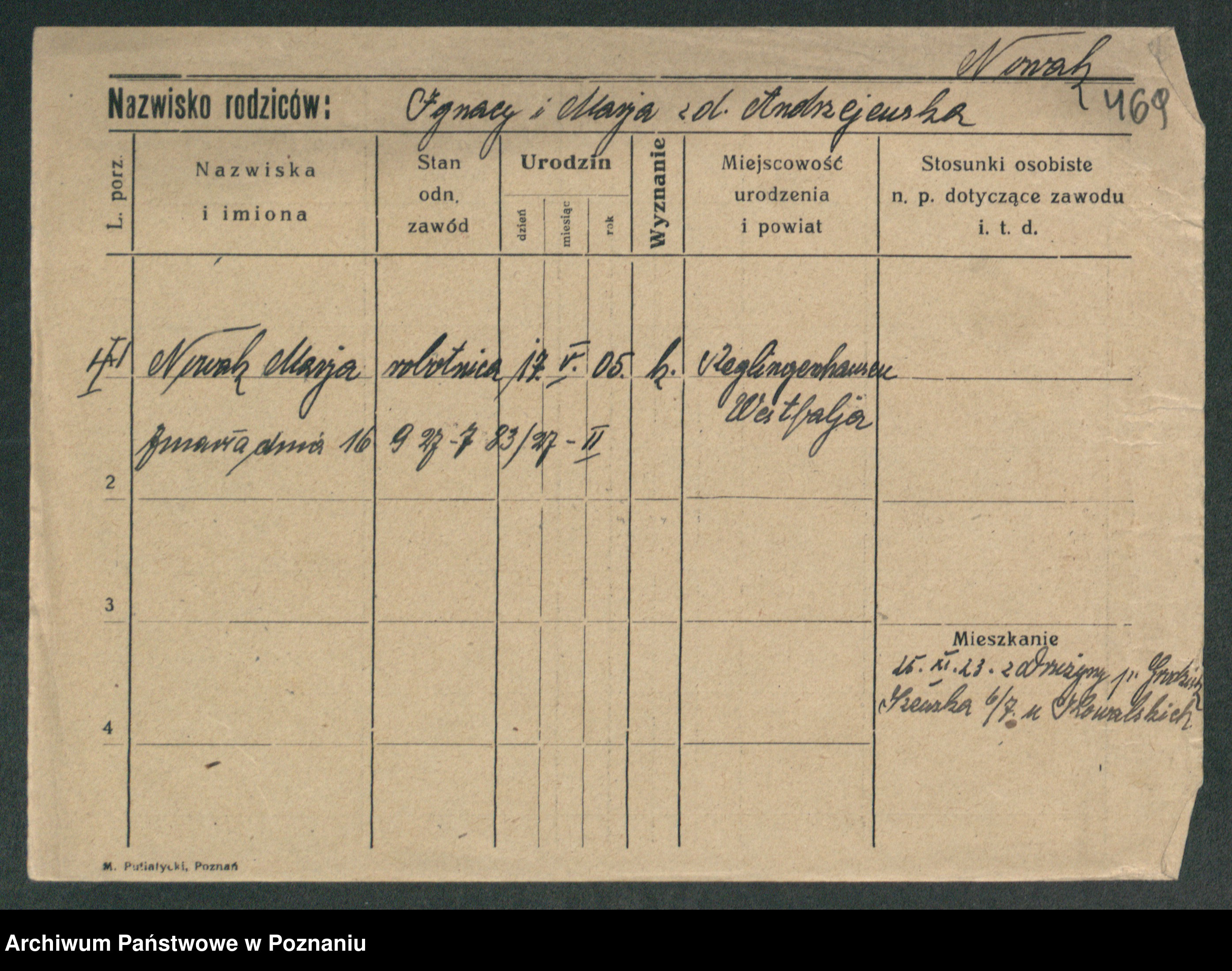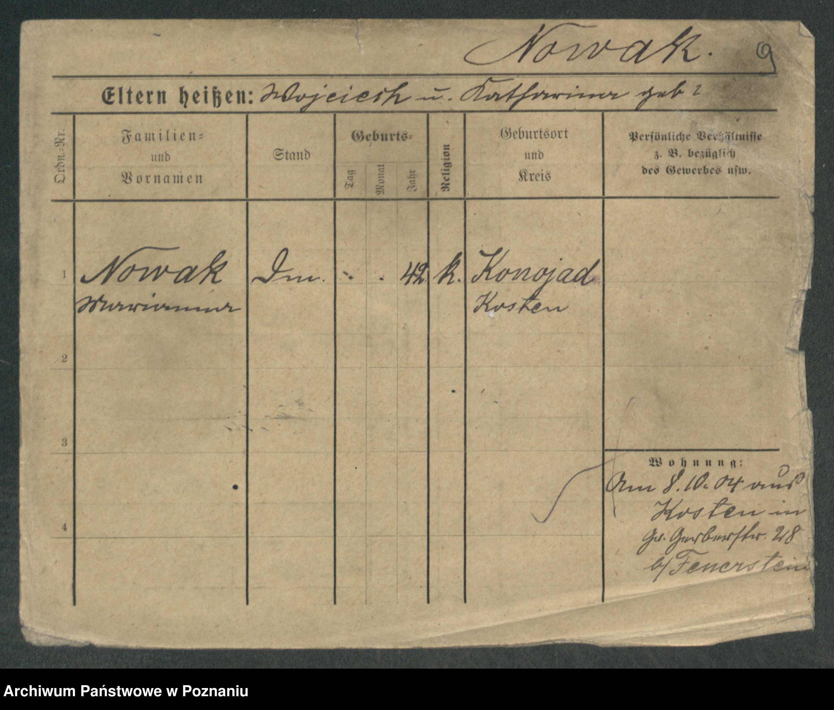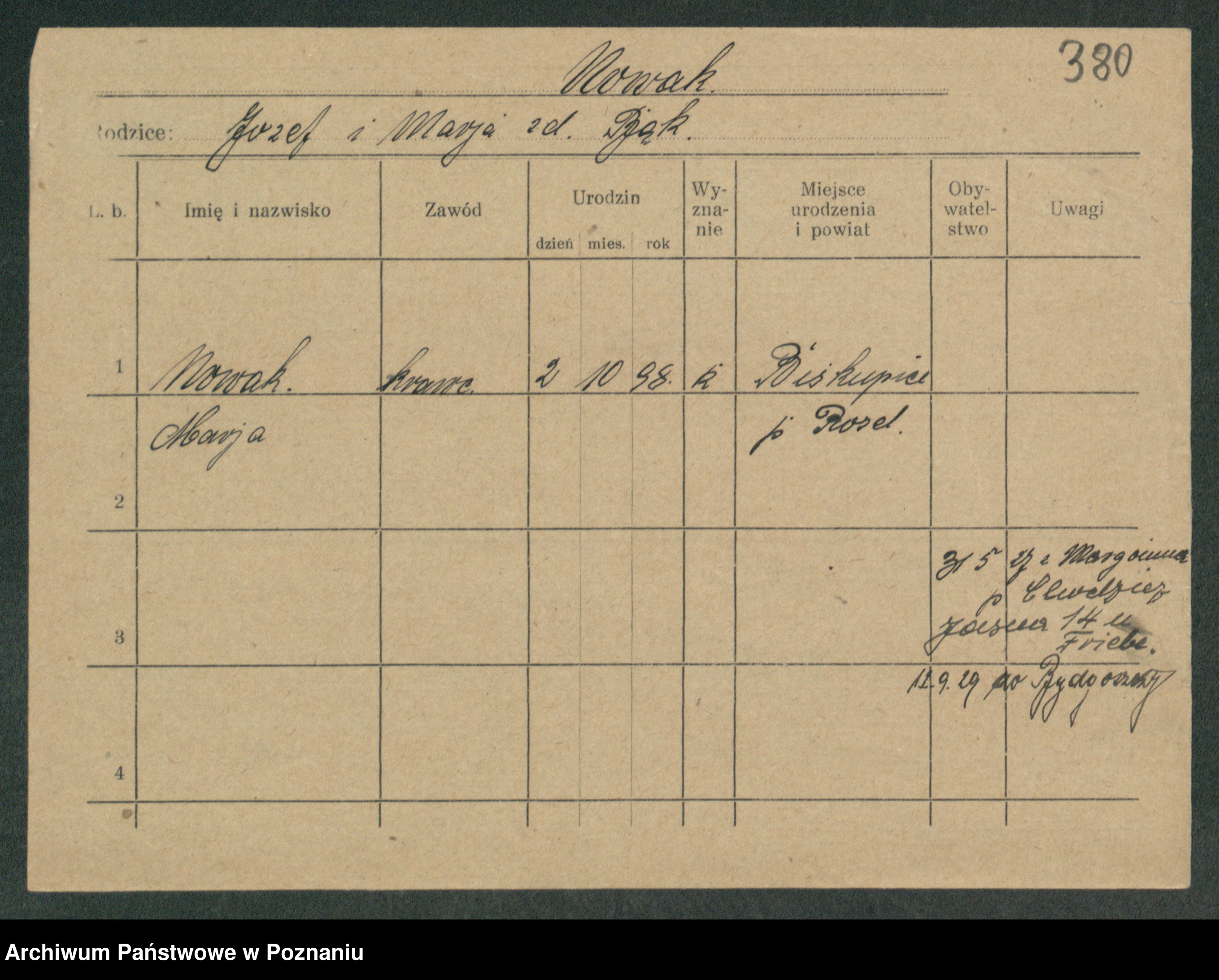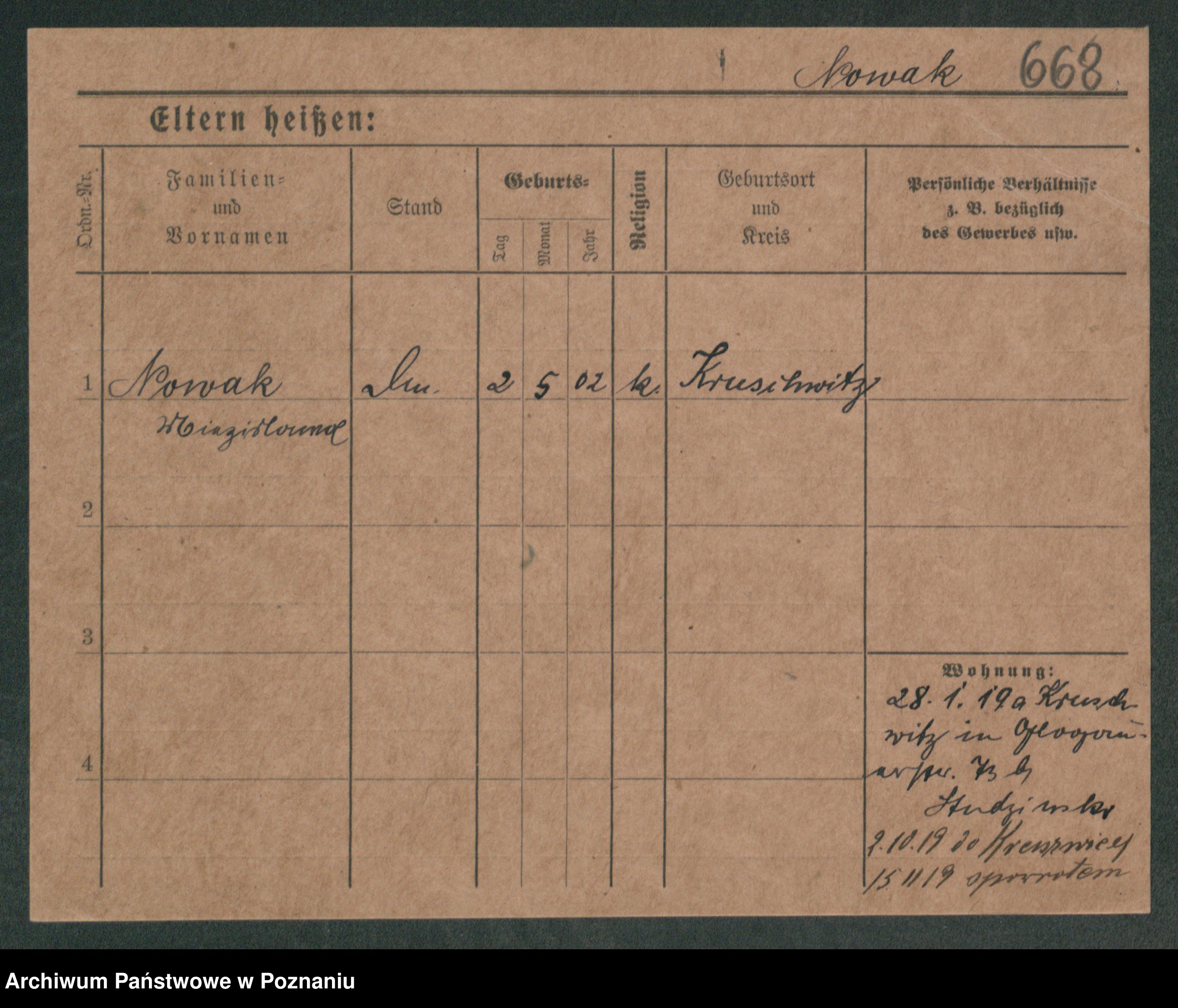 Podgląd karty osobowej dostępny jest po kliknięciu na nazwisko lub ikonkę karty. Można dokonywać powiększenia (ikony na górze) lub przechodzić między kolejnymi skanami (strzałki po bokach).