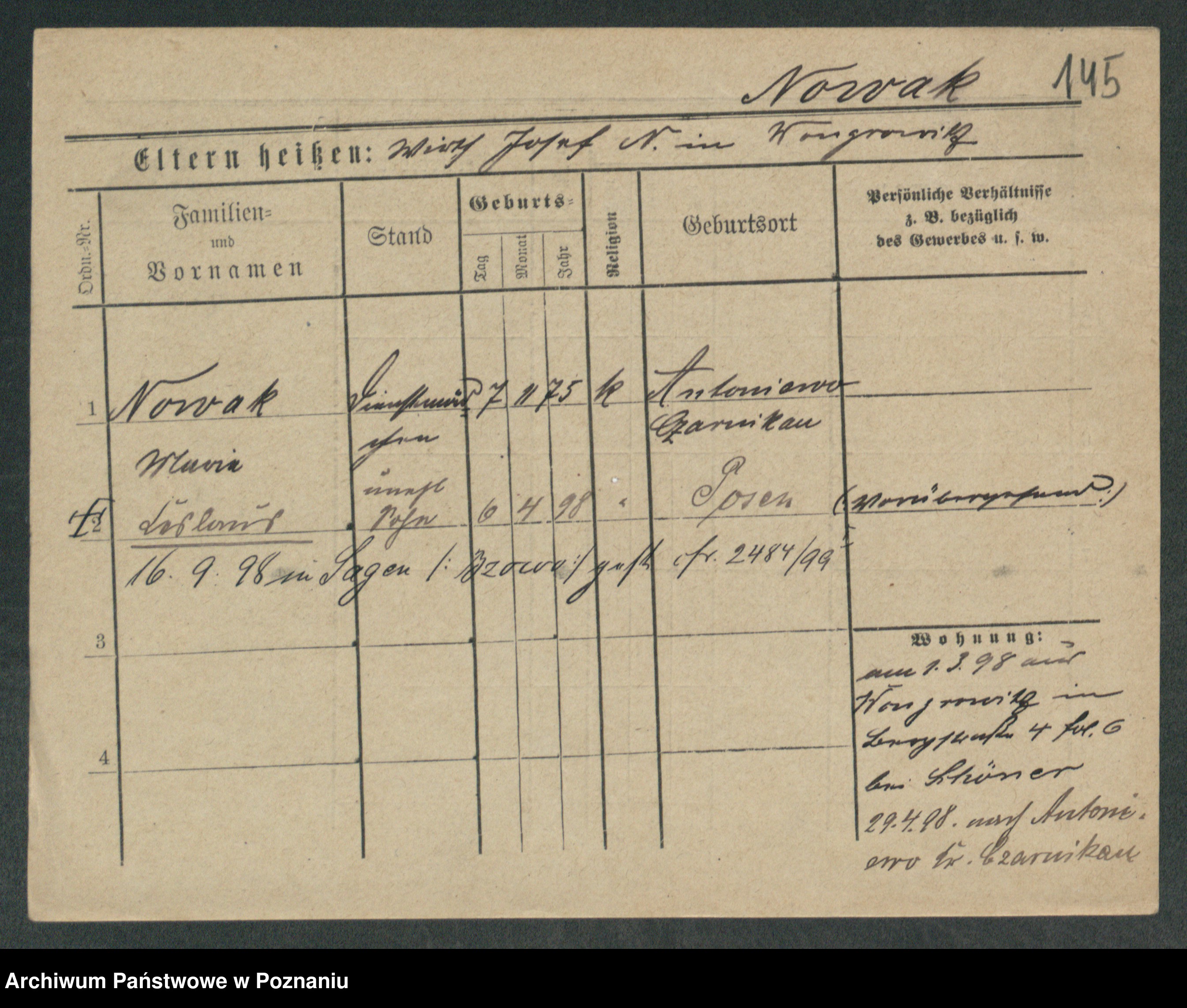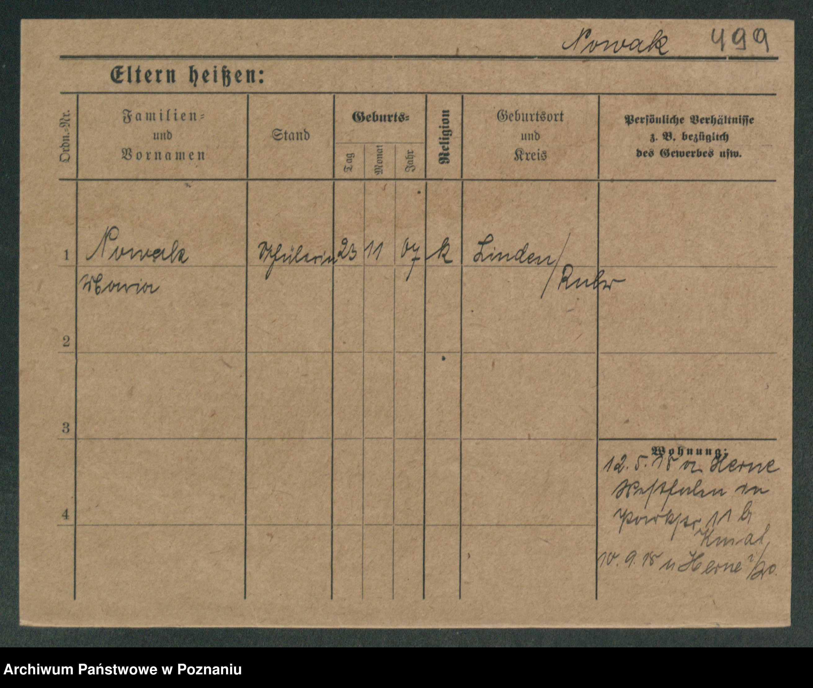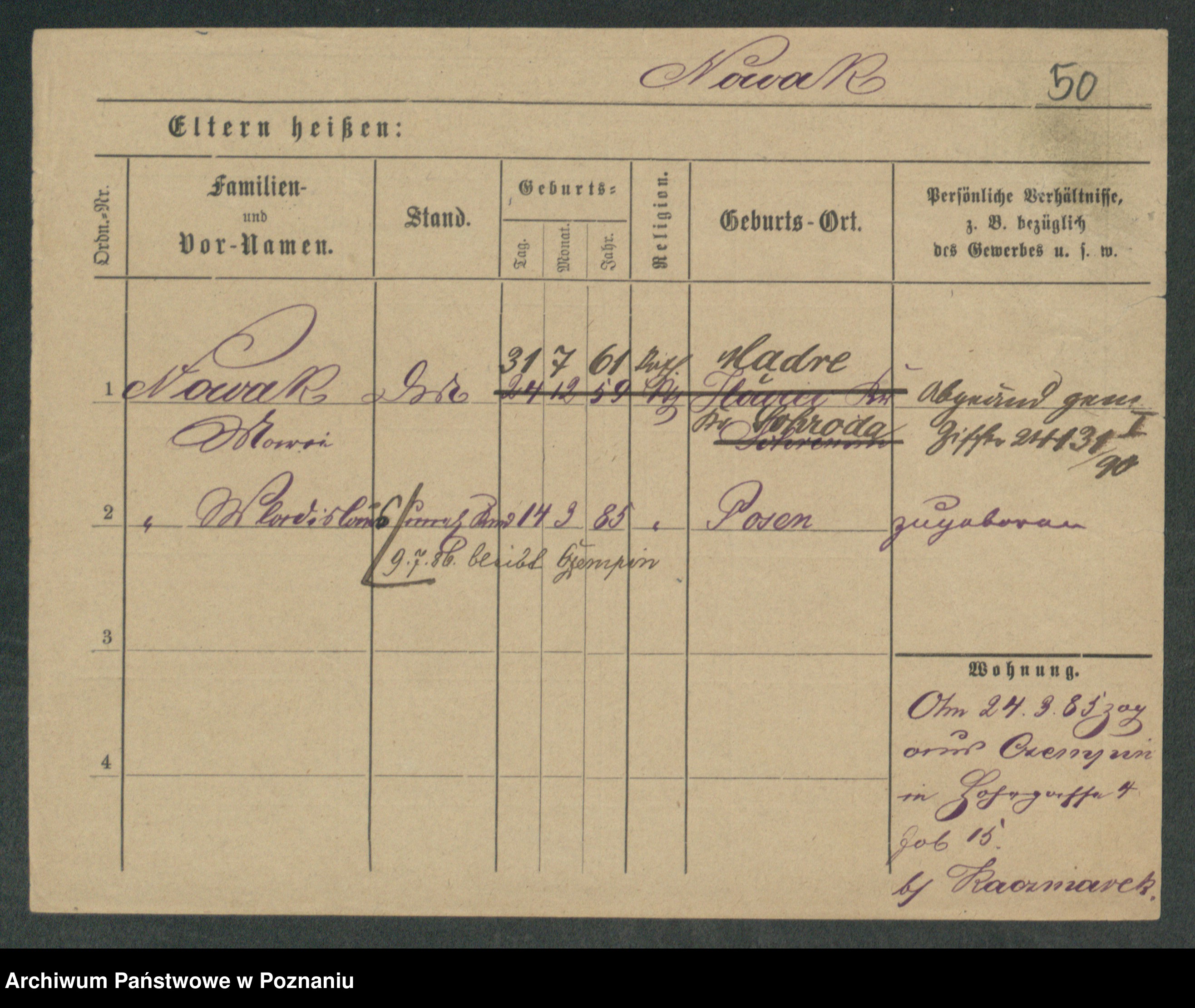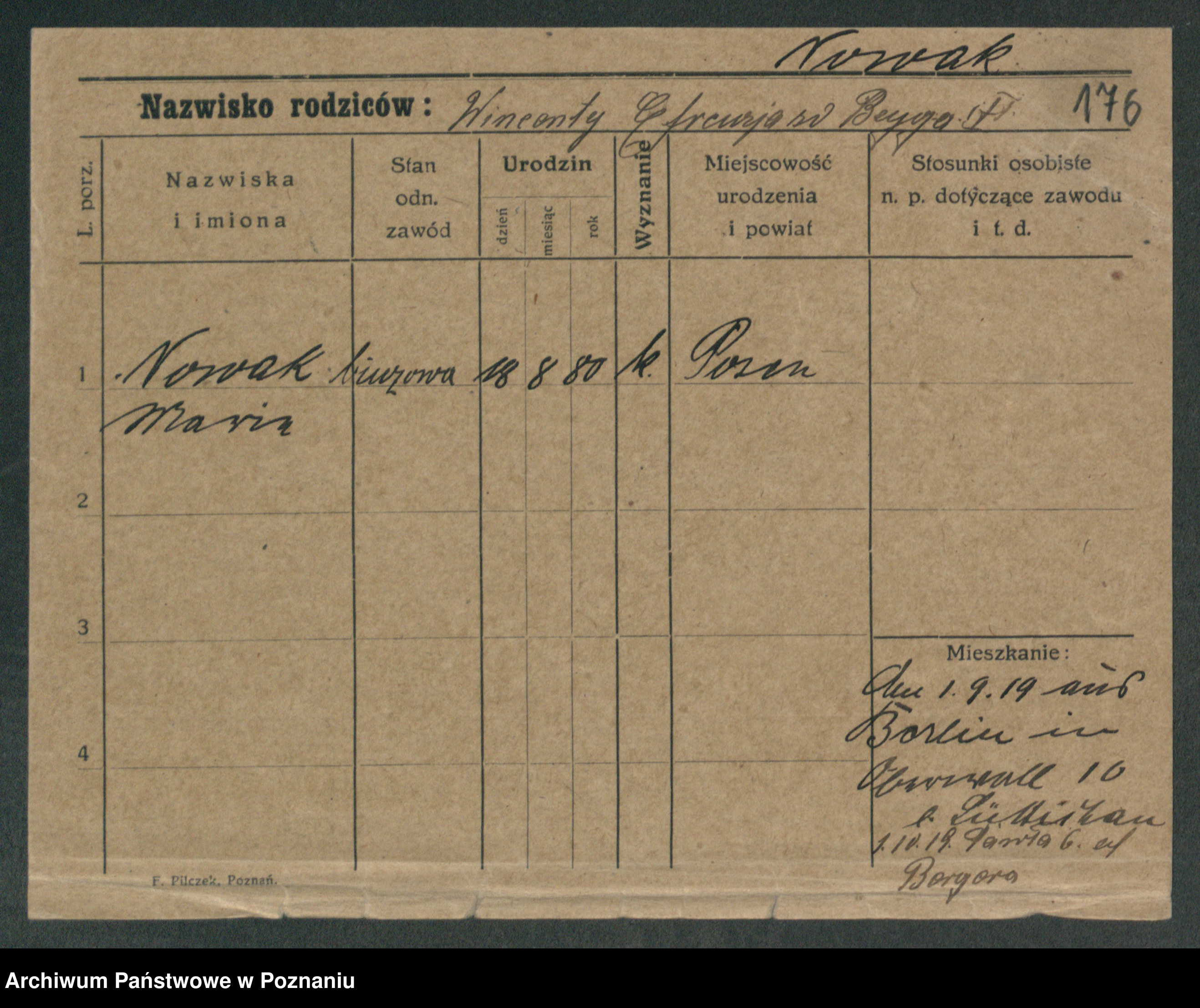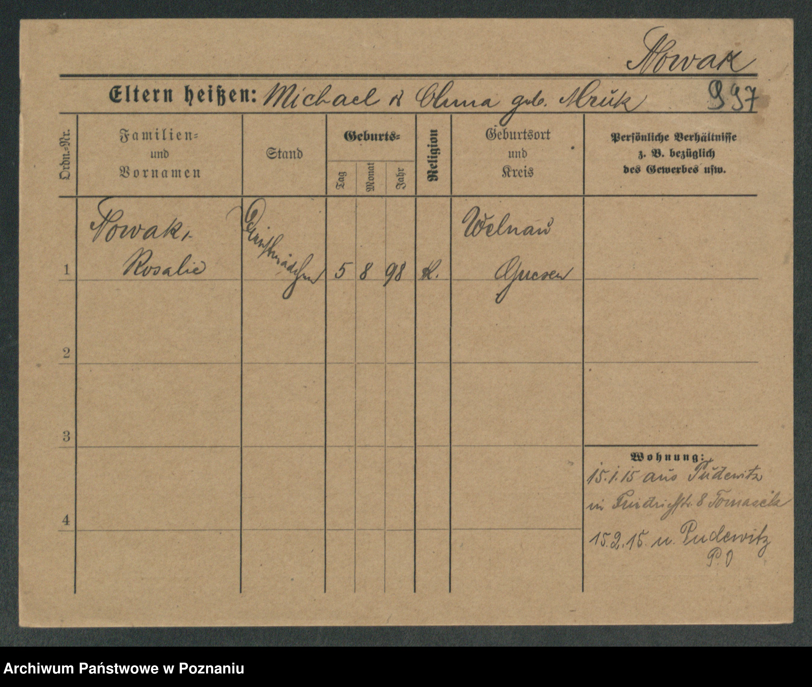Podgląd karty osobowej dostępny jest po kliknięciu na nazwisko lub ikonkę karty. Można dokonywać powiększenia (ikony na górze) lub przechodzić między kolejnymi skanami (strzałki po bokach).