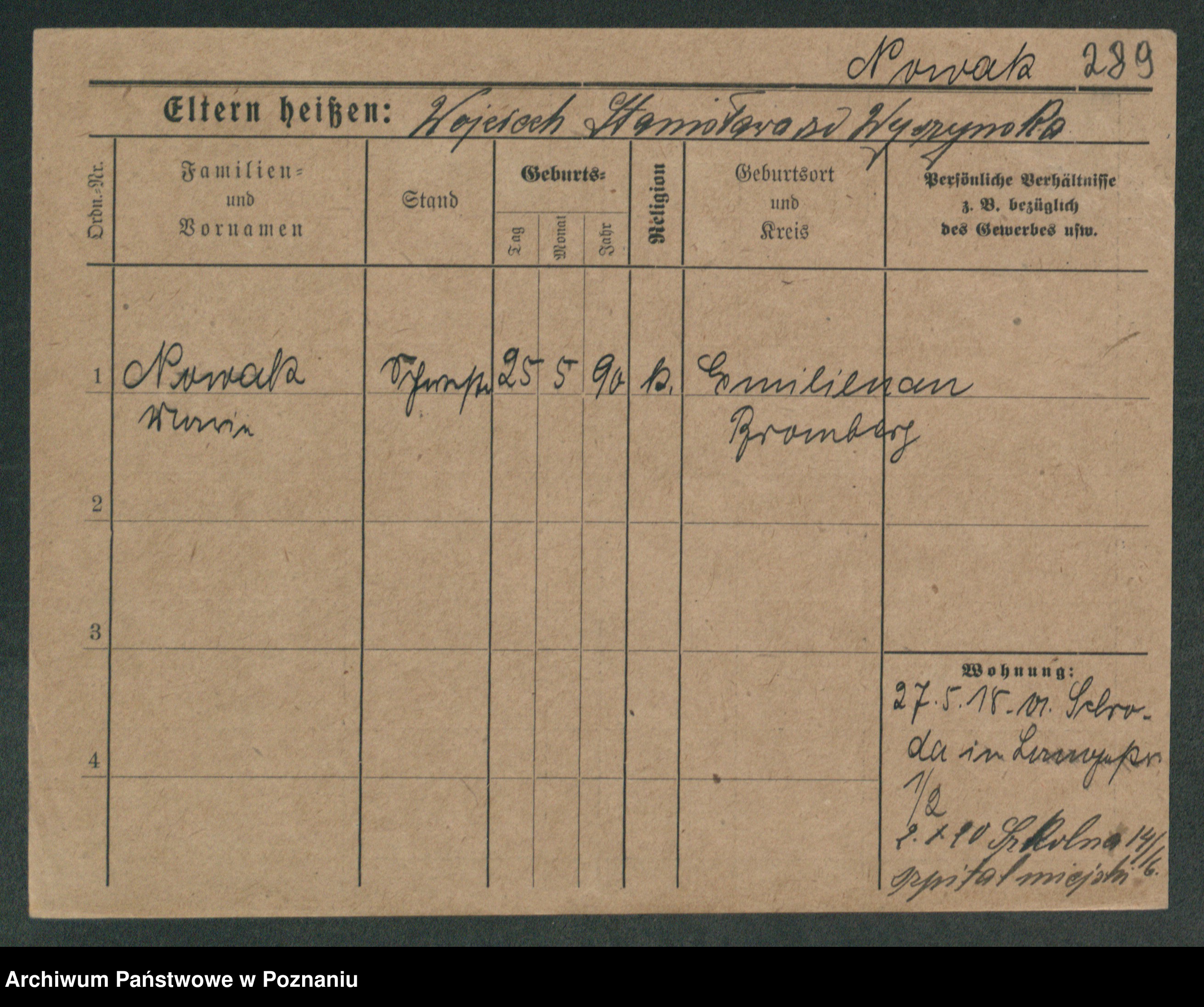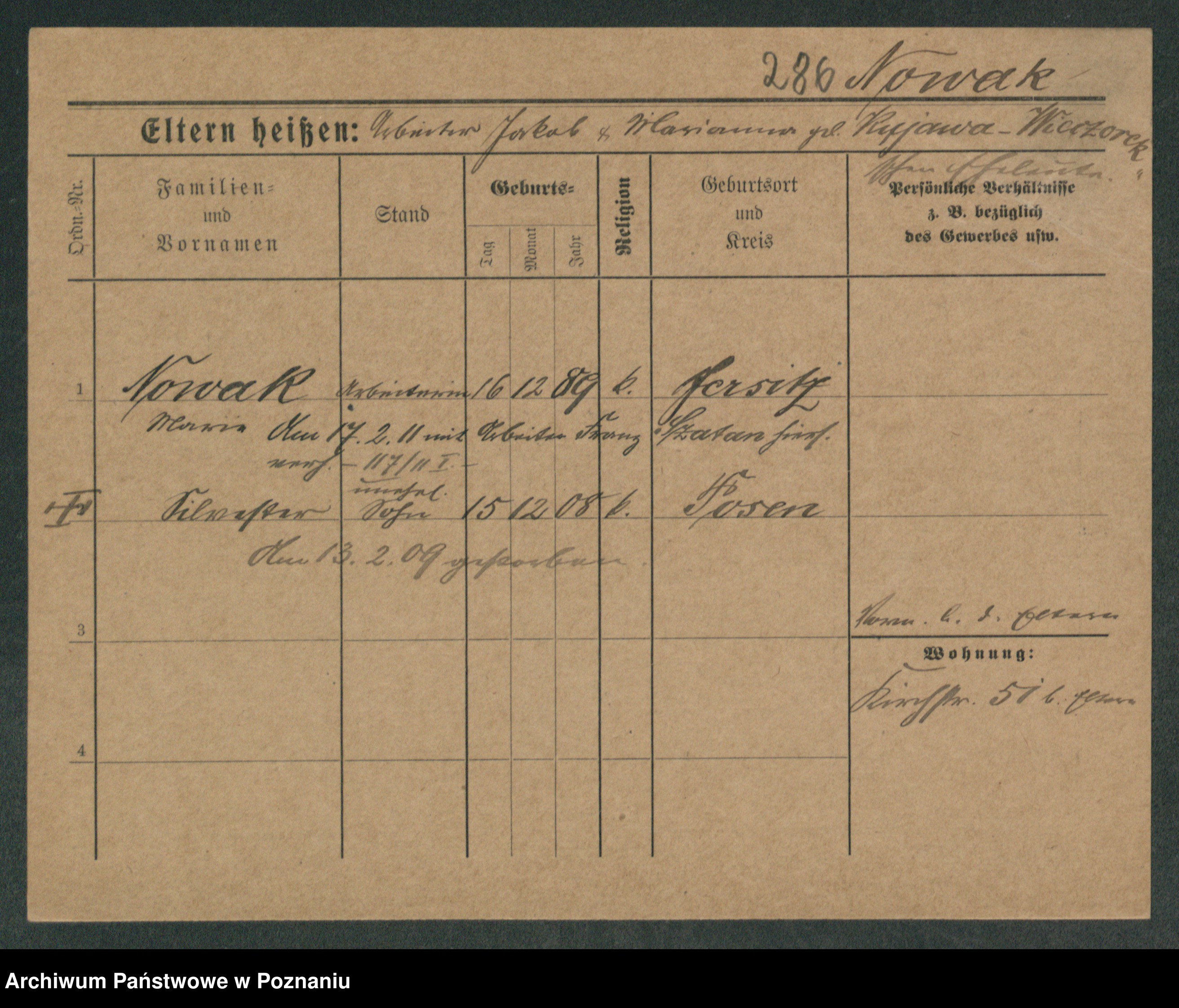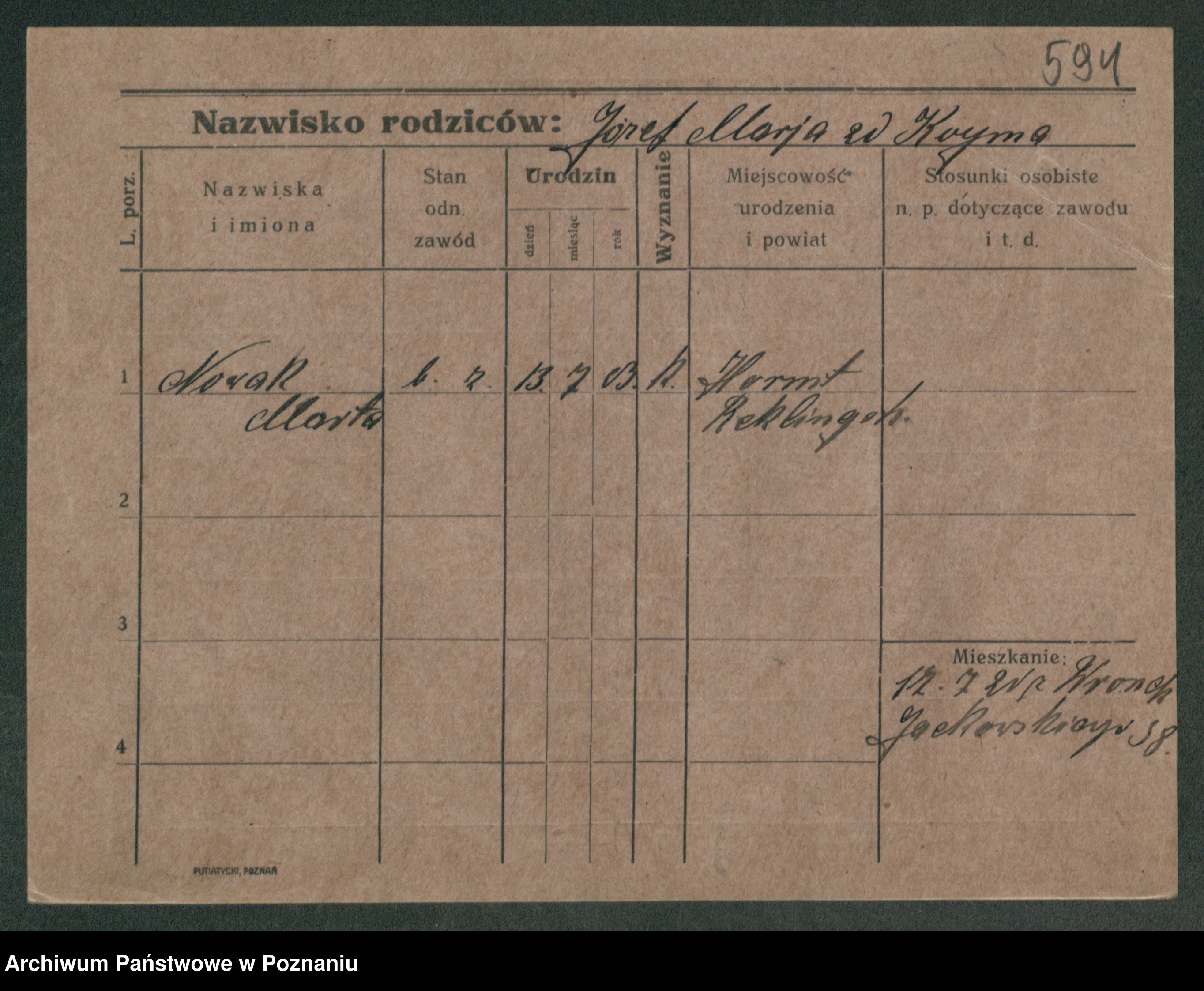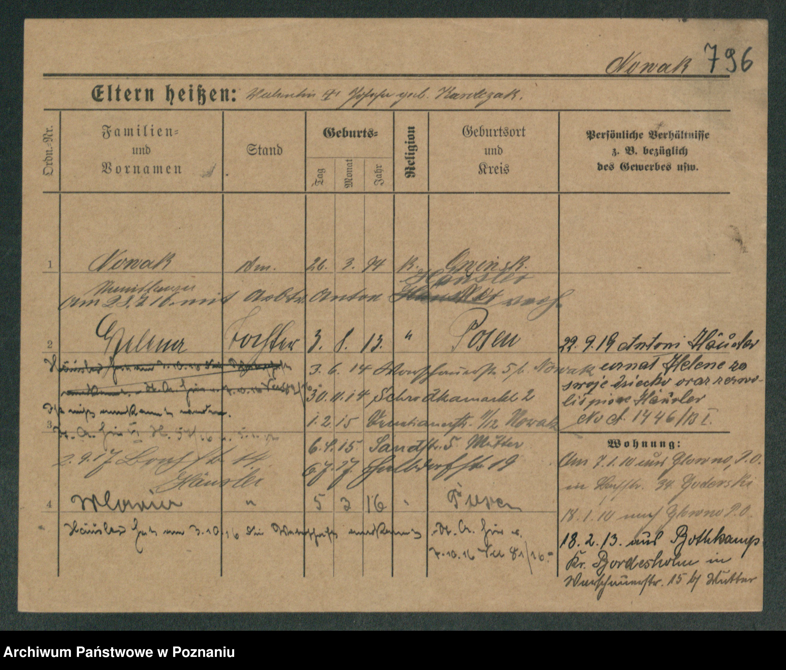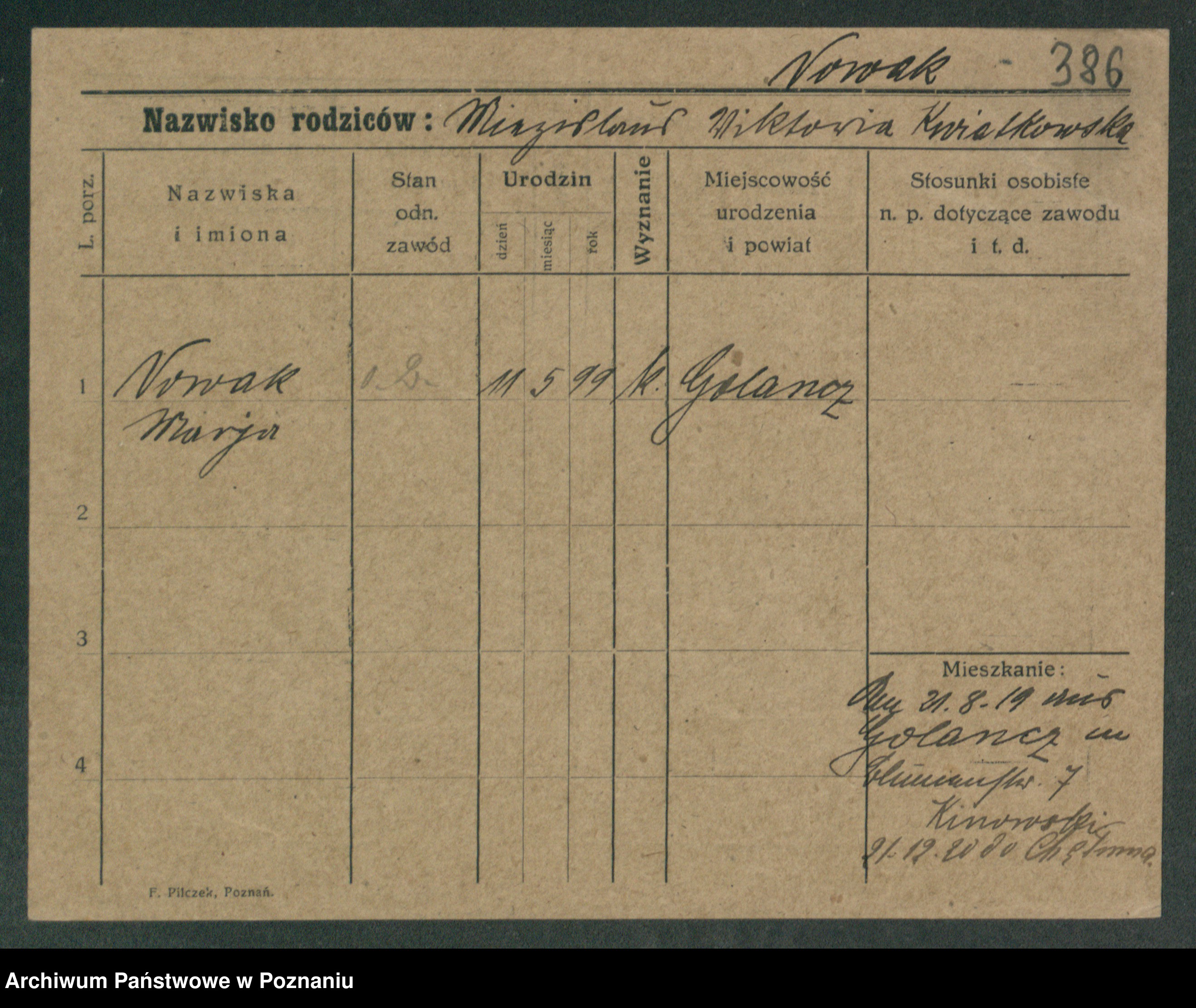 Podgląd karty osobowej dostępny jest po kliknięciu na nazwisko lub ikonkę karty. Można dokonywać powiększenia (ikony na górze) lub przechodzić między kolejnymi skanami (strzałki po bokach).
