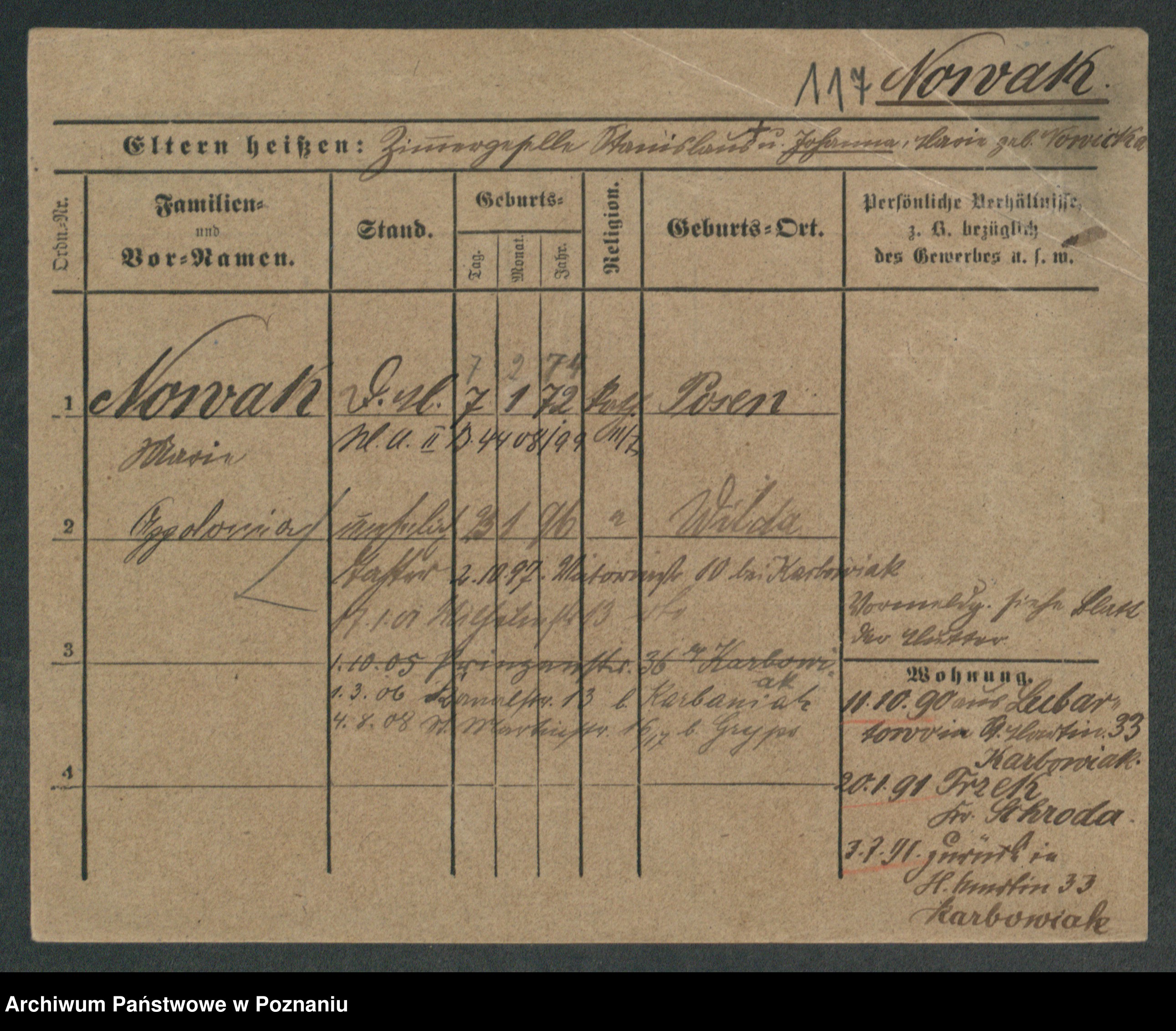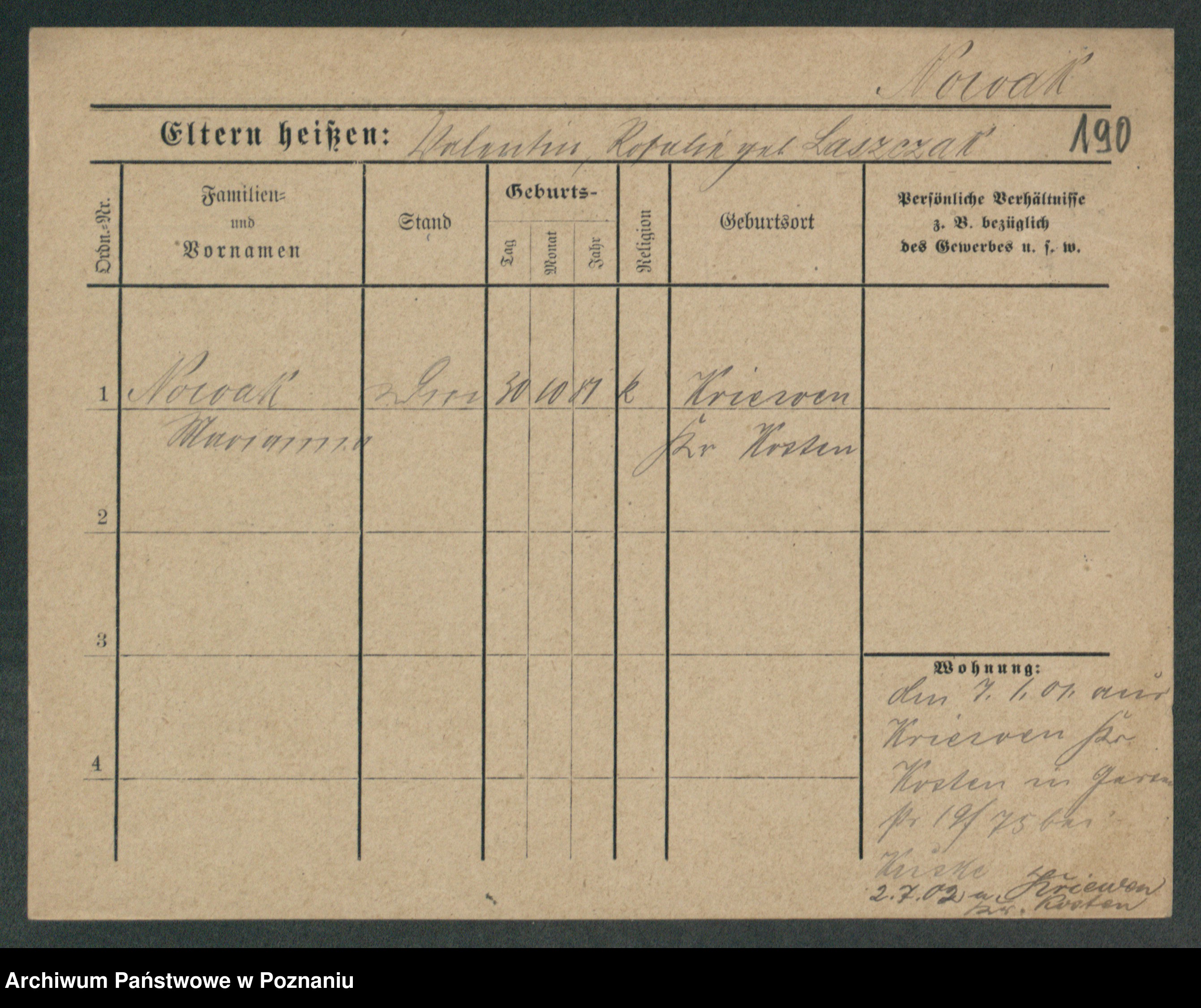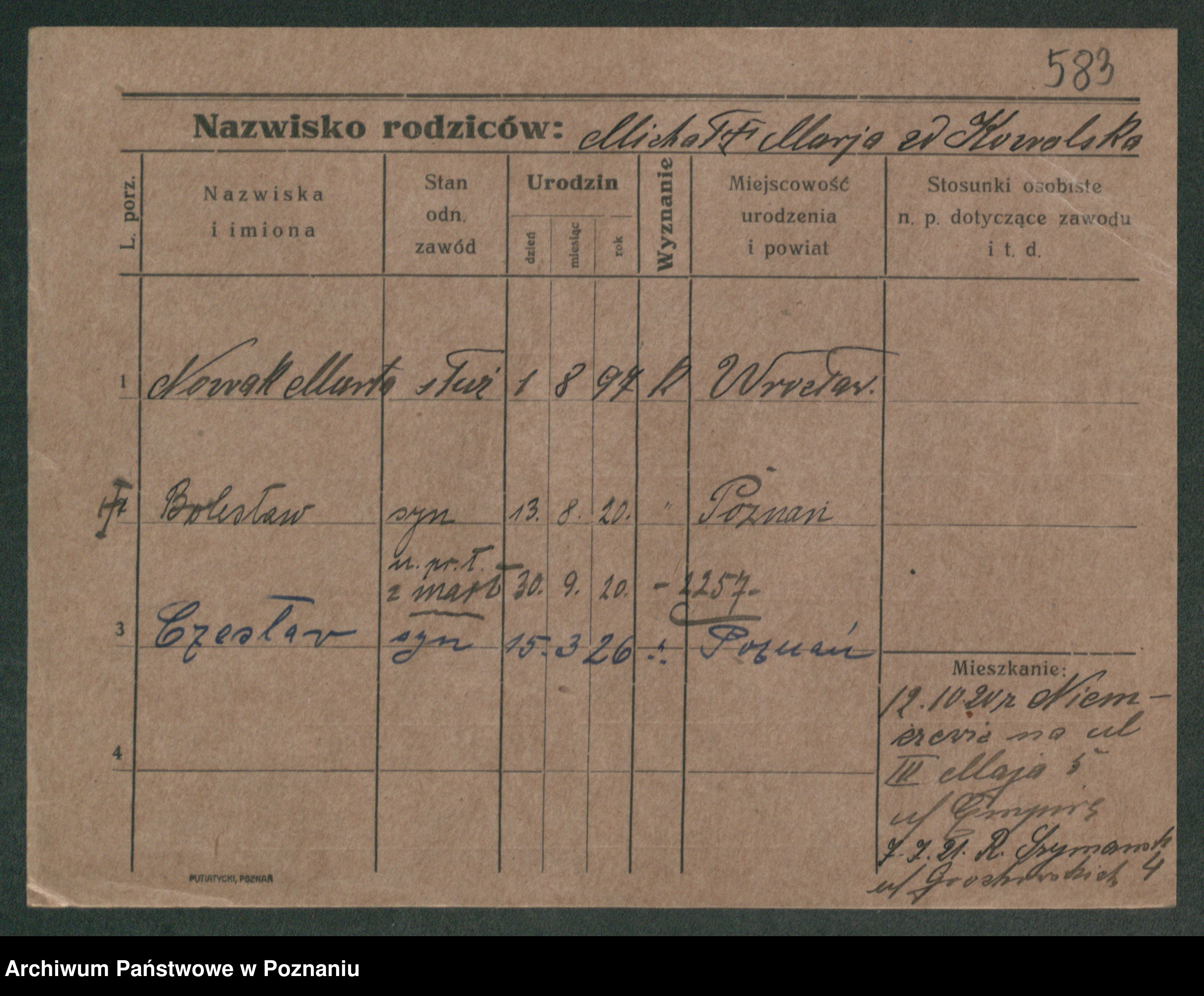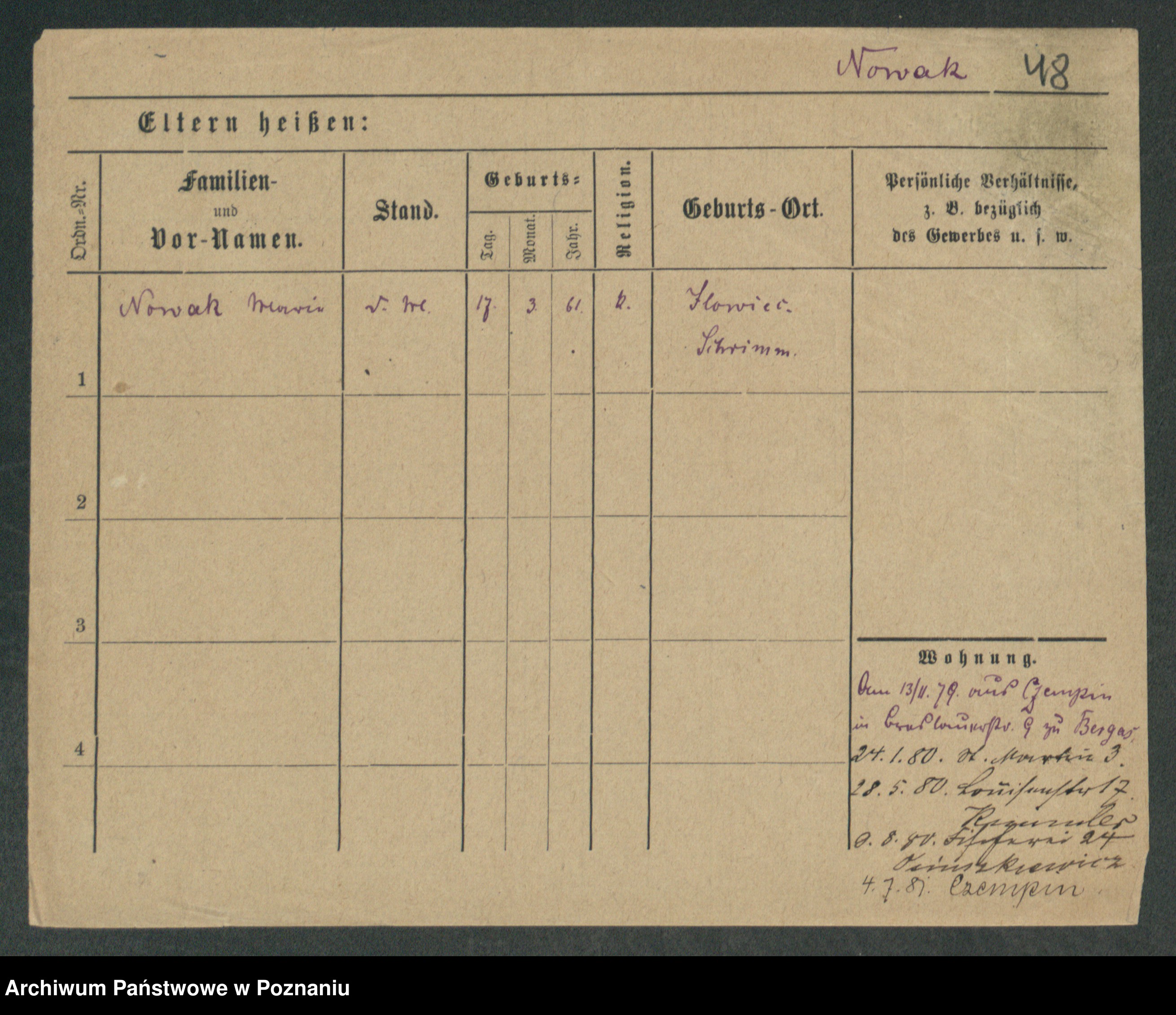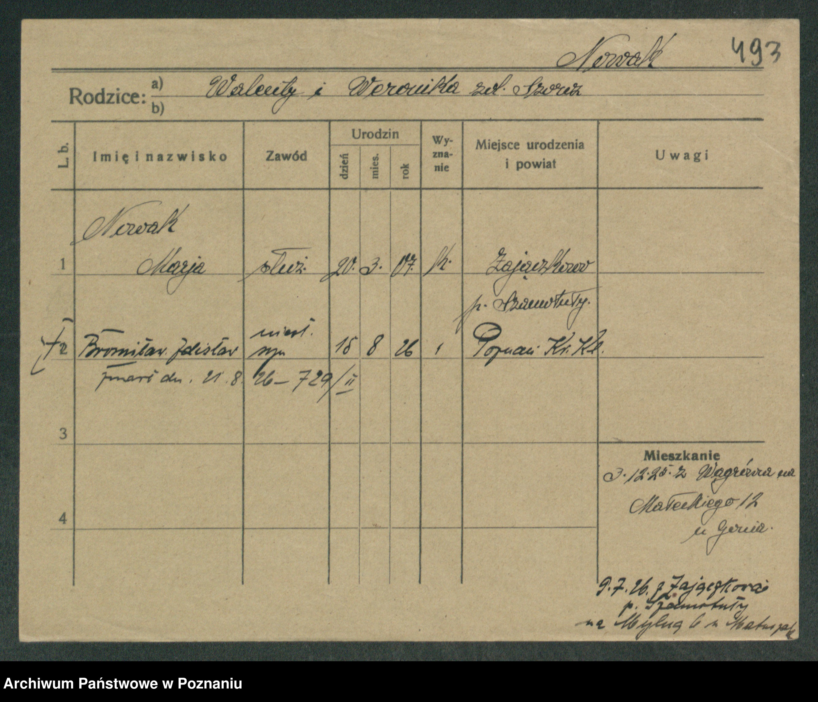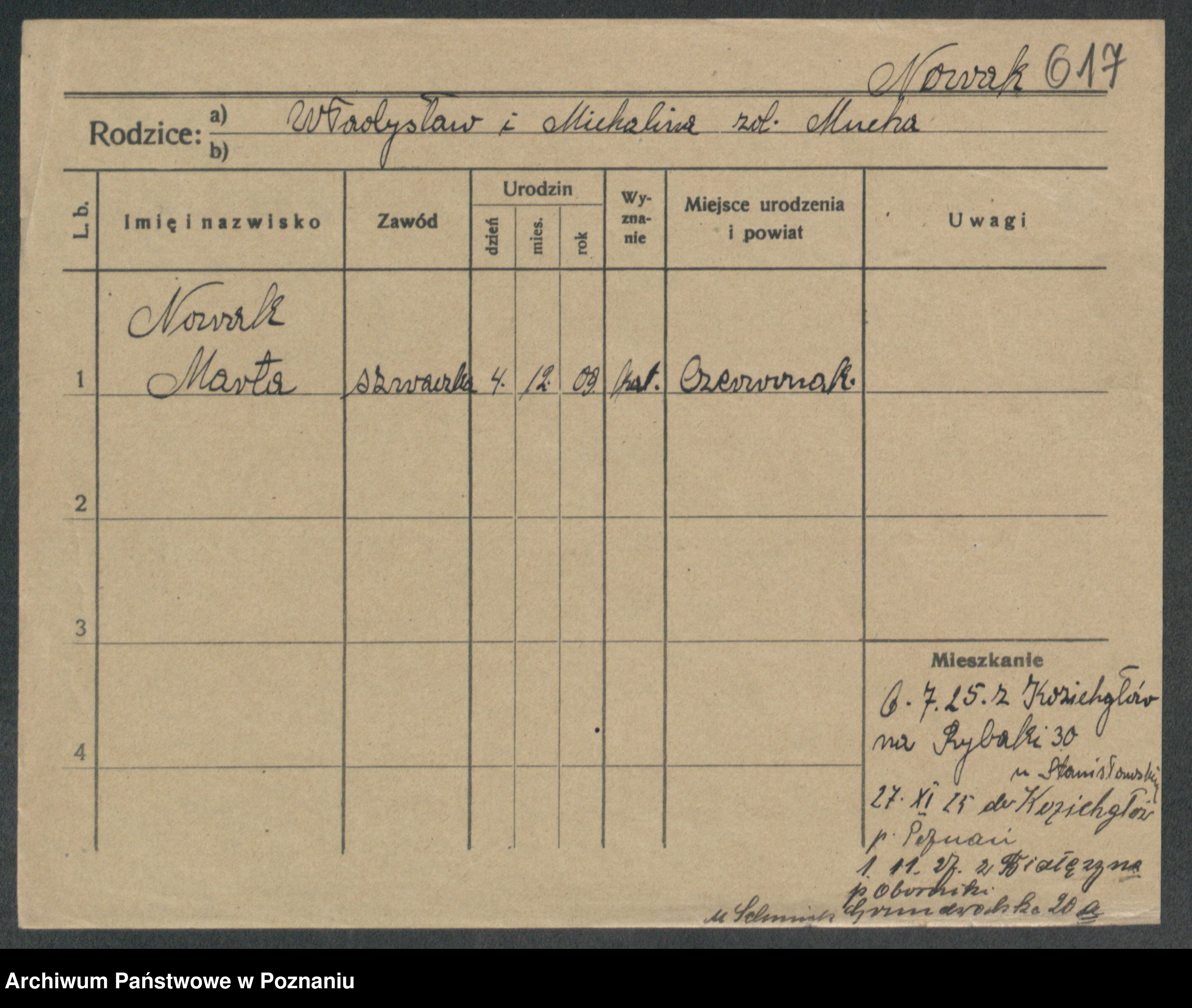 Podgląd karty osobowej dostępny jest po kliknięciu na nazwisko lub ikonkę karty. Można dokonywać powiększenia (ikony na górze) lub przechodzić między kolejnymi skanami (strzałki po bokach).