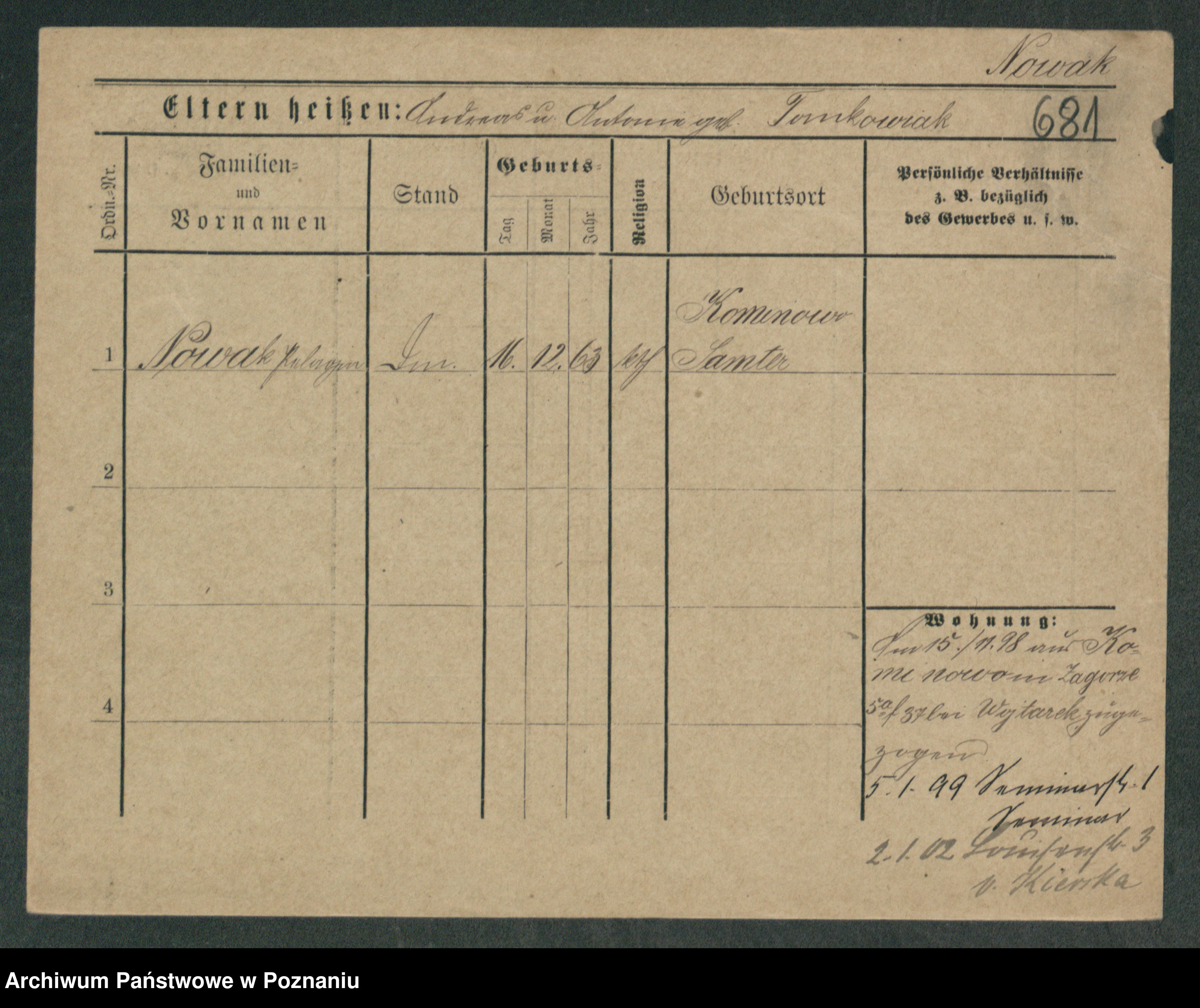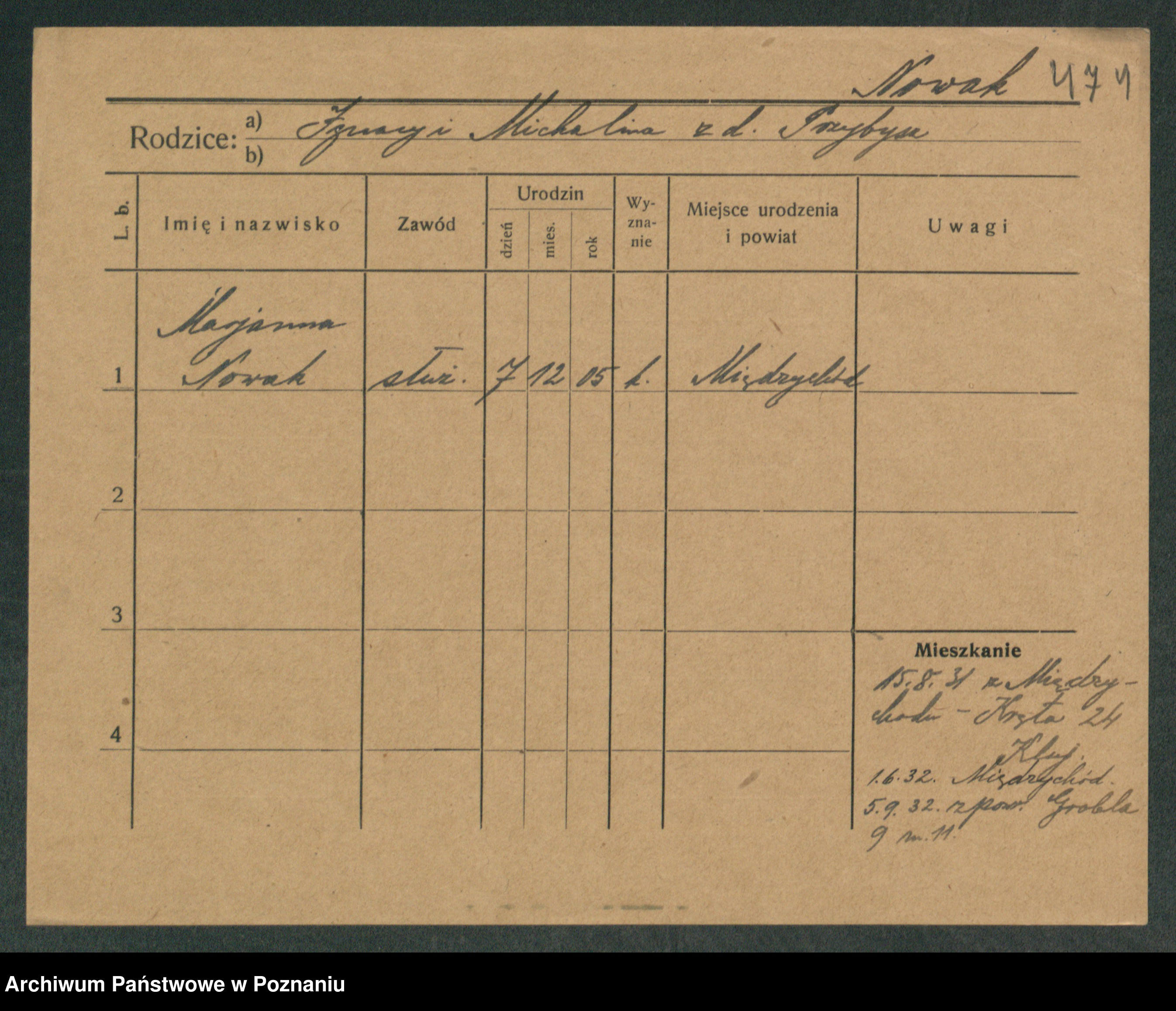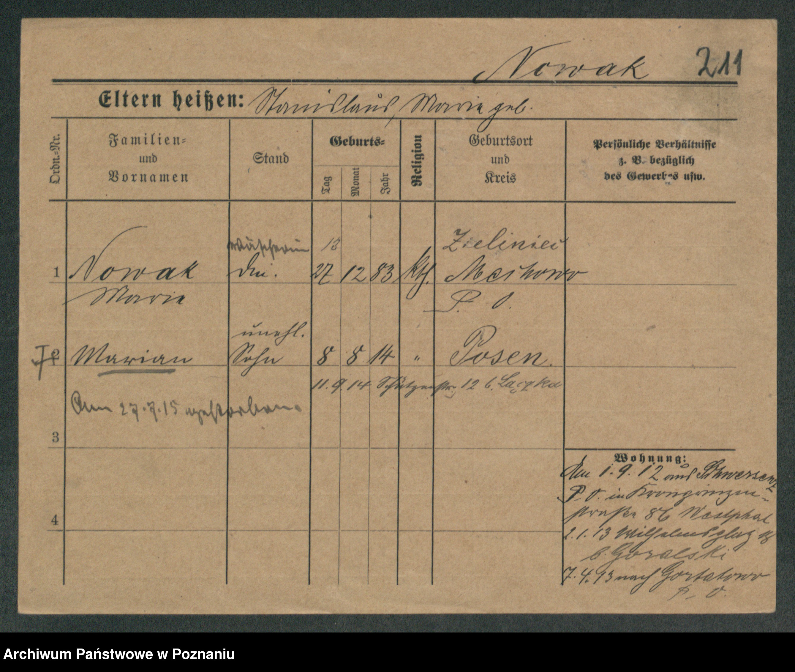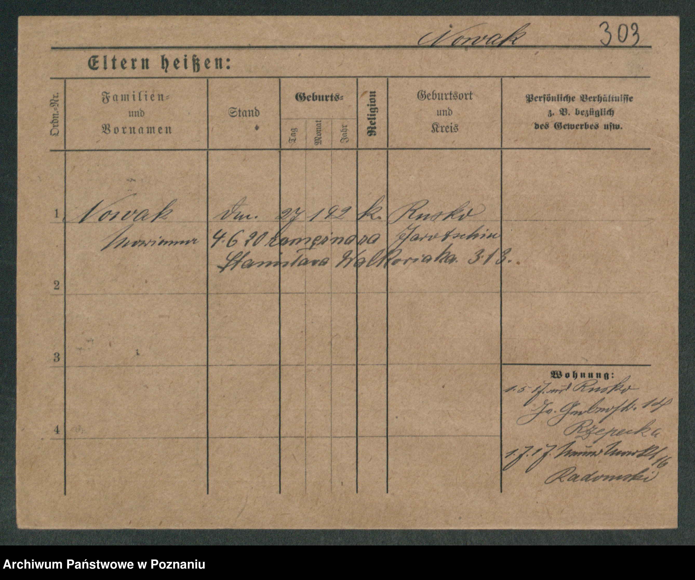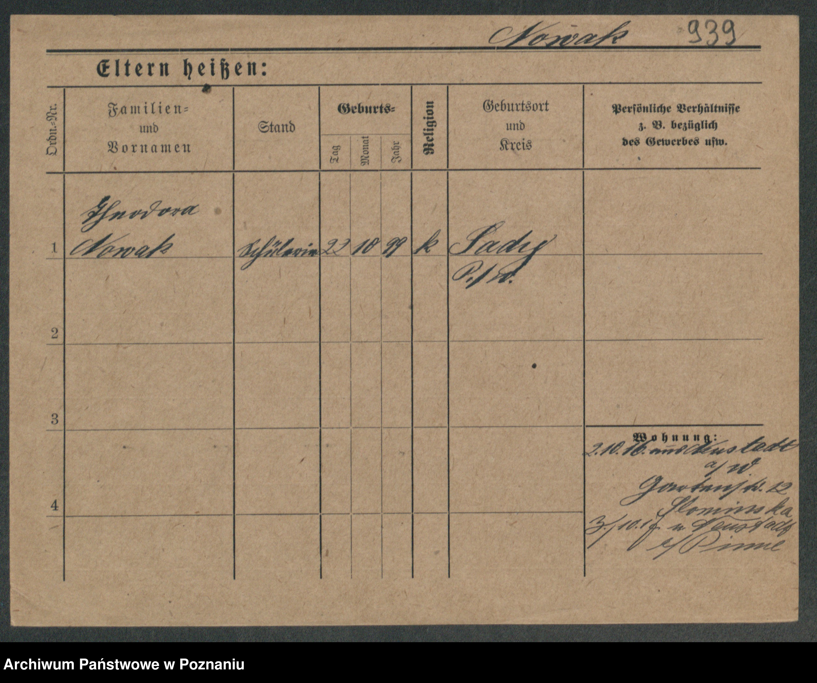 Podgląd karty osobowej dostępny jest po kliknięciu na nazwisko lub ikonkę karty. Można dokonywać powiększenia (ikony na górze) lub przechodzić między kolejnymi skanami (strzałki po bokach).