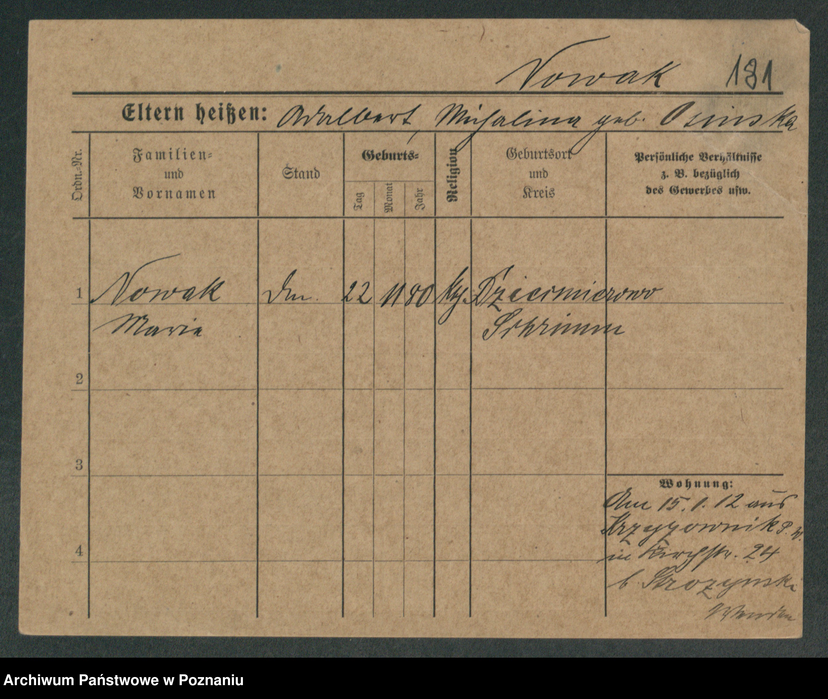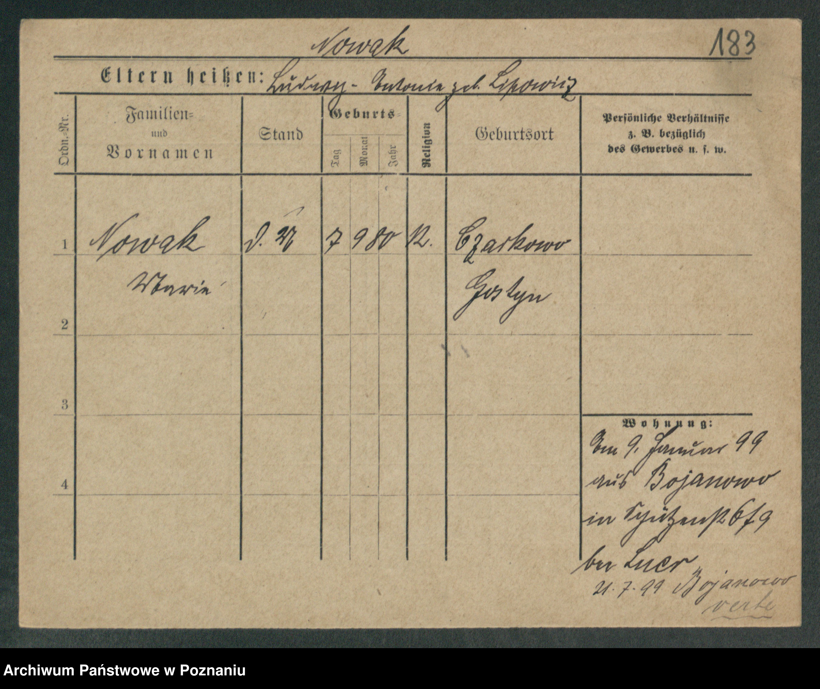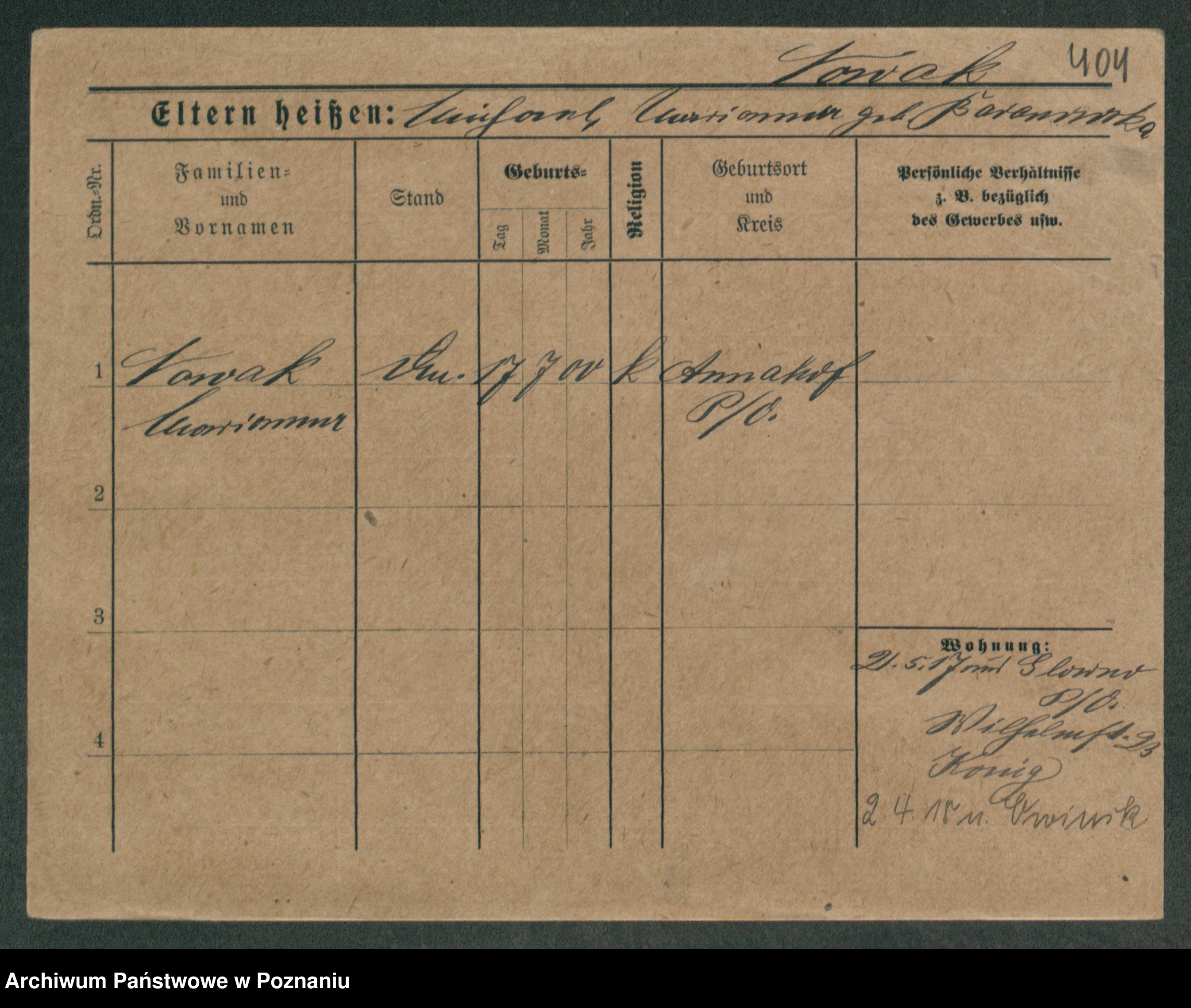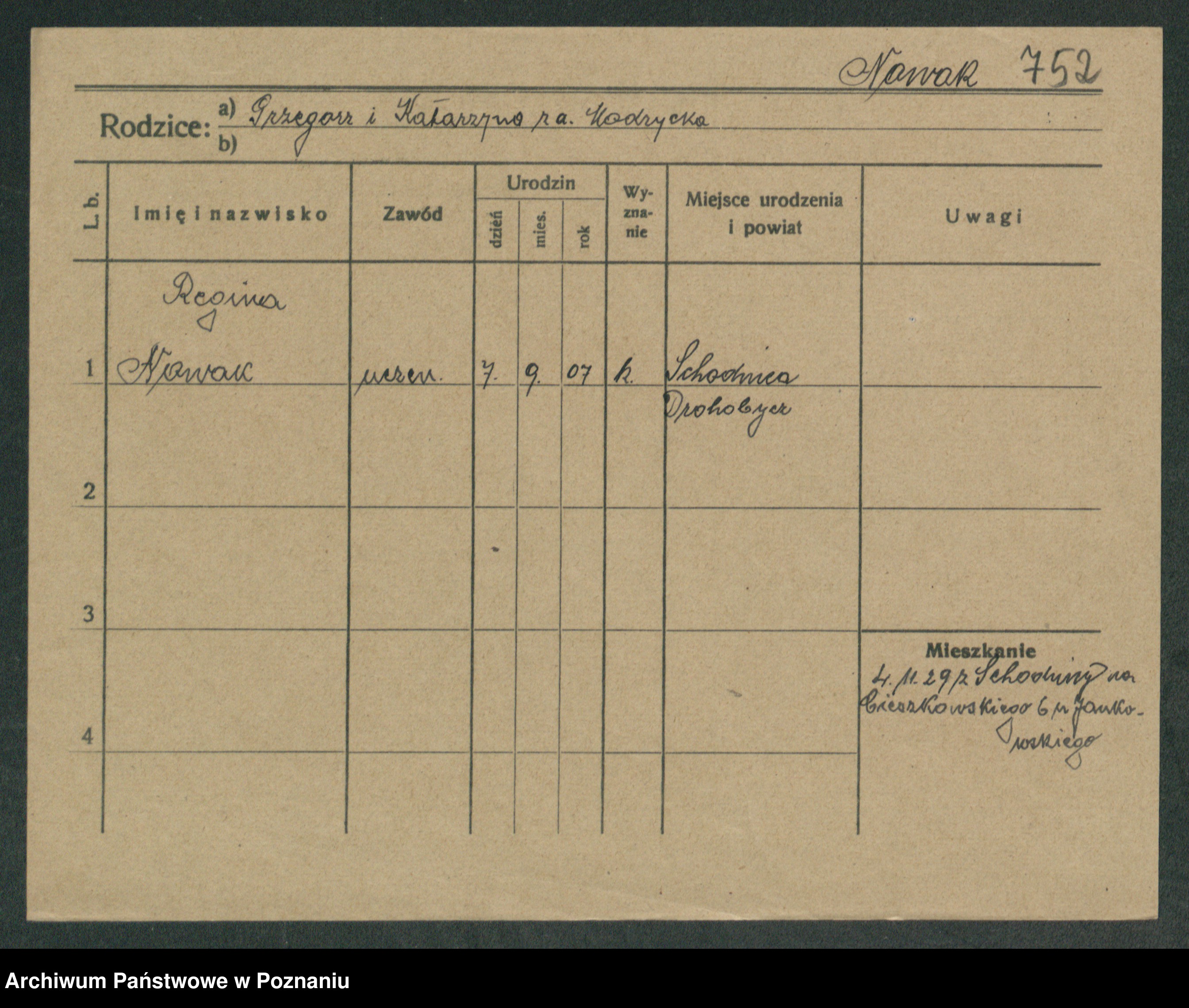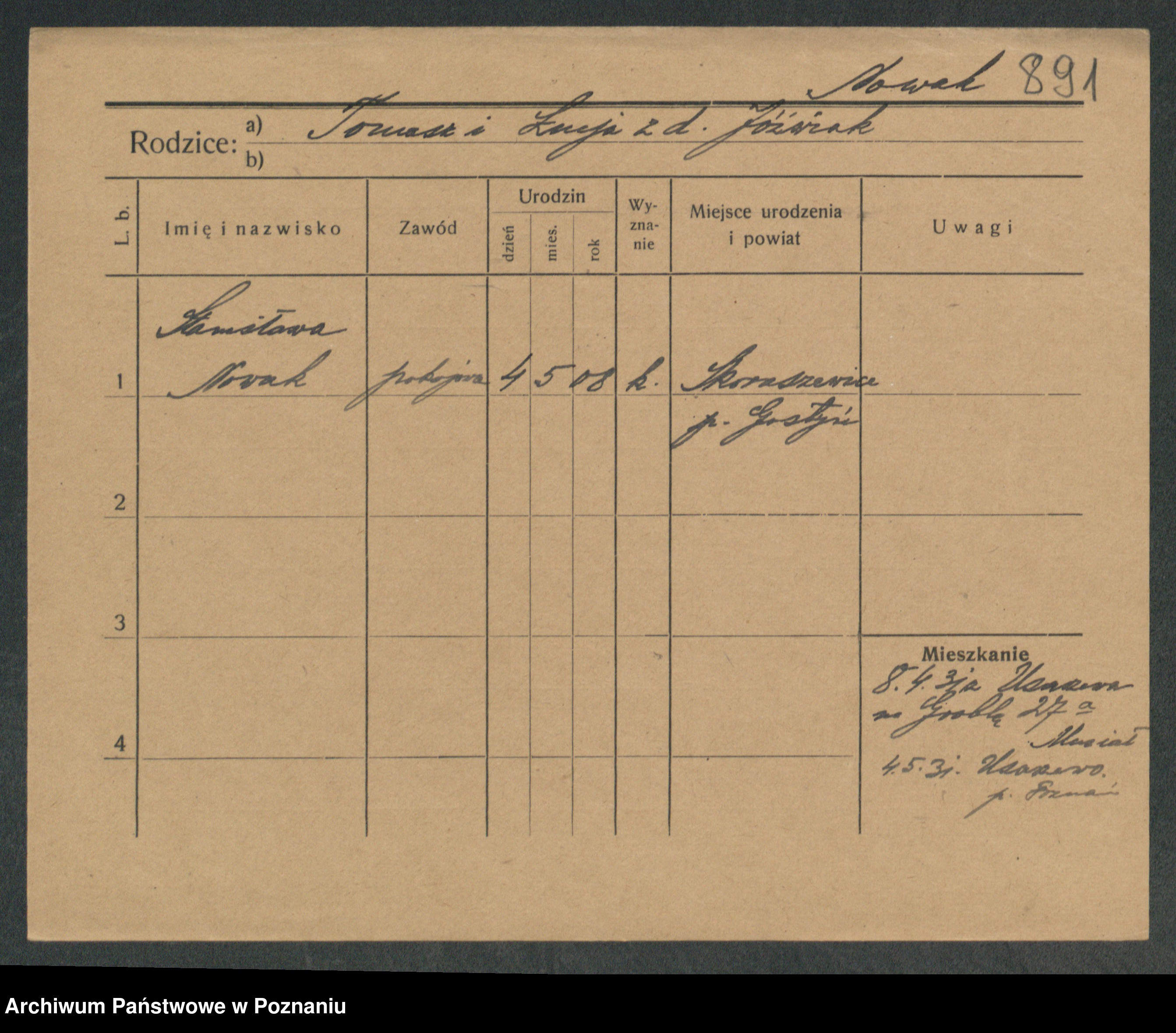 Podgląd karty osobowej dostępny jest po kliknięciu na nazwisko lub ikonkę karty. Można dokonywać powiększenia (ikony na górze) lub przechodzić między kolejnymi skanami (strzałki po bokach).