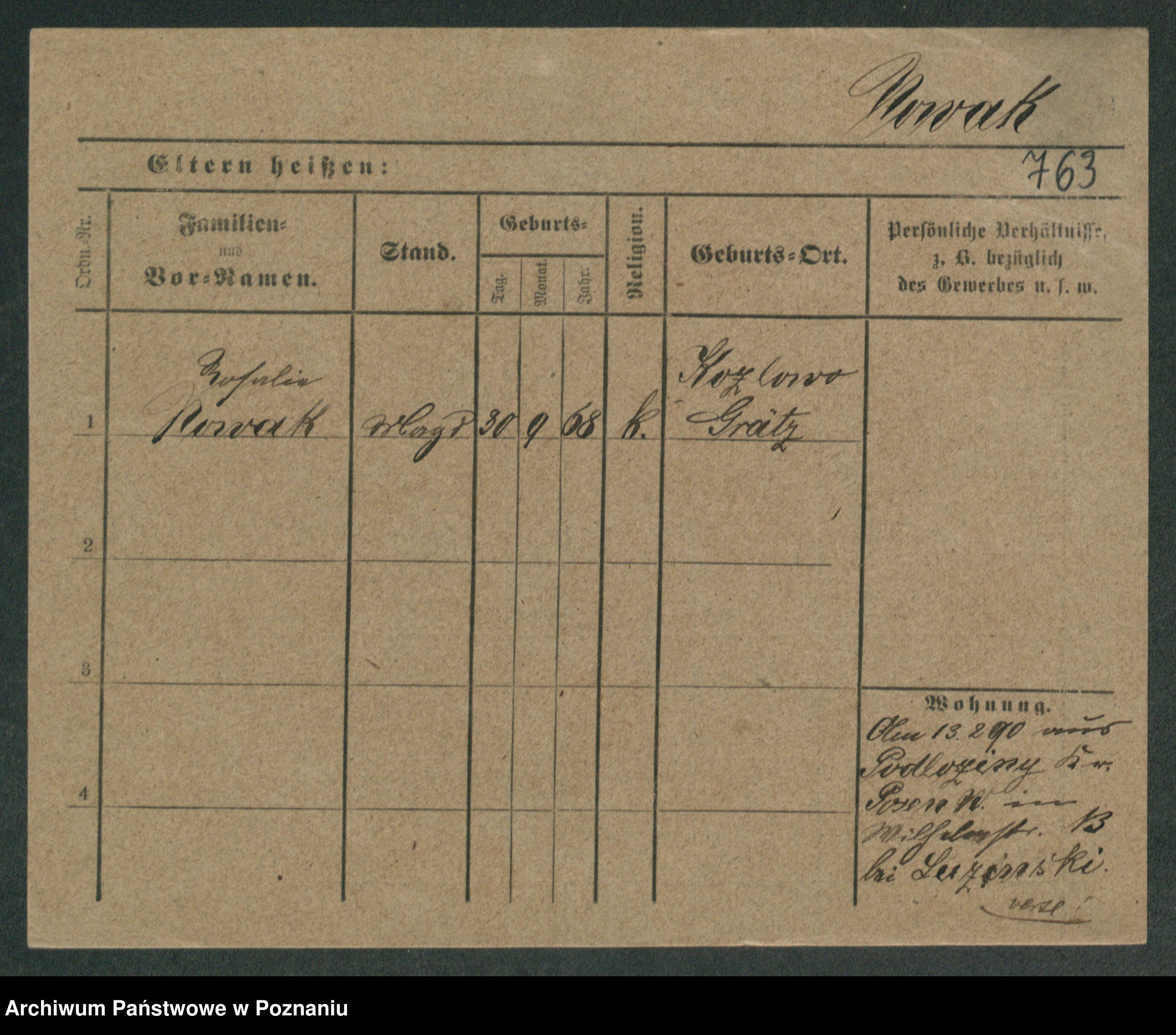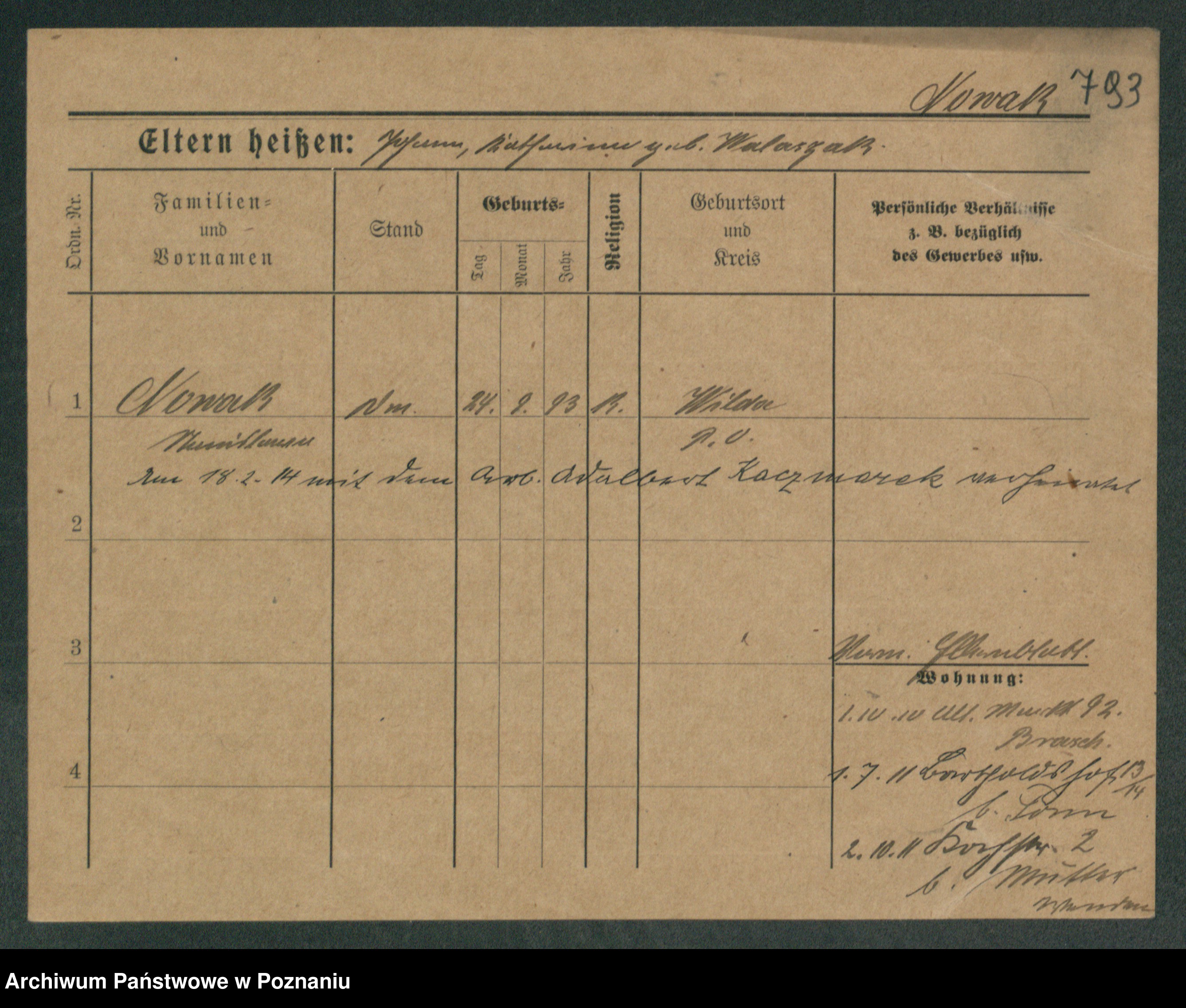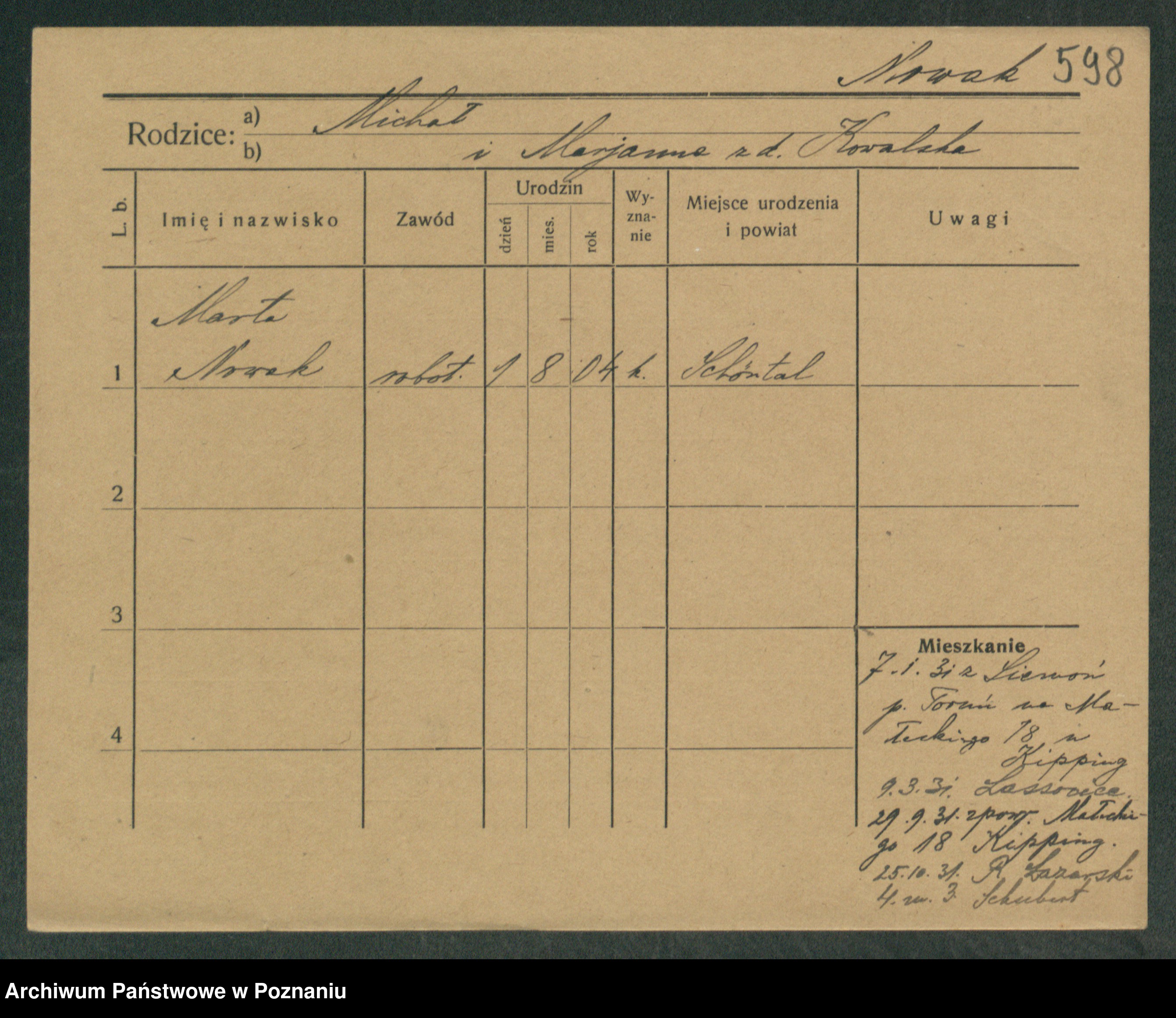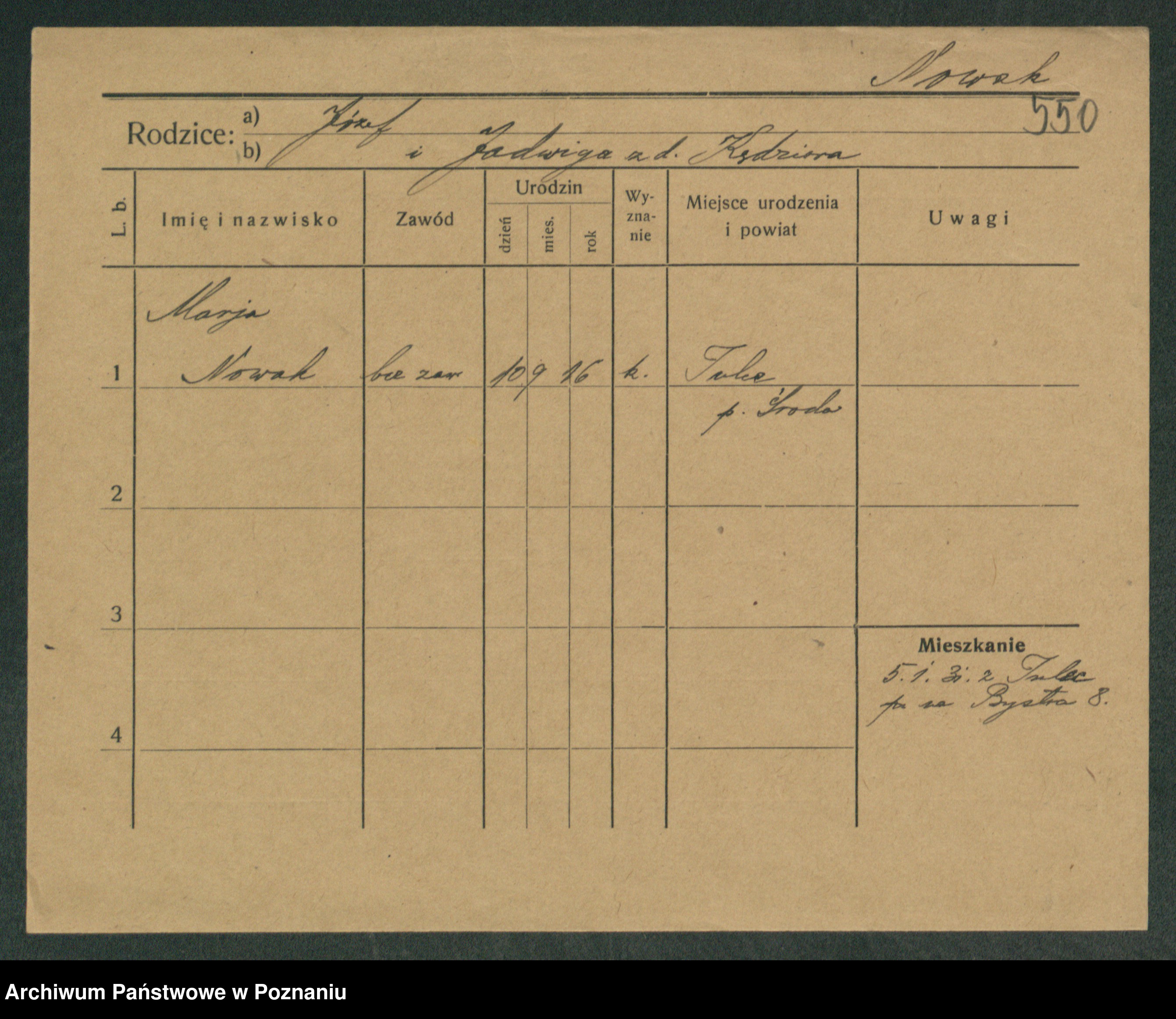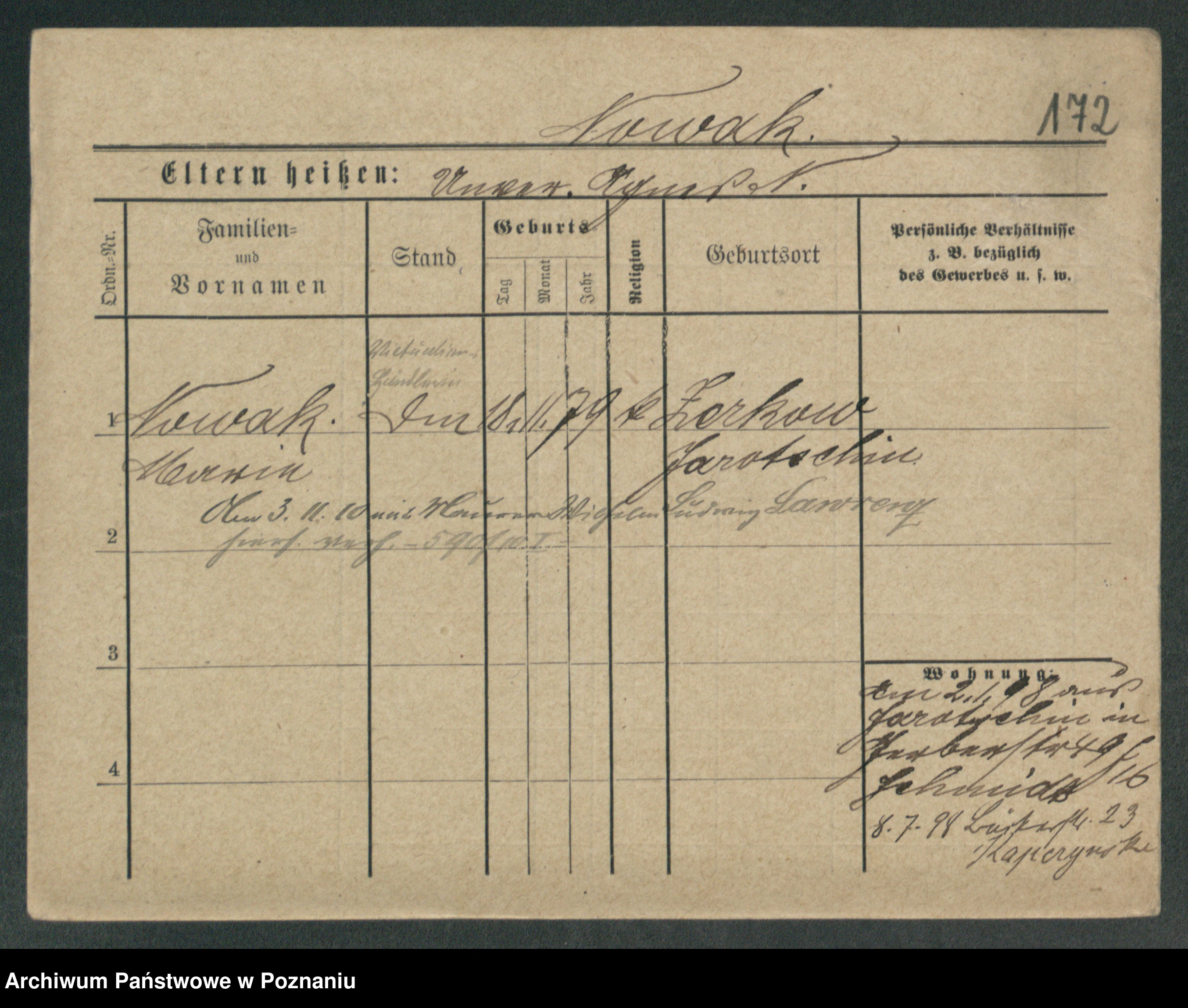 Podgląd karty osobowej dostępny jest po kliknięciu na nazwisko lub ikonkę karty. Można dokonywać powiększenia (ikony na górze) lub przechodzić między kolejnymi skanami (strzałki po bokach).