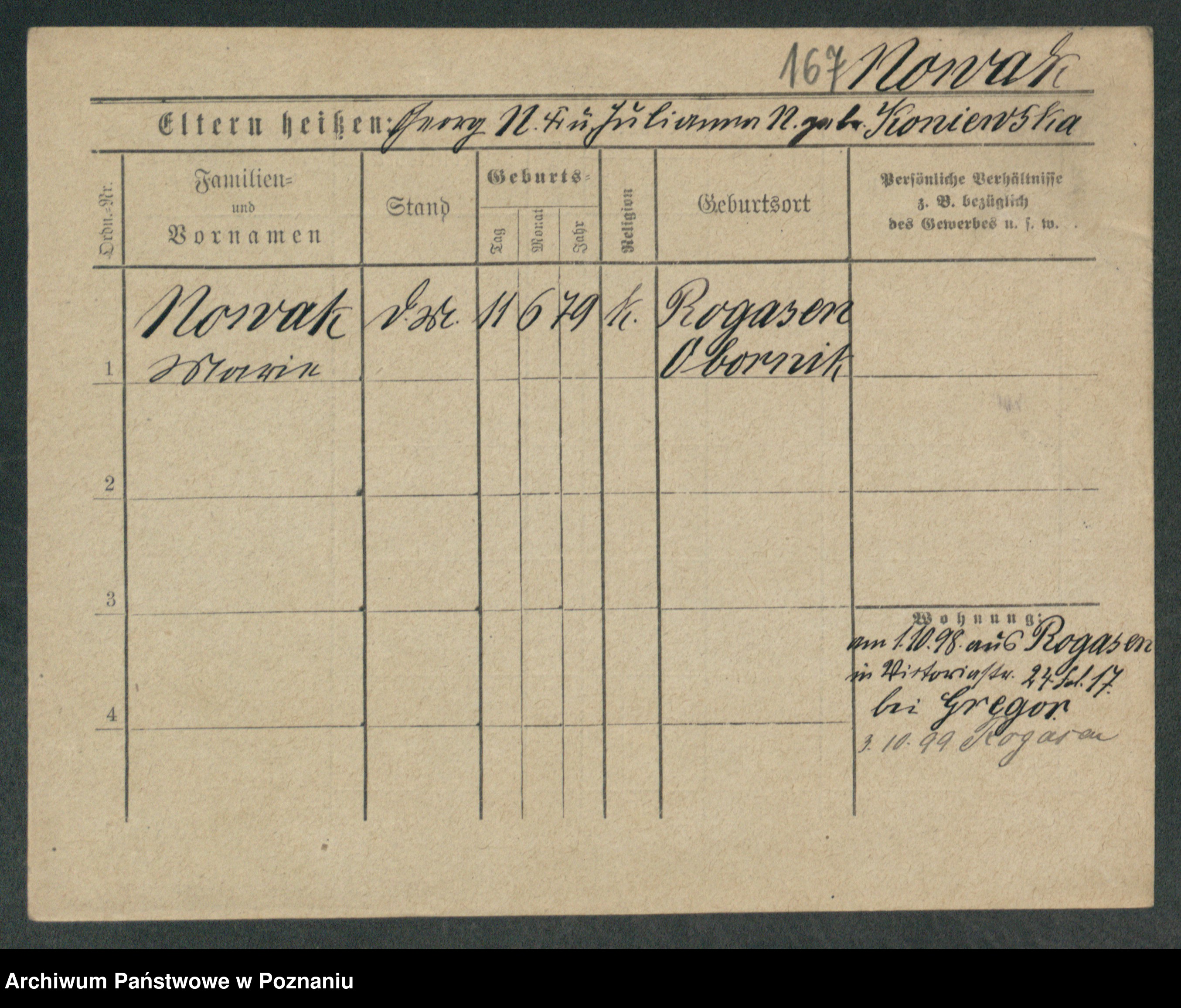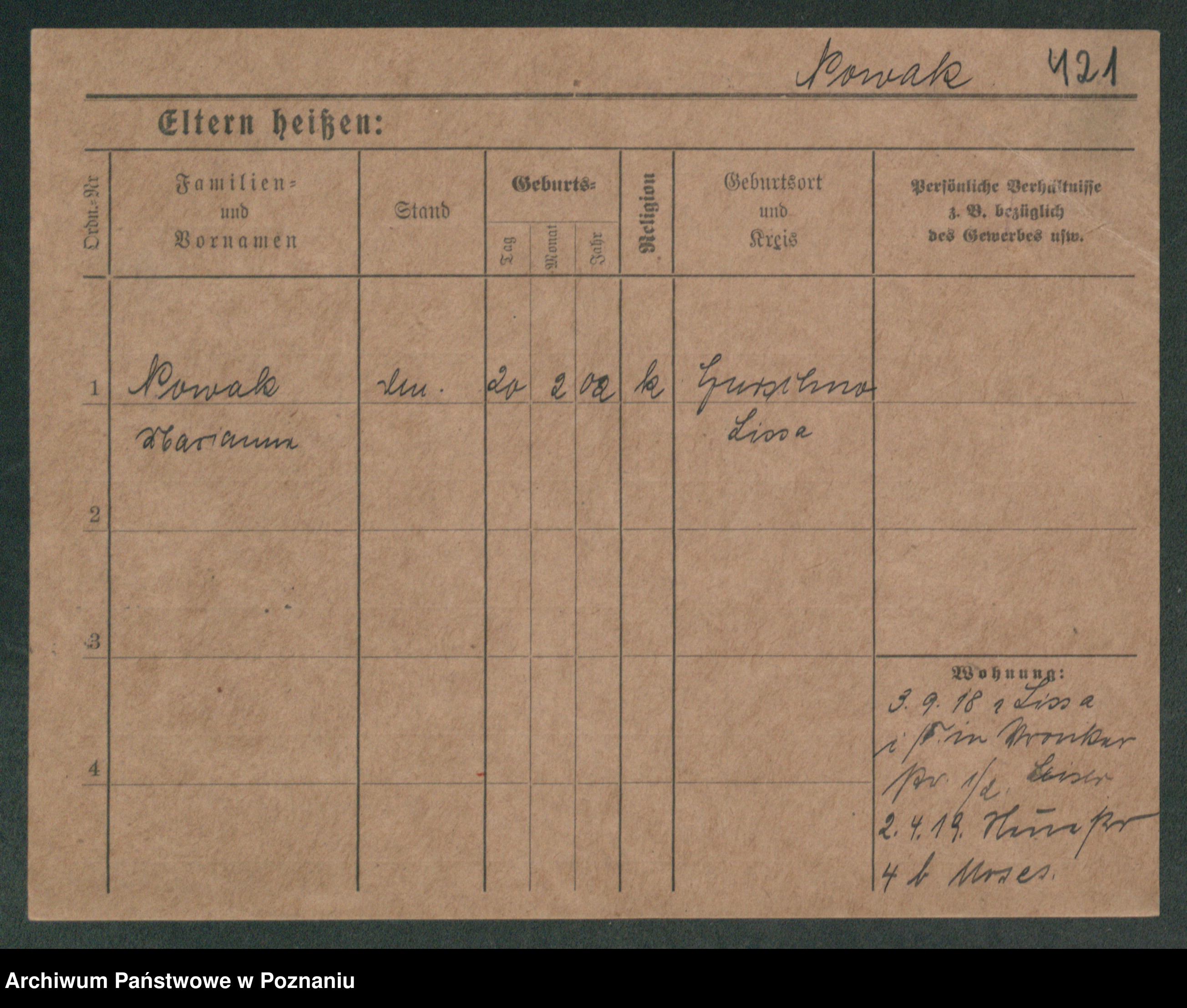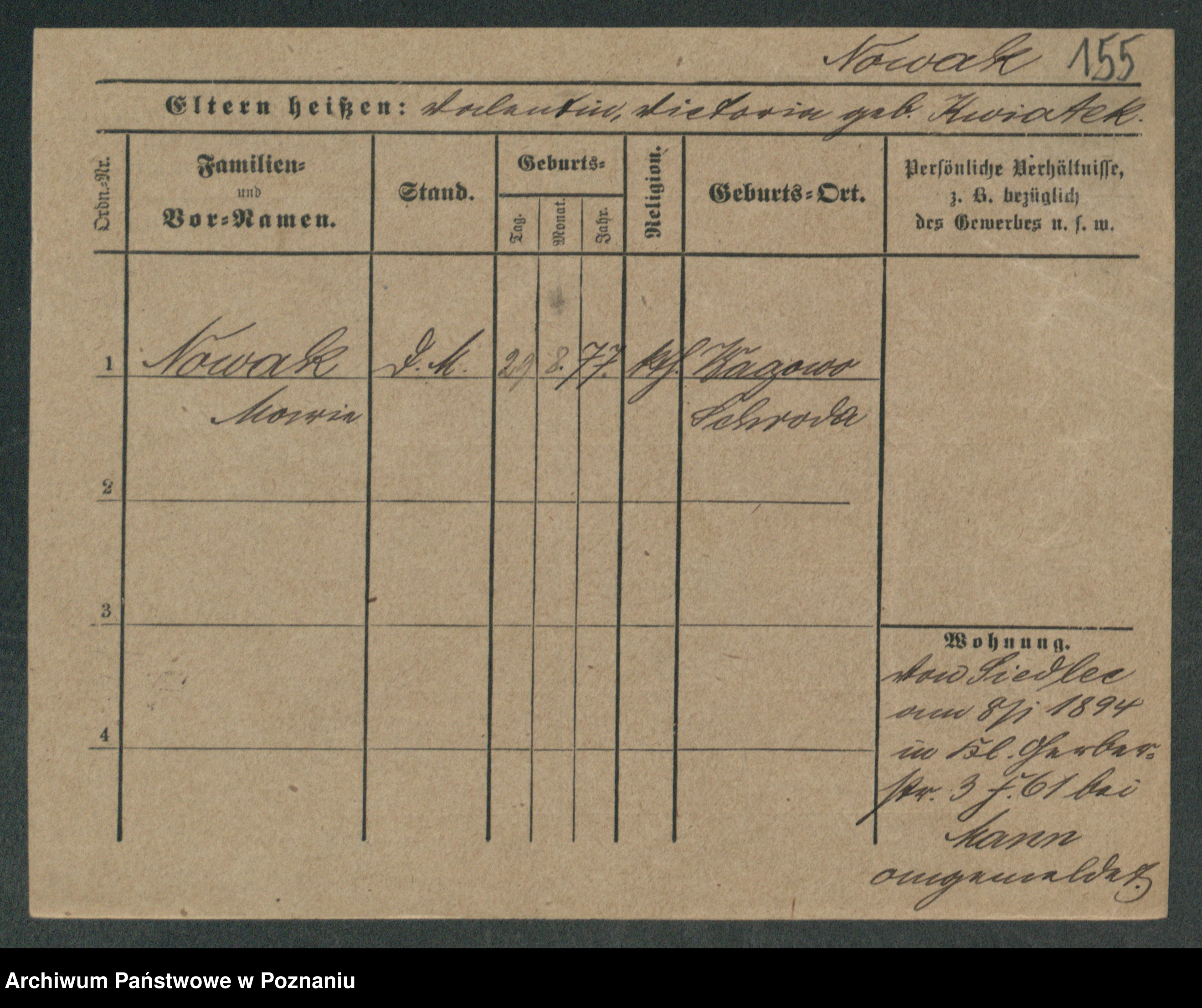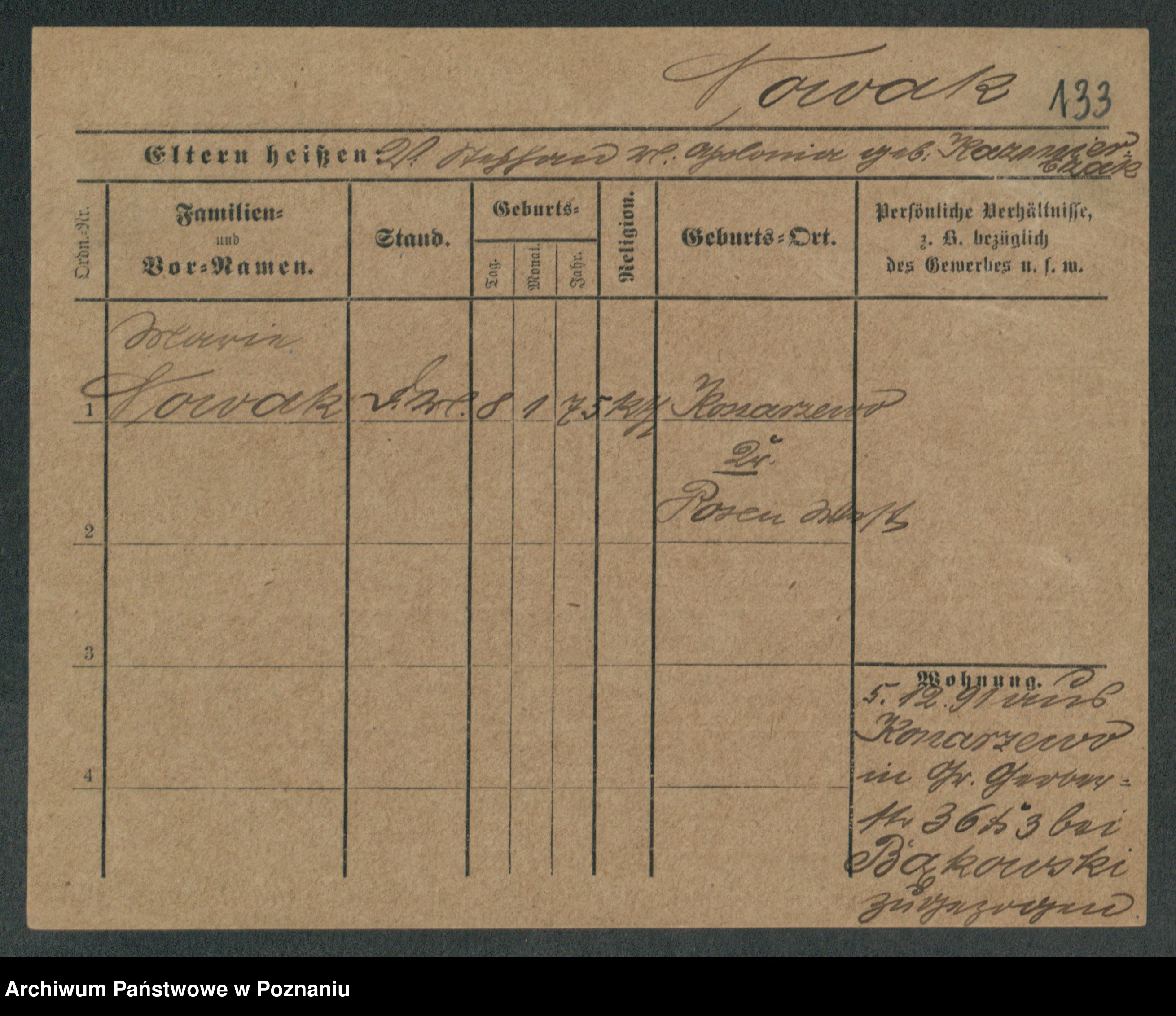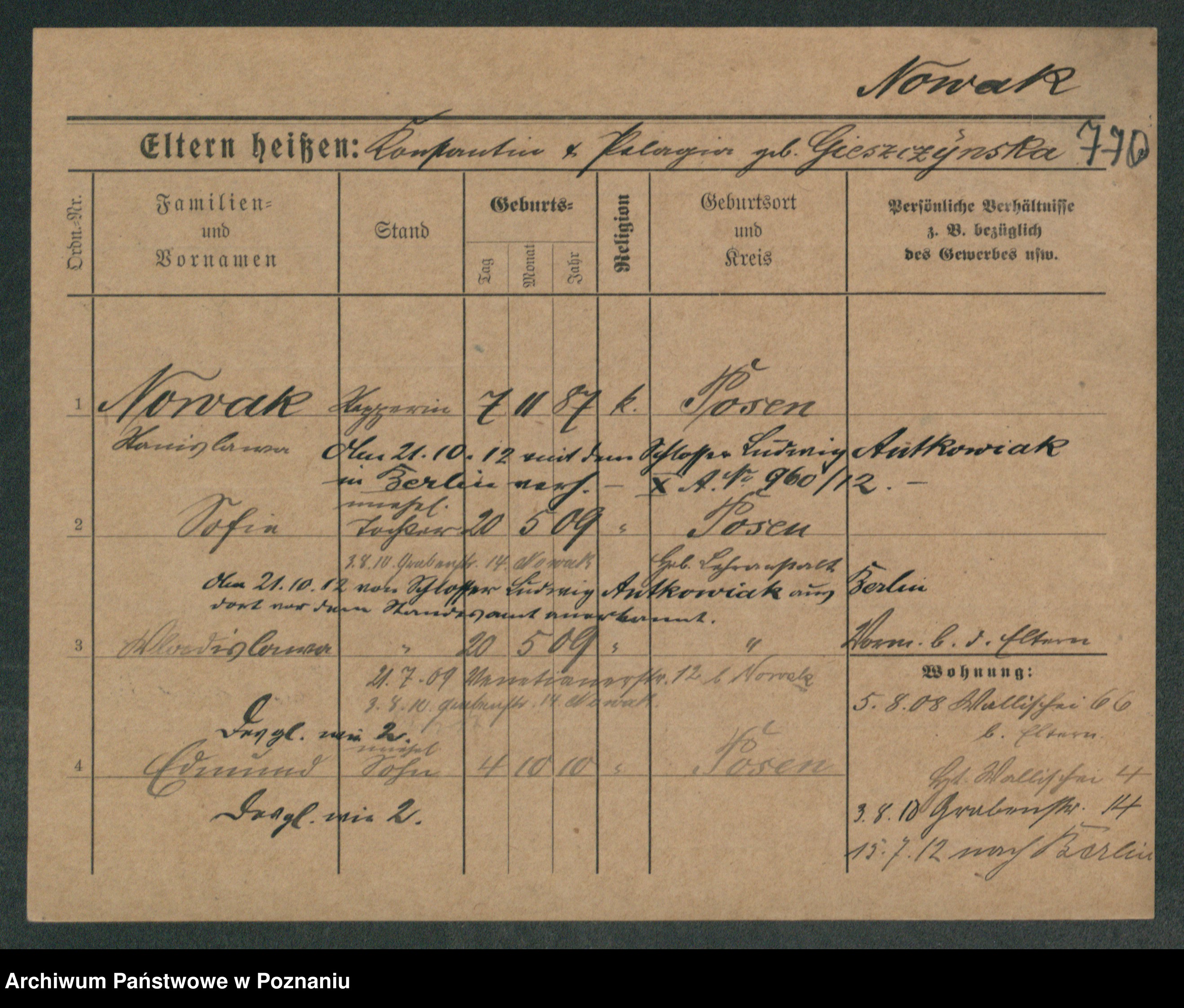 Podgląd karty osobowej dostępny jest po kliknięciu na nazwisko lub ikonkę karty. Można dokonywać powiększenia (ikony na górze) lub przechodzić między kolejnymi skanami (strzałki po bokach).