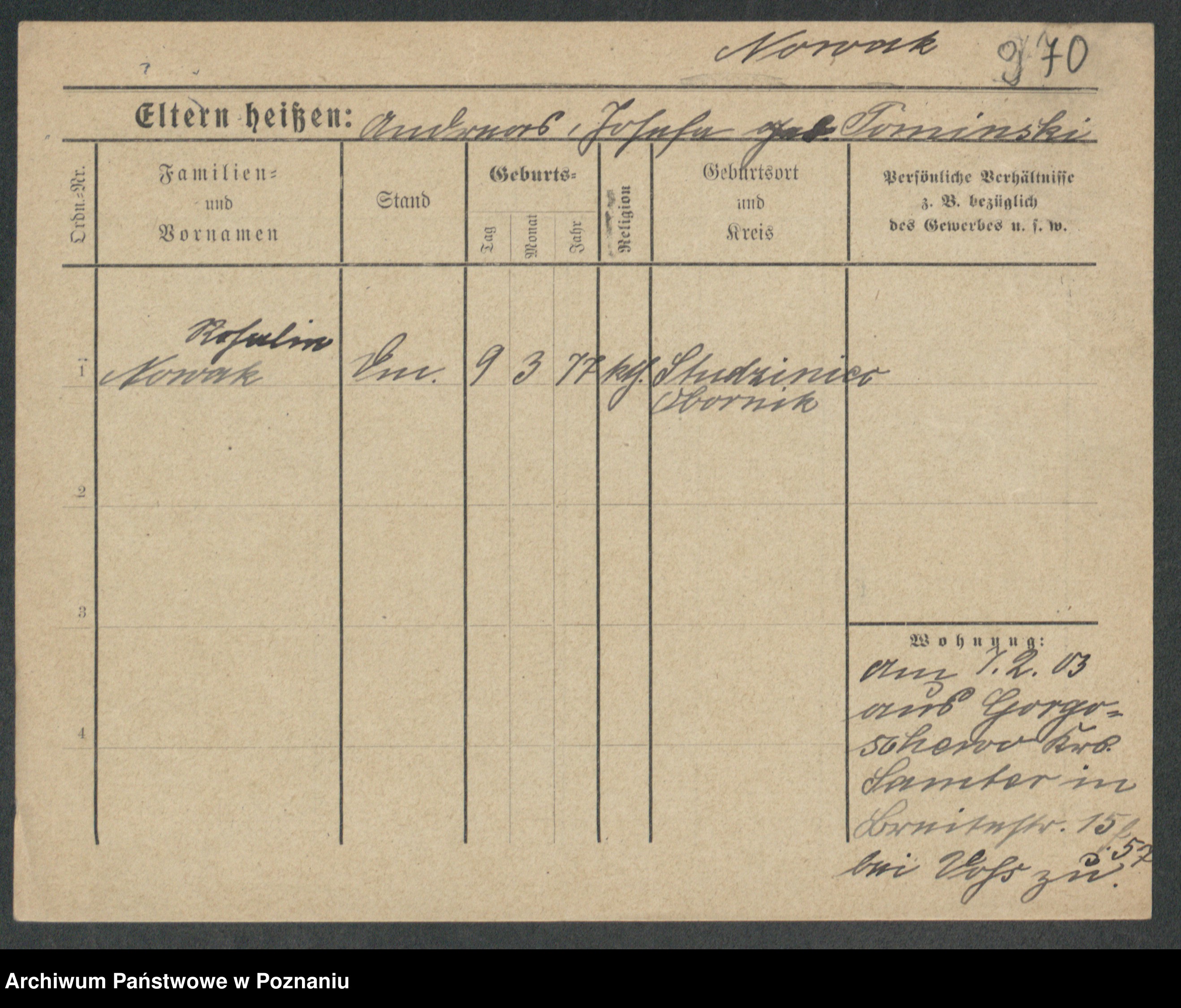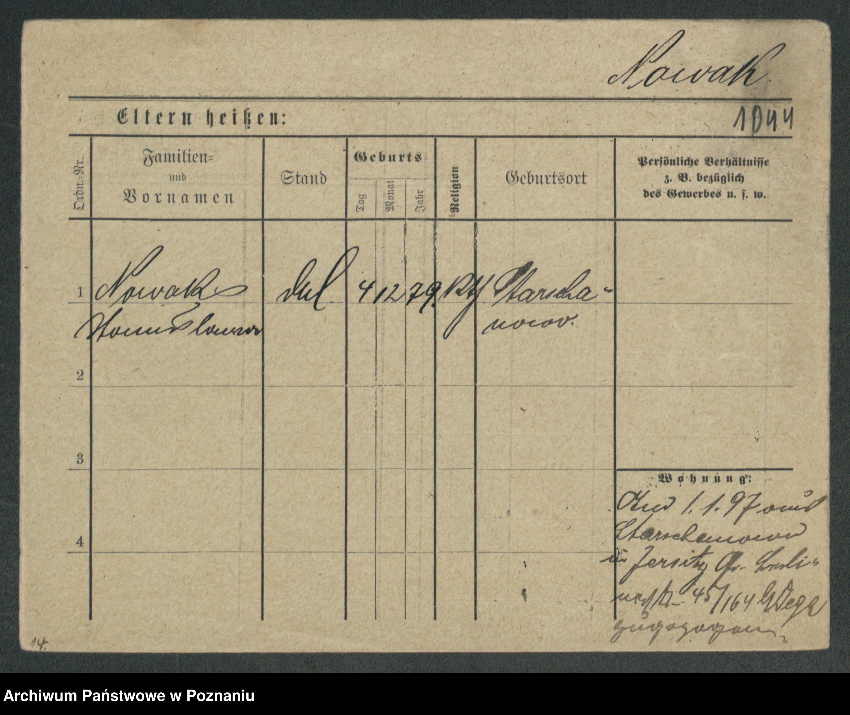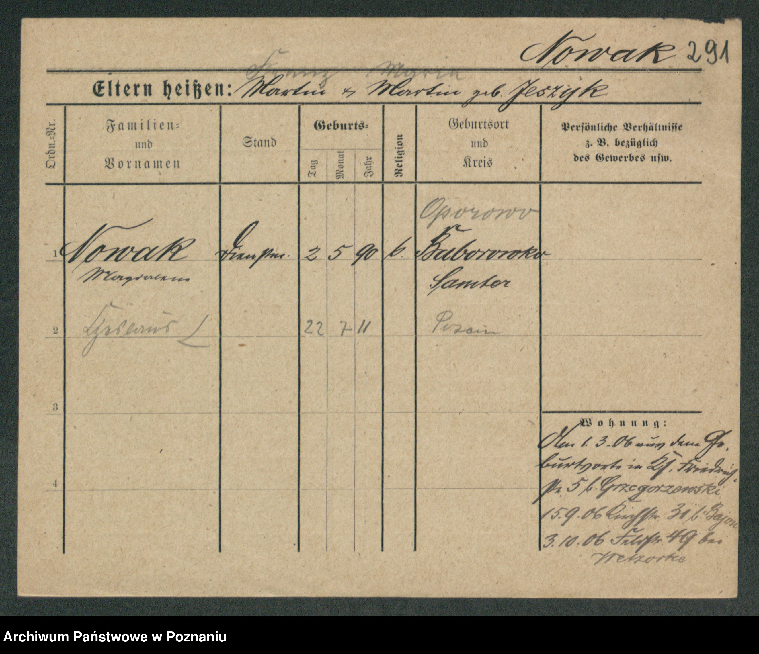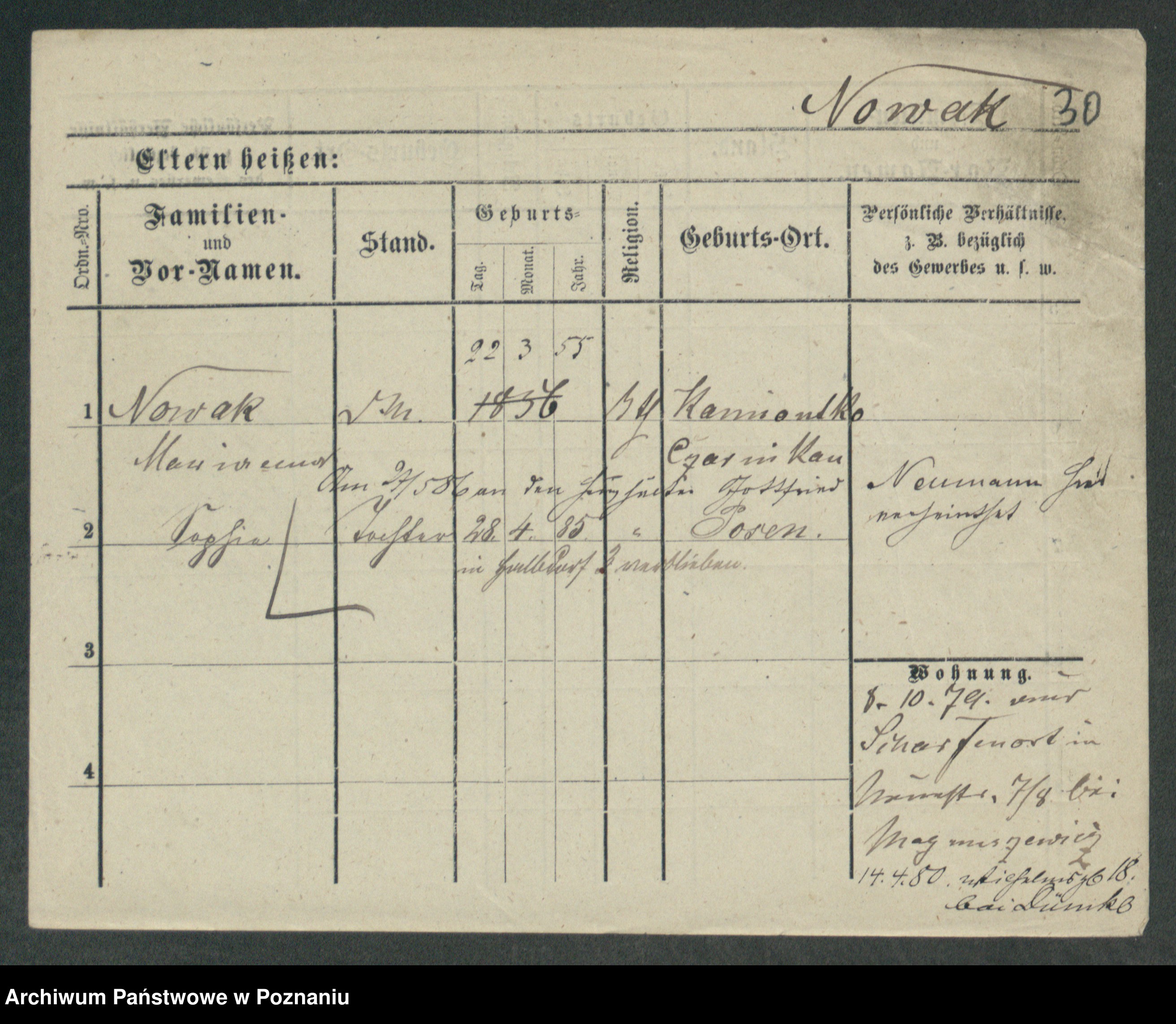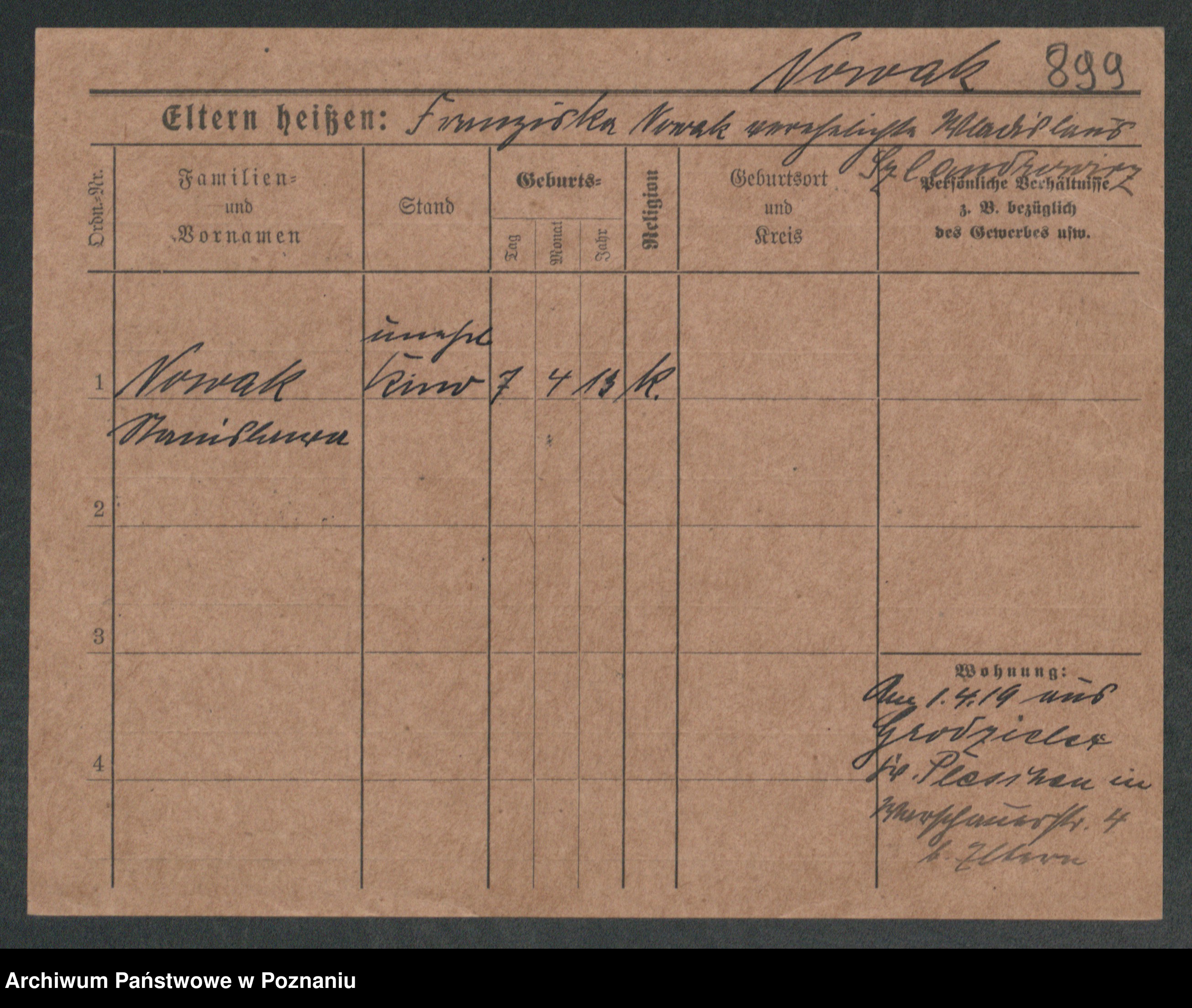 Podgląd karty osobowej dostępny jest po kliknięciu na nazwisko lub ikonkę karty. Można dokonywać powiększenia (ikony na górze) lub przechodzić między kolejnymi skanami (strzałki po bokach).