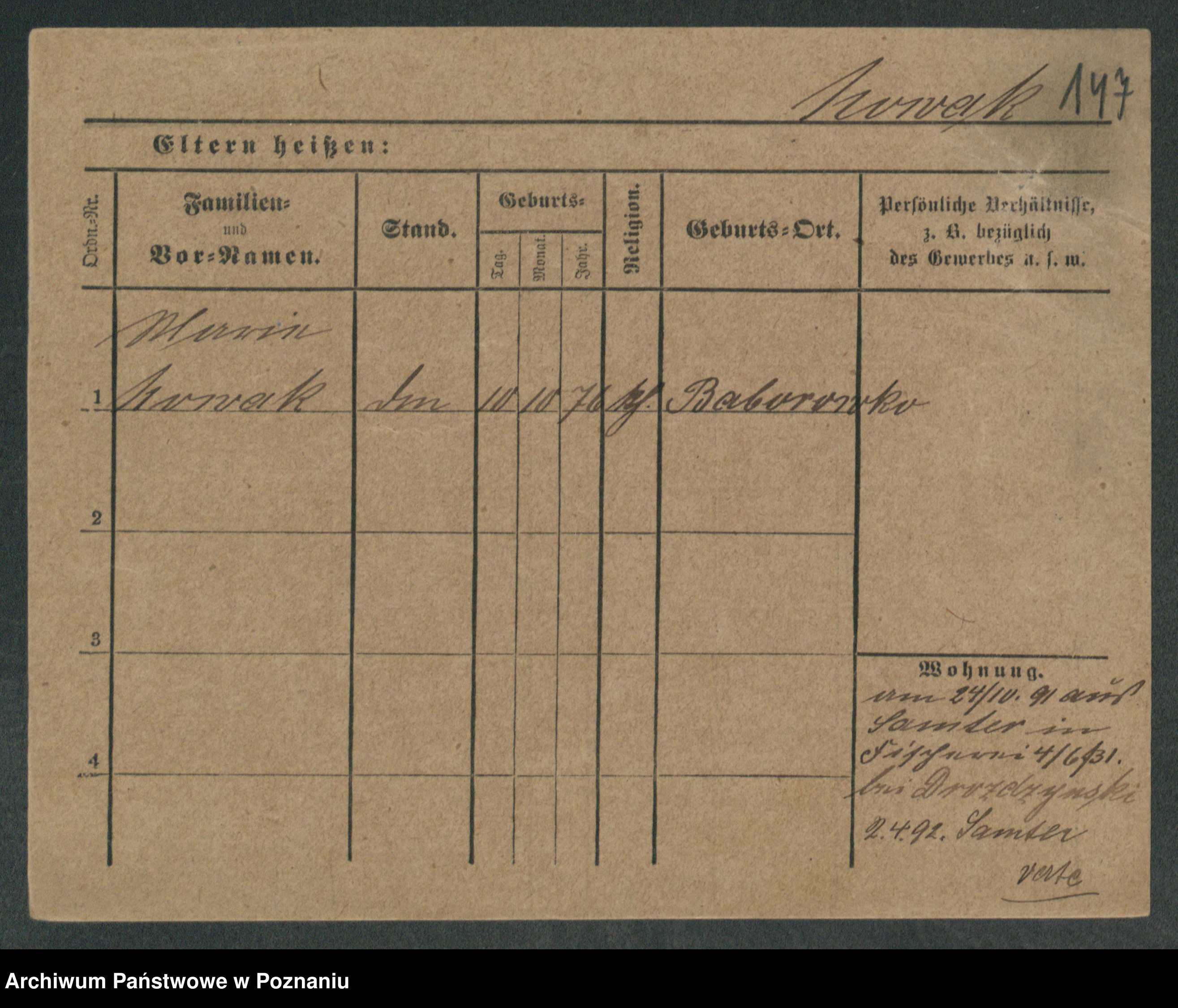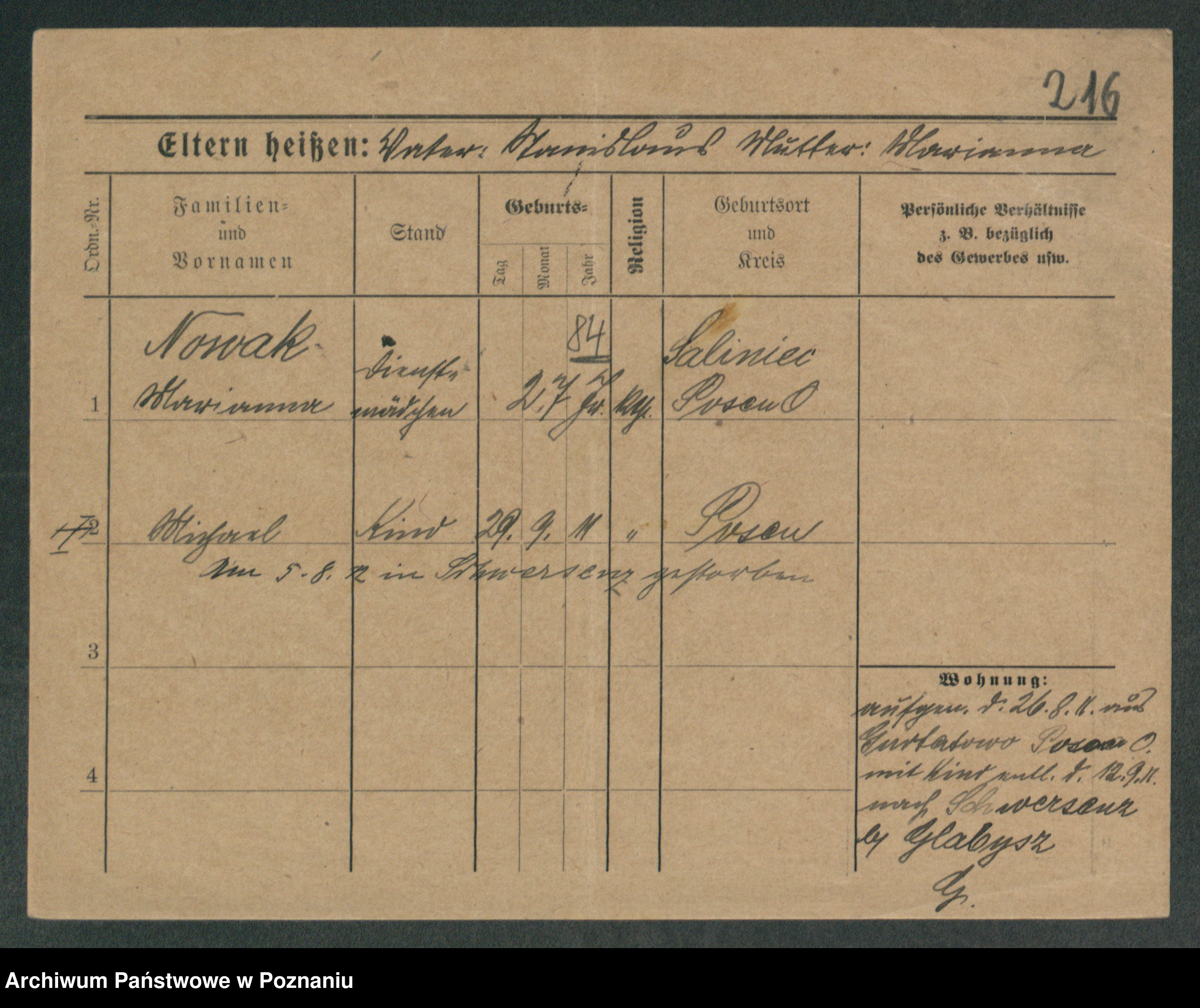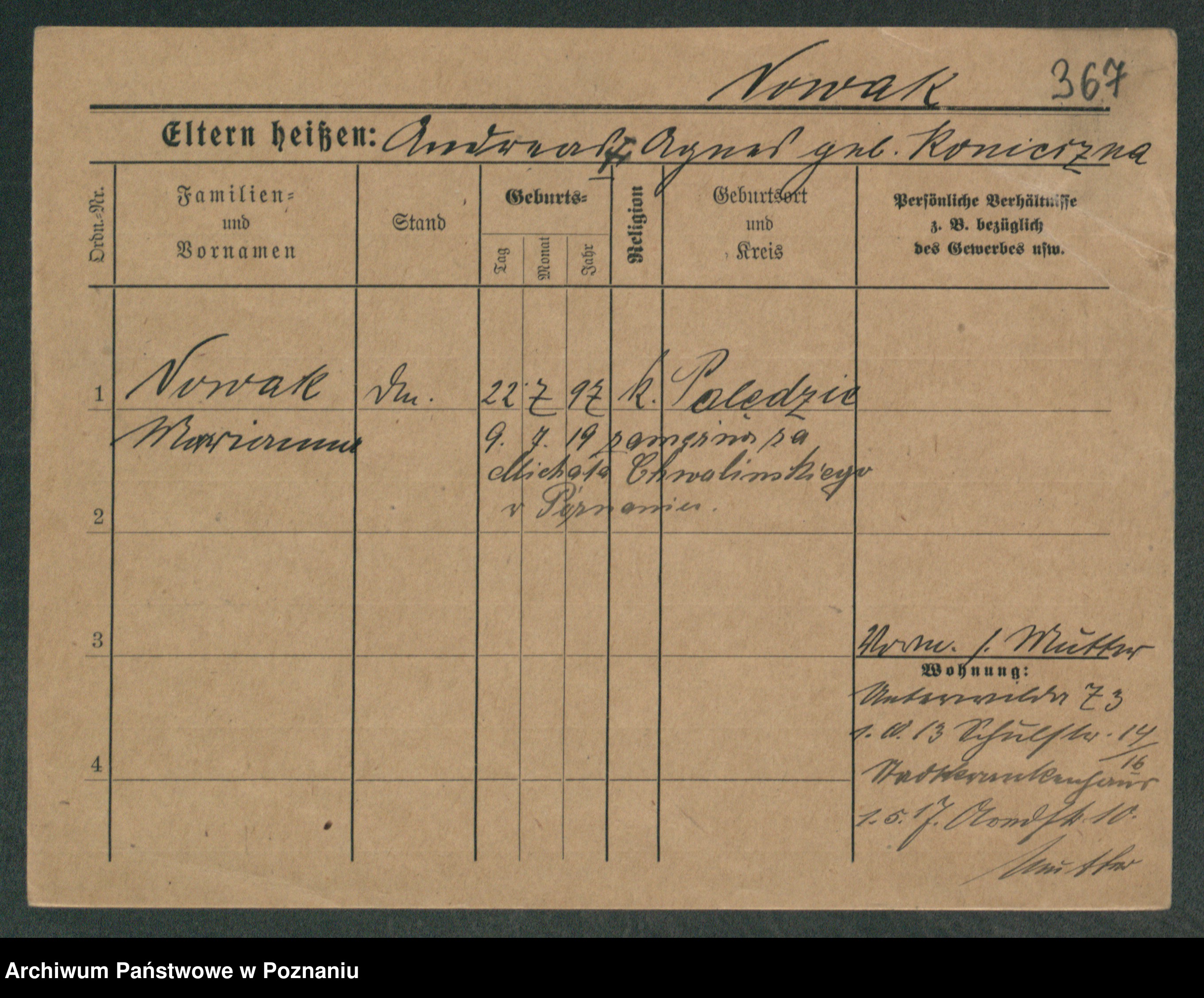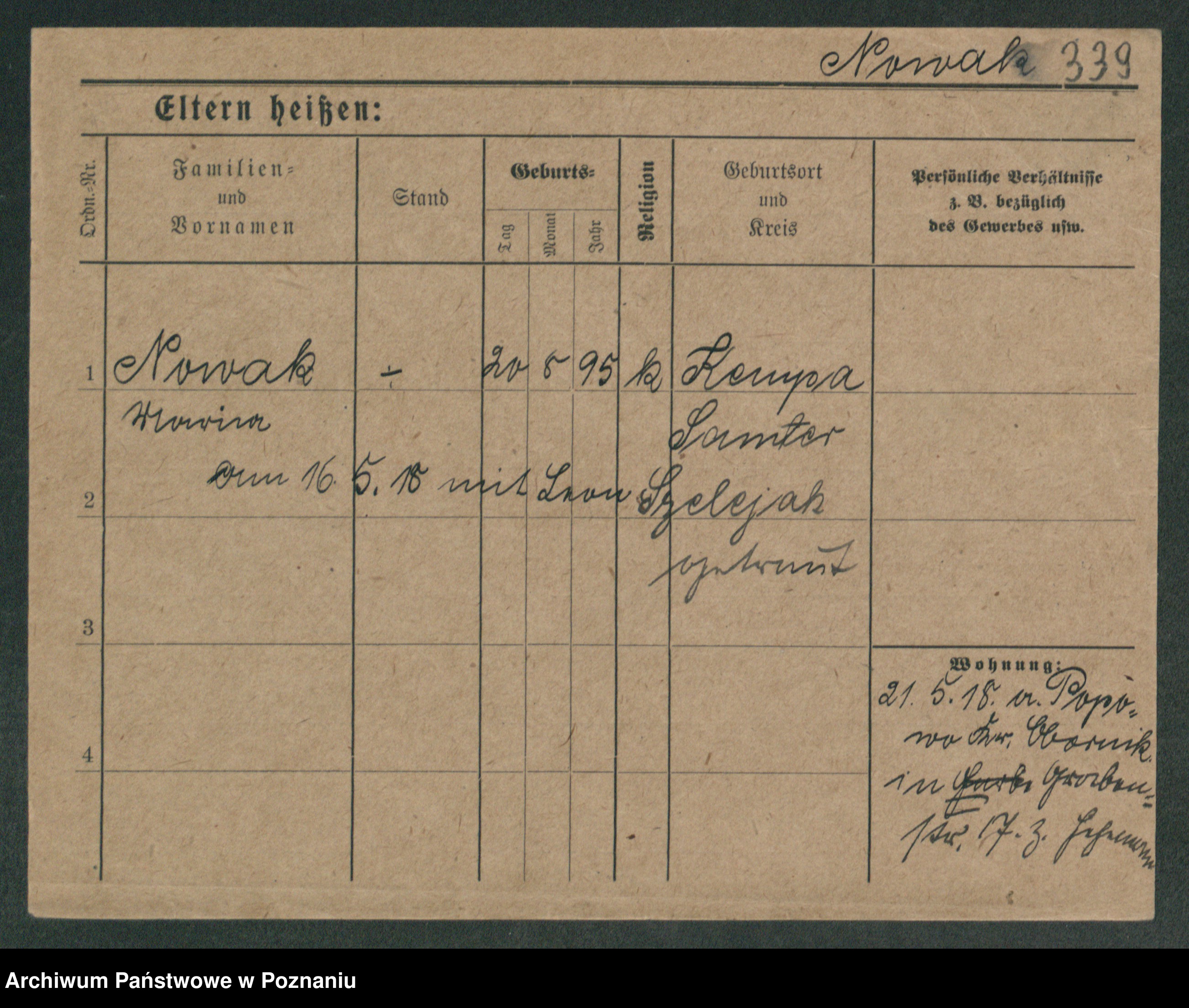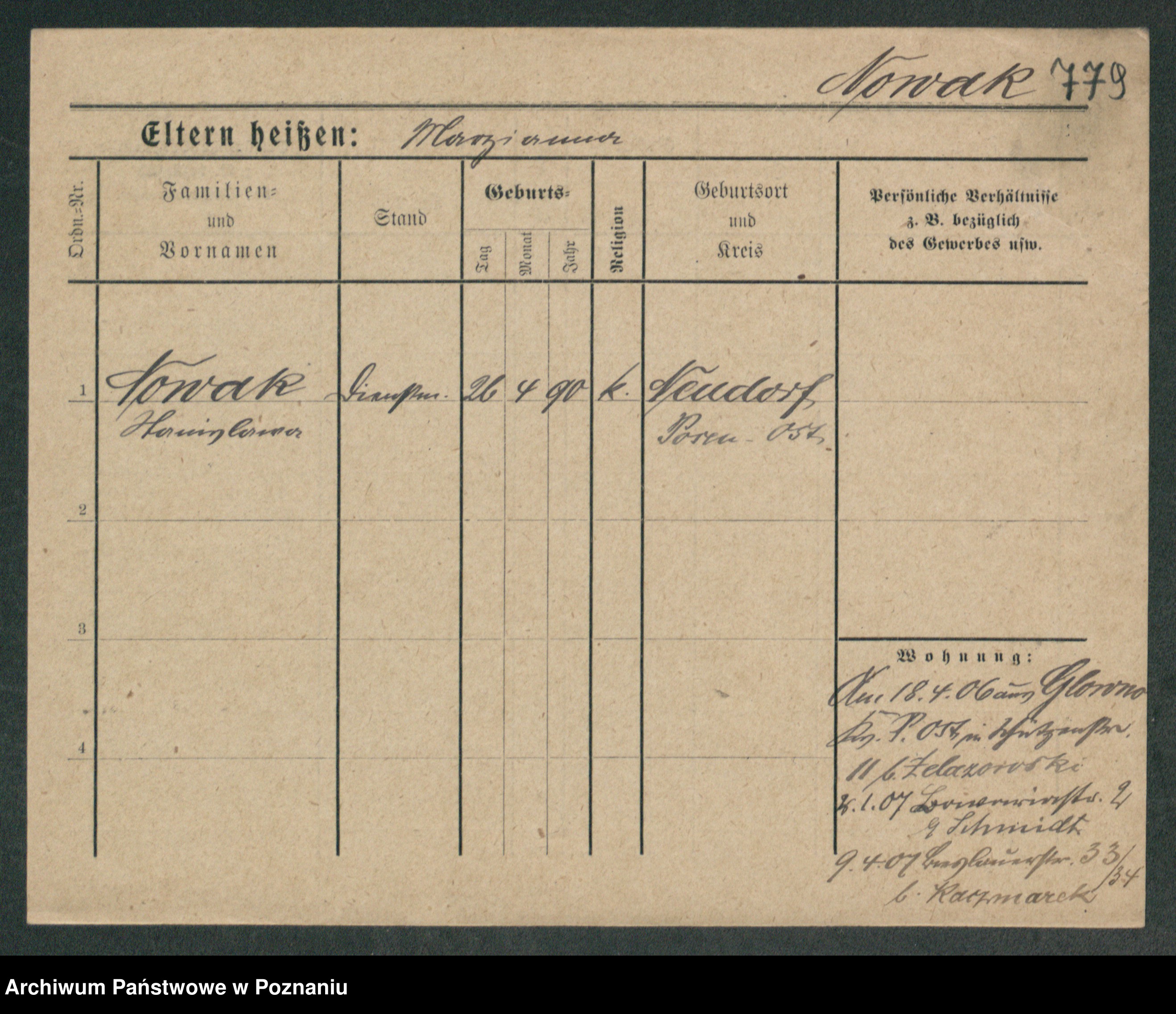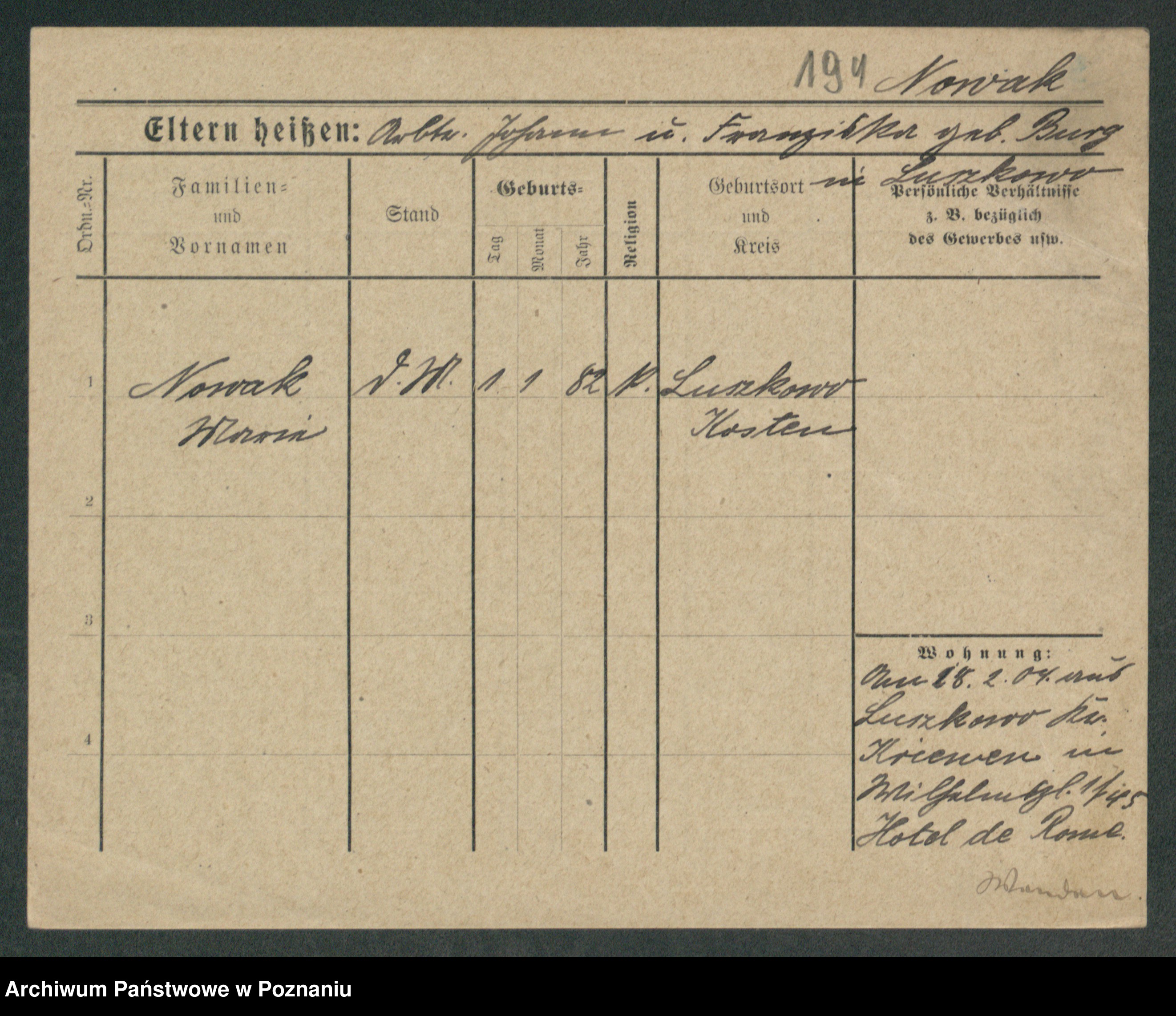 Podgląd karty osobowej dostępny jest po kliknięciu na nazwisko lub ikonkę karty. Można dokonywać powiększenia (ikony na górze) lub przechodzić między kolejnymi skanami (strzałki po bokach).