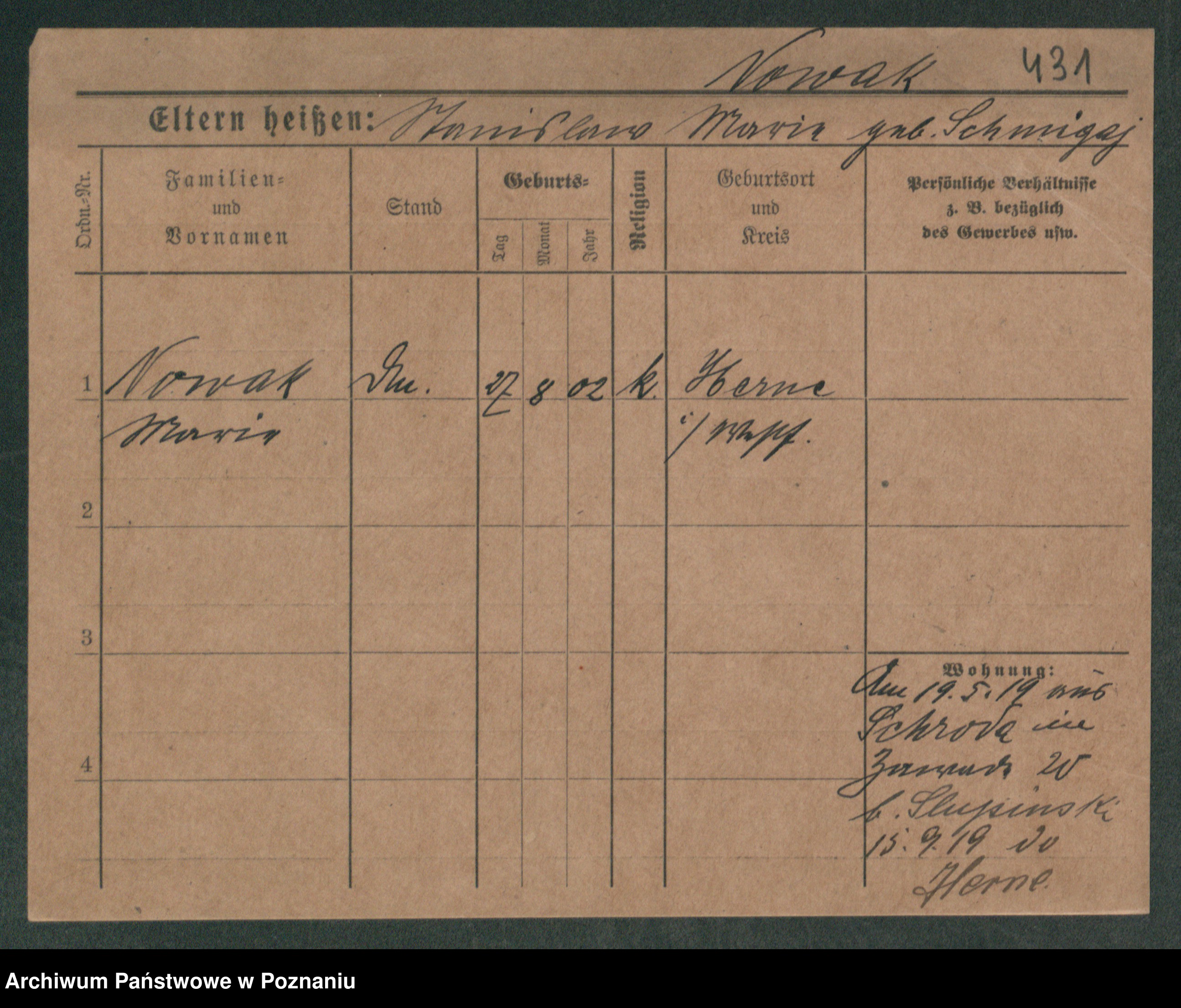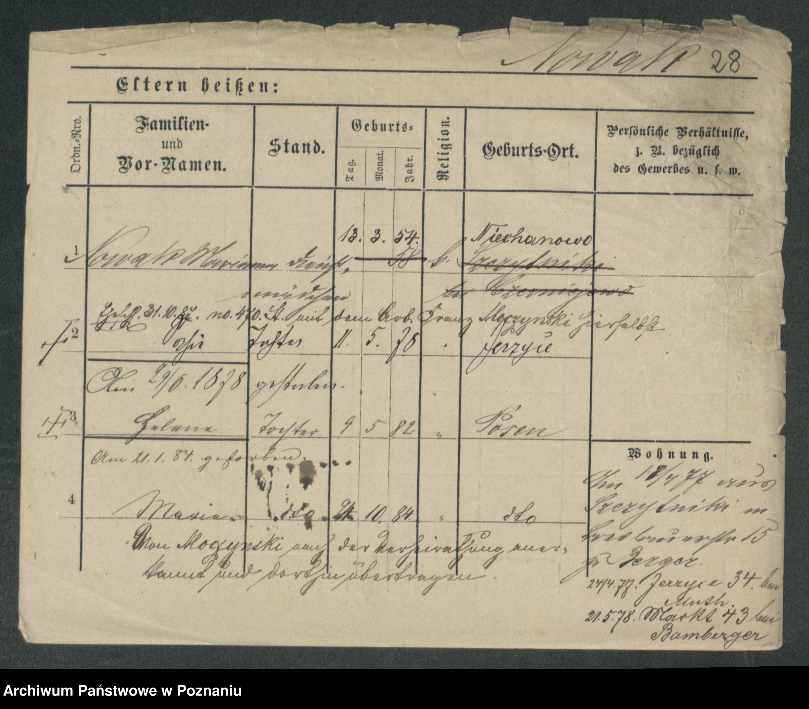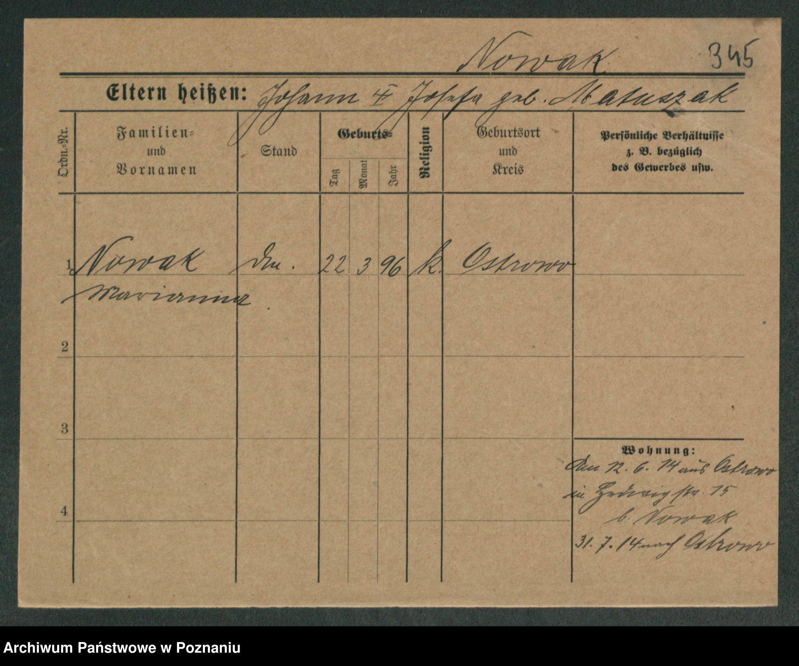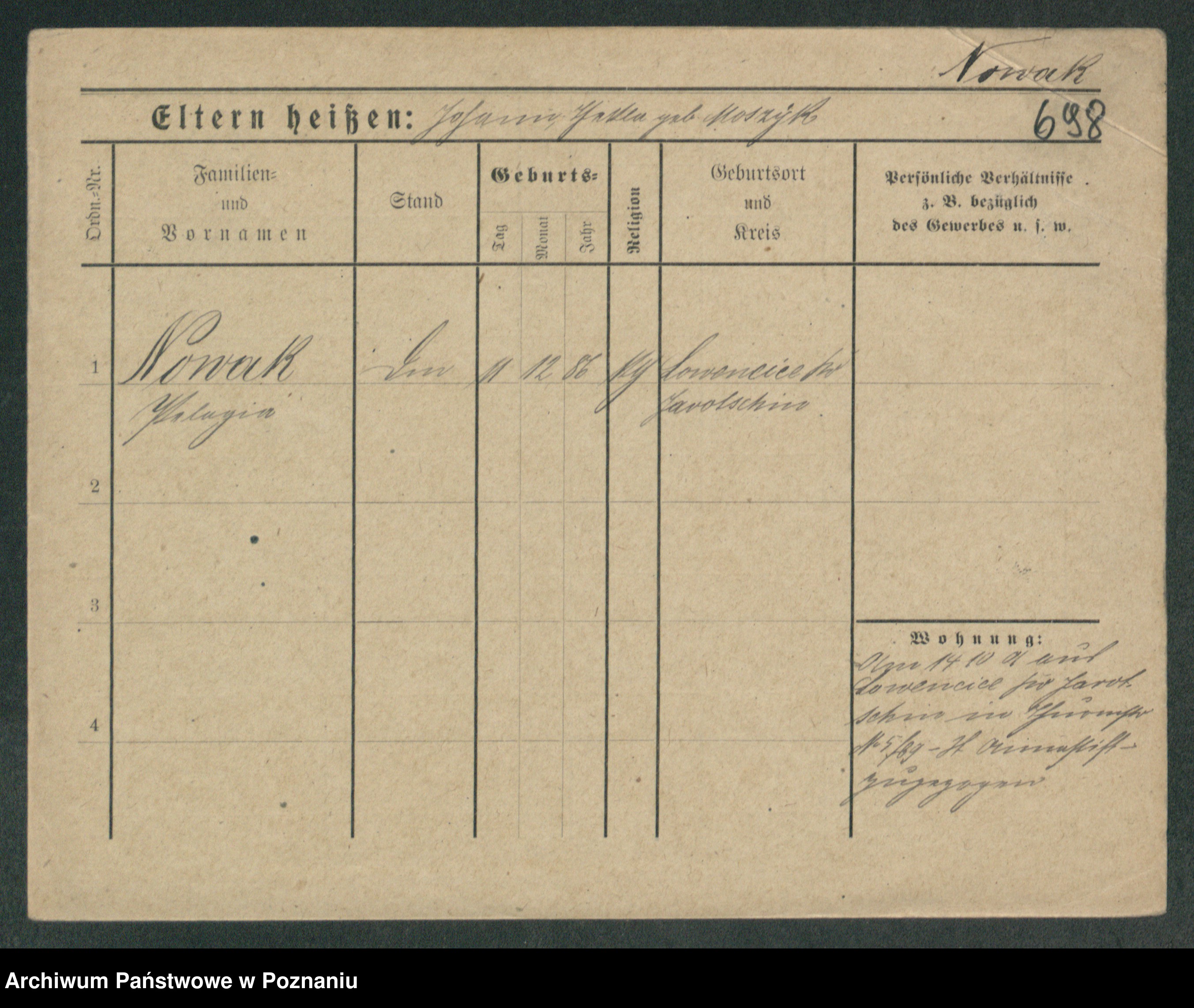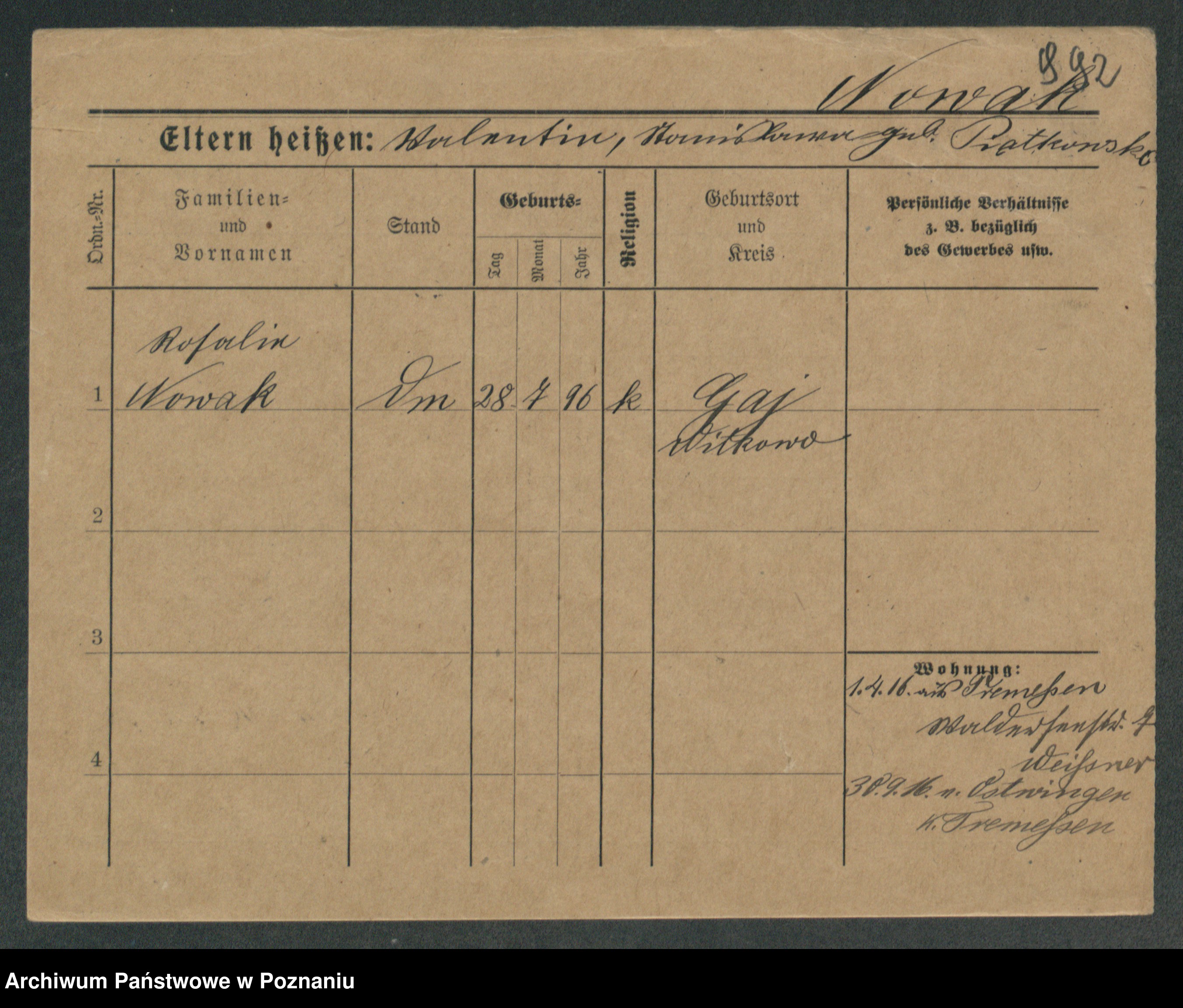 Podgląd karty osobowej dostępny jest po kliknięciu na nazwisko lub ikonkę karty. Można dokonywać powiększenia (ikony na górze) lub przechodzić między kolejnymi skanami (strzałki po bokach).