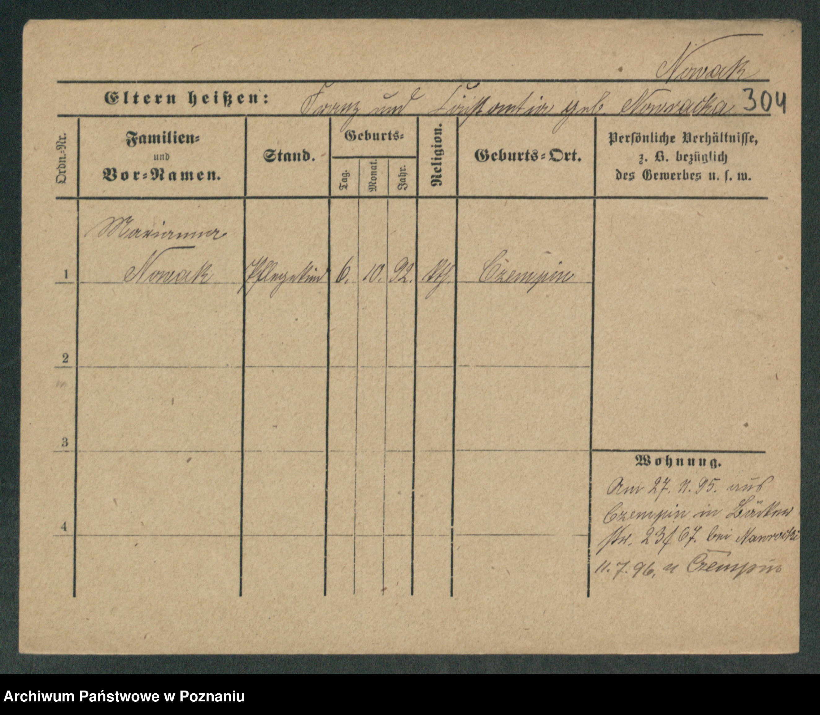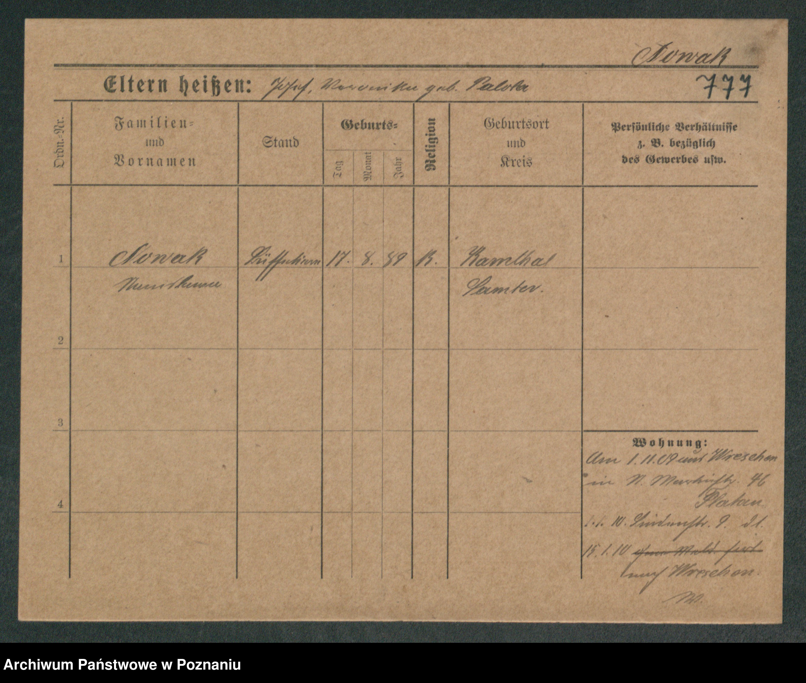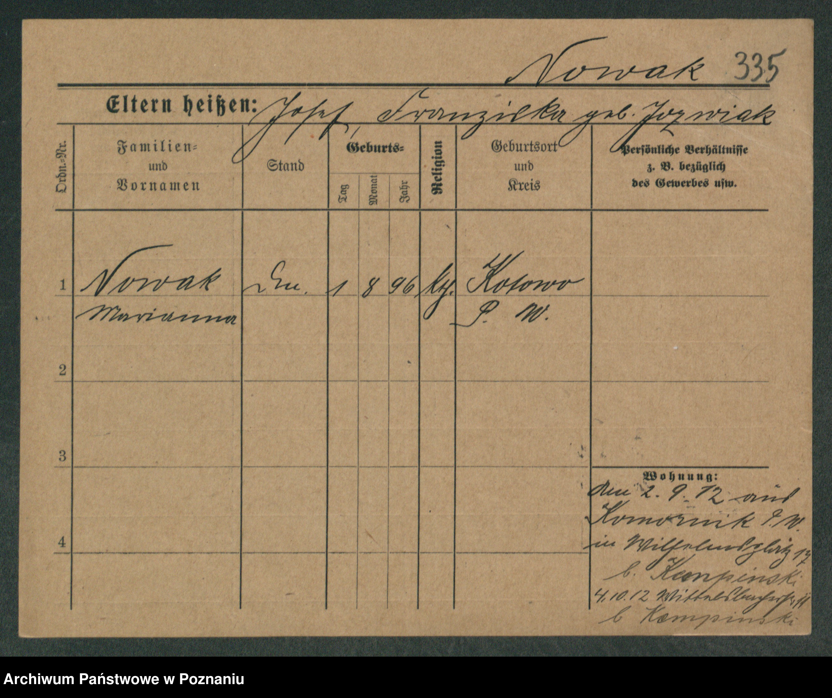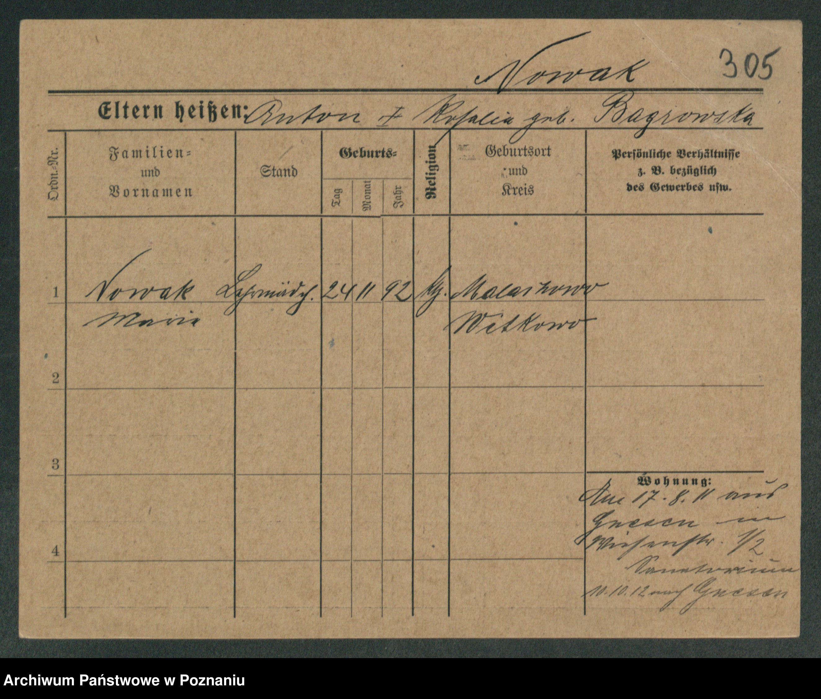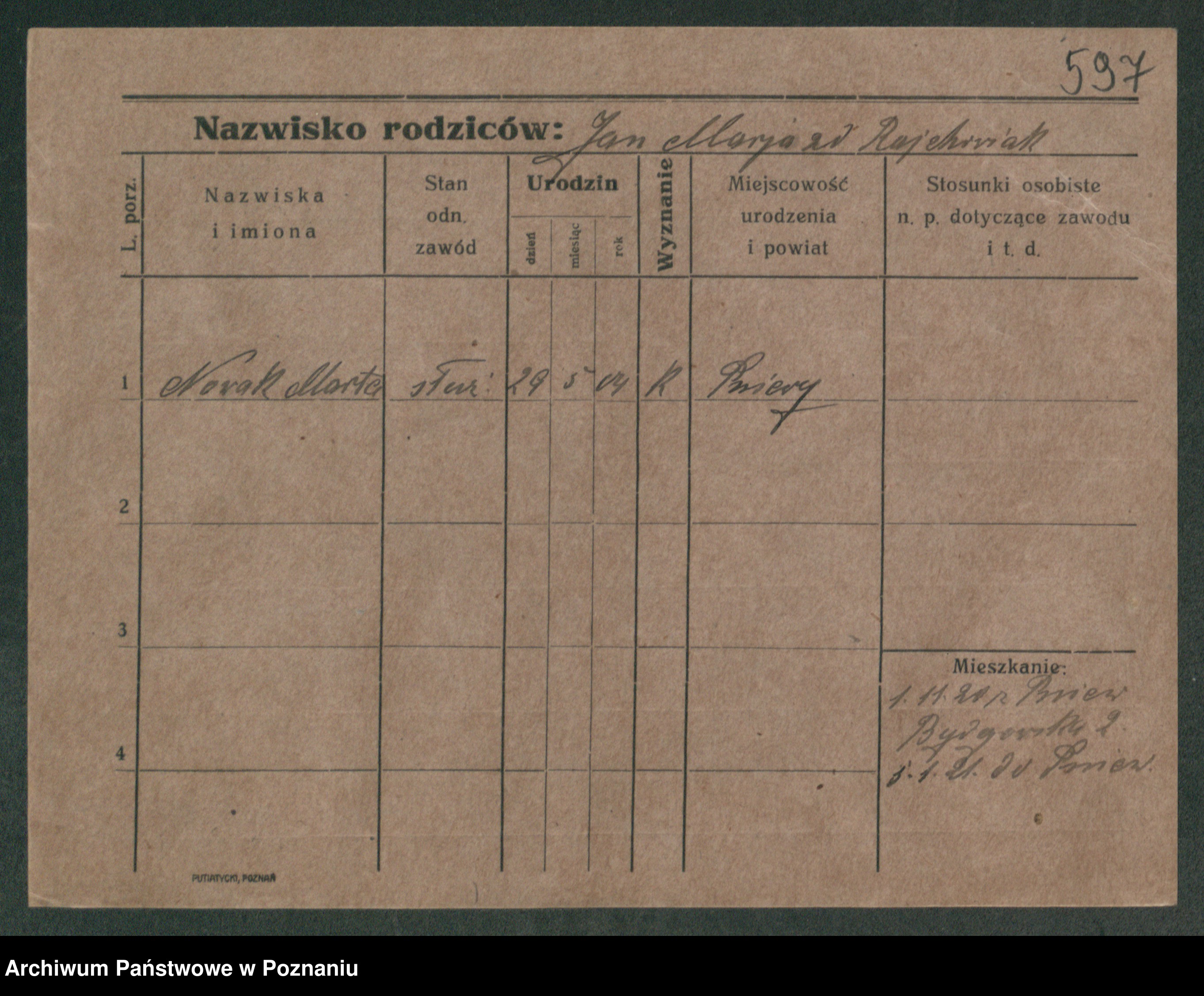 Podgląd karty osobowej dostępny jest po kliknięciu na nazwisko lub ikonkę karty. Można dokonywać powiększenia (ikony na górze) lub przechodzić między kolejnymi skanami (strzałki po bokach).