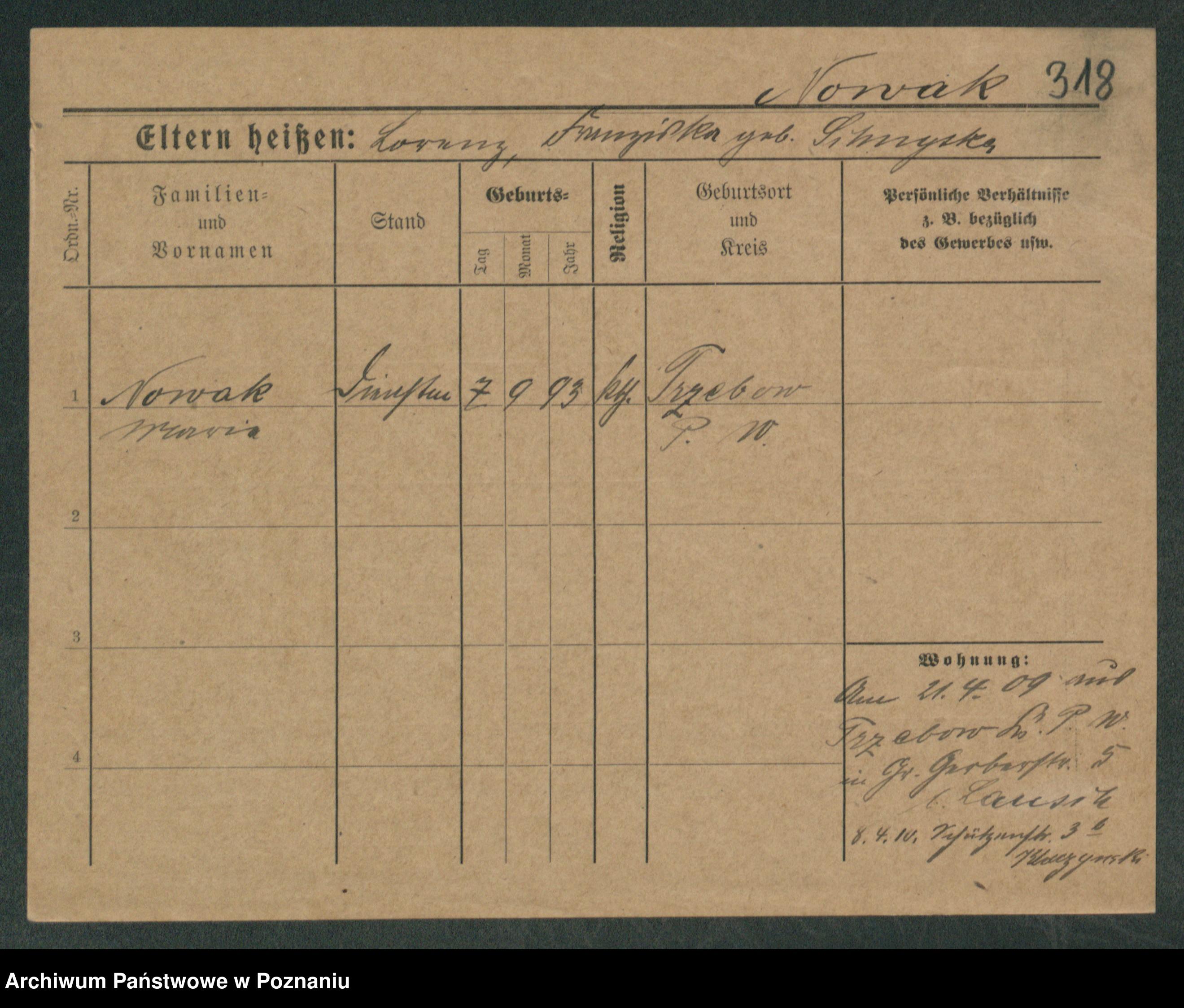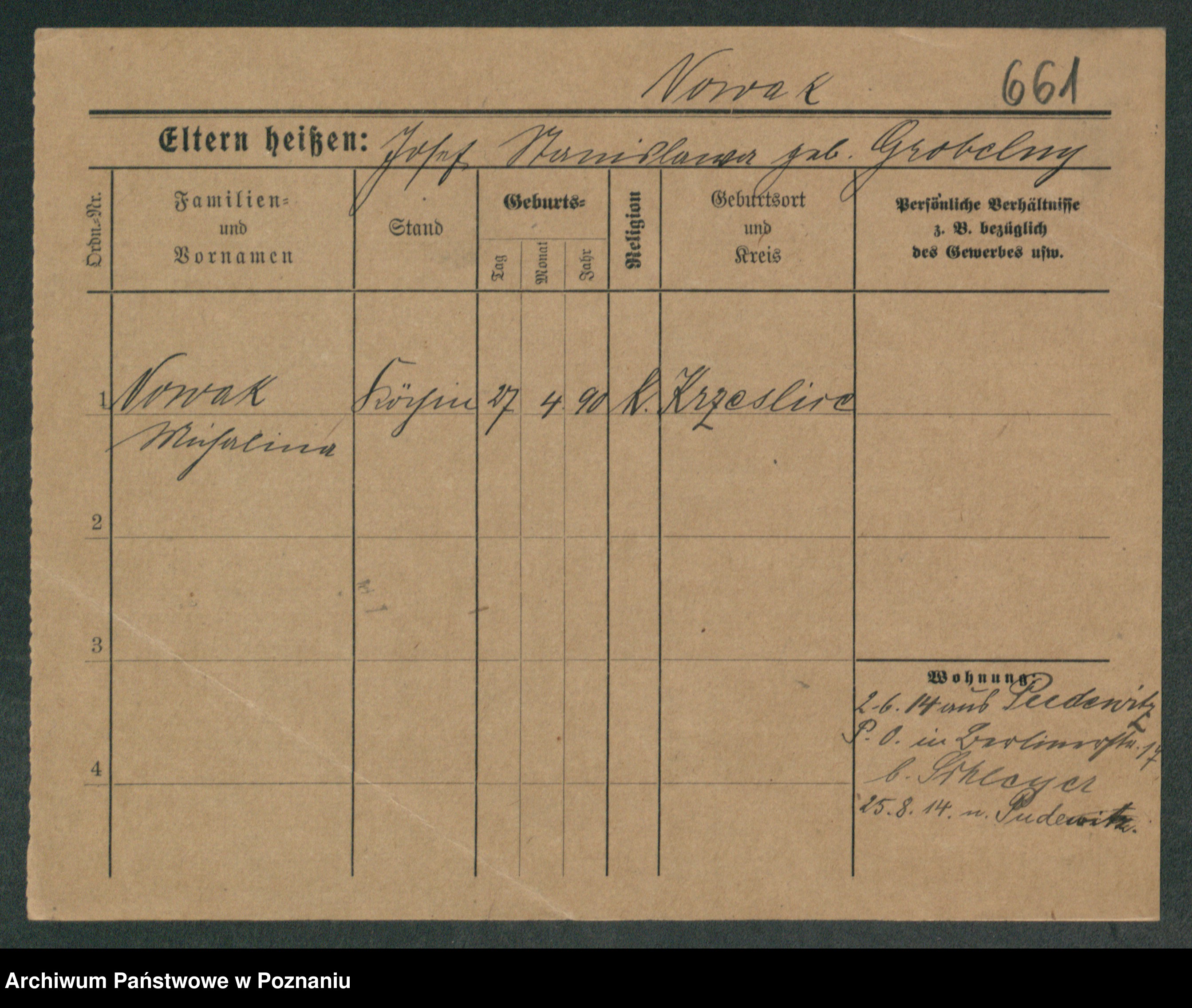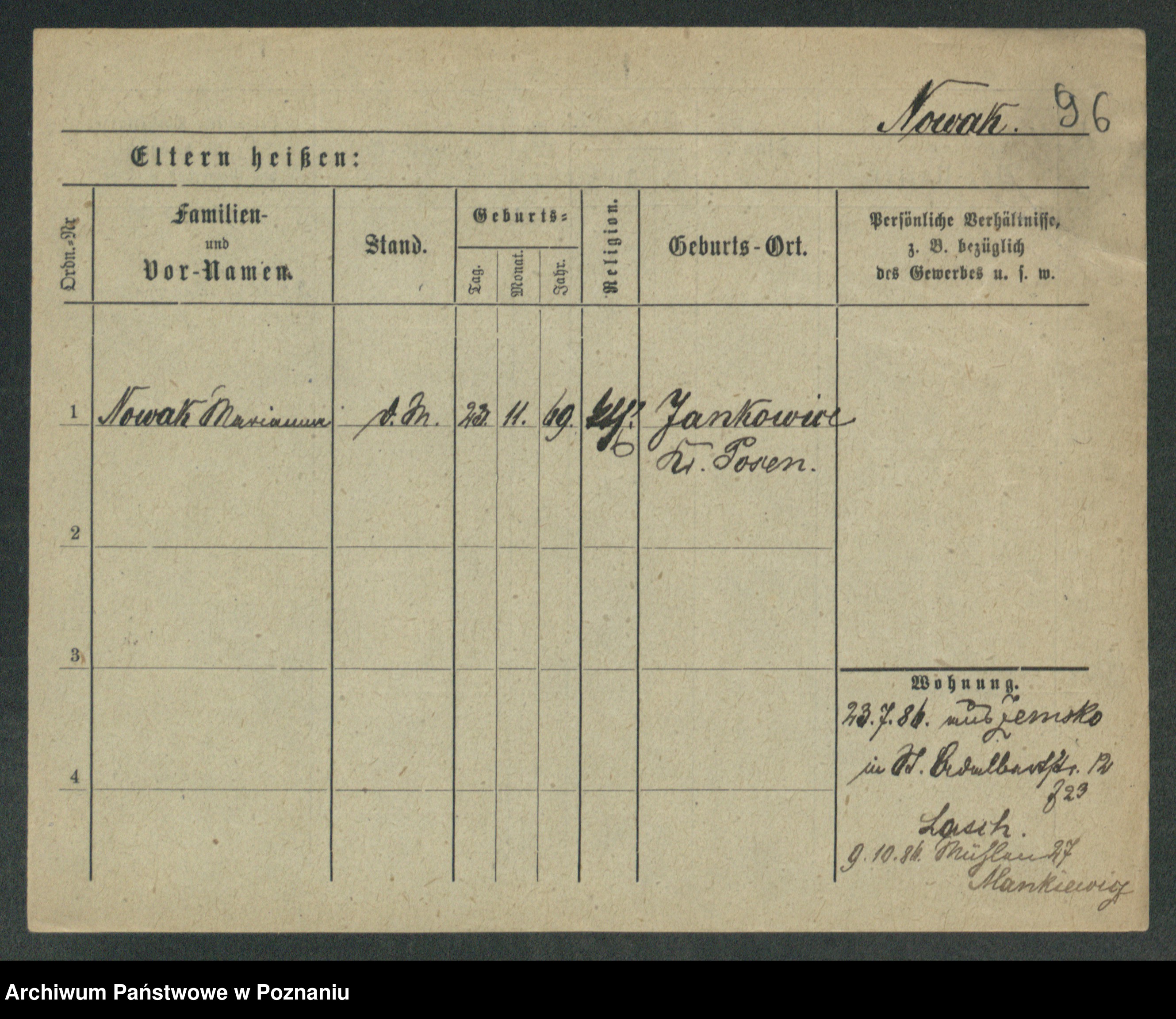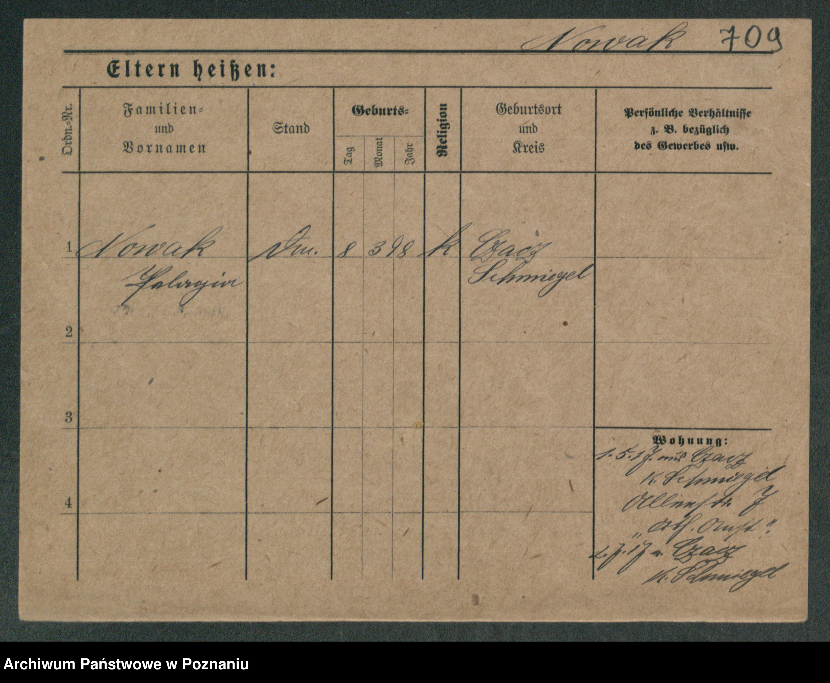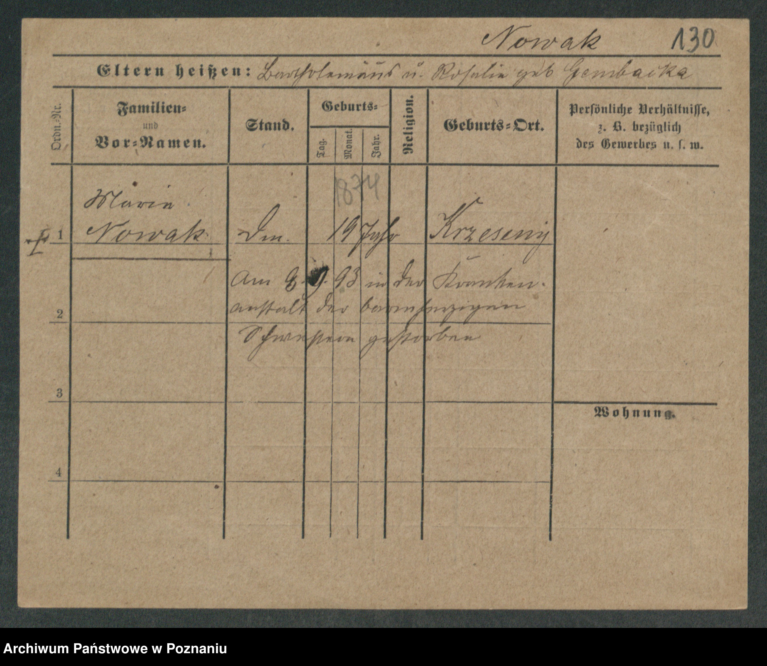 Podgląd karty osobowej dostępny jest po kliknięciu na nazwisko lub ikonkę karty. Można dokonywać powiększenia (ikony na górze) lub przechodzić między kolejnymi skanami (strzałki po bokach).