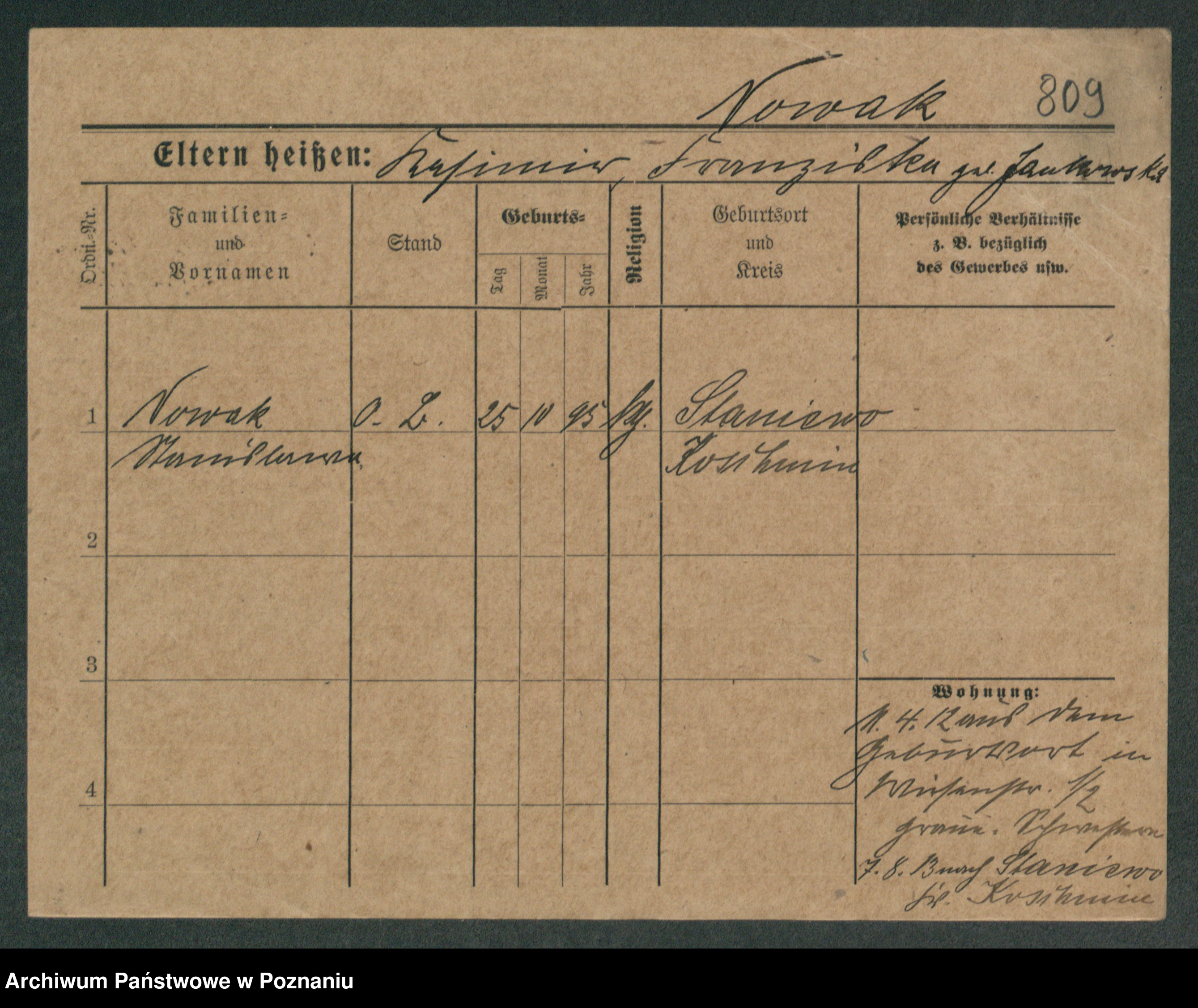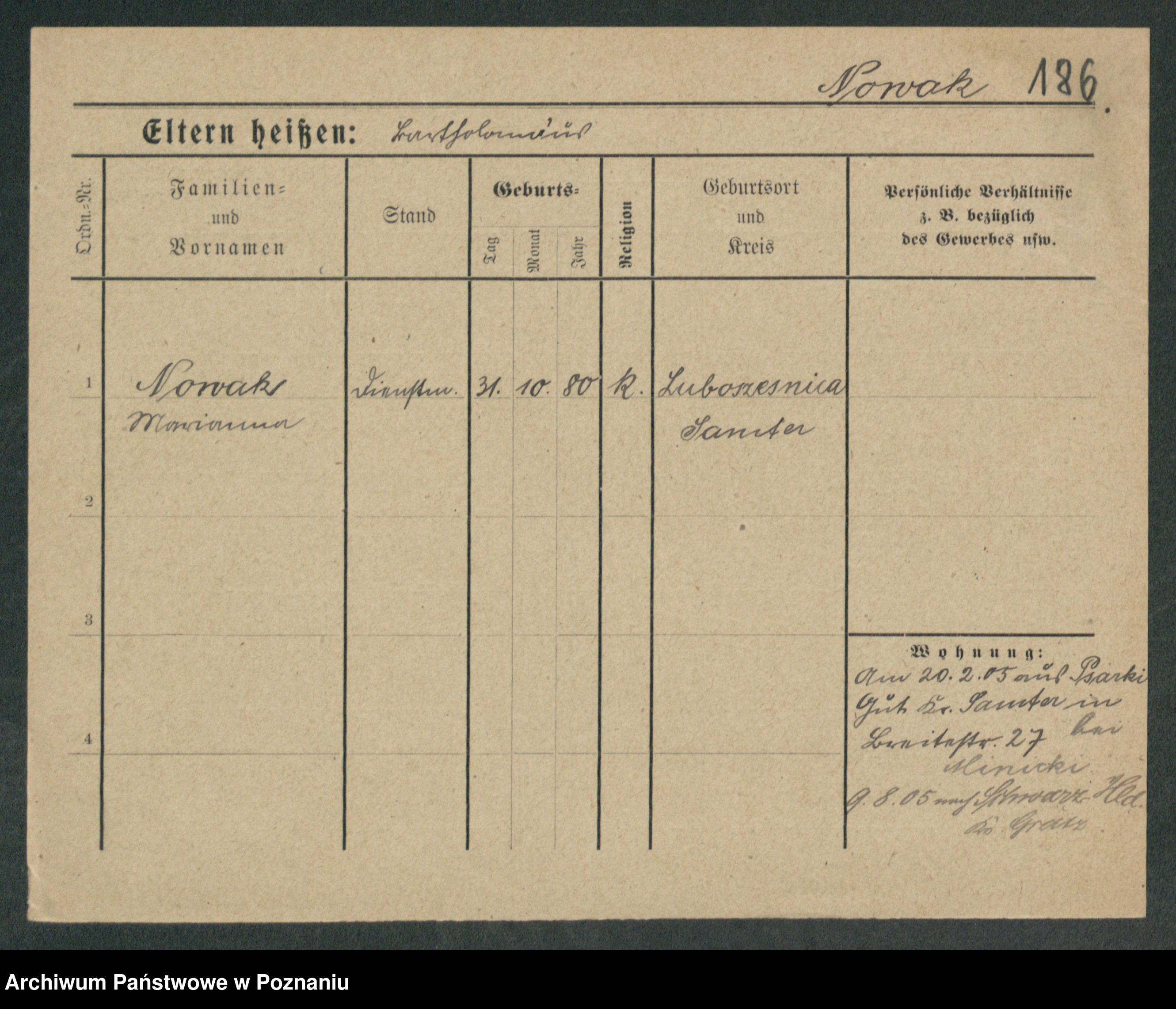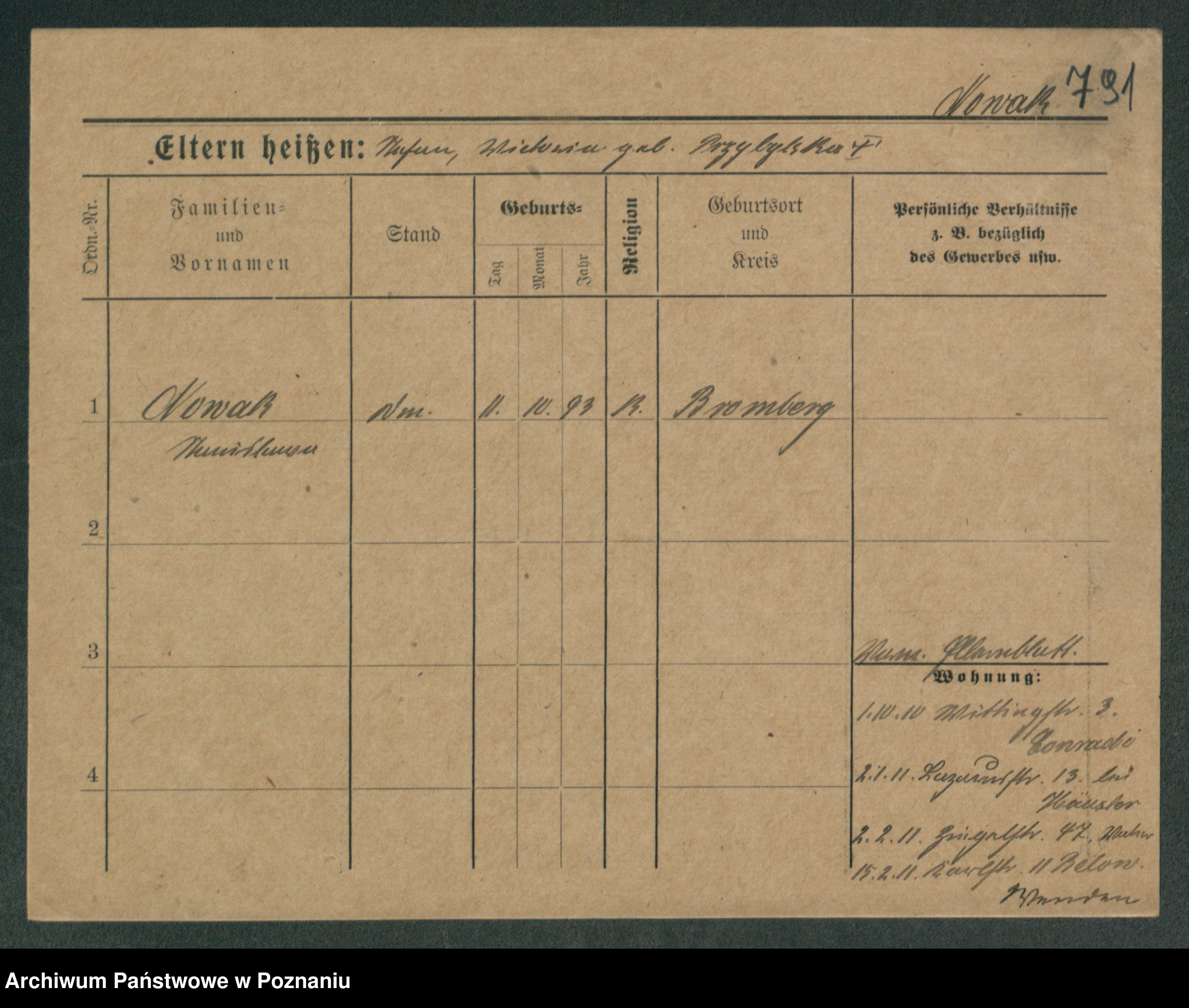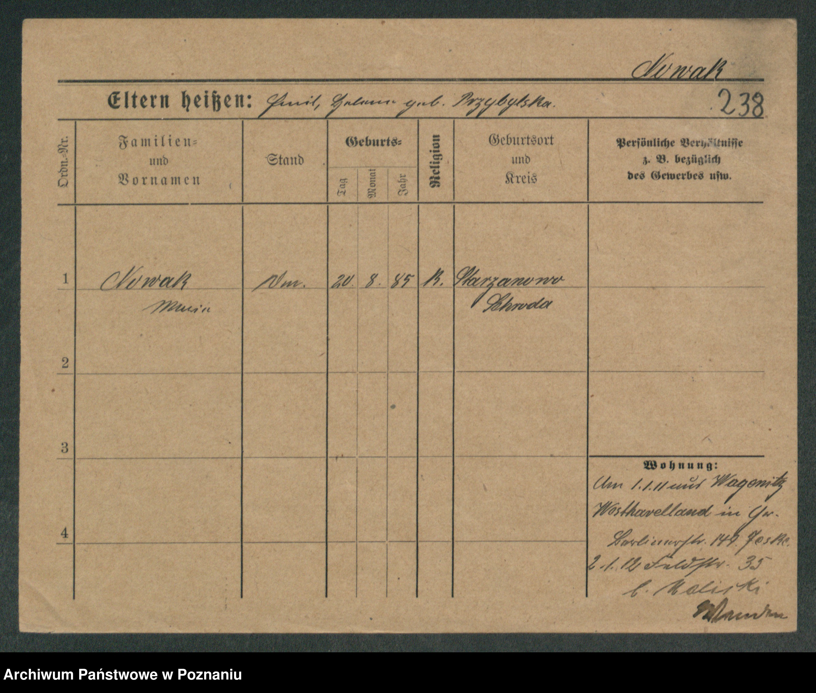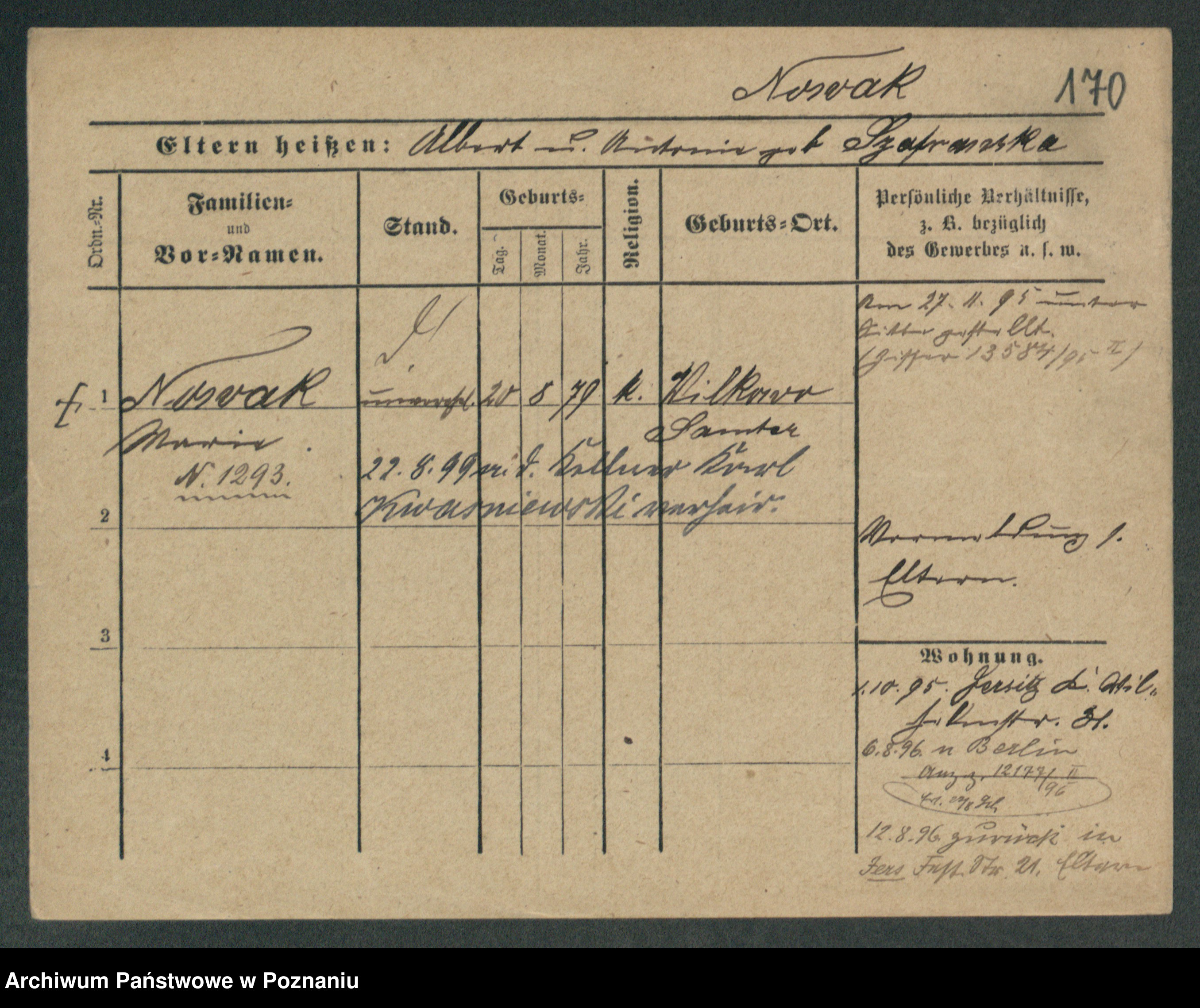 Podgląd karty osobowej dostępny jest po kliknięciu na nazwisko lub ikonkę karty. Można dokonywać powiększenia (ikony na górze) lub przechodzić między kolejnymi skanami (strzałki po bokach).