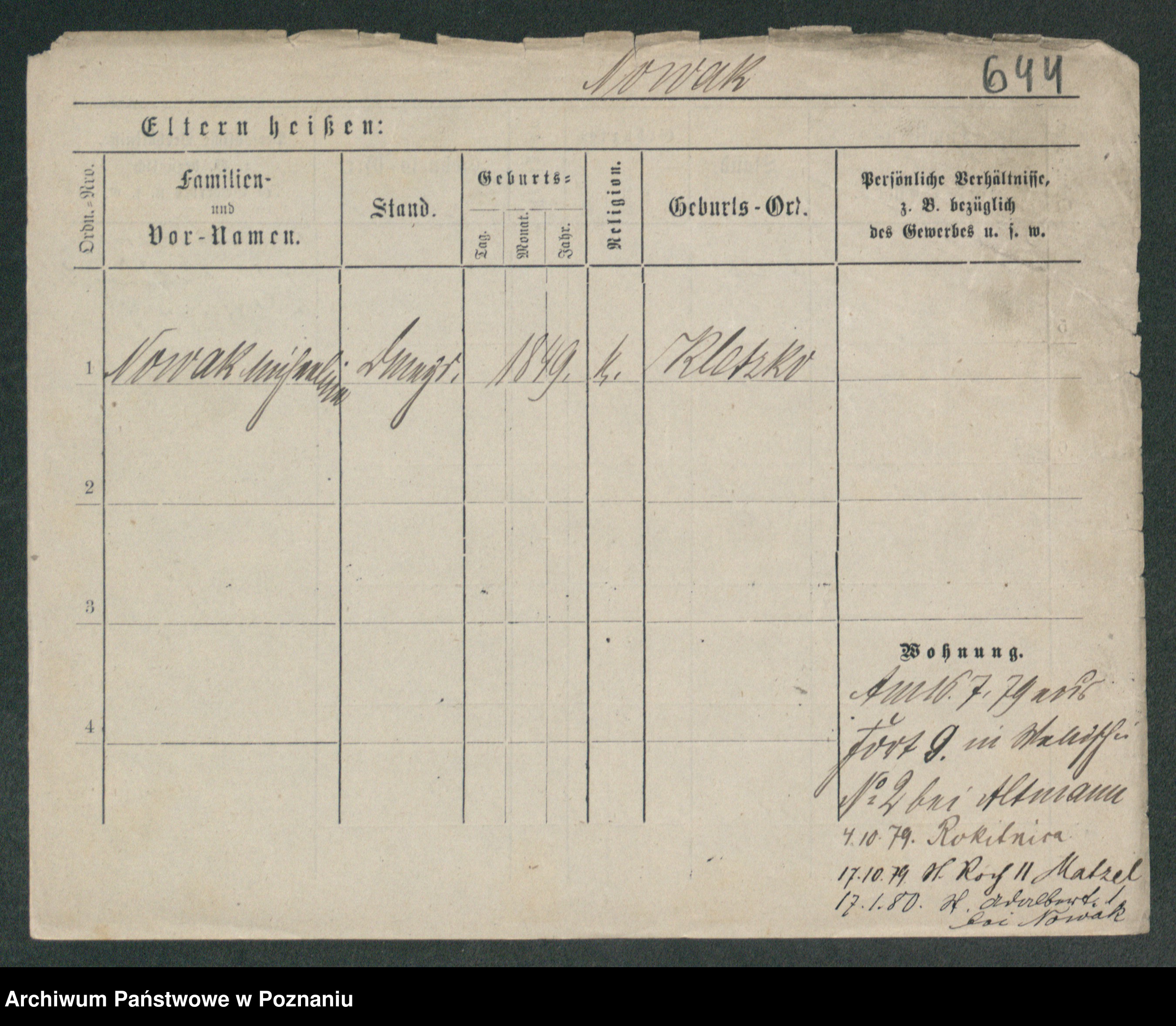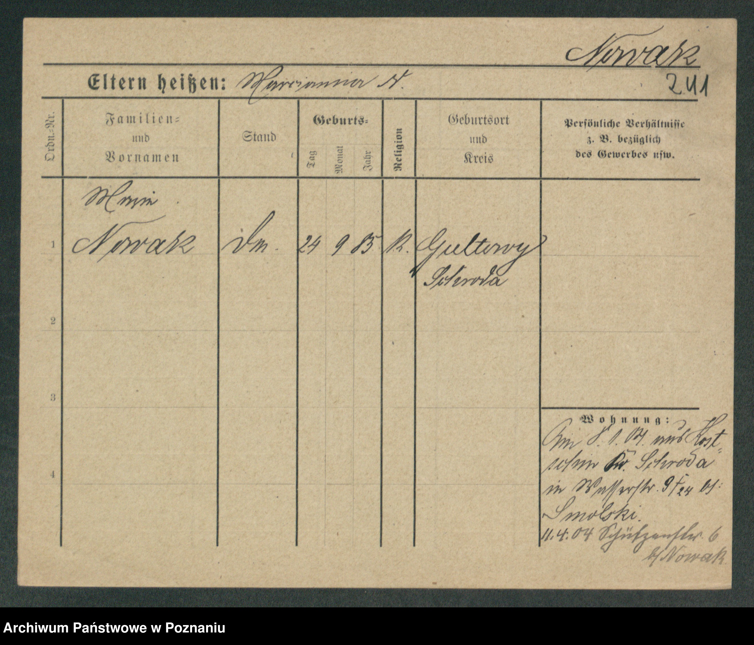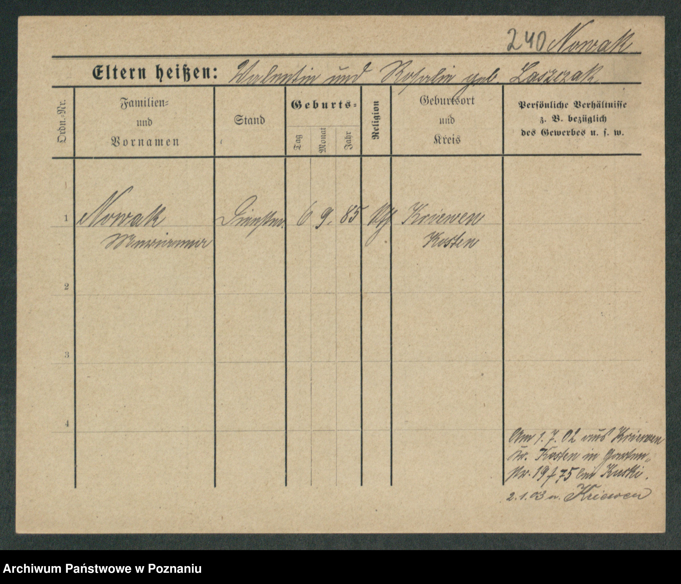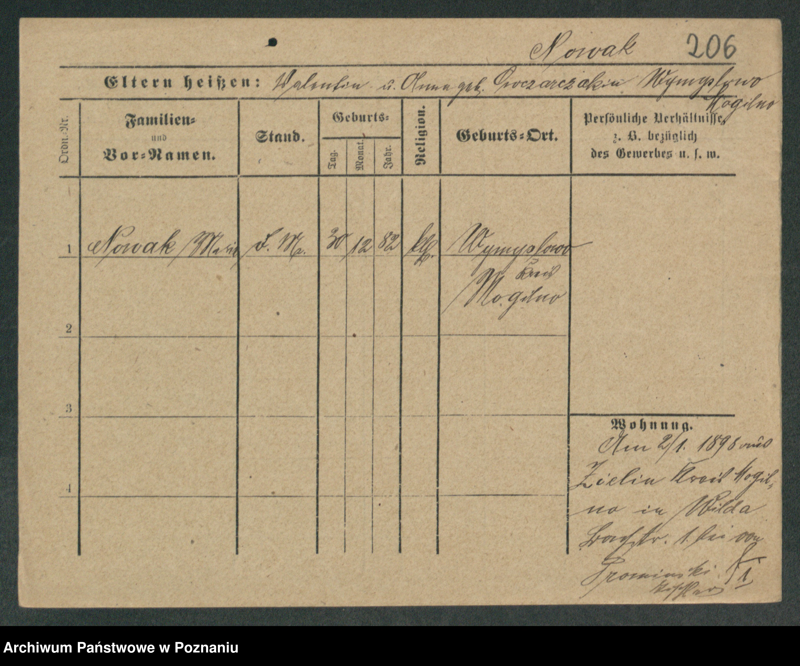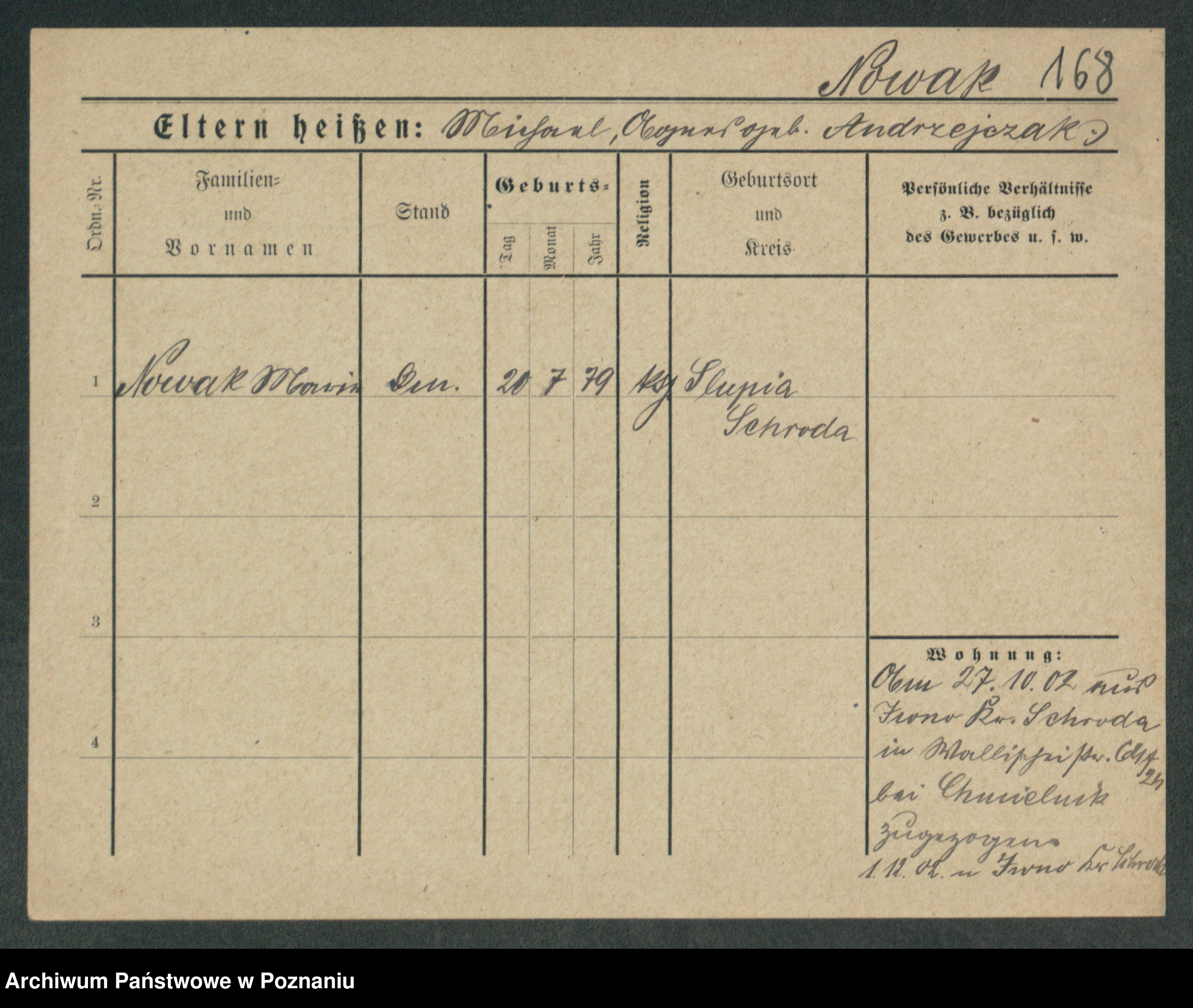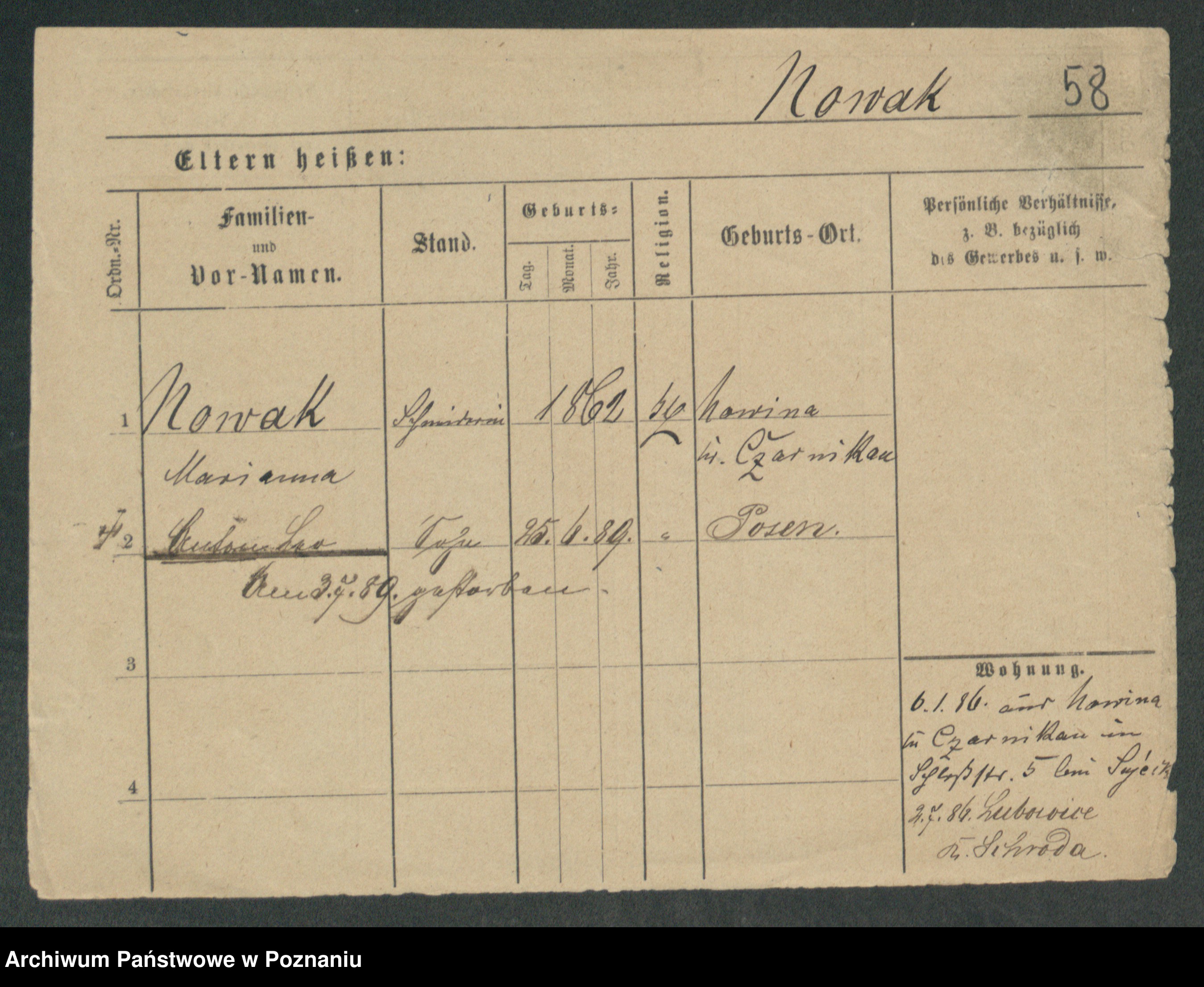 Podgląd karty osobowej dostępny jest po kliknięciu na nazwisko lub ikonkę karty. Można dokonywać powiększenia (ikony na górze) lub przechodzić między kolejnymi skanami (strzałki po bokach).
