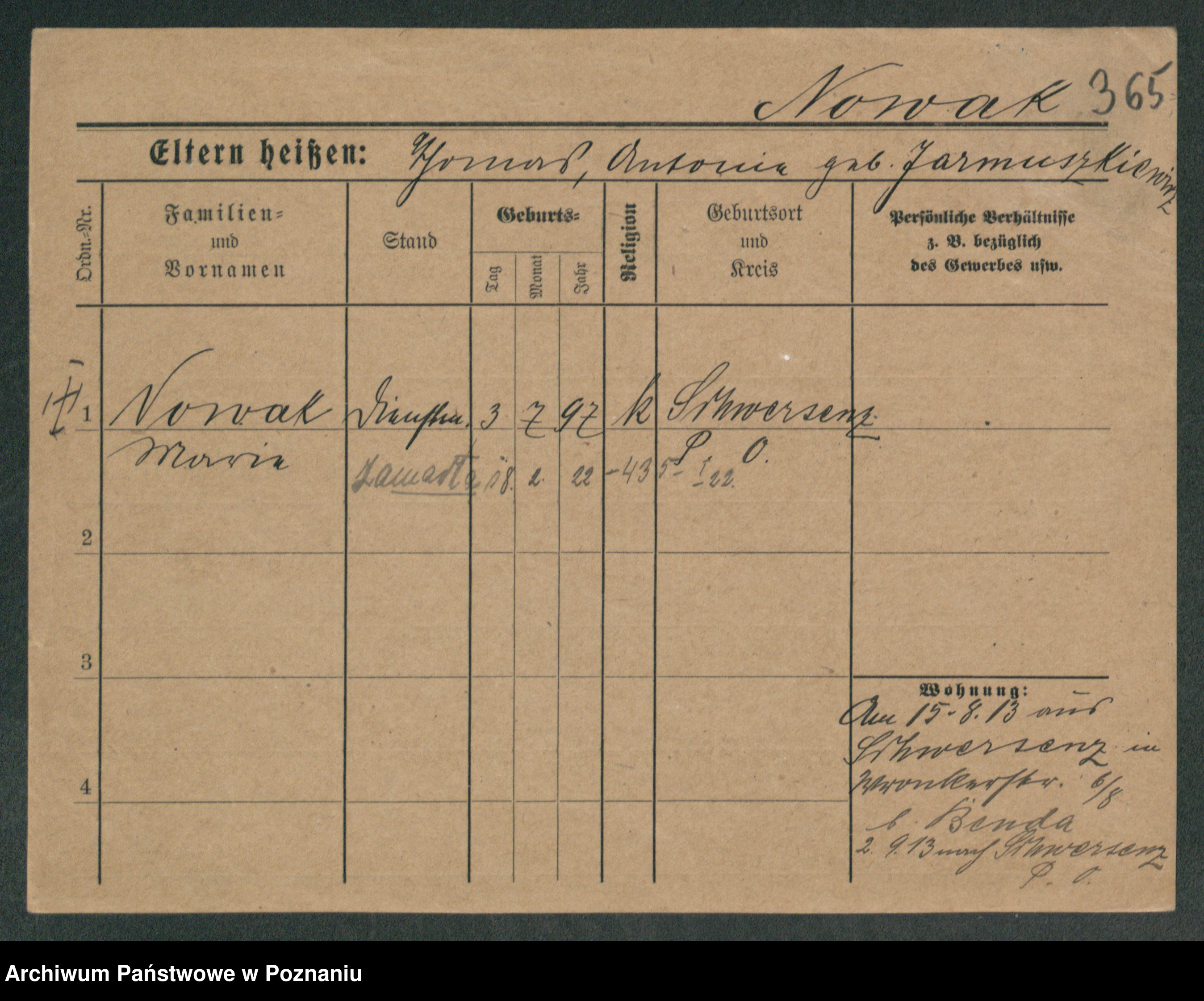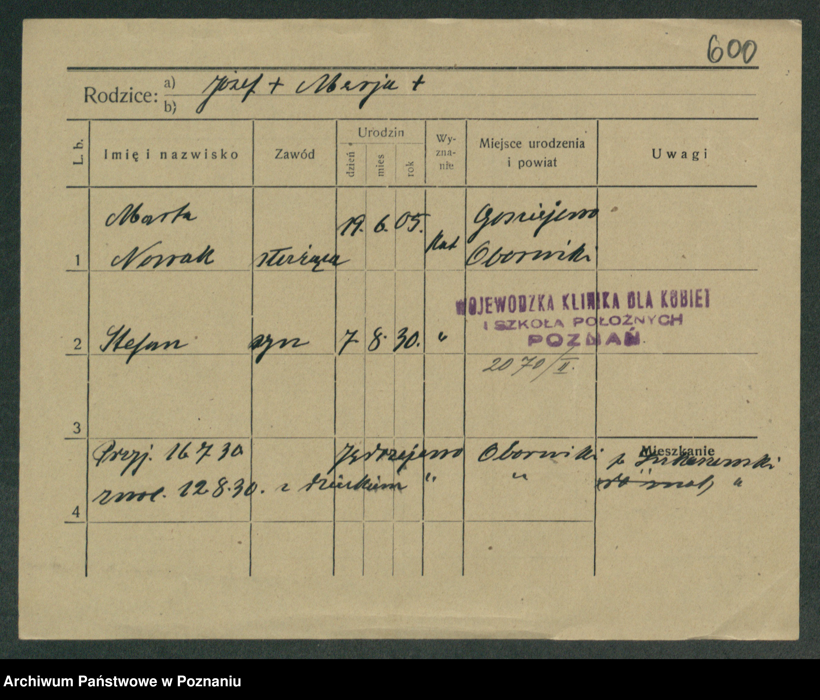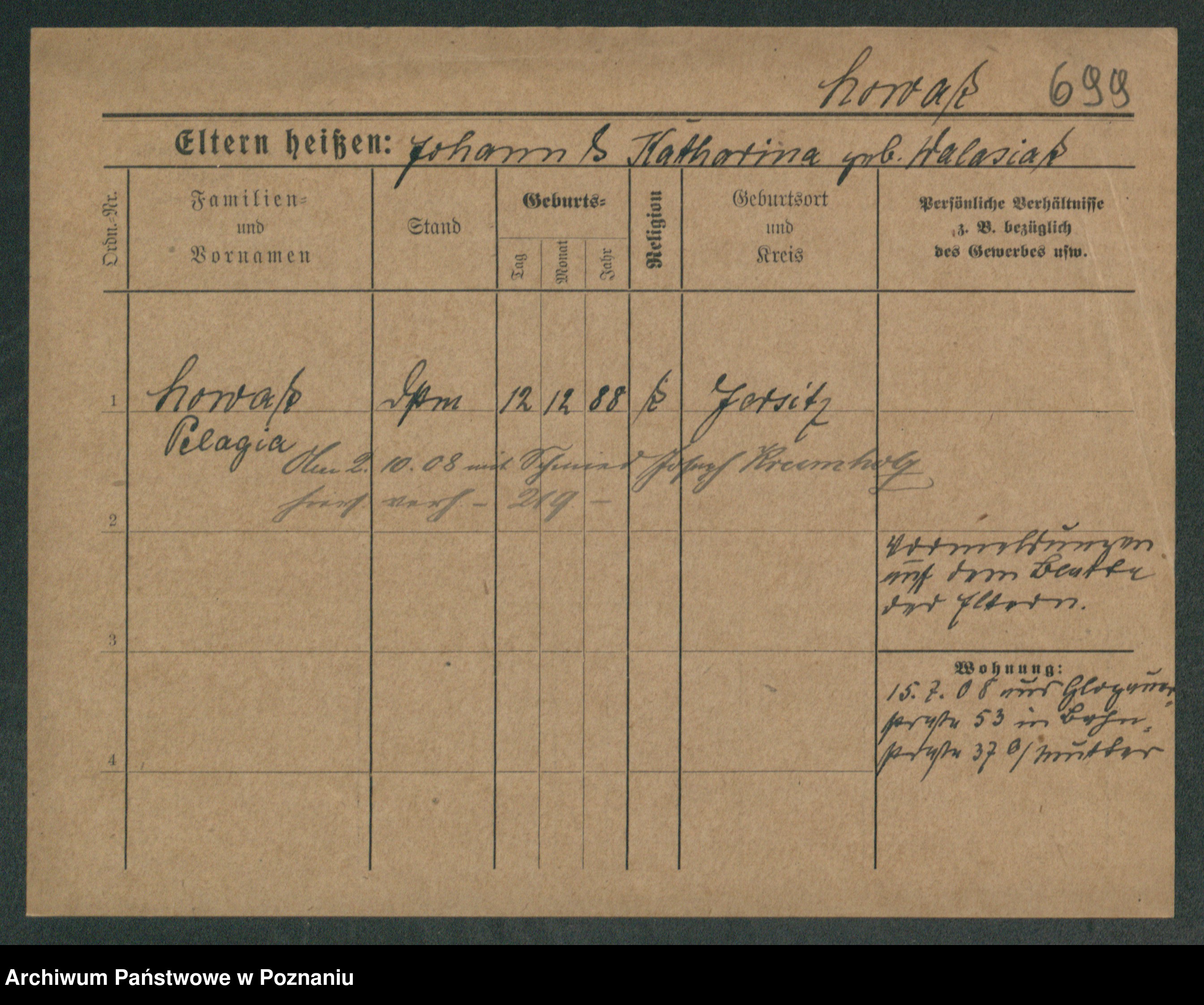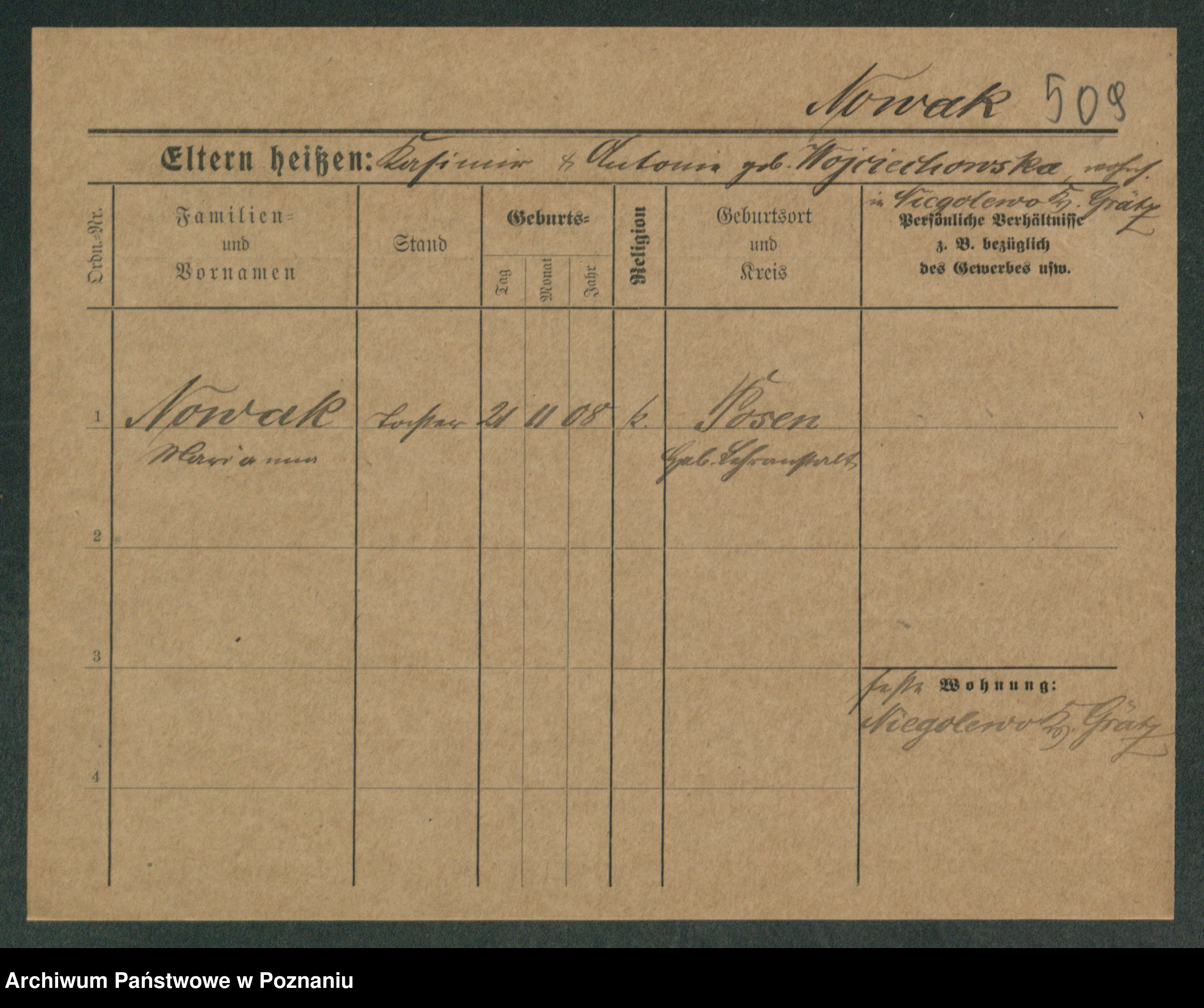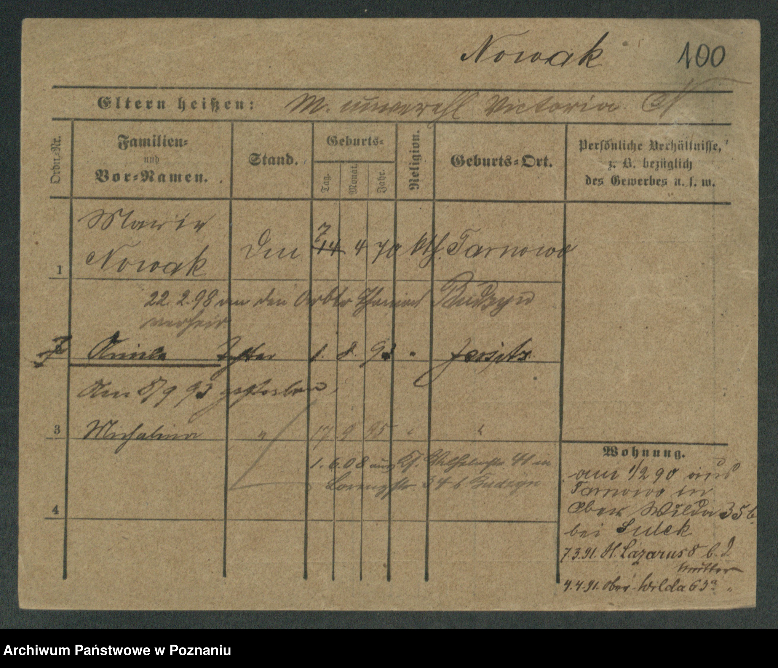 Podgląd karty osobowej dostępny jest po kliknięciu na nazwisko lub ikonkę karty. Można dokonywać powiększenia (ikony na górze) lub przechodzić między kolejnymi skanami (strzałki po bokach).