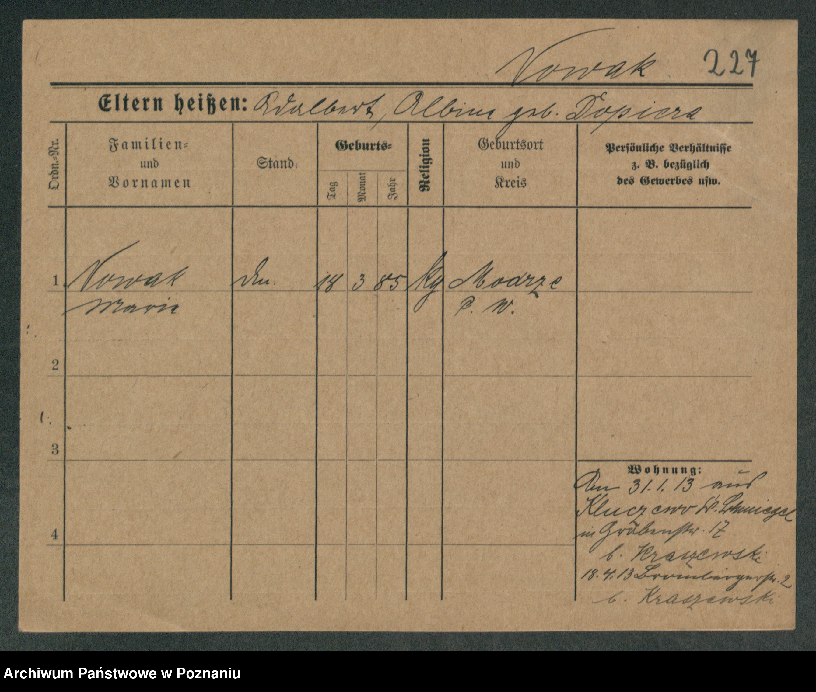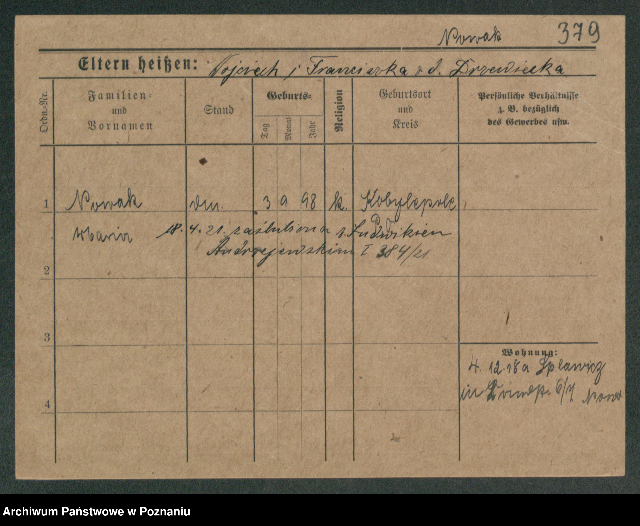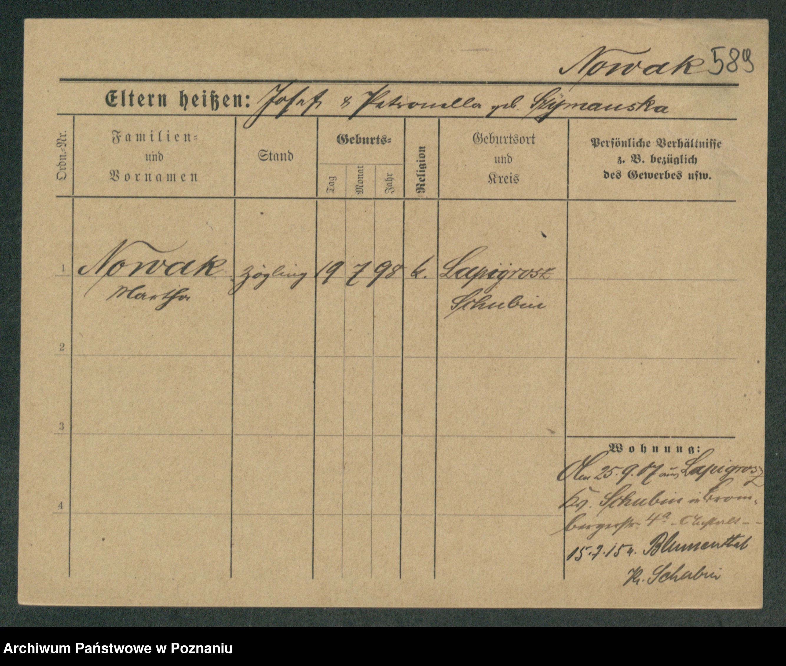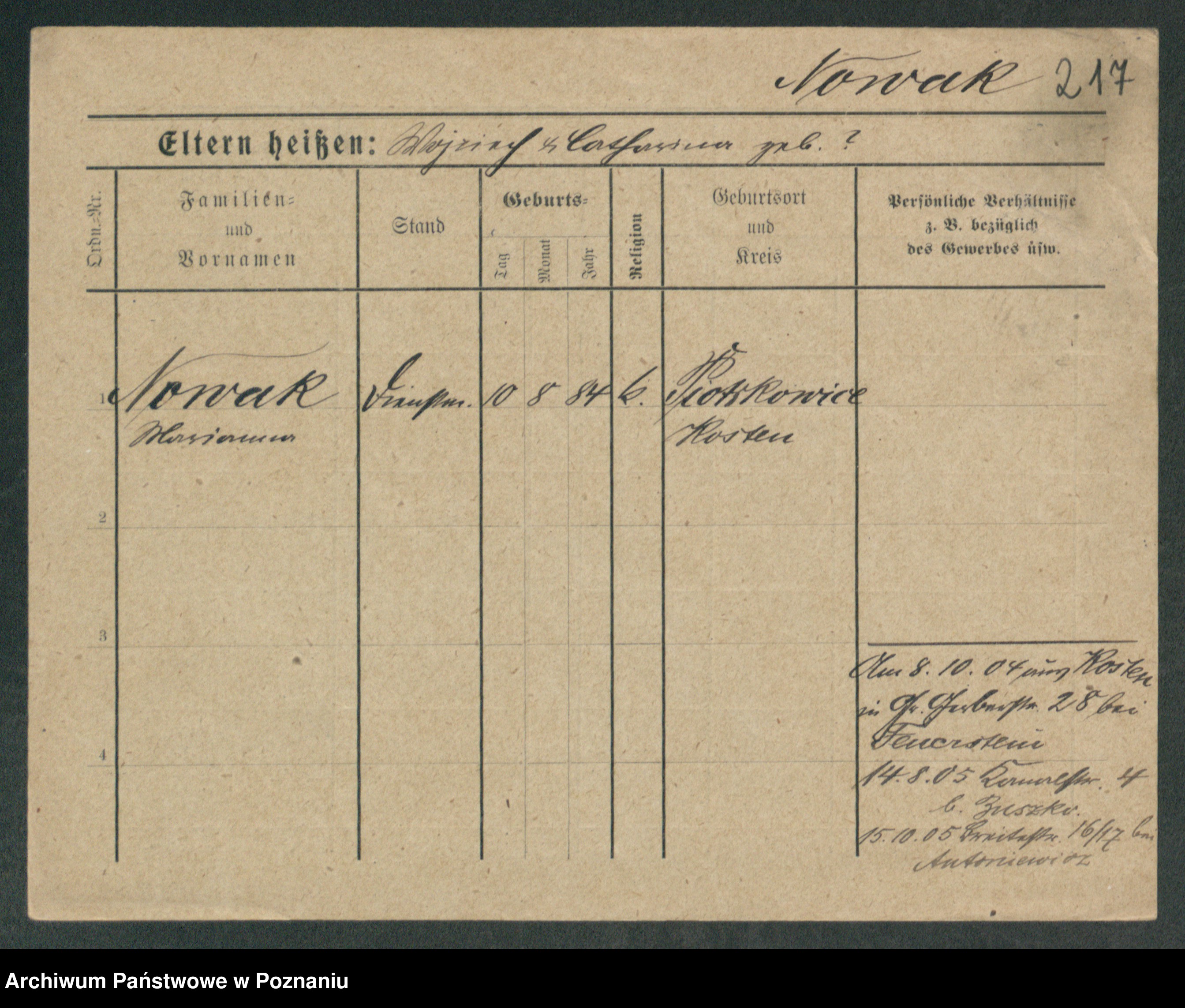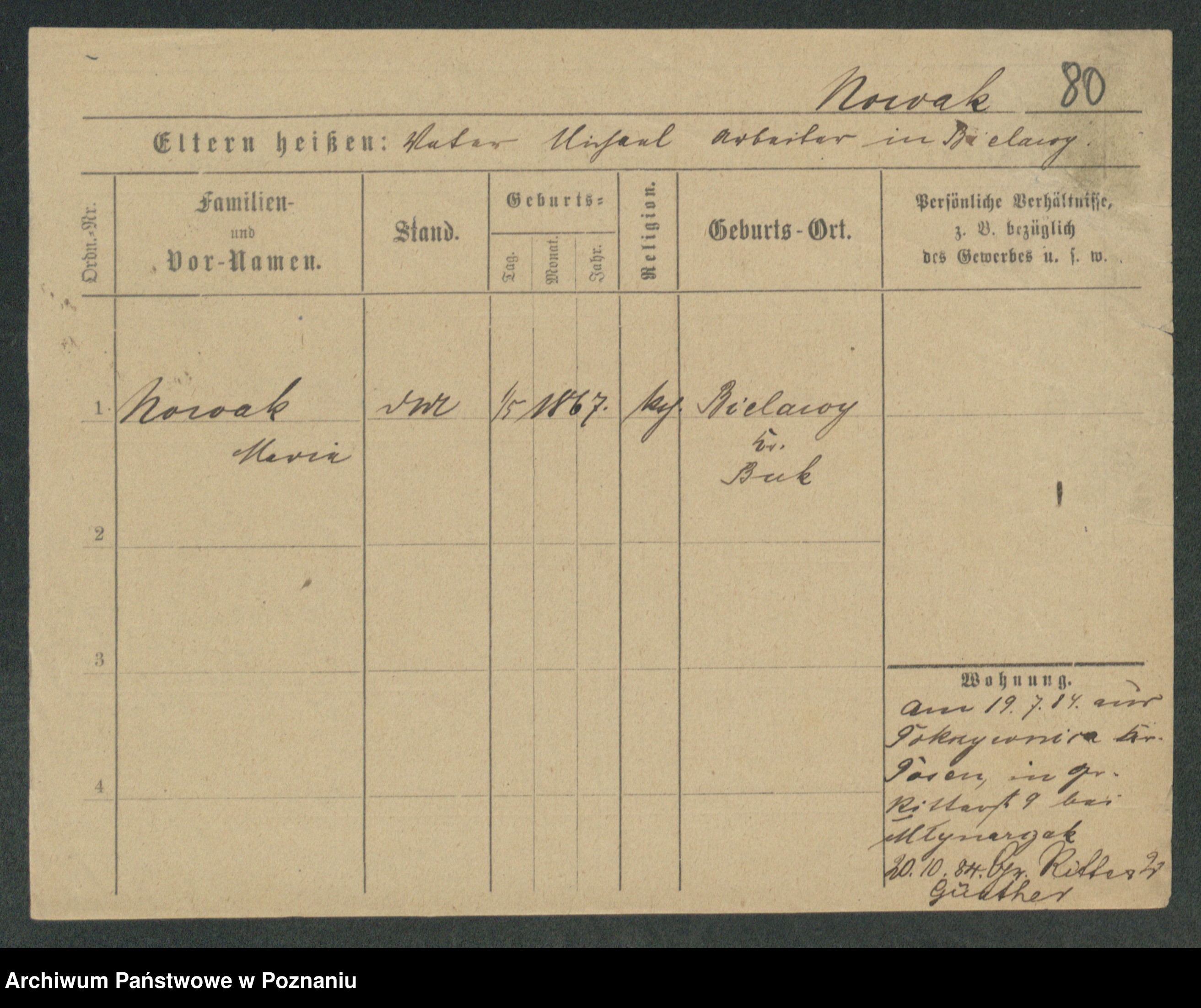 Podgląd karty osobowej dostępny jest po kliknięciu na nazwisko lub ikonkę karty. Można dokonywać powiększenia (ikony na górze) lub przechodzić między kolejnymi skanami (strzałki po bokach).