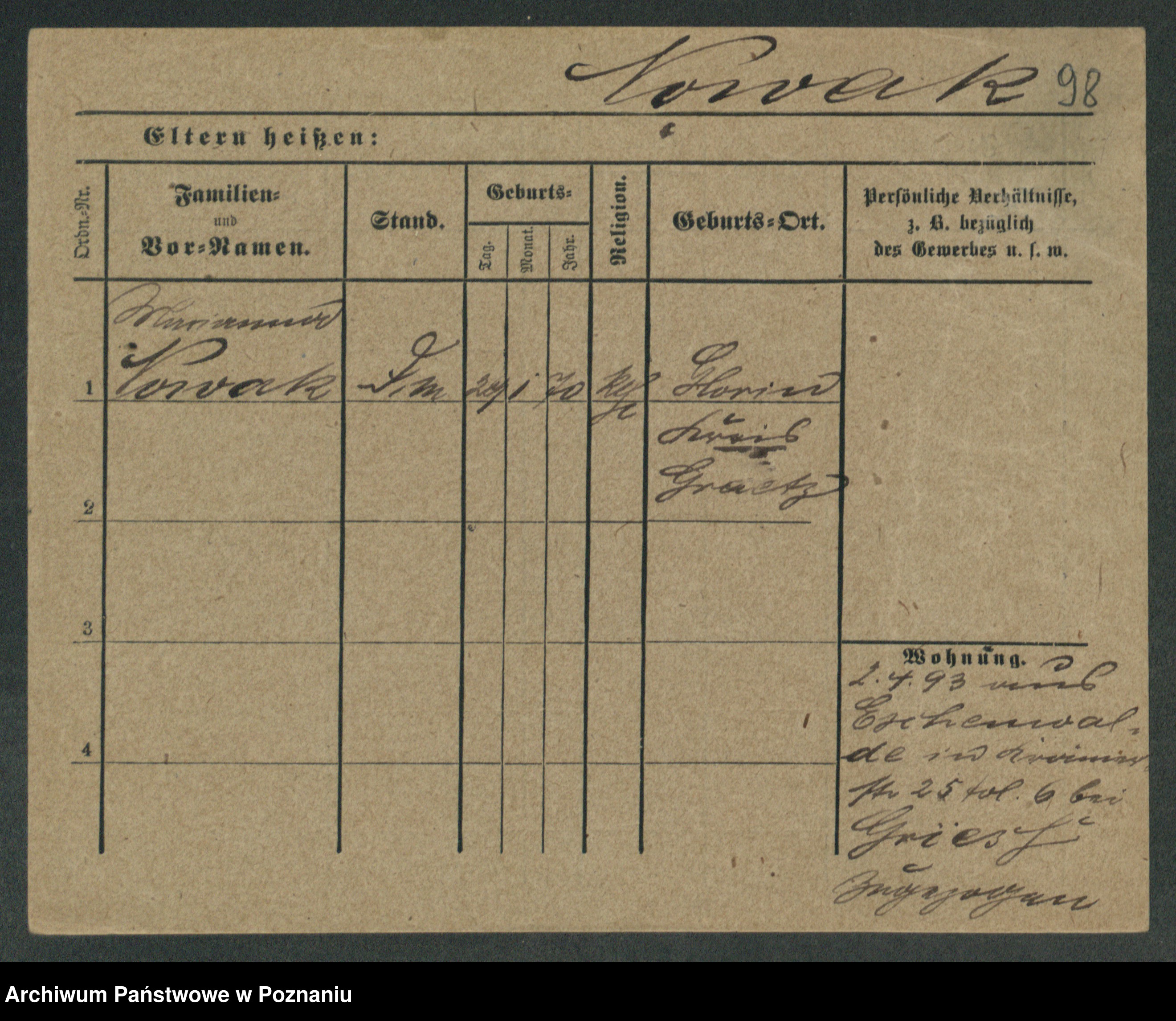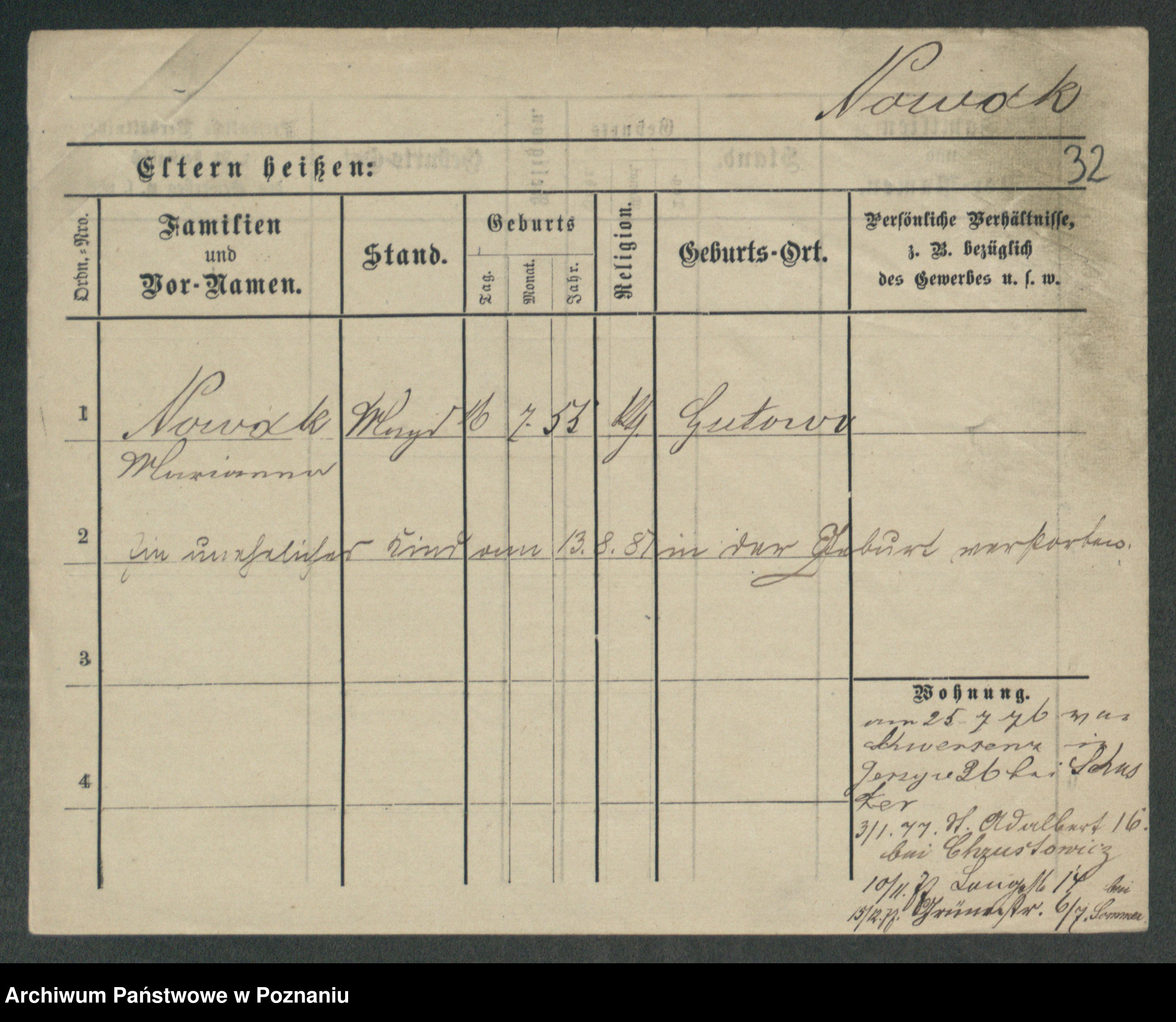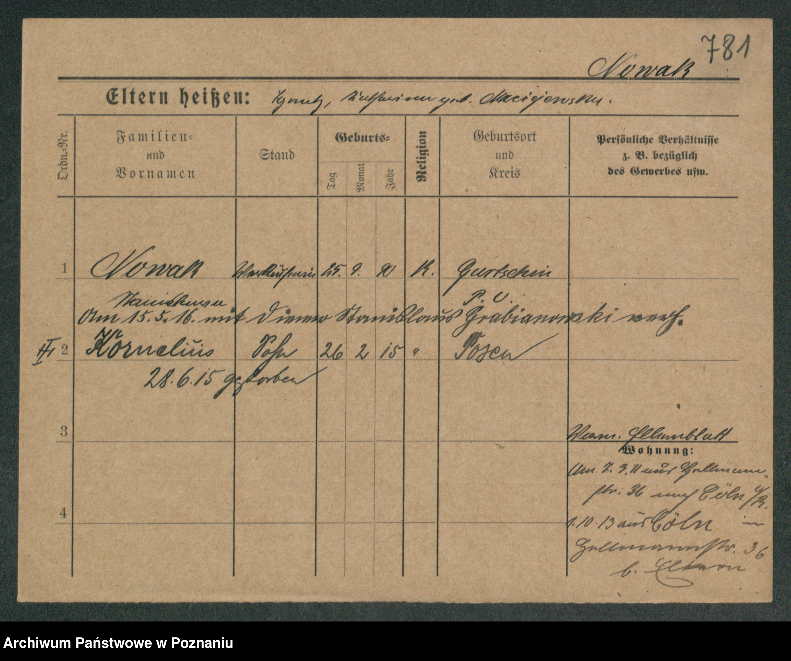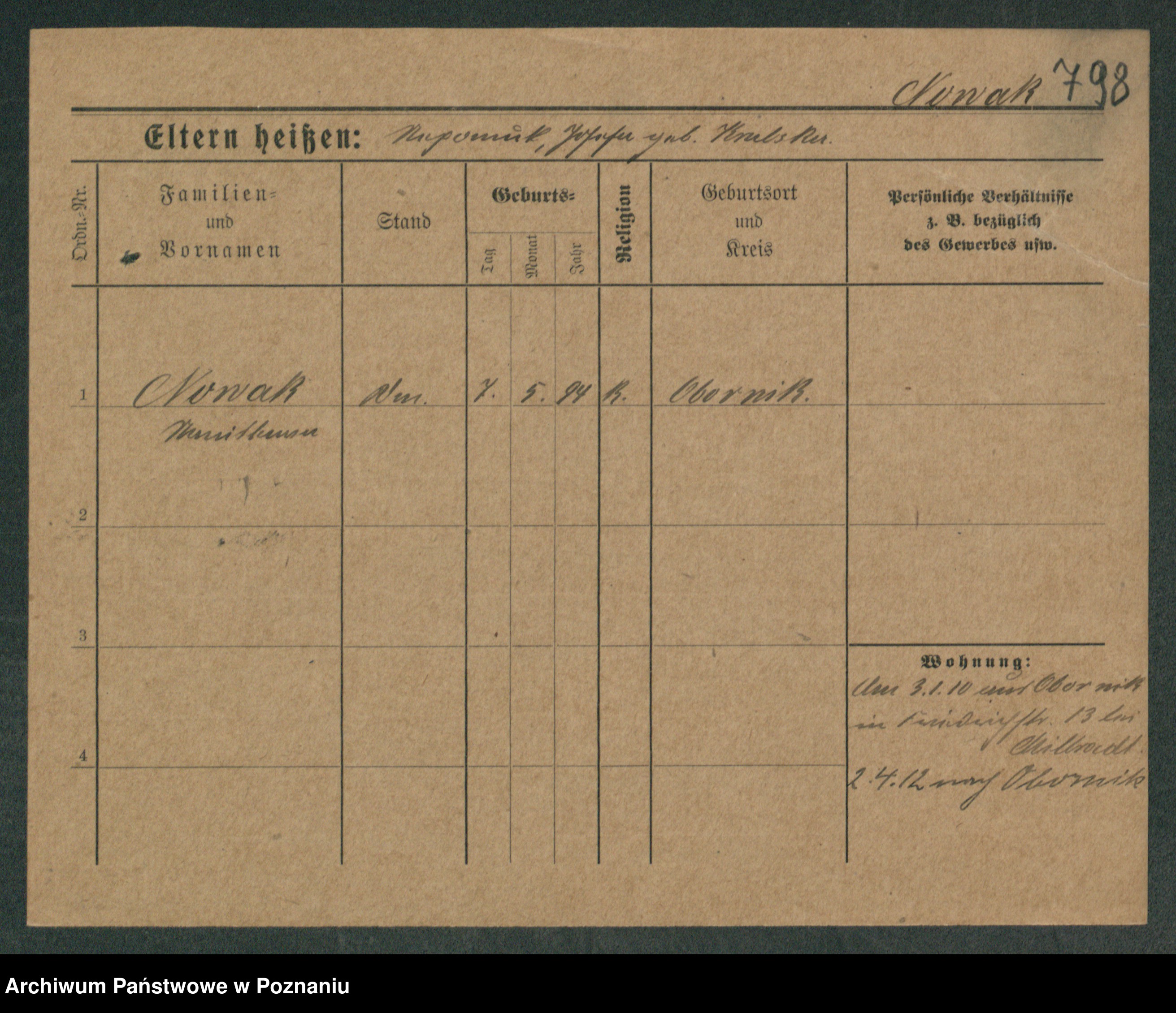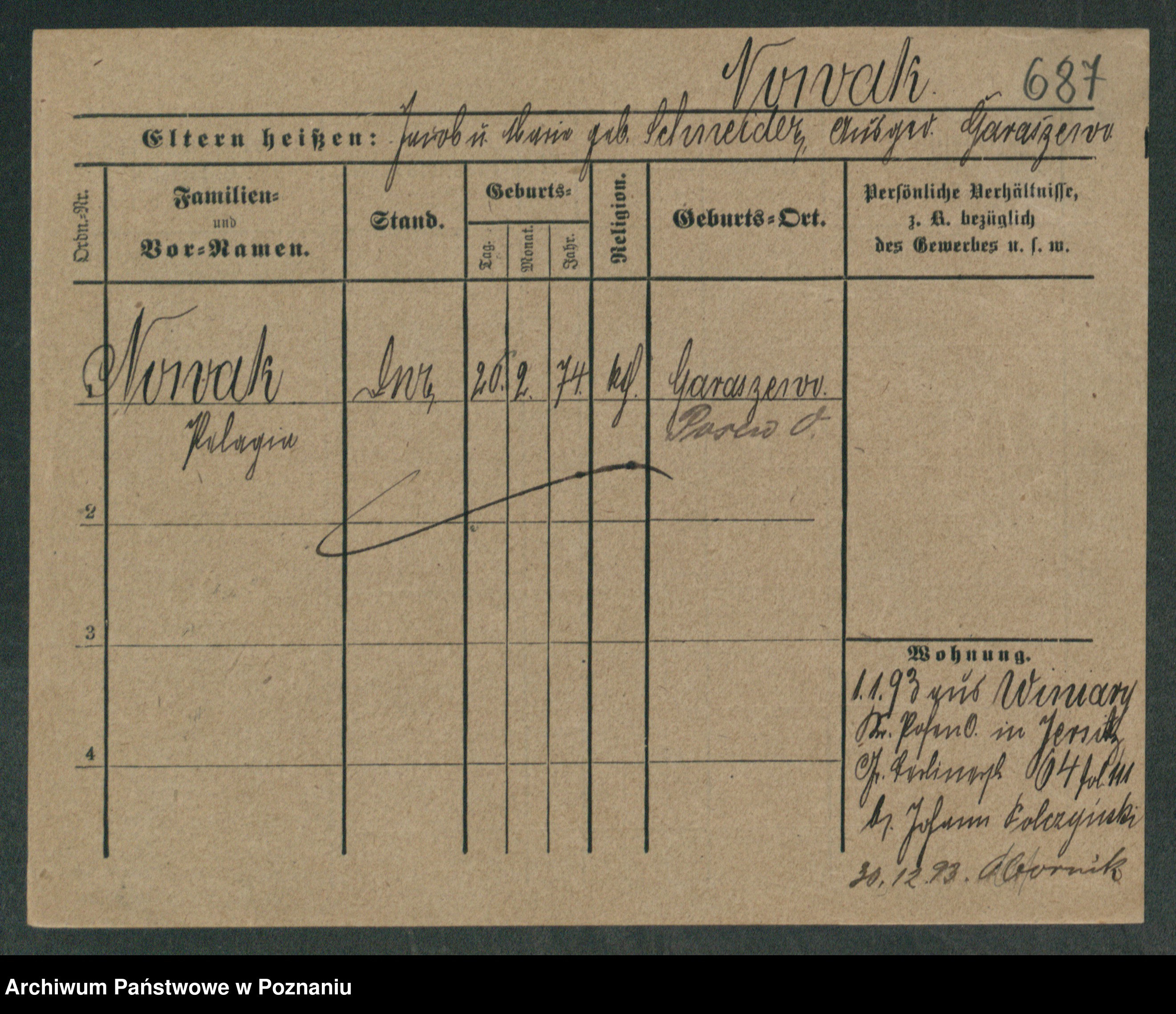 Podgląd karty osobowej dostępny jest po kliknięciu na nazwisko lub ikonkę karty. Można dokonywać powiększenia (ikony na górze) lub przechodzić między kolejnymi skanami (strzałki po bokach).