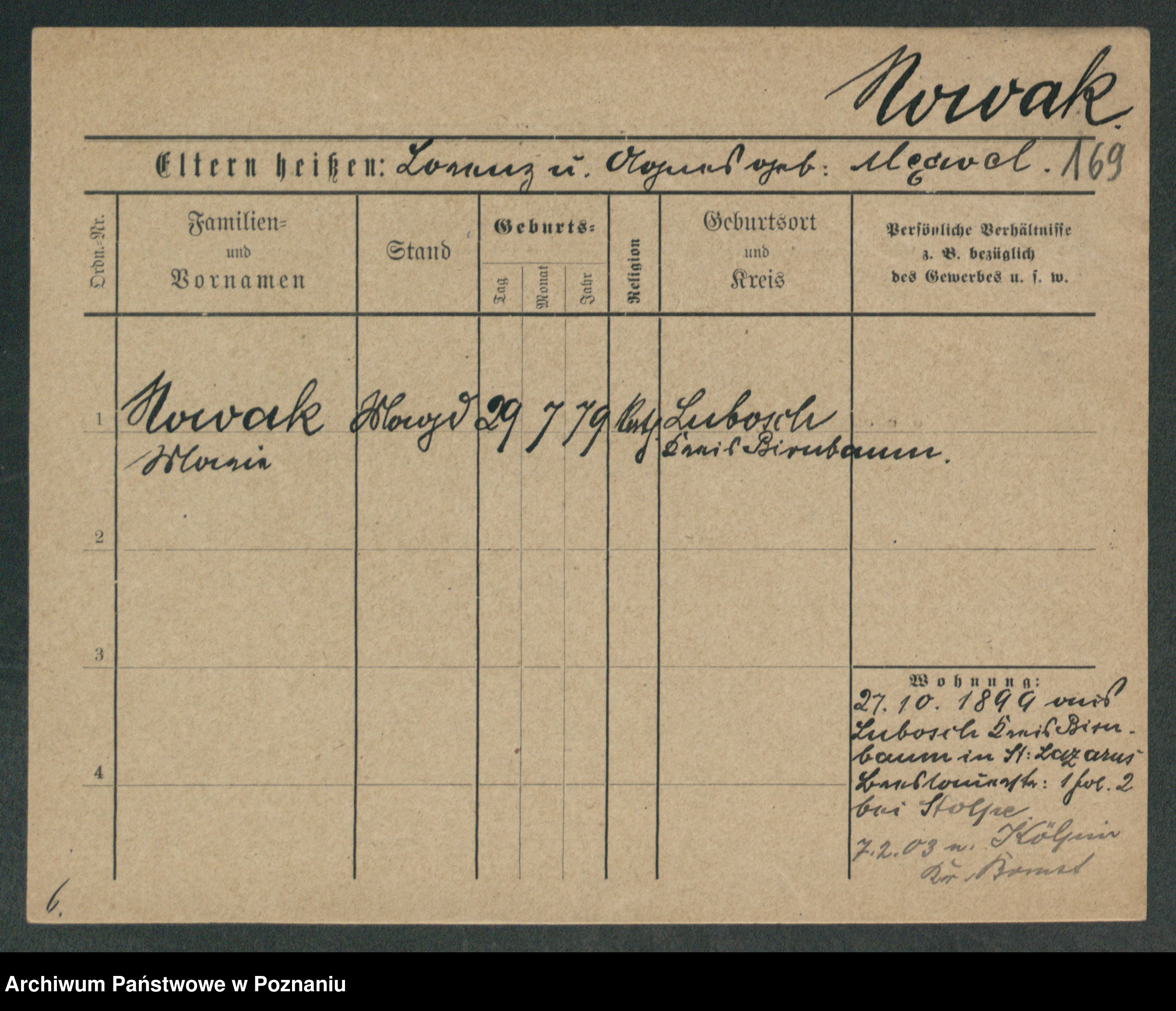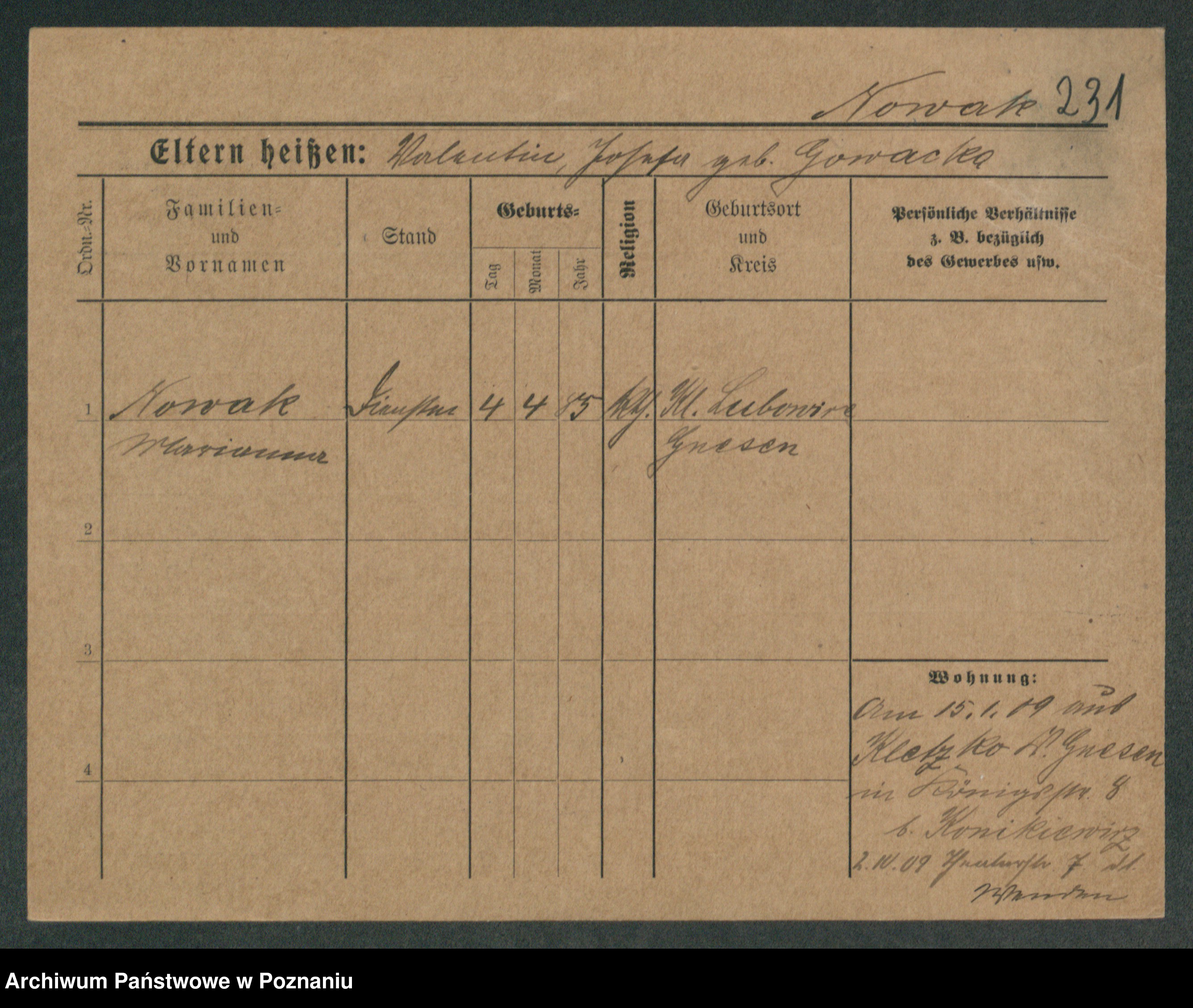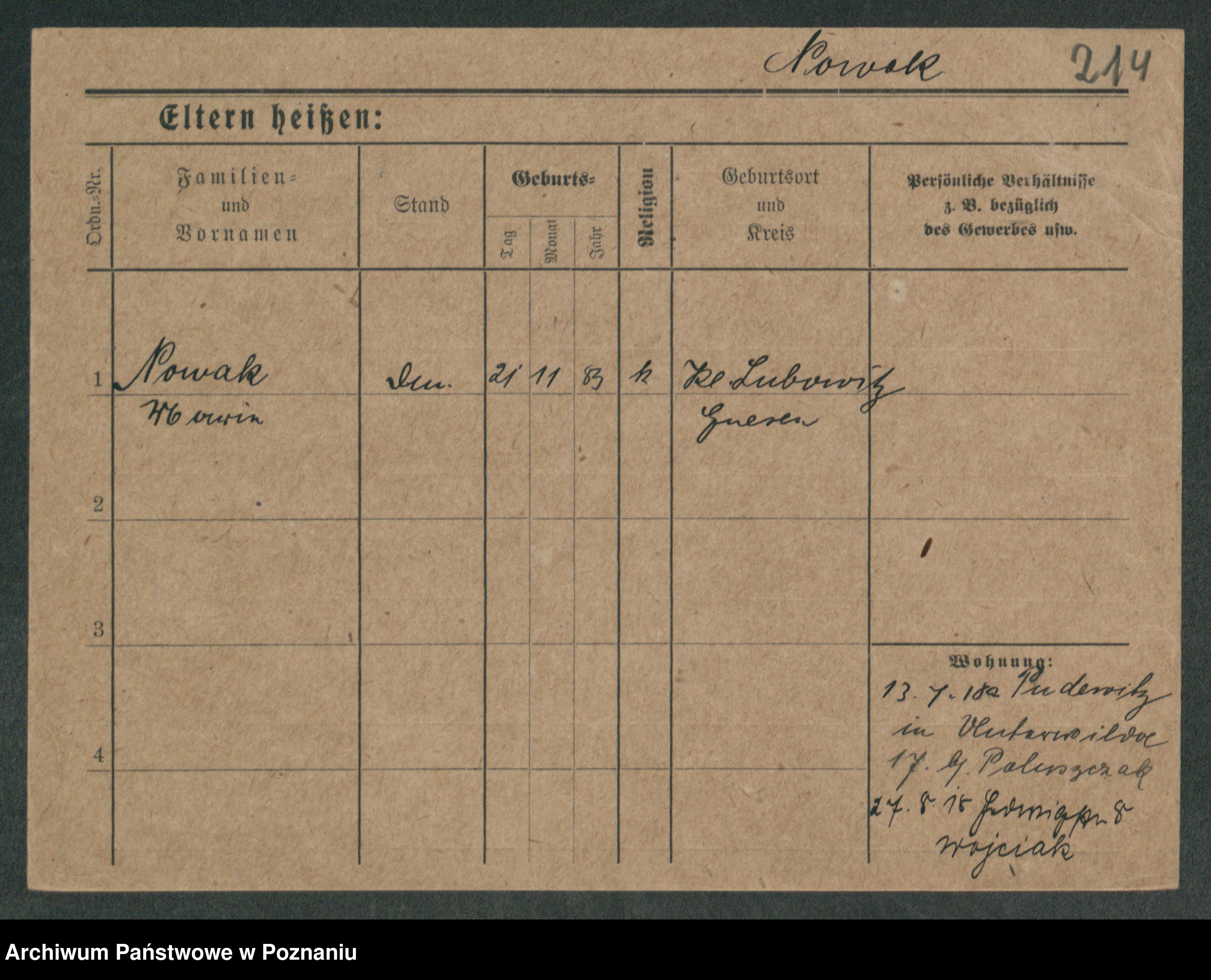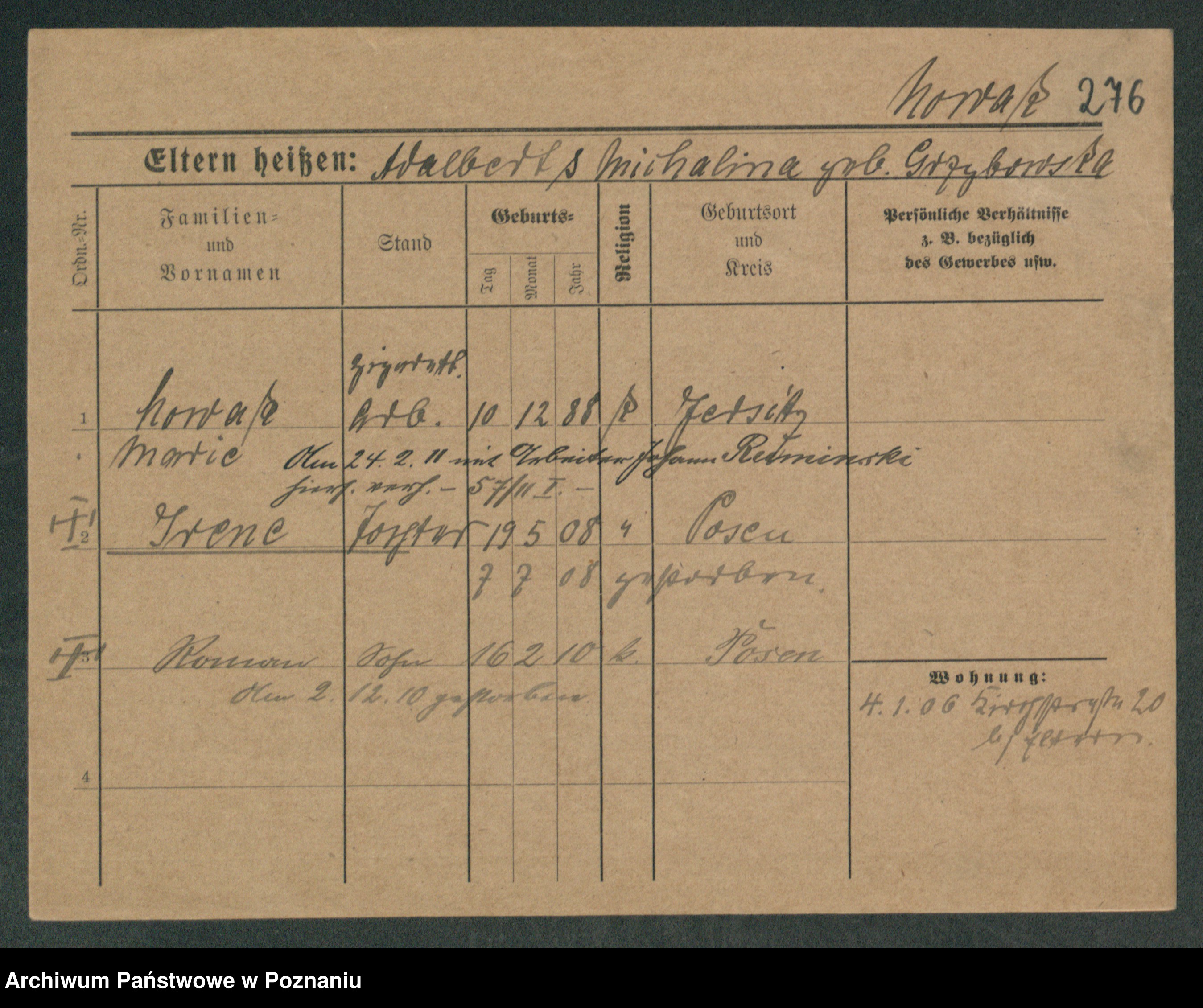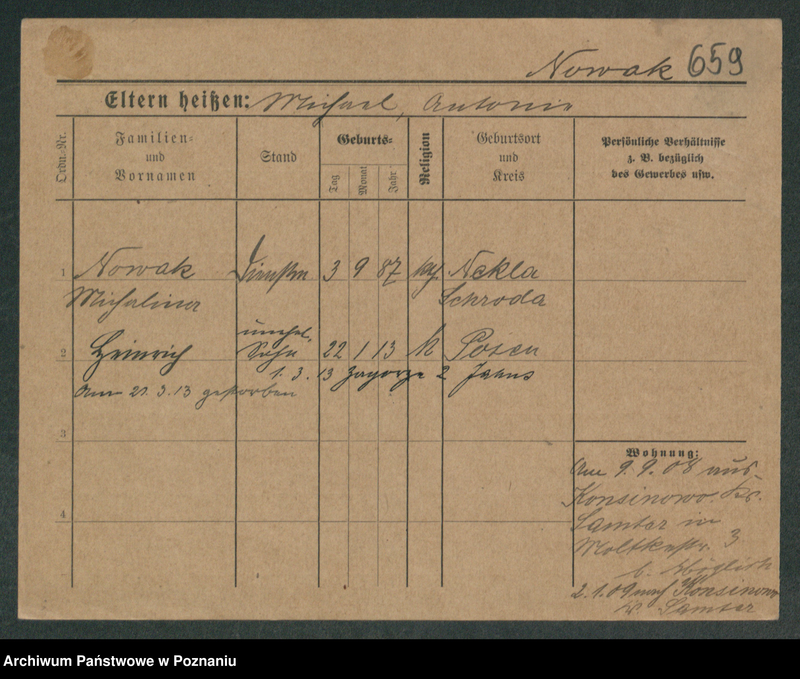 Podgląd karty osobowej dostępny jest po kliknięciu na nazwisko lub ikonkę karty. Można dokonywać powiększenia (ikony na górze) lub przechodzić między kolejnymi skanami (strzałki po bokach).