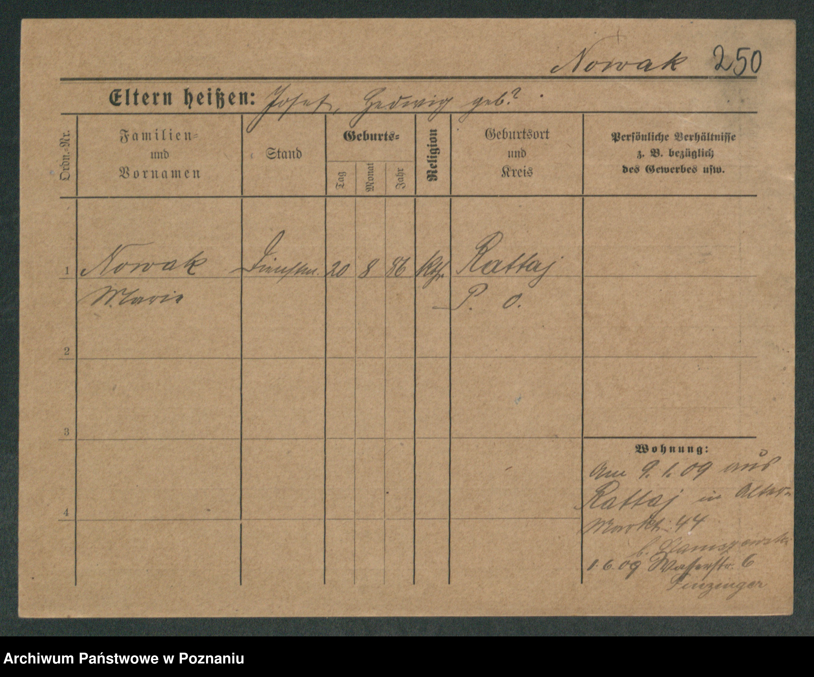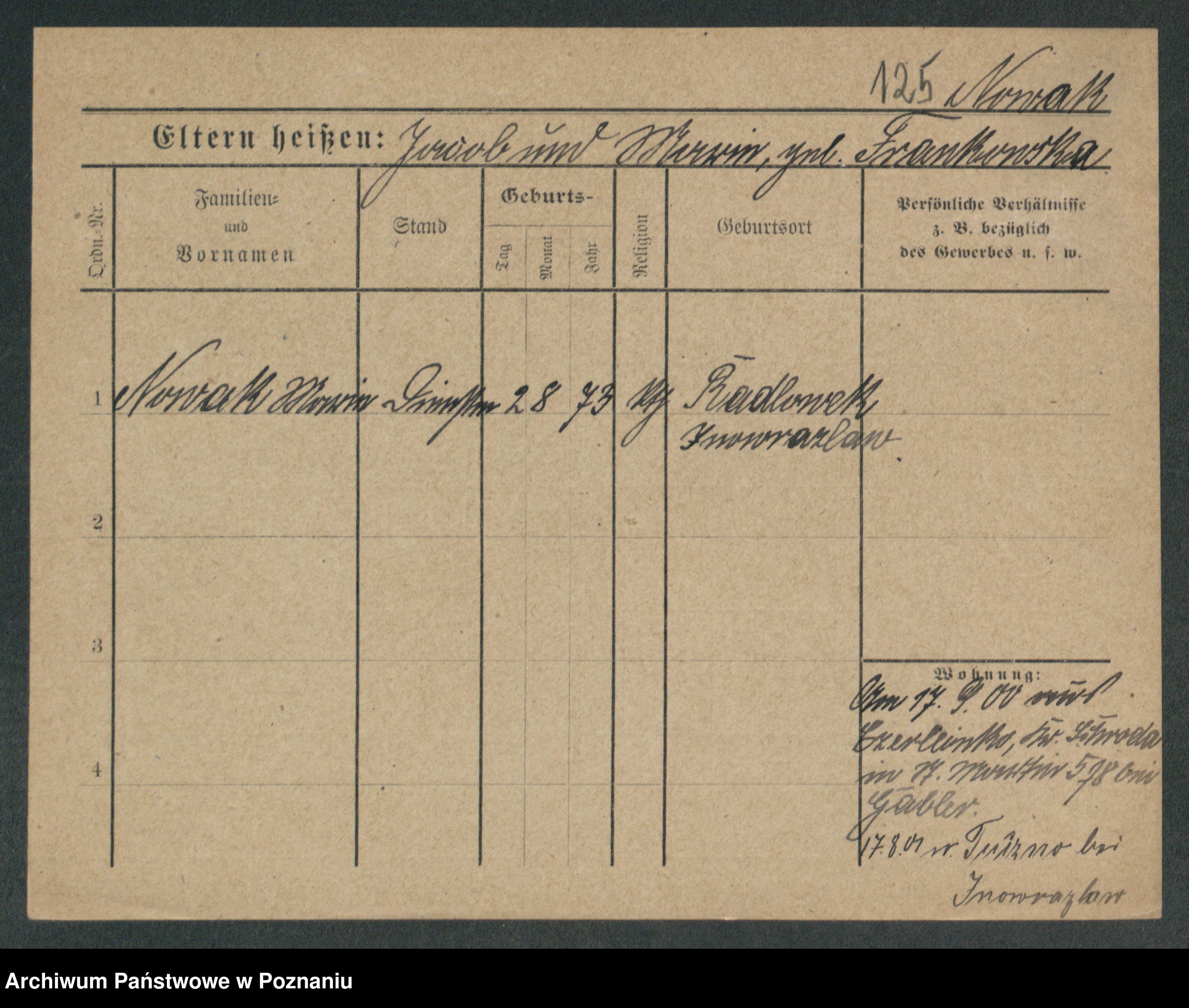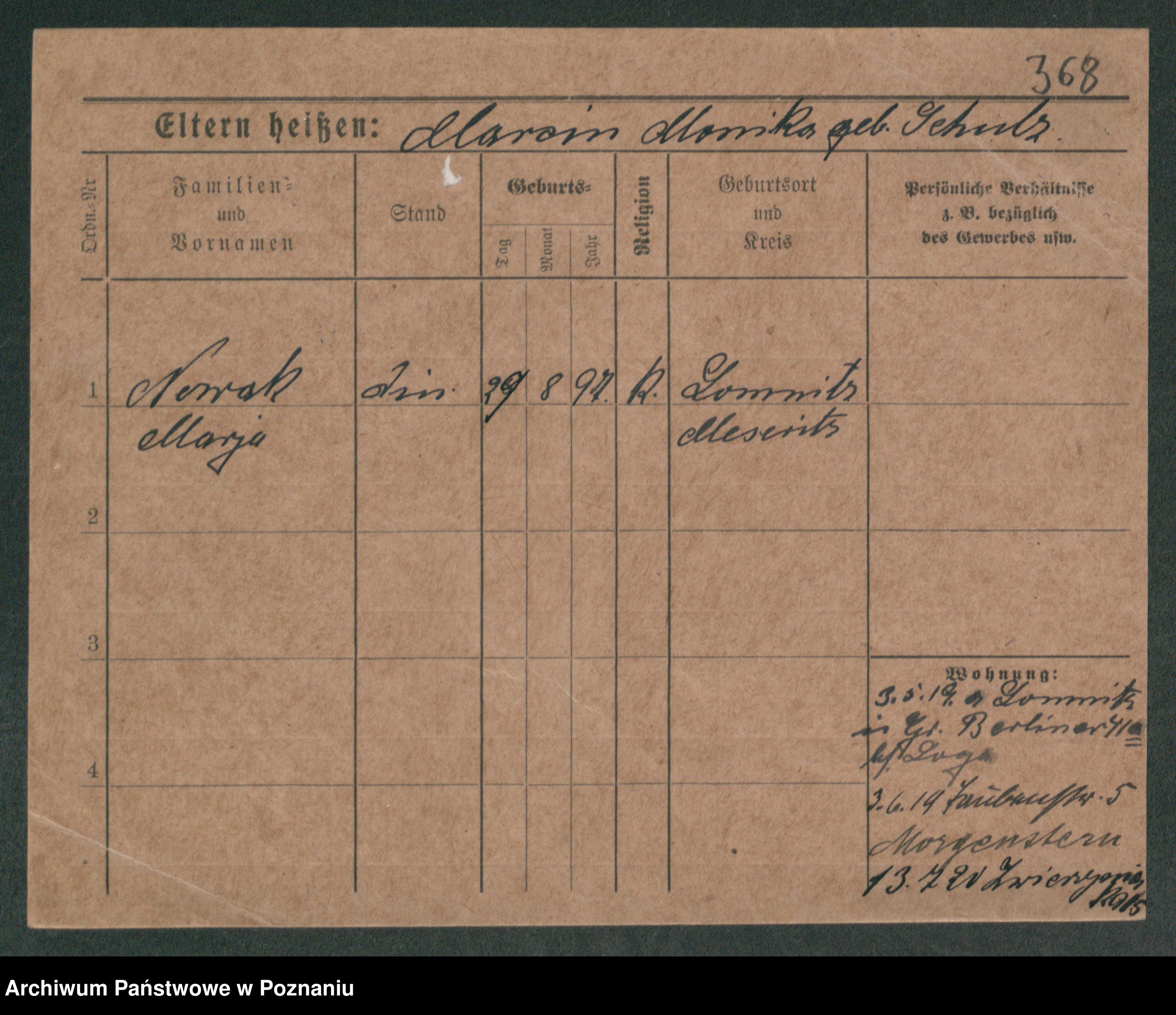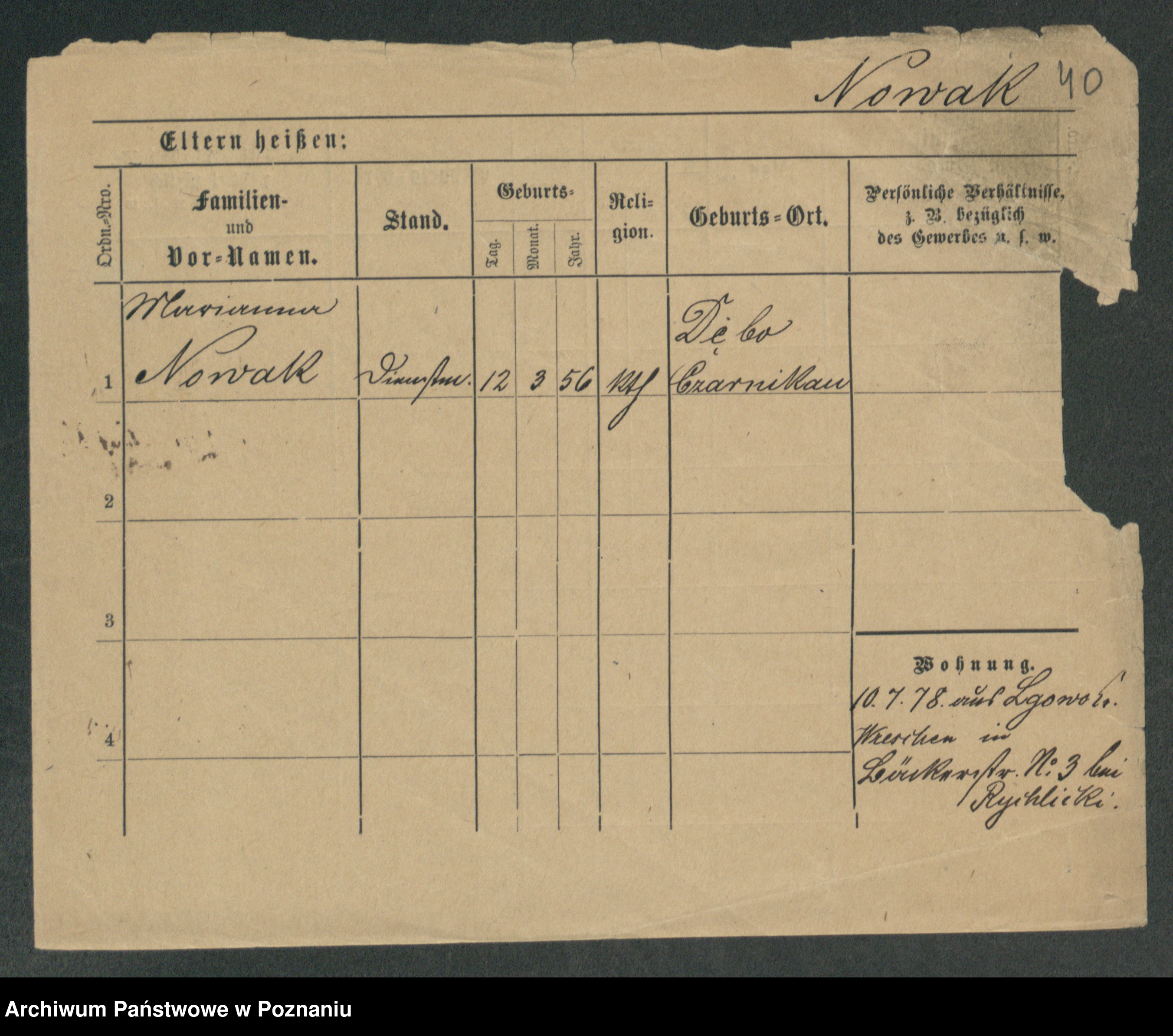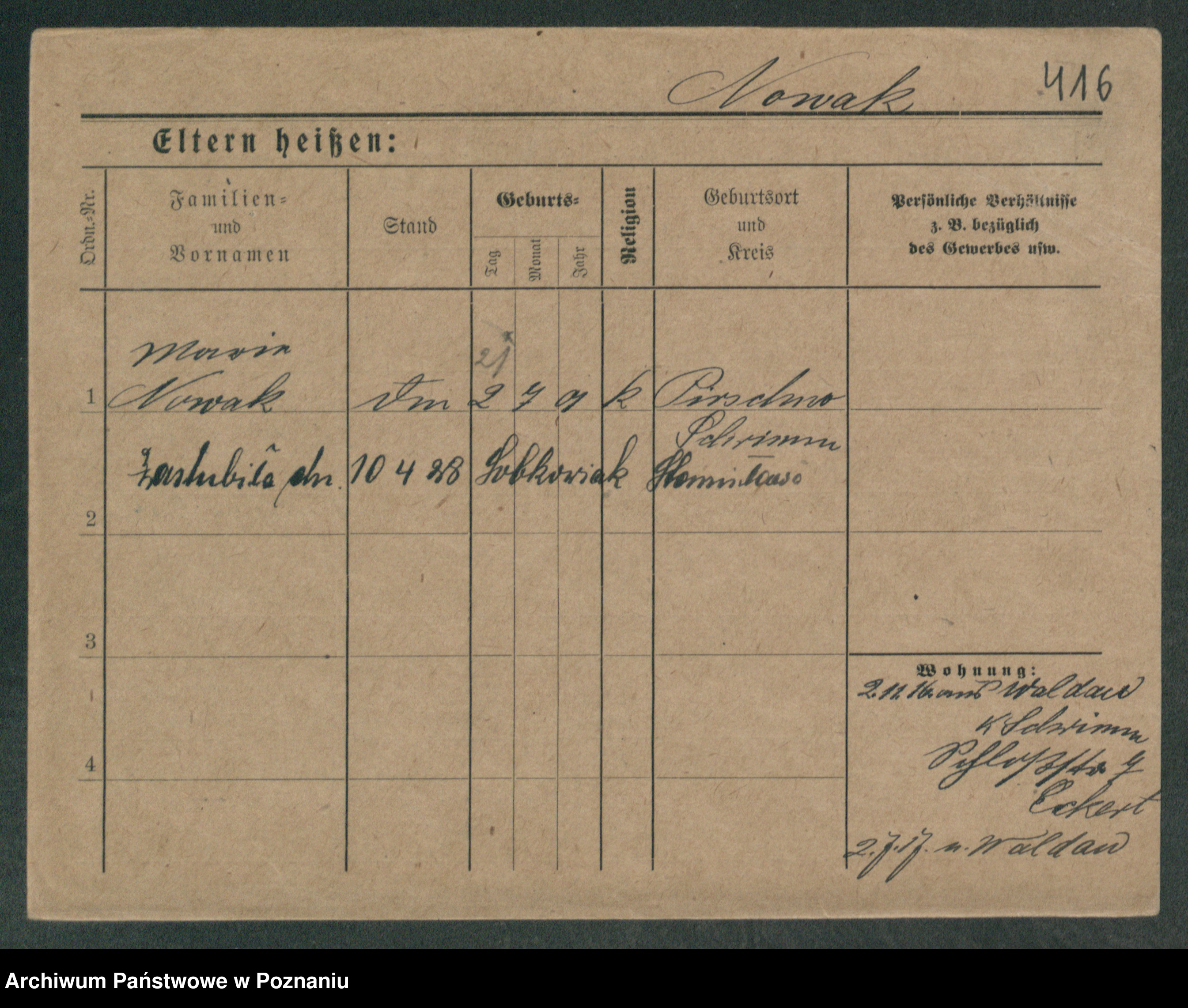 Podgląd karty osobowej dostępny jest po kliknięciu na nazwisko lub ikonkę karty. Można dokonywać powiększenia (ikony na górze) lub przechodzić między kolejnymi skanami (strzałki po bokach).