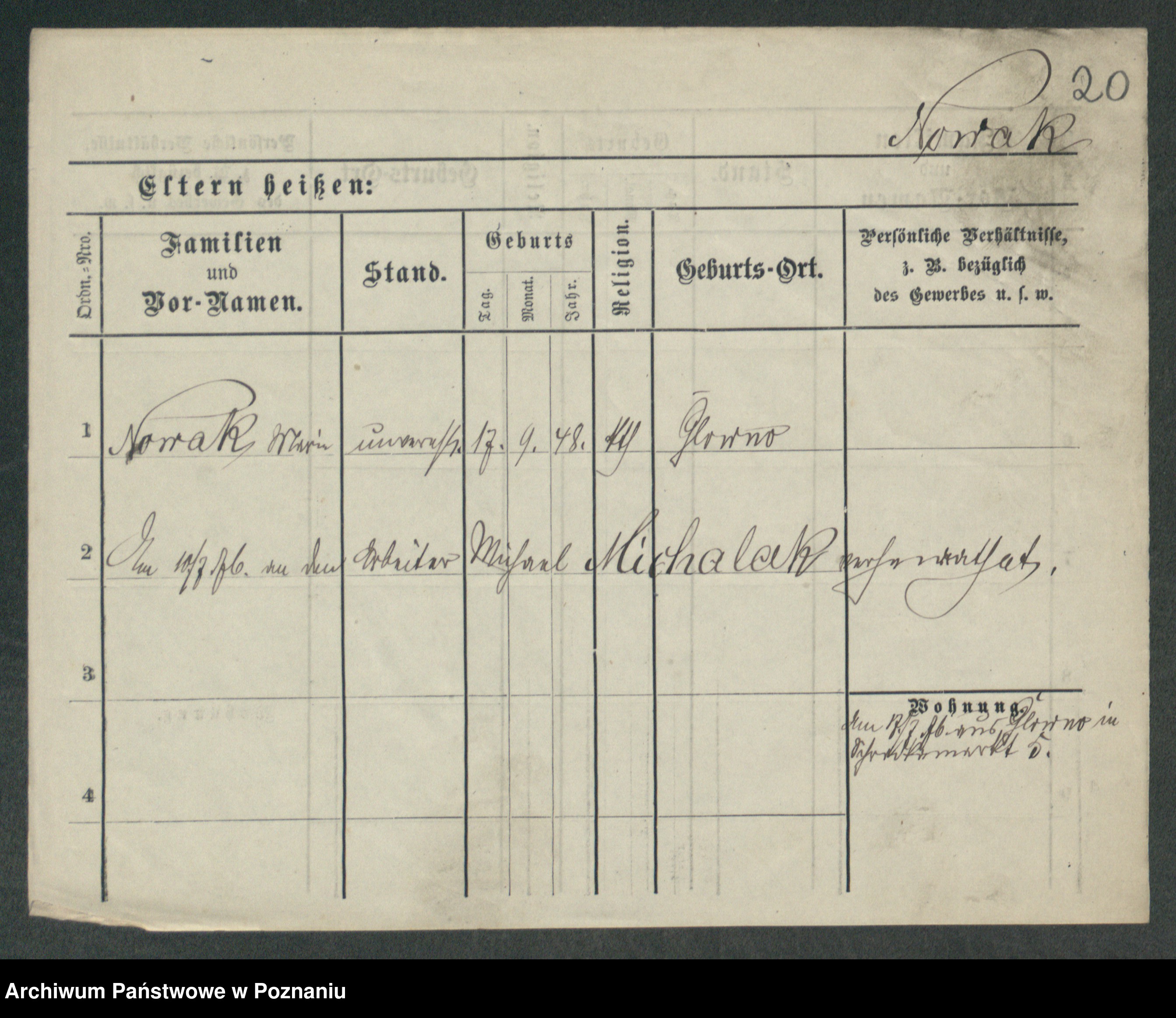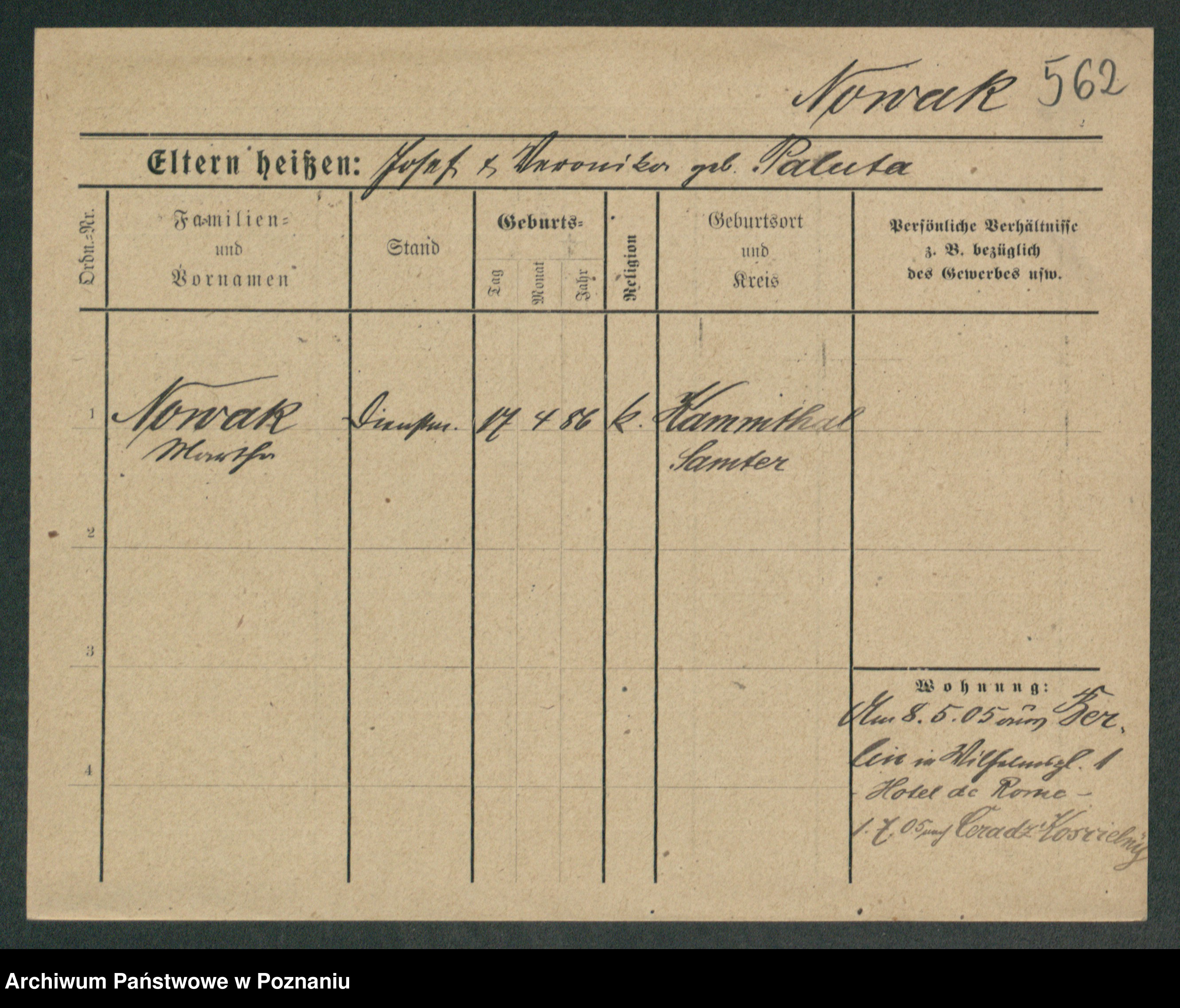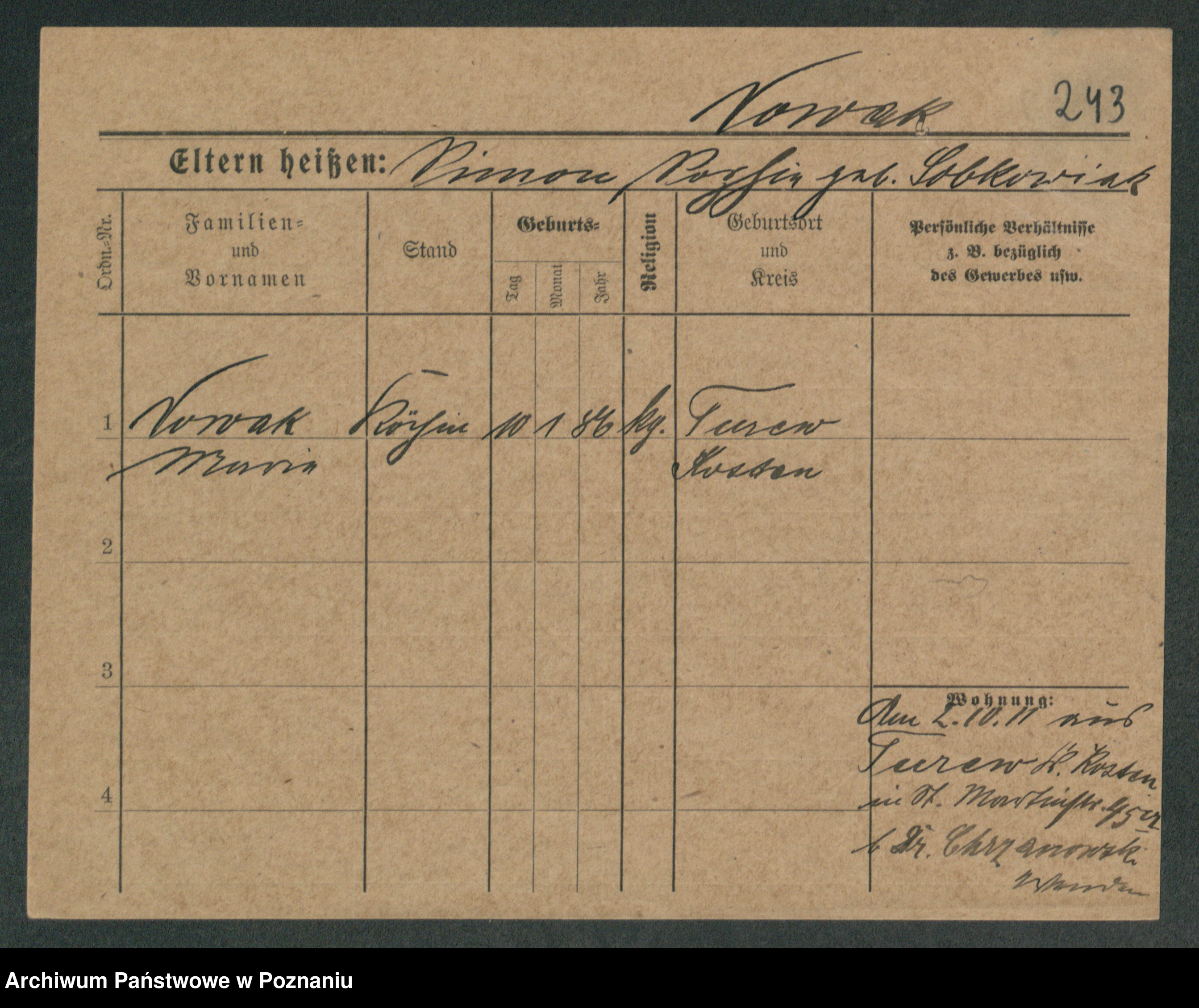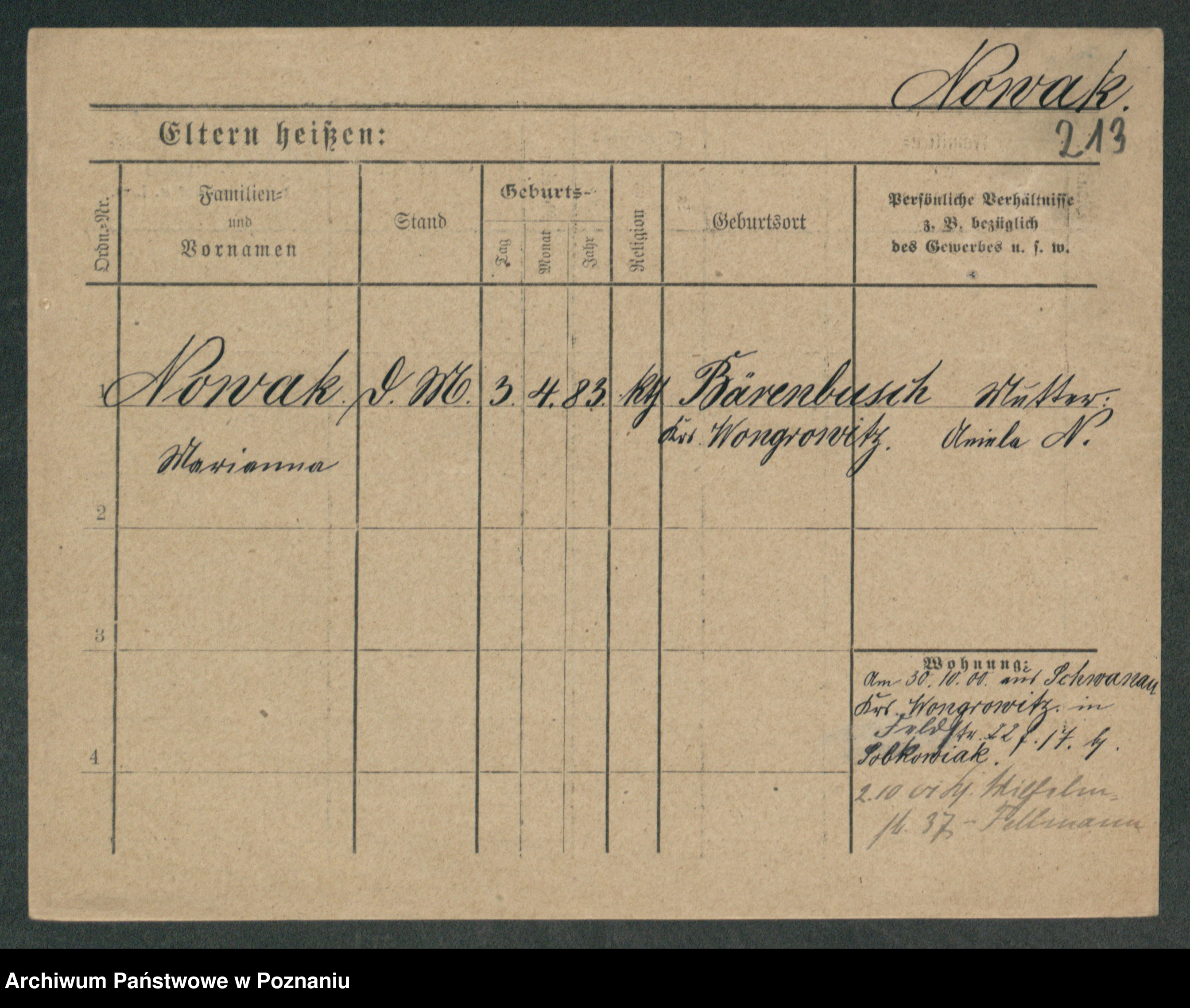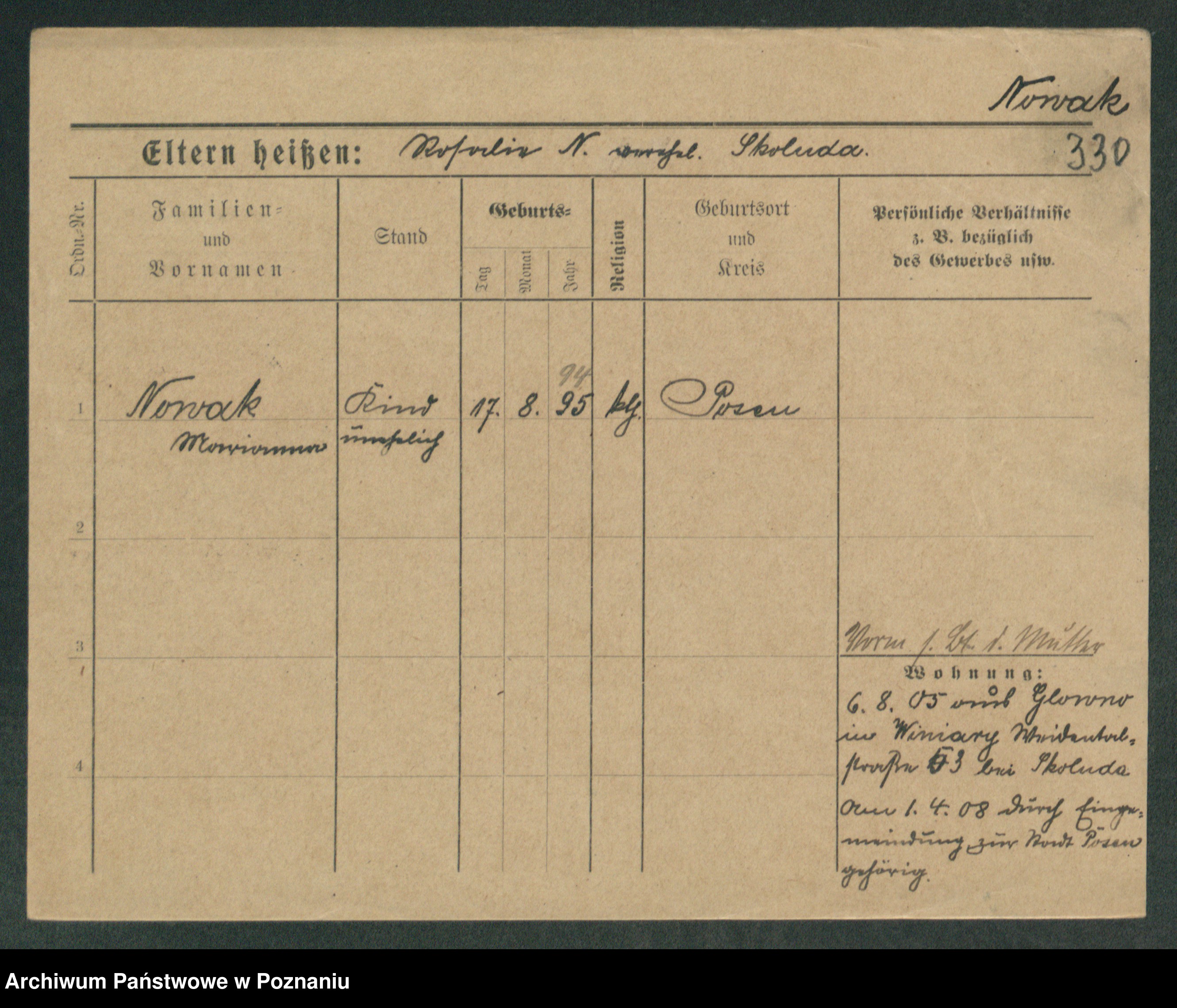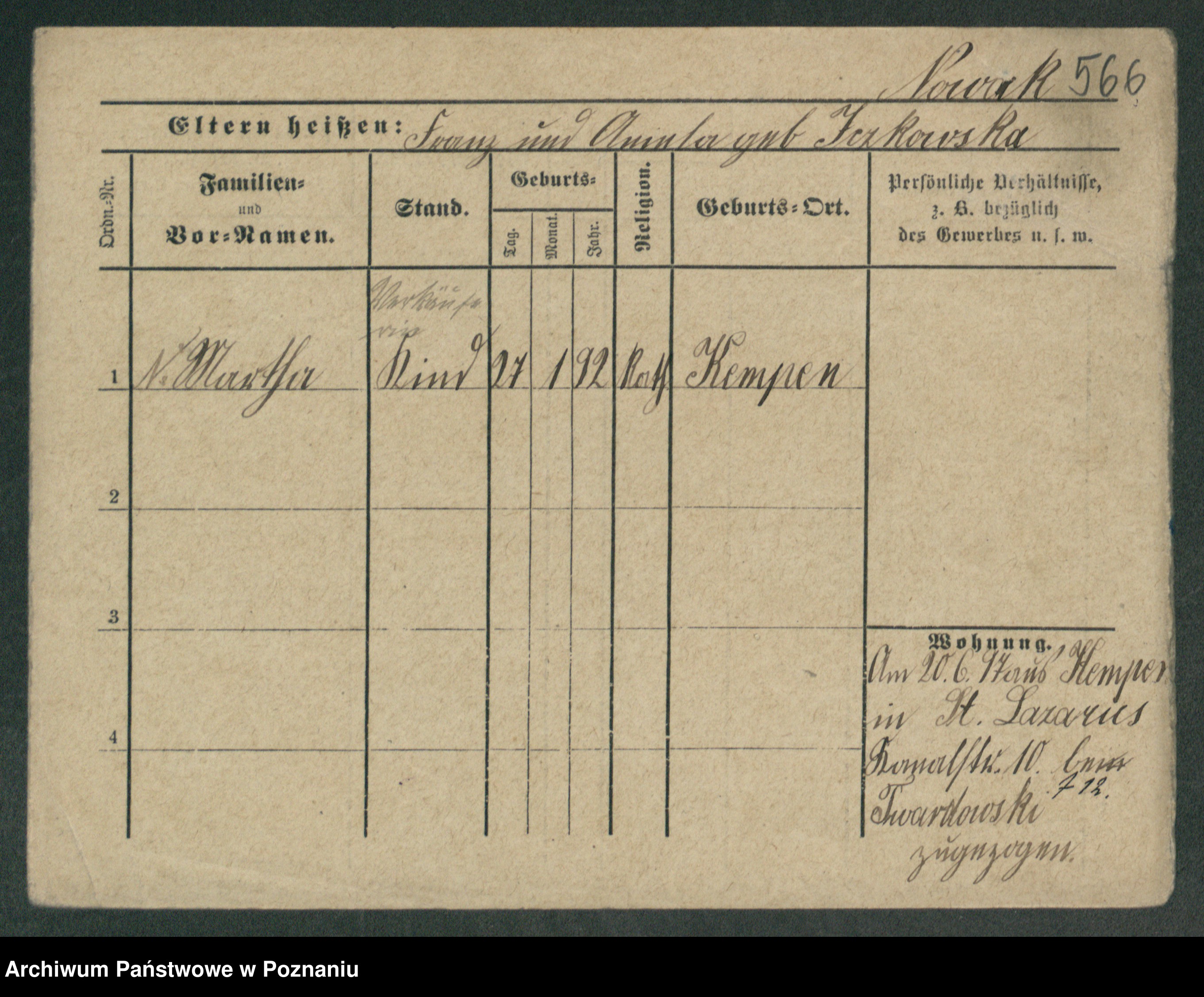 Podgląd karty osobowej dostępny jest po kliknięciu na nazwisko lub ikonkę karty. Można dokonywać powiększenia (ikony na górze) lub przechodzić między kolejnymi skanami (strzałki po bokach).