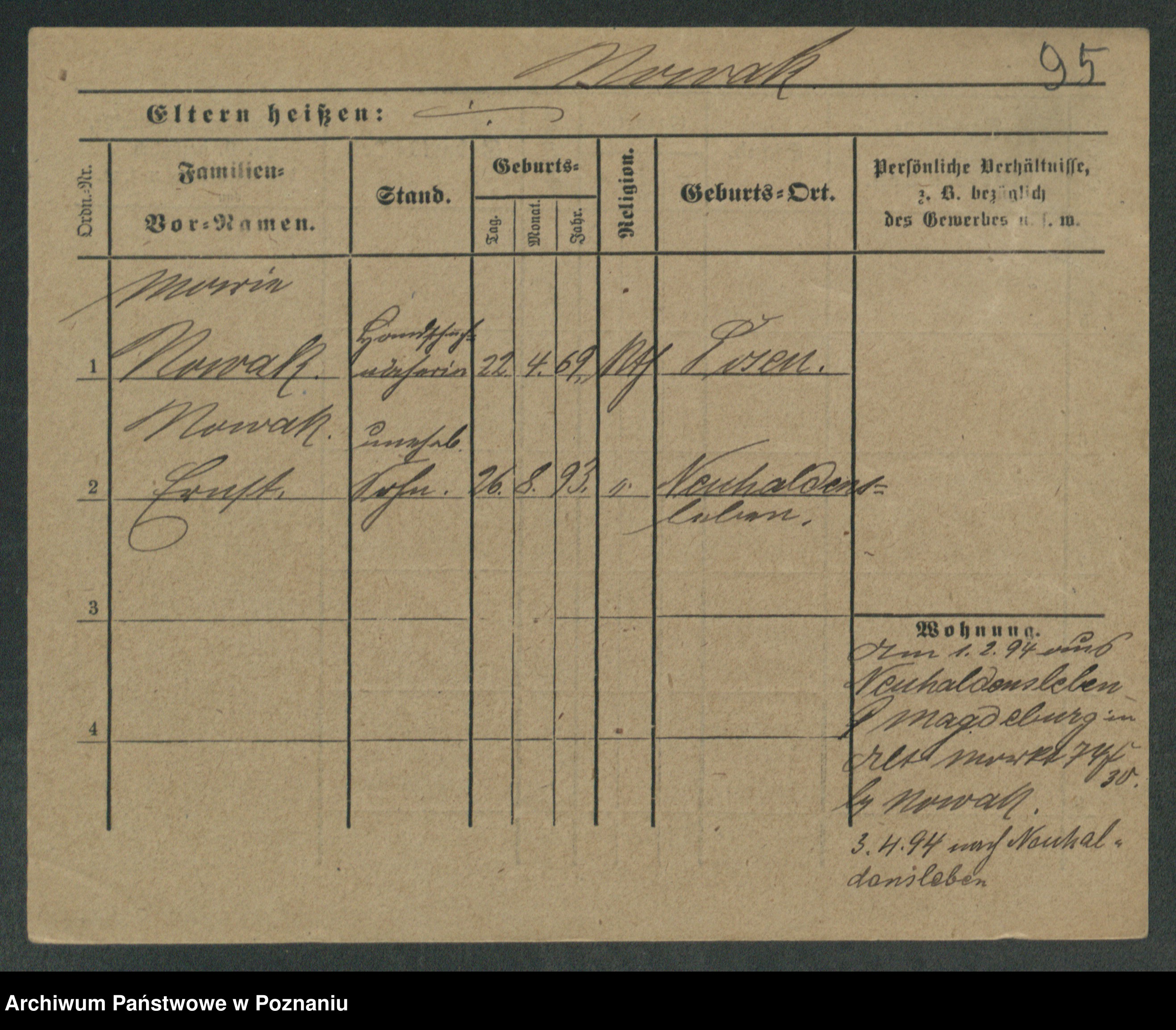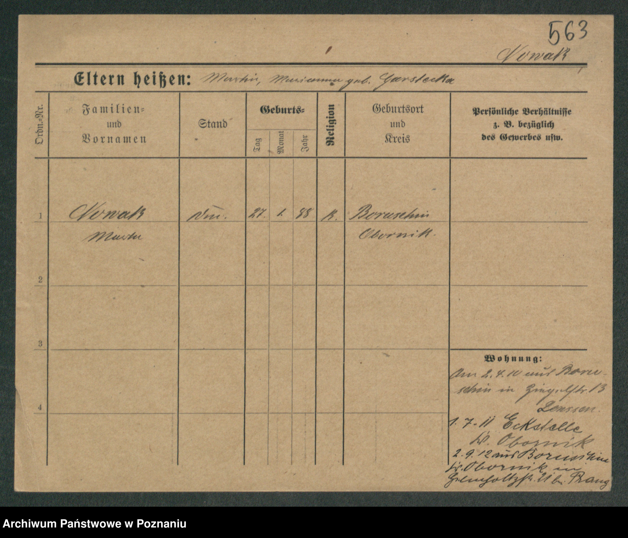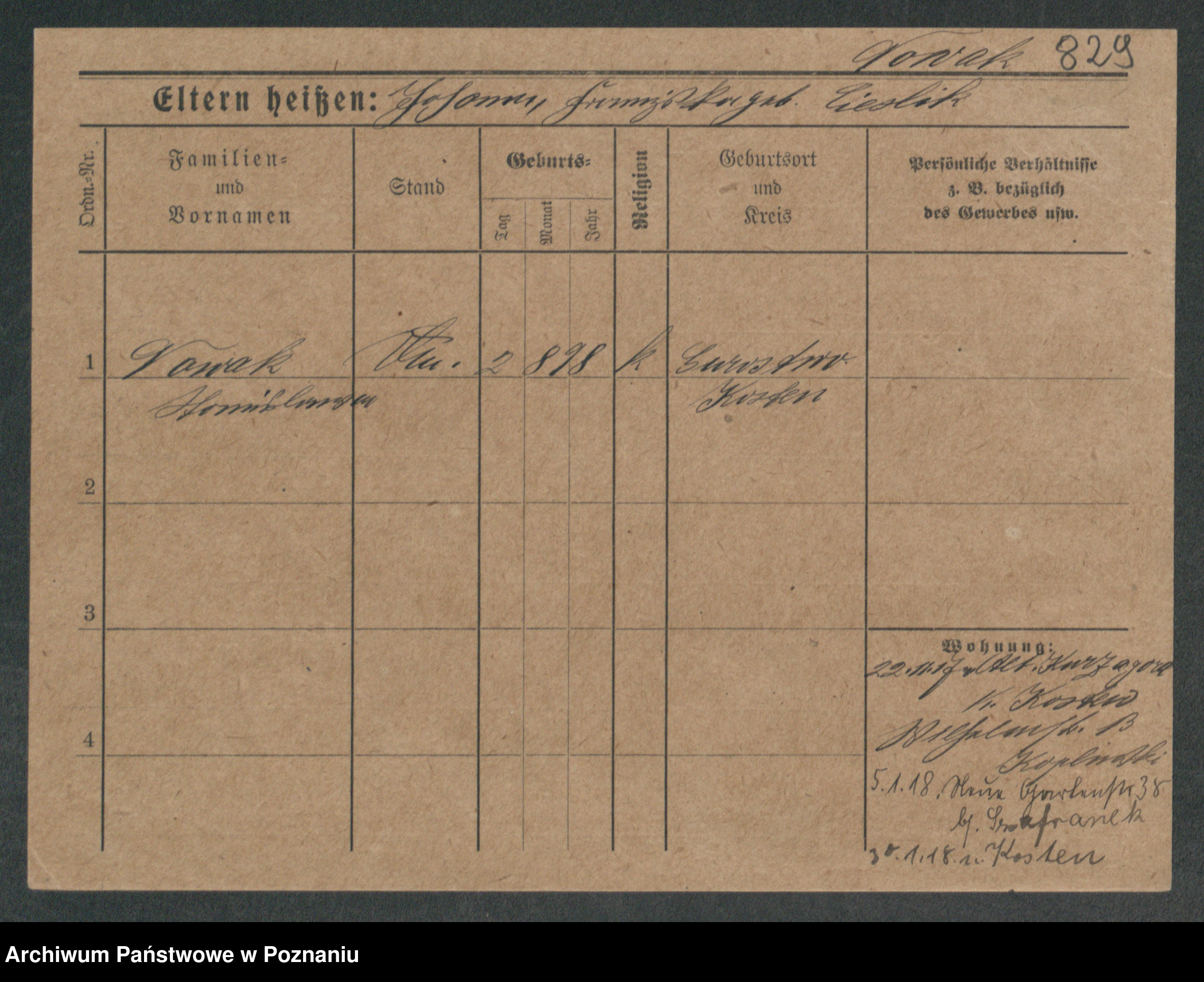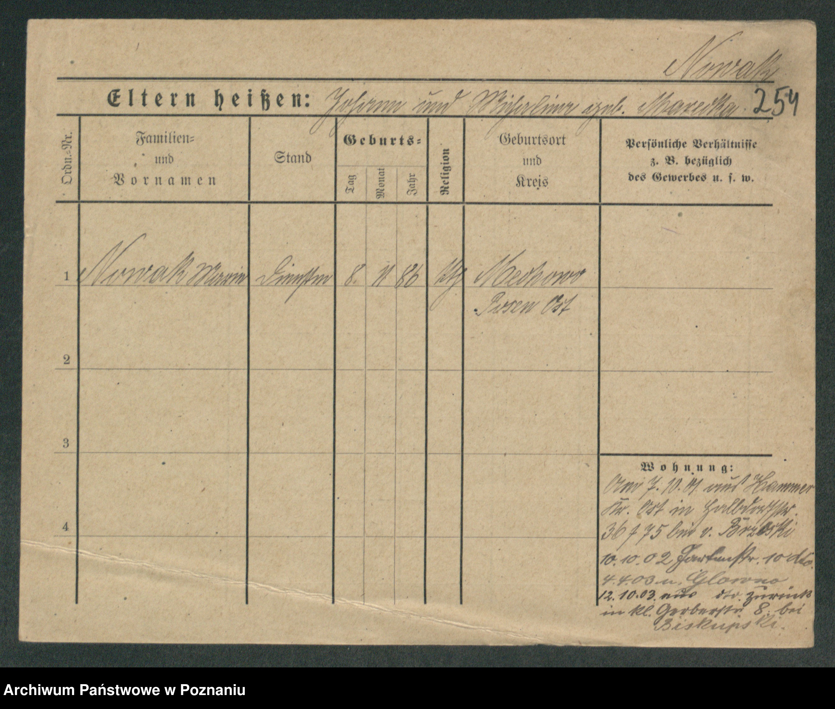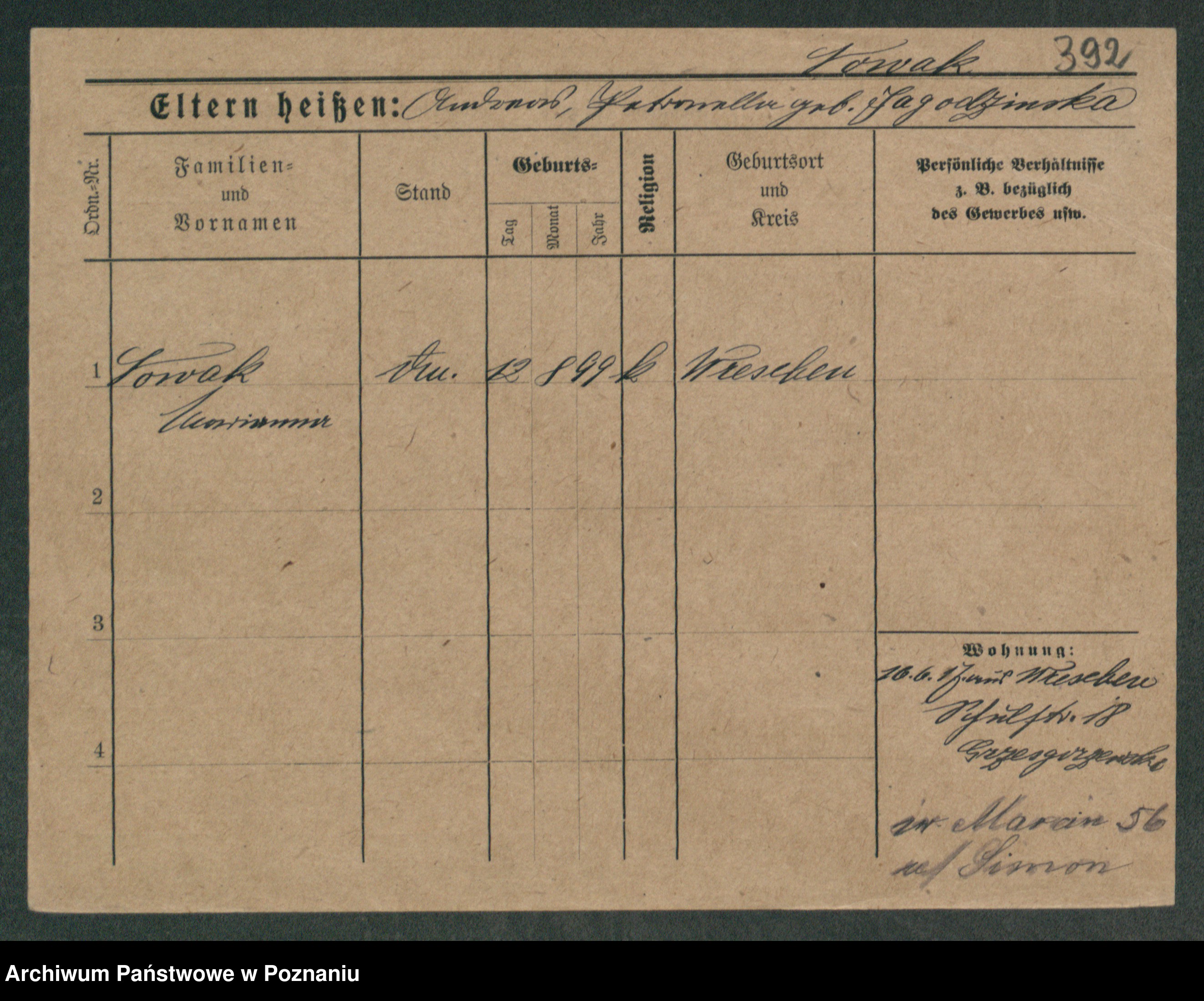 Podgląd karty osobowej dostępny jest po kliknięciu na nazwisko lub ikonkę karty. Można dokonywać powiększenia (ikony na górze) lub przechodzić między kolejnymi skanami (strzałki po bokach).