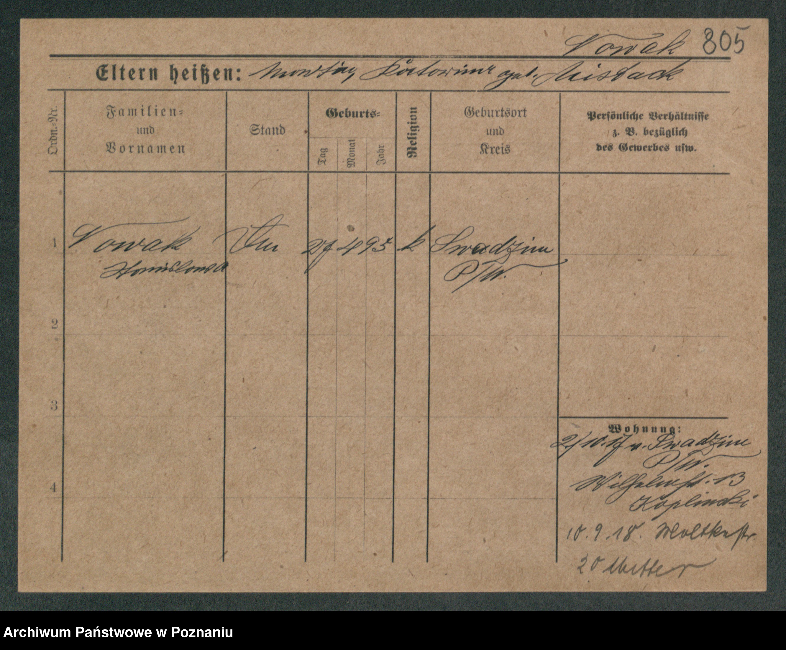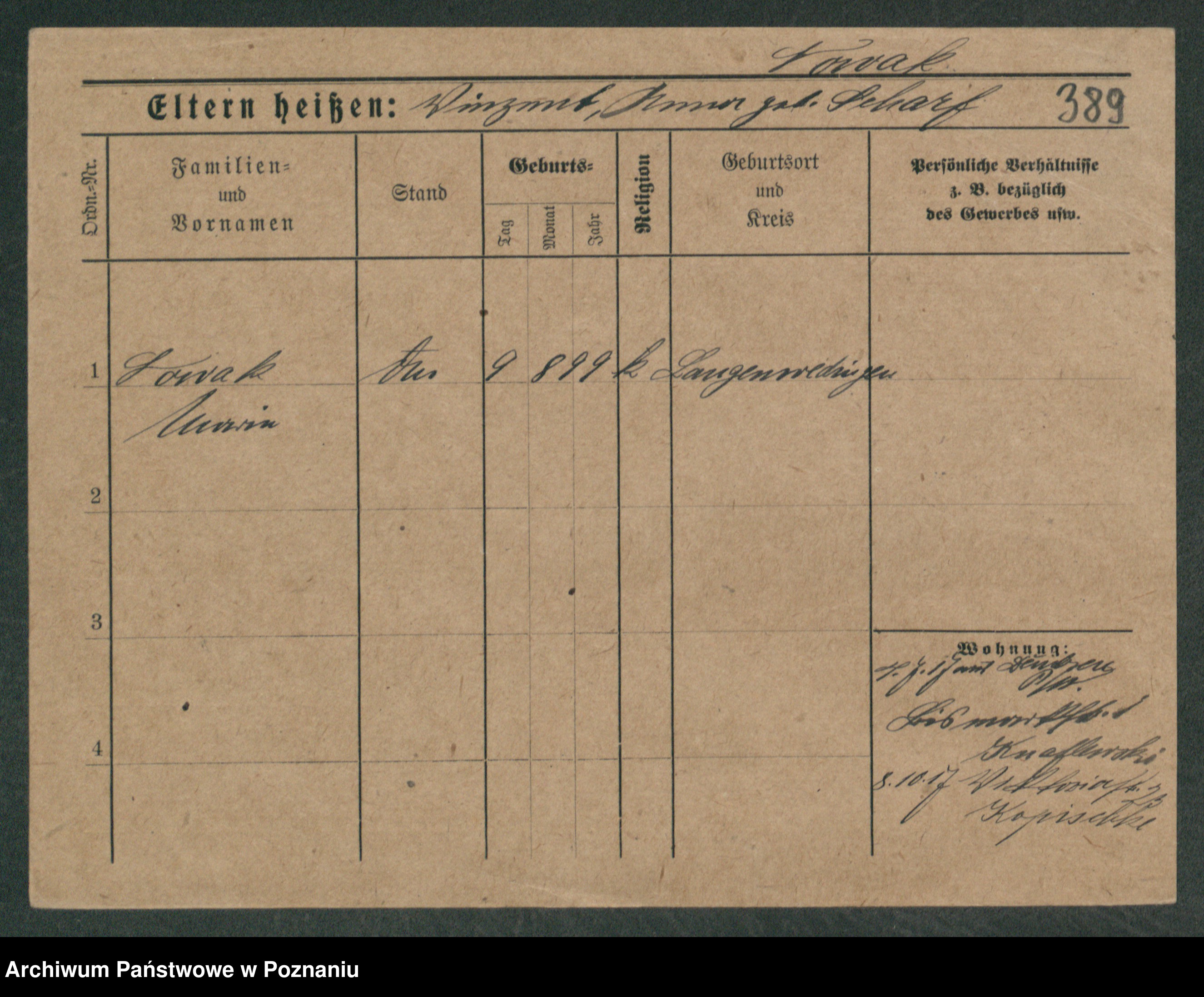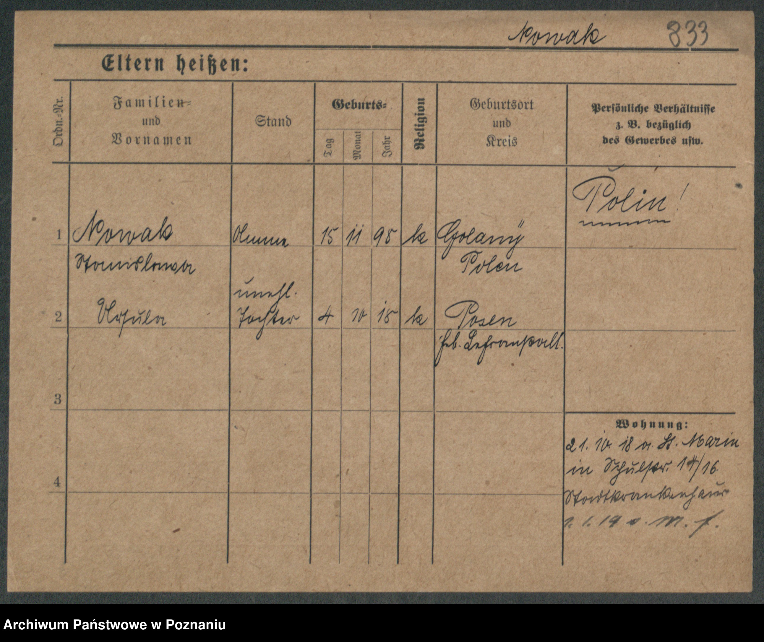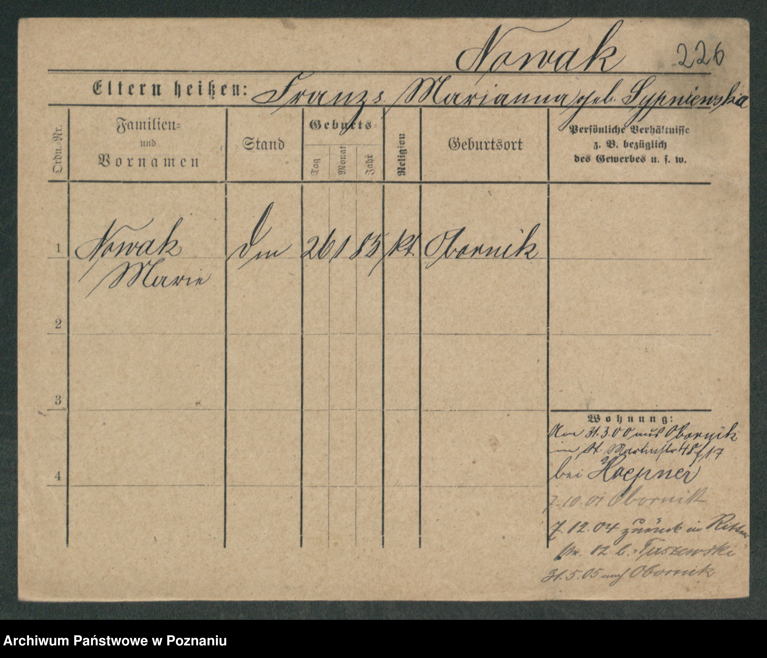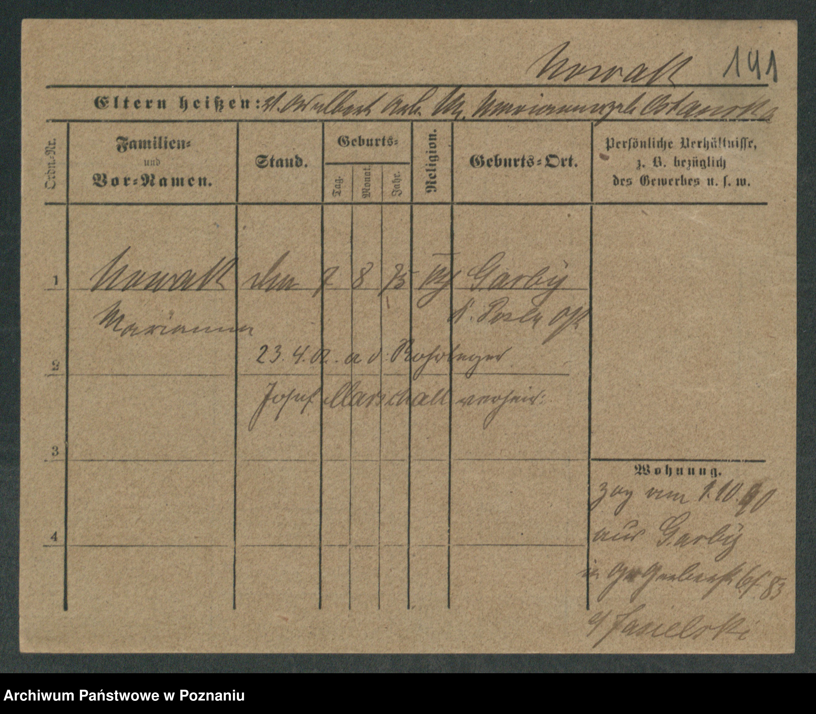 Podgląd karty osobowej dostępny jest po kliknięciu na nazwisko lub ikonkę karty. Można dokonywać powiększenia (ikony na górze) lub przechodzić między kolejnymi skanami (strzałki po bokach).