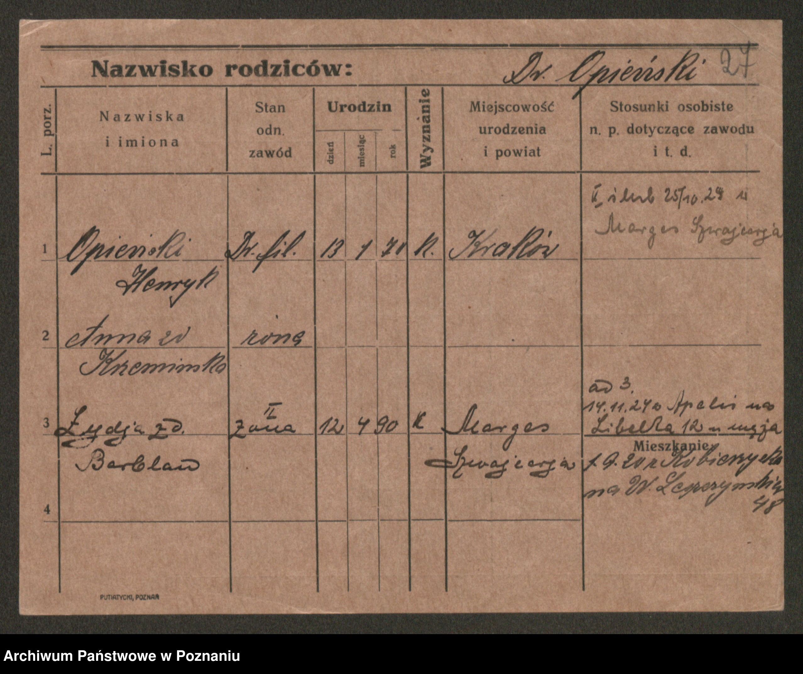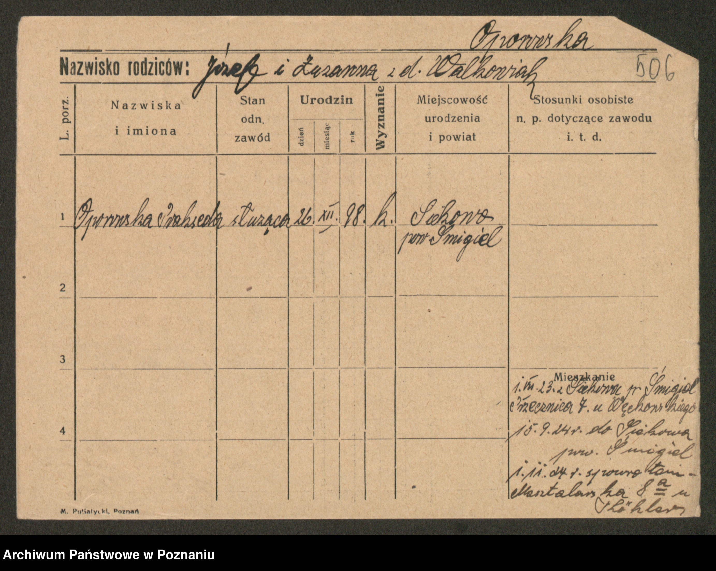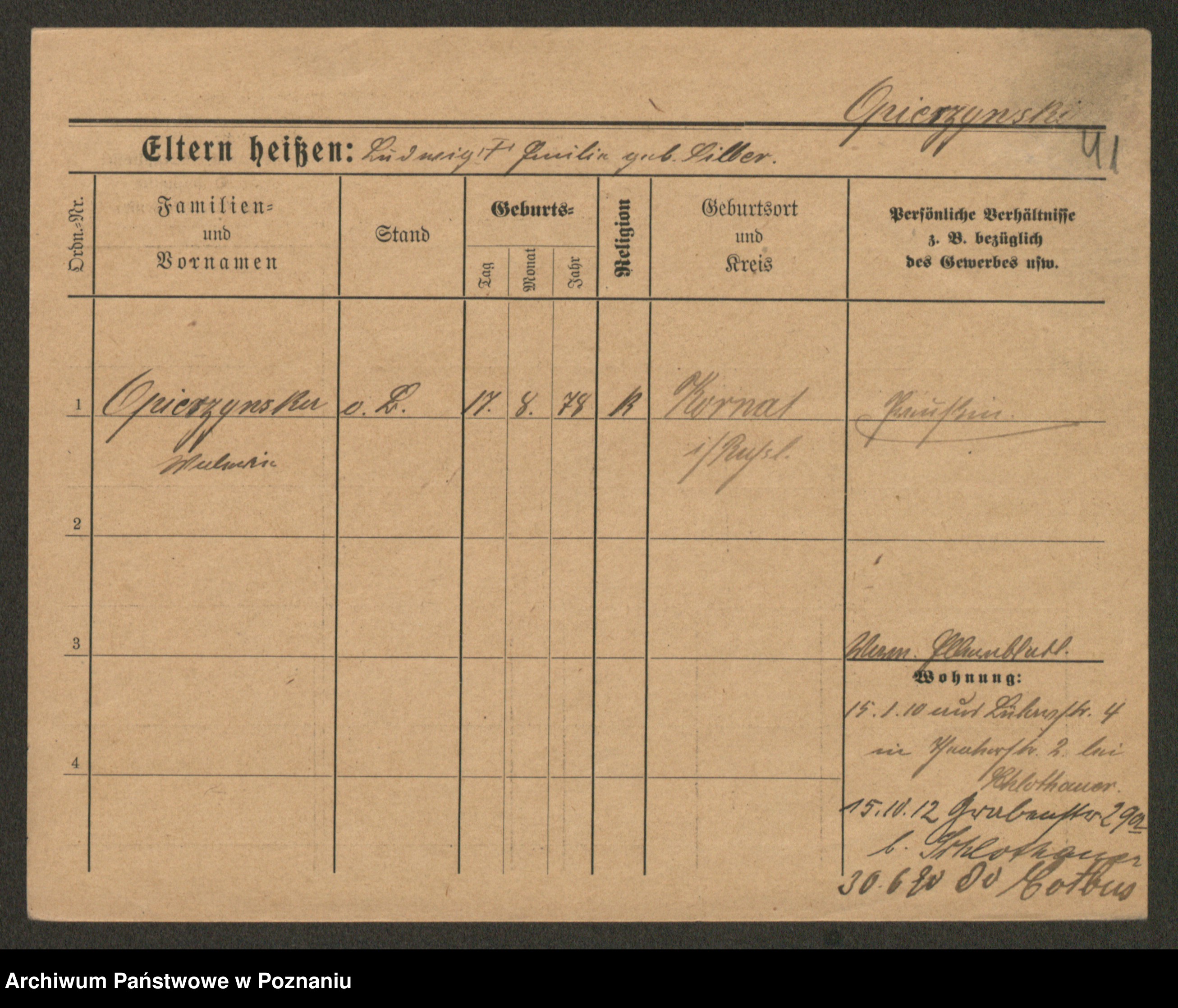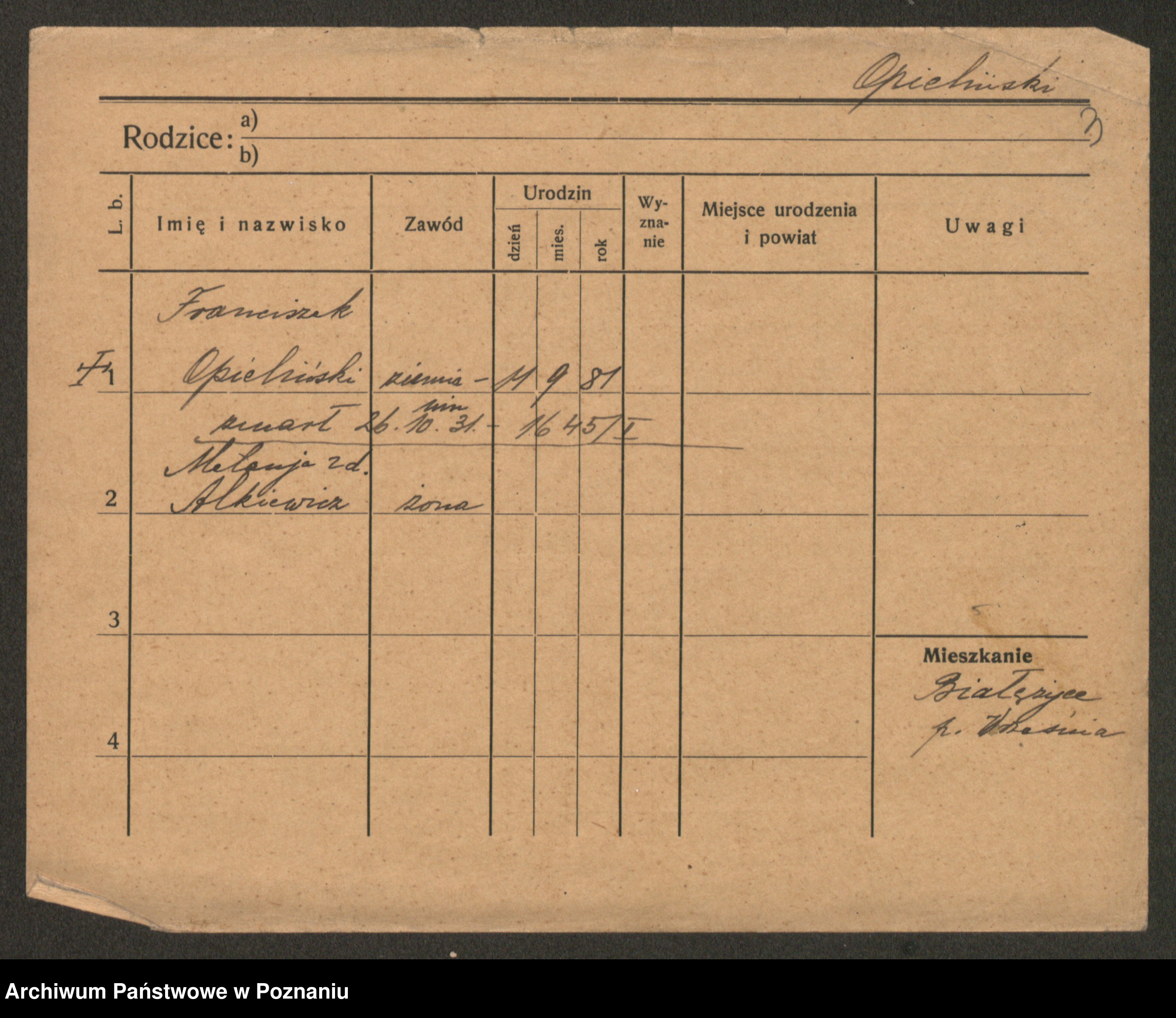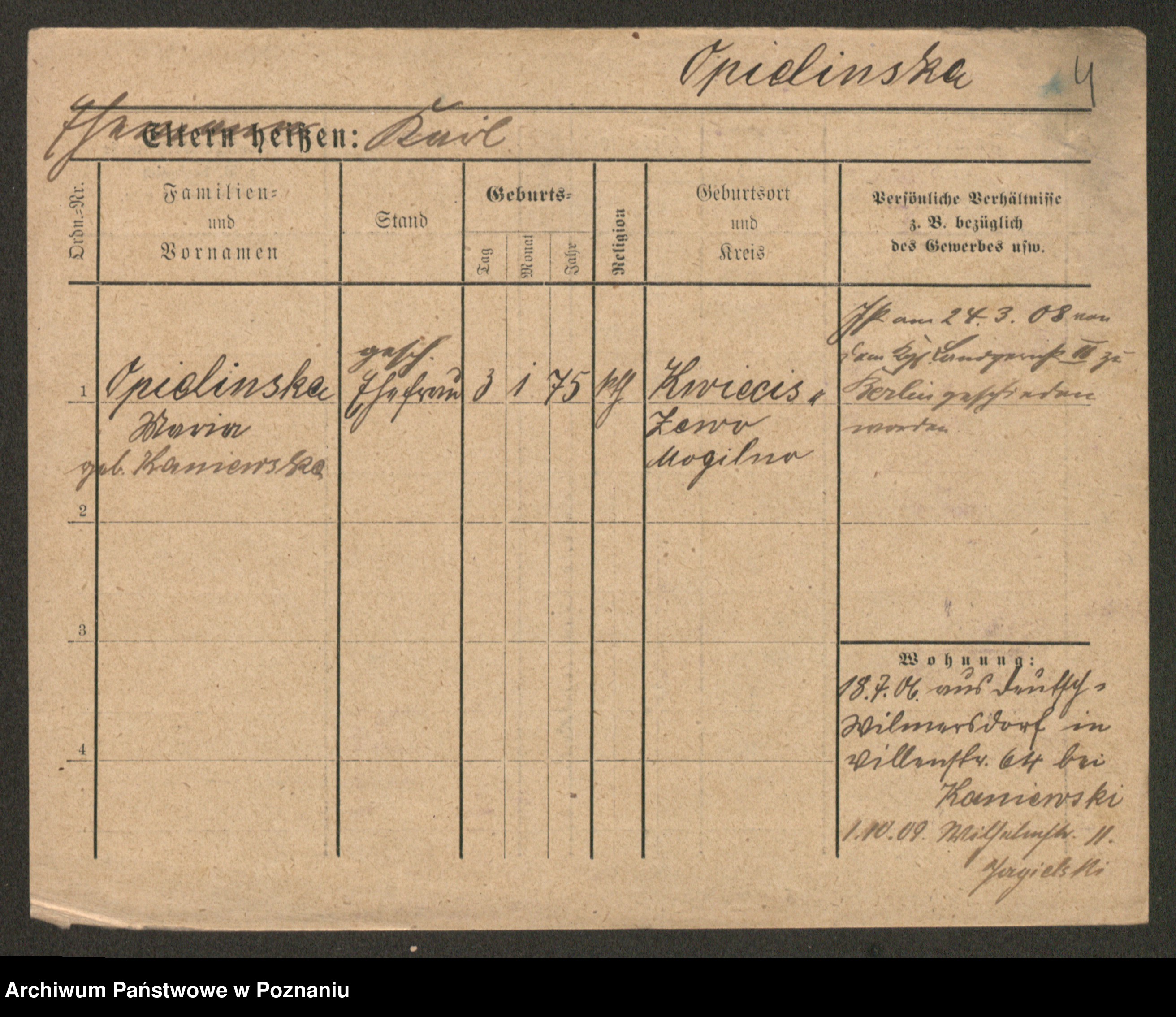 Opilinski z d. Kompf I voto Brychczynski, Marie