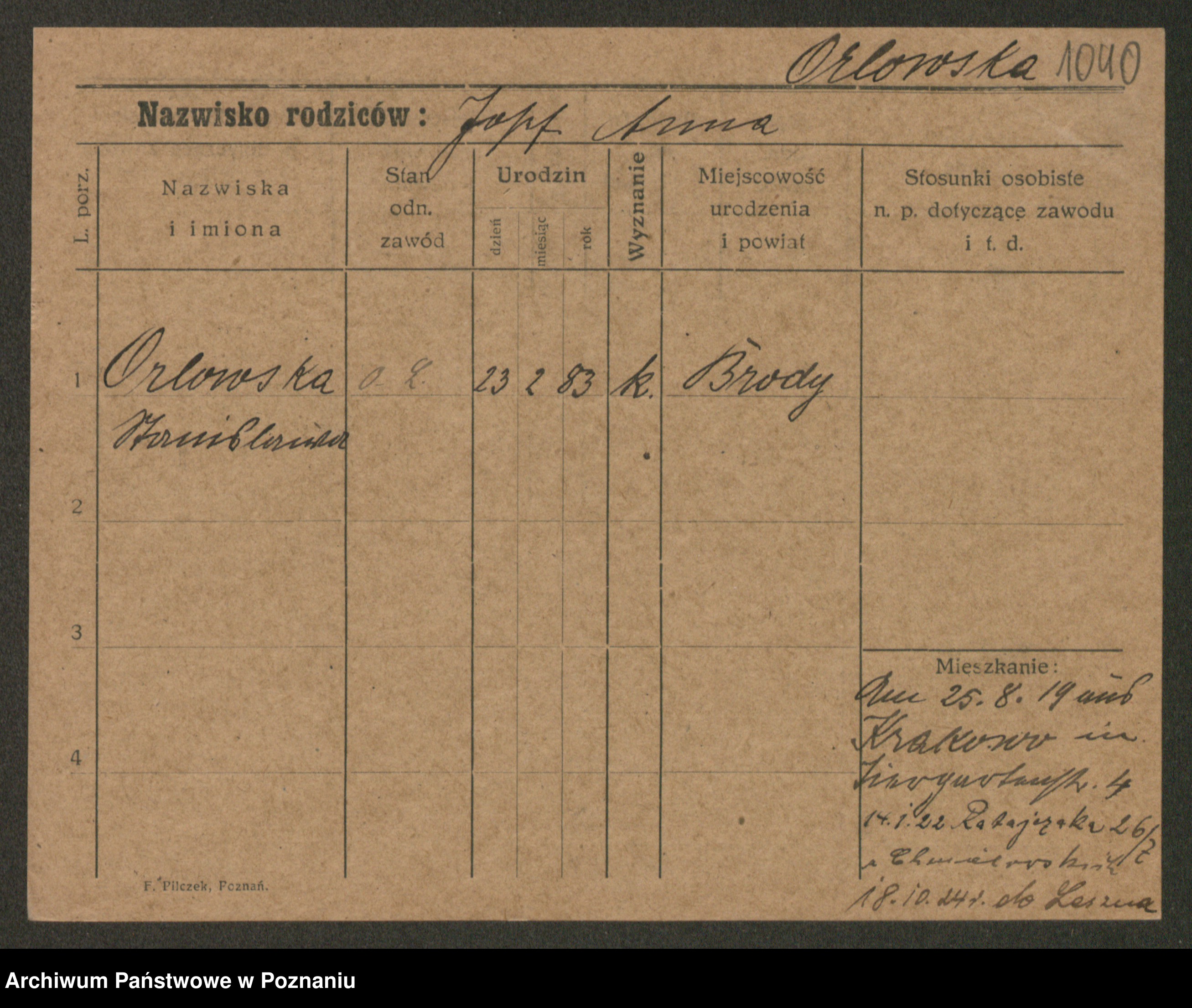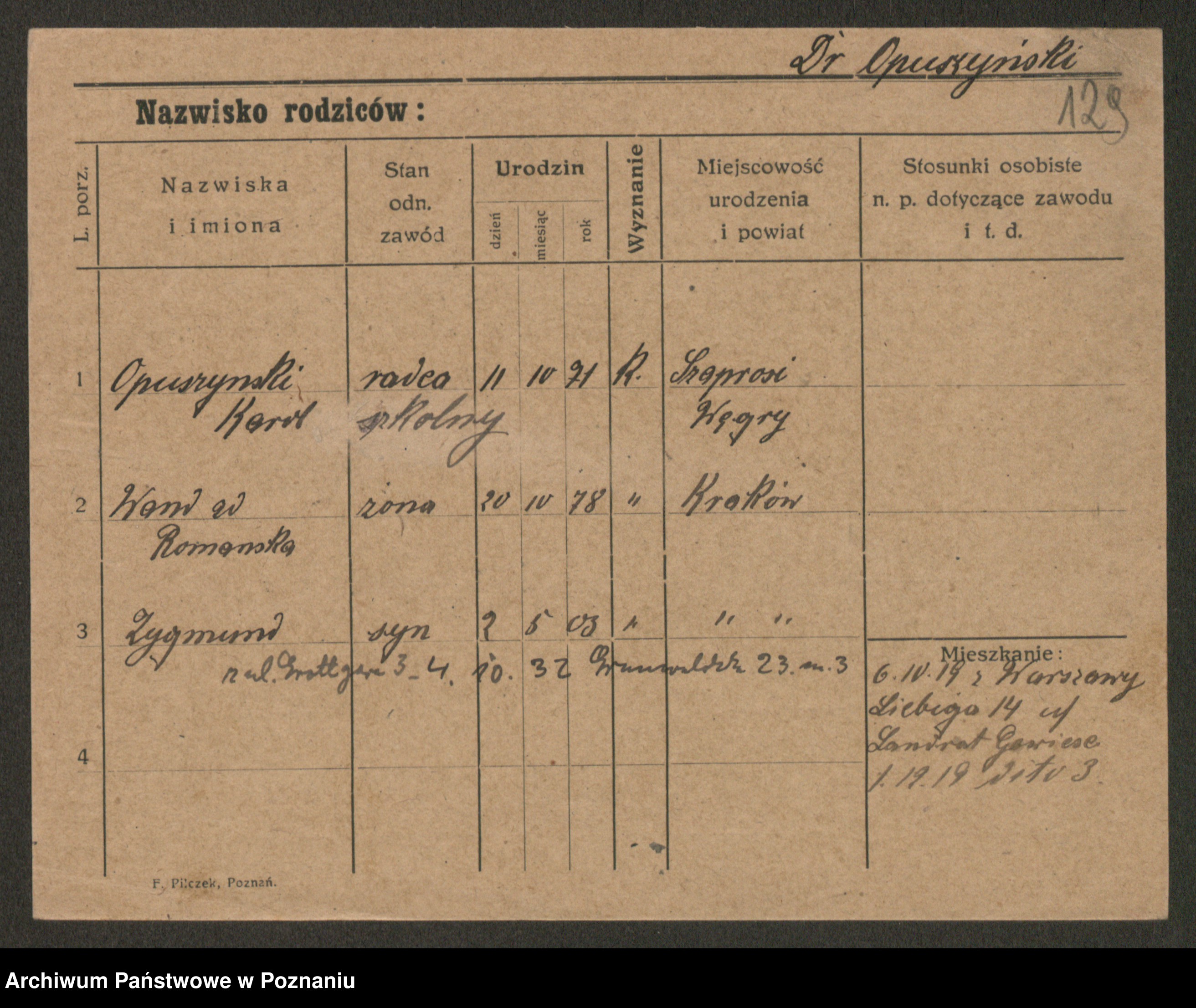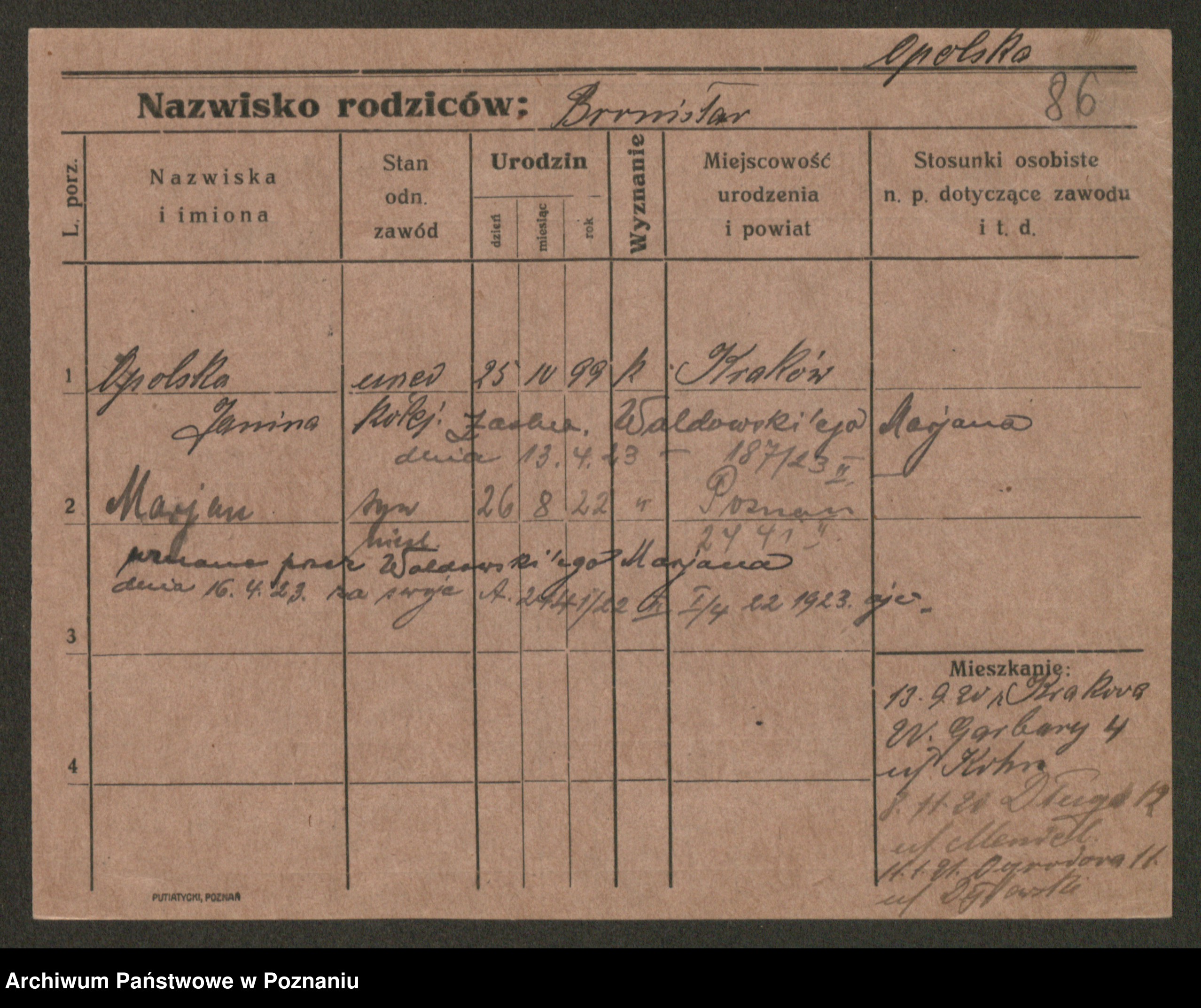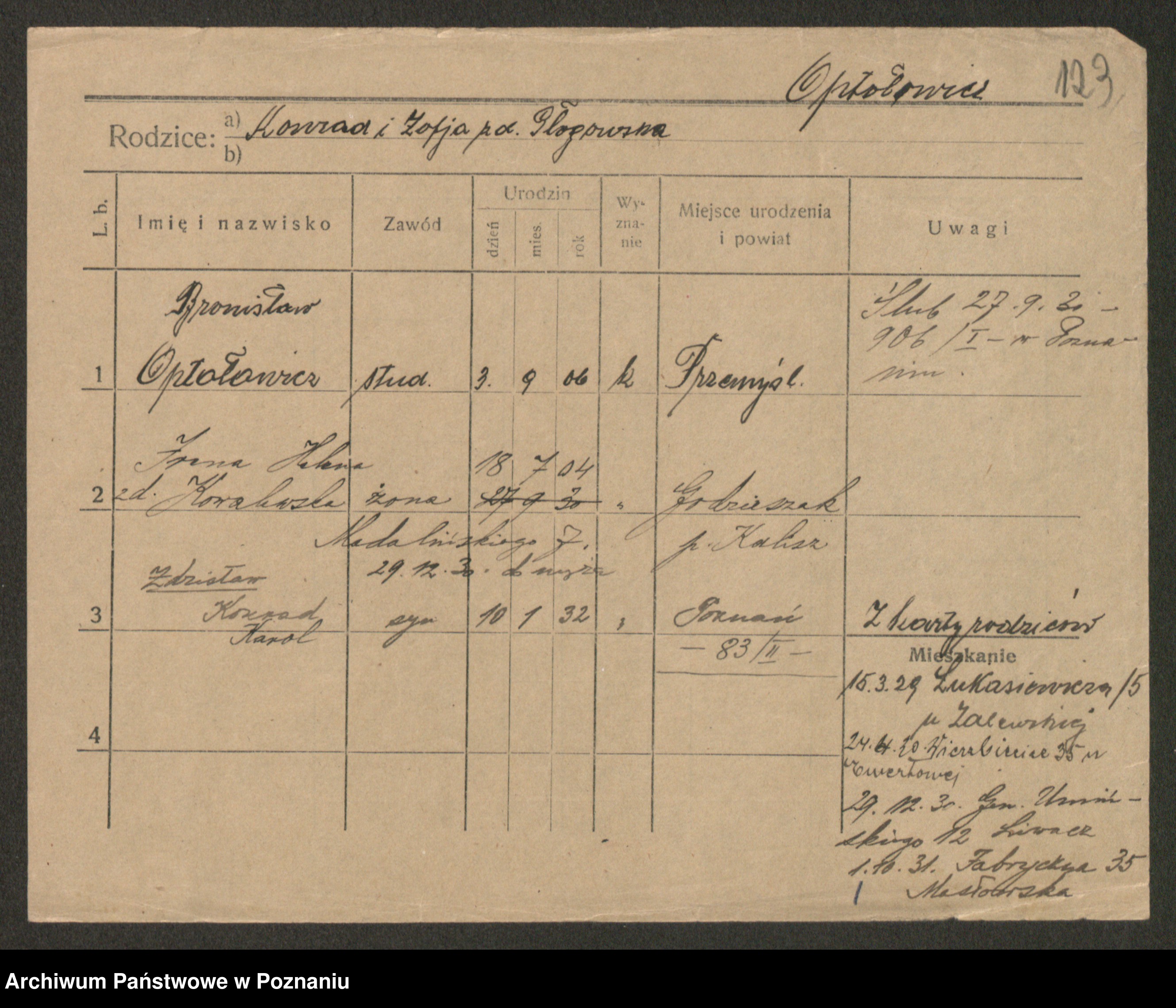 Opilinski z d. Kompf I voto Brychczynski, Marie