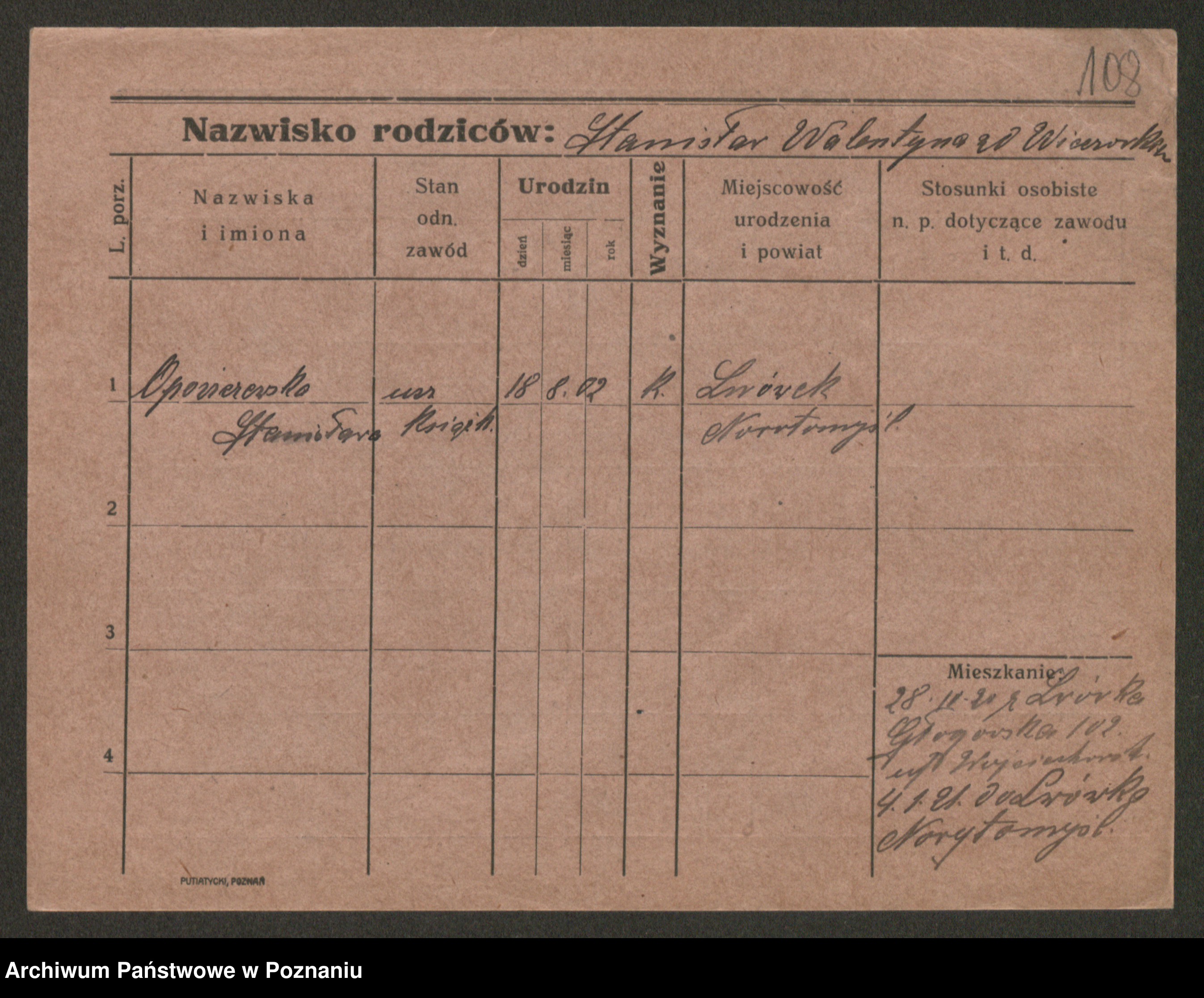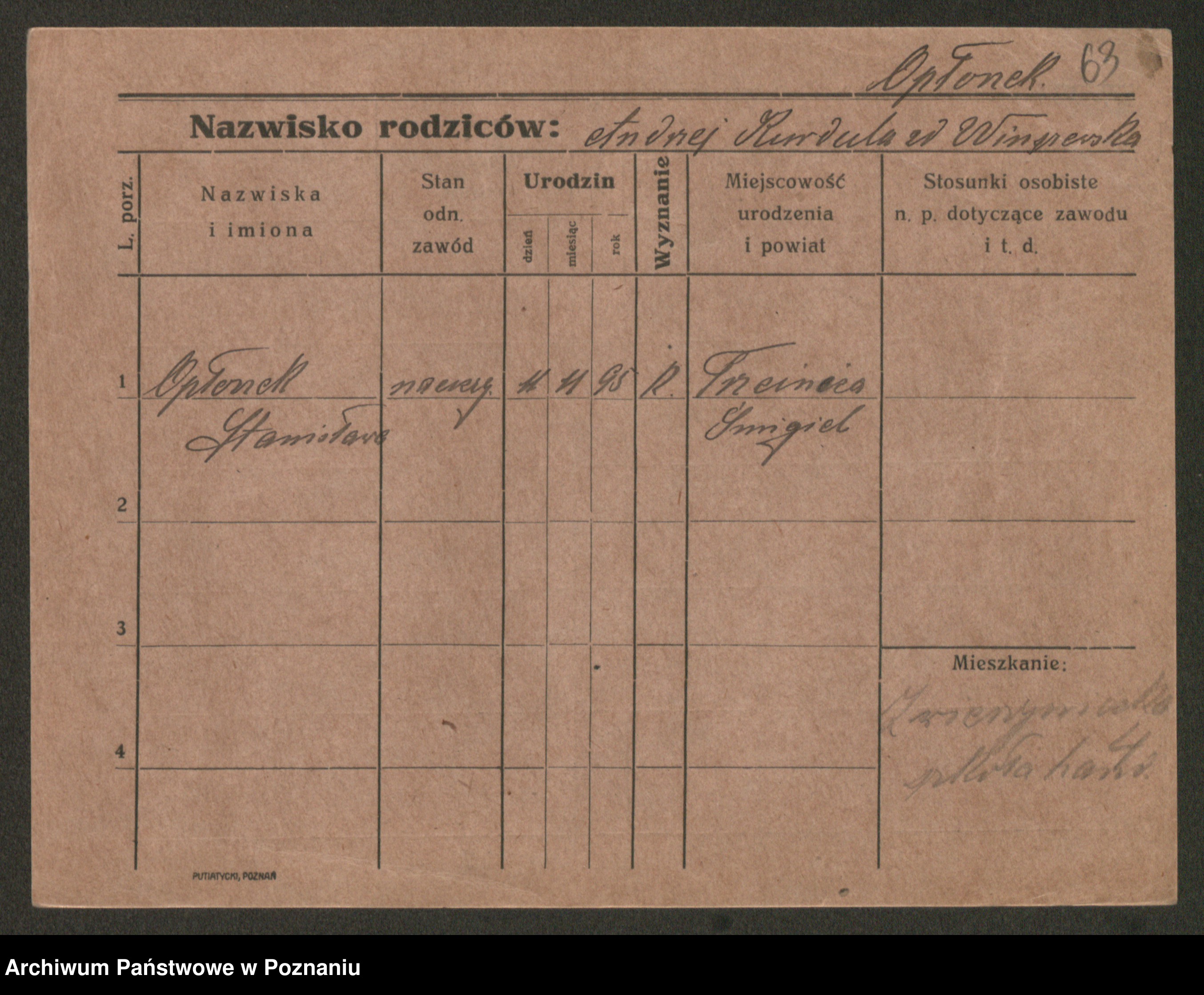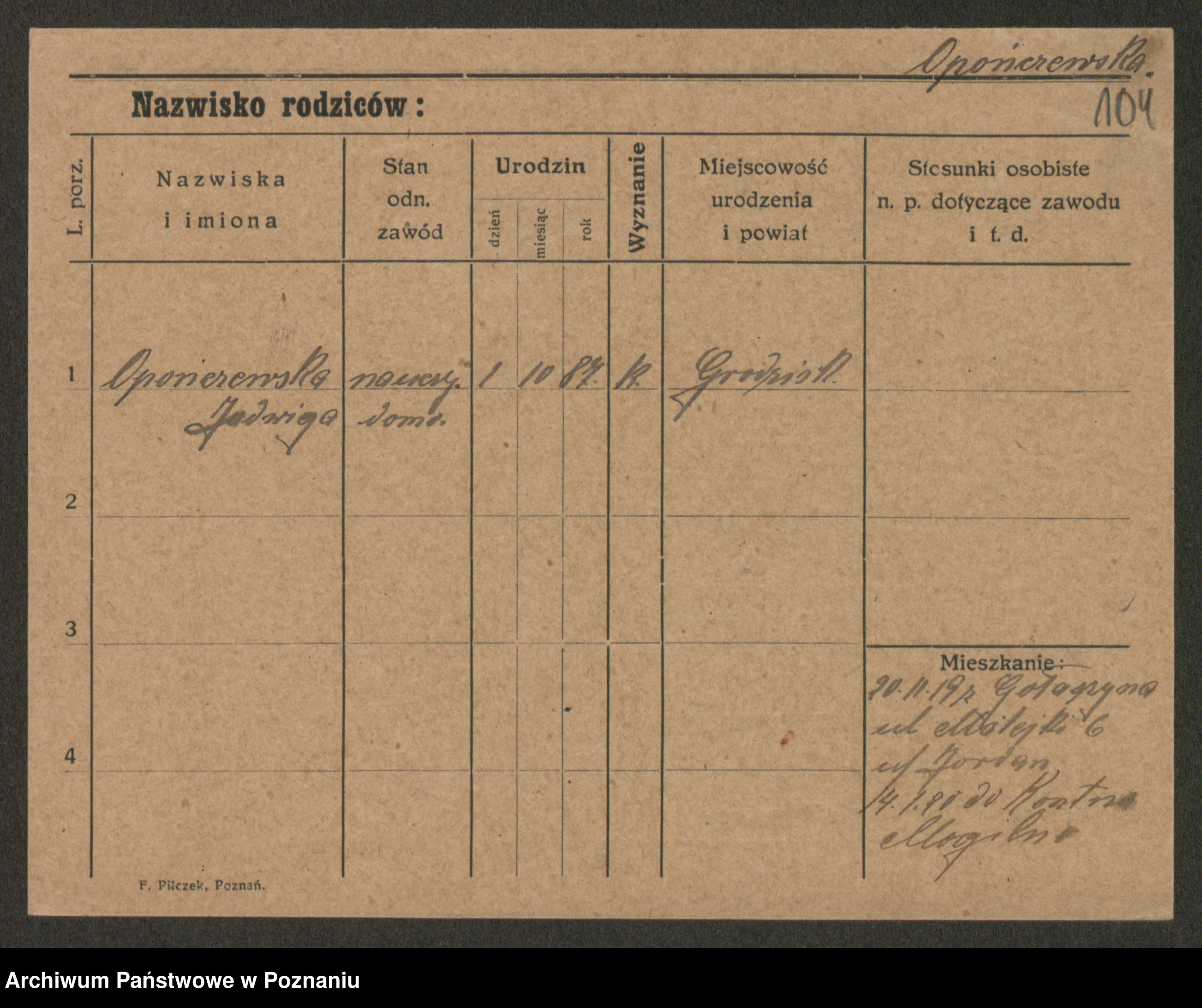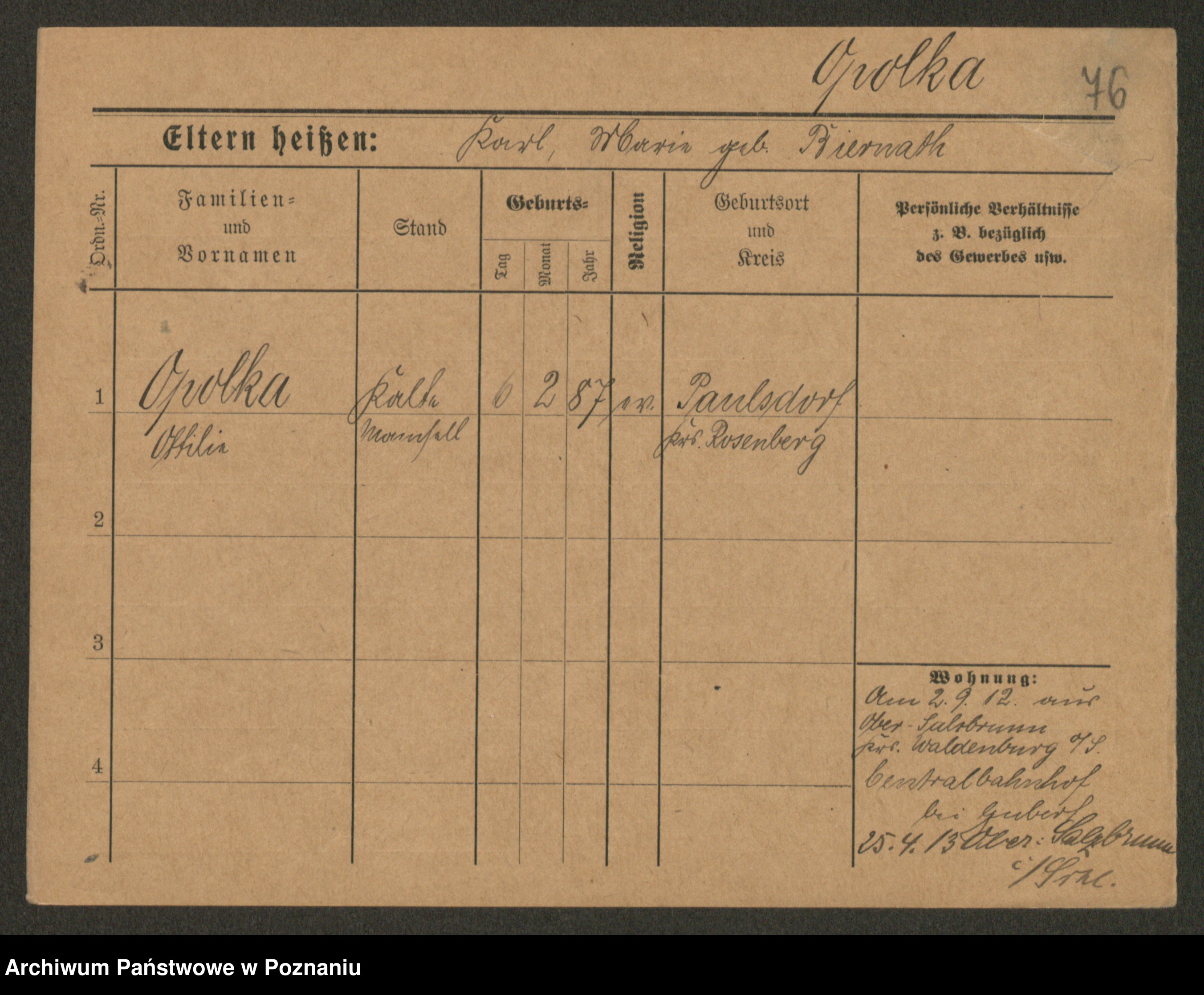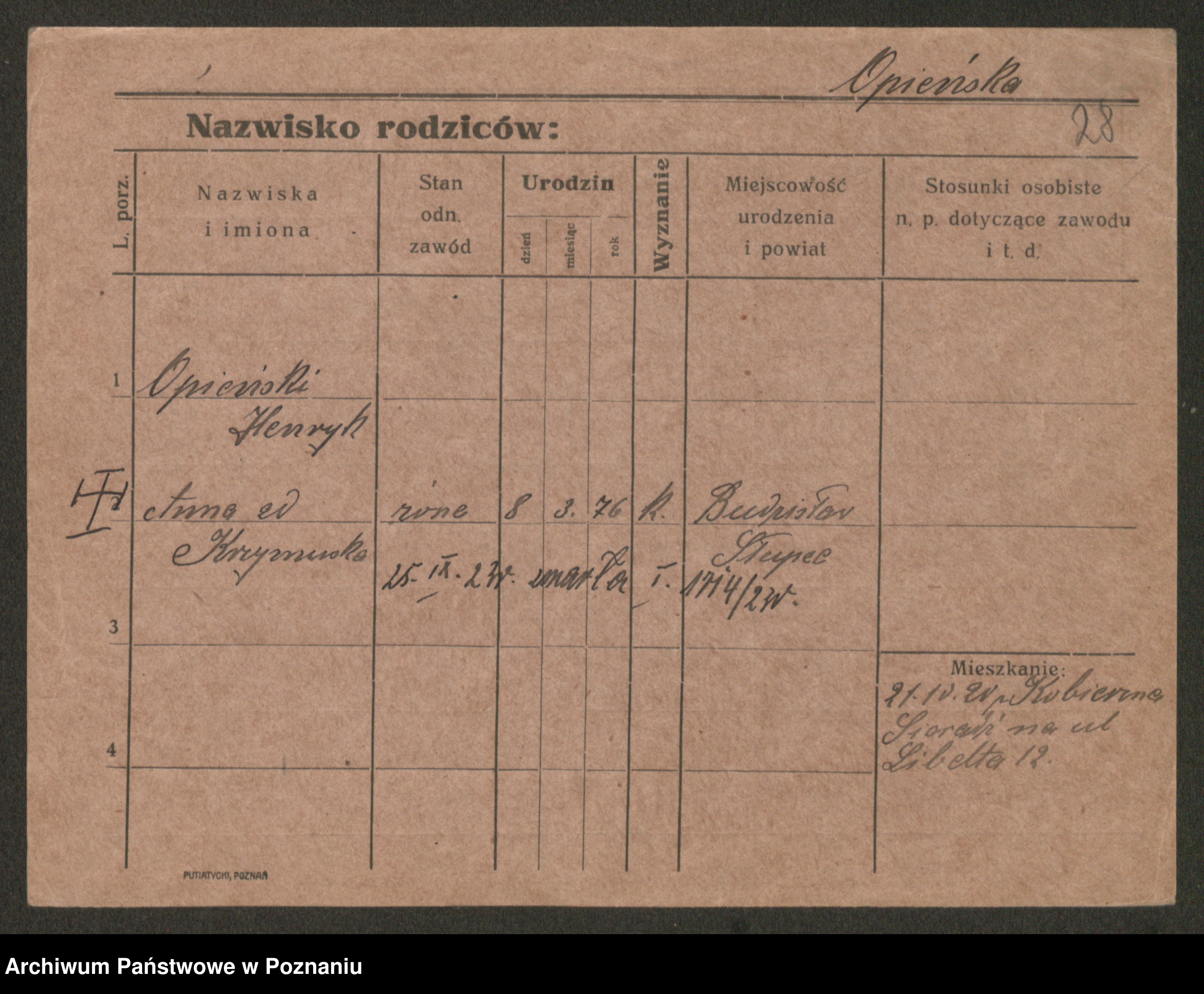 Opilinski z d. Kompf I voto Brychczynski, Marie