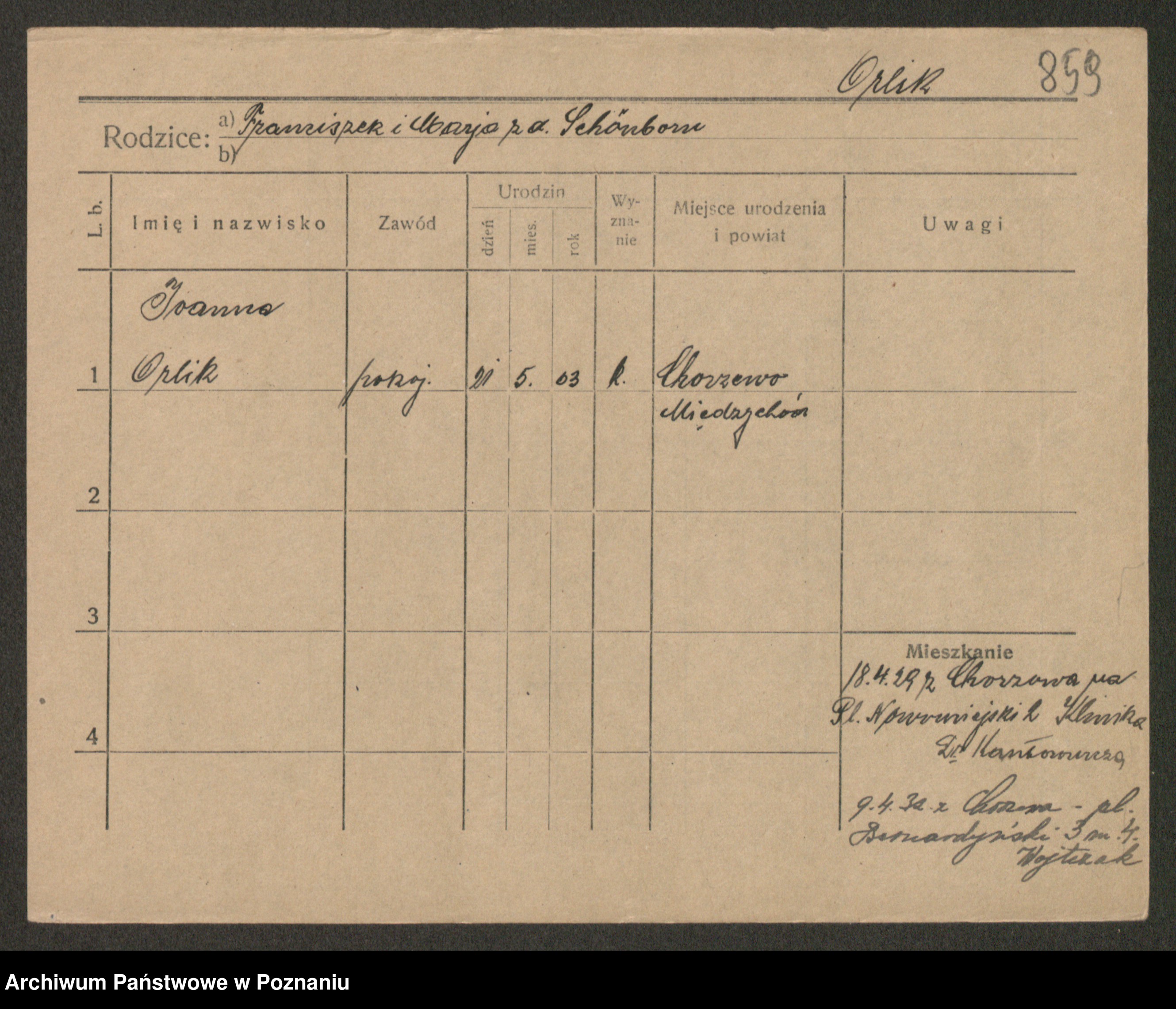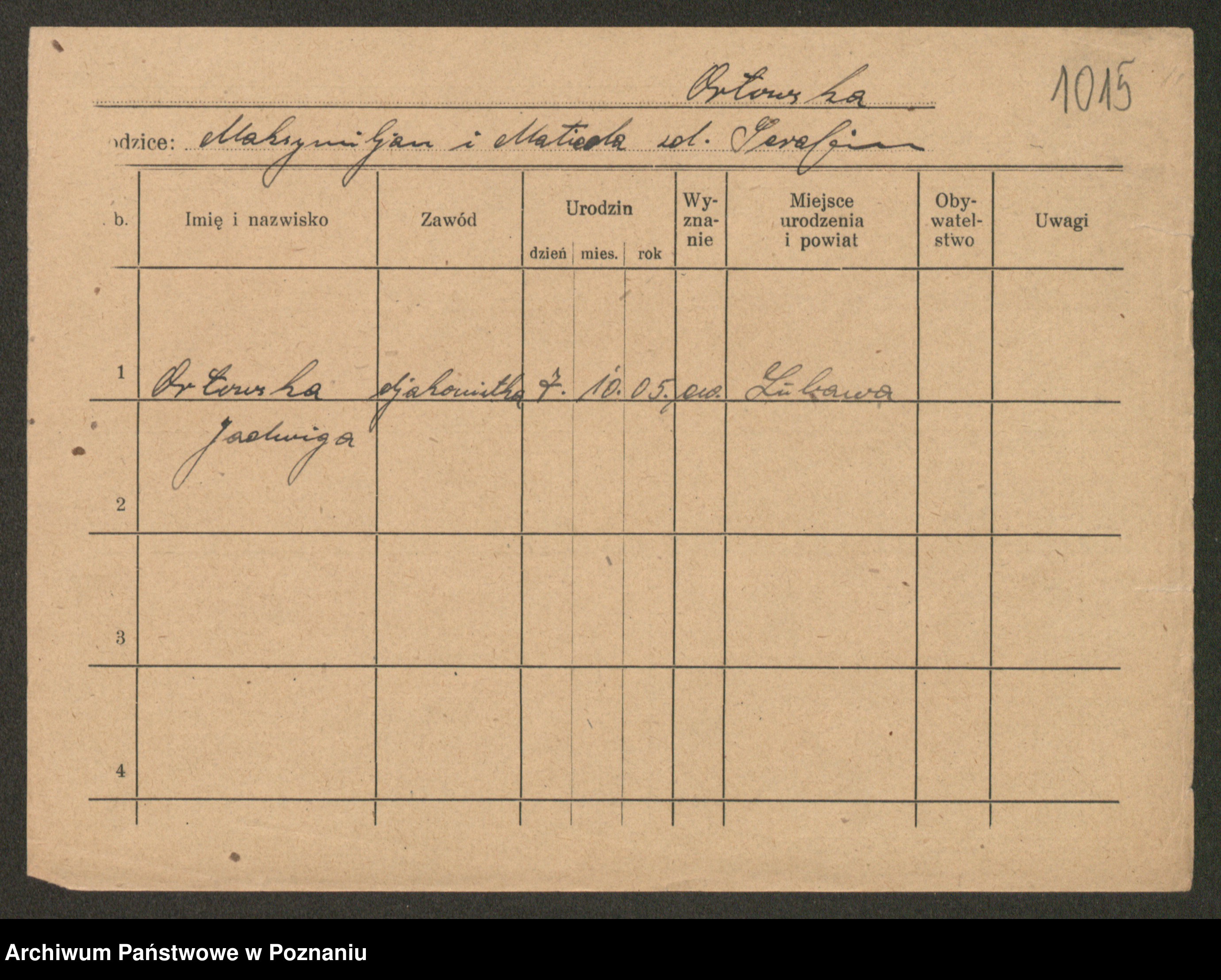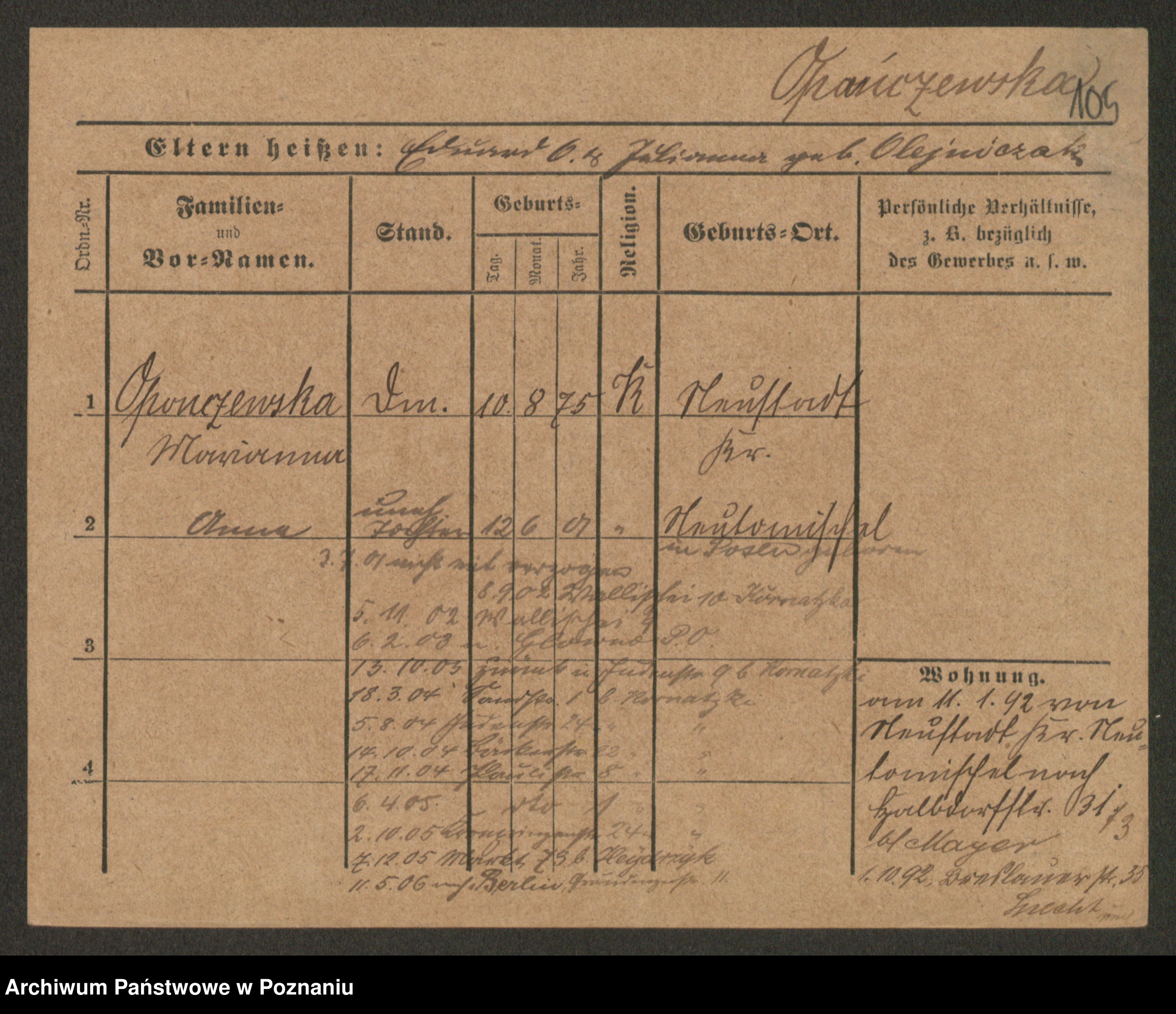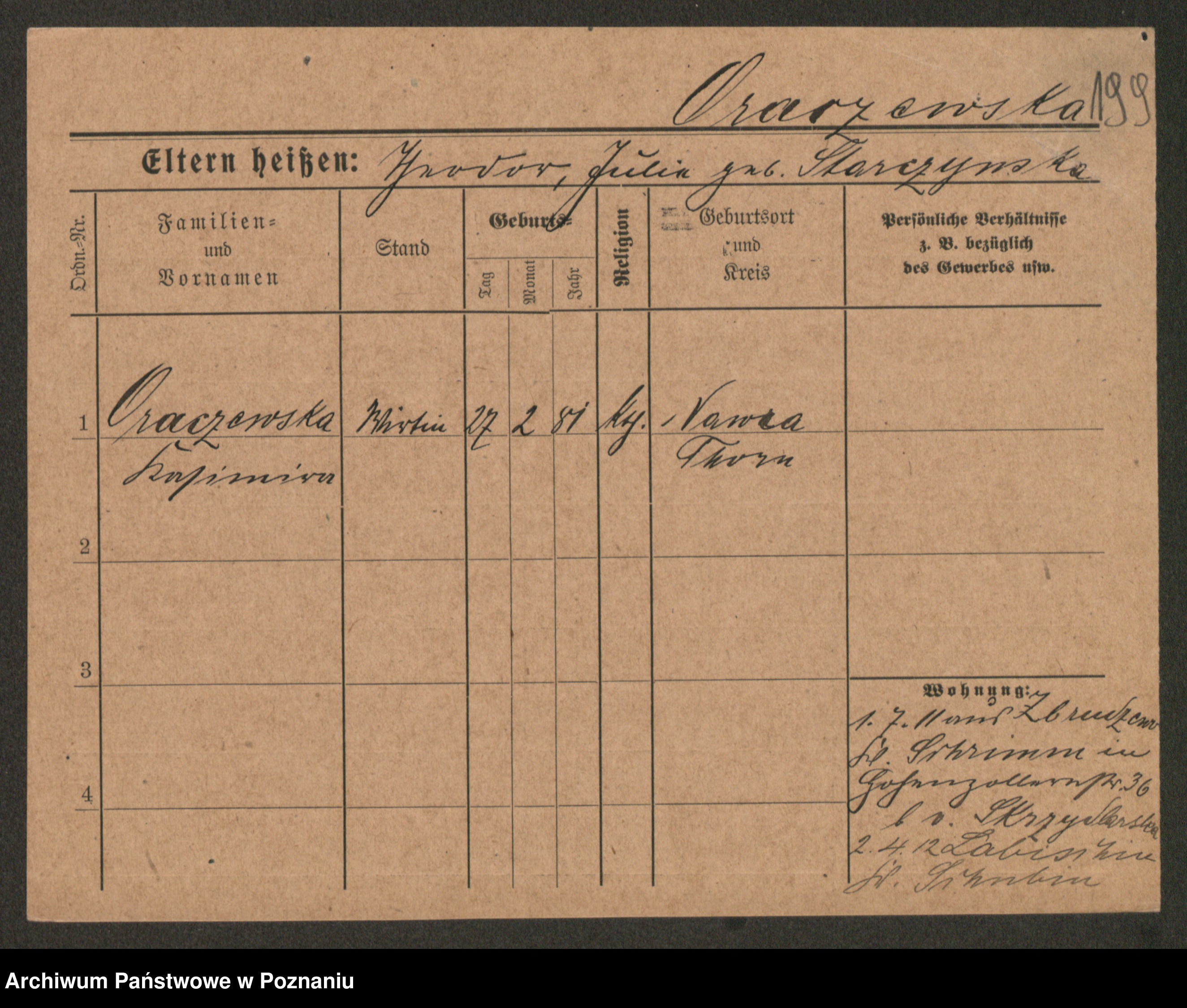 Opilinski z d. Kompf I voto Brychczynski, Marie
