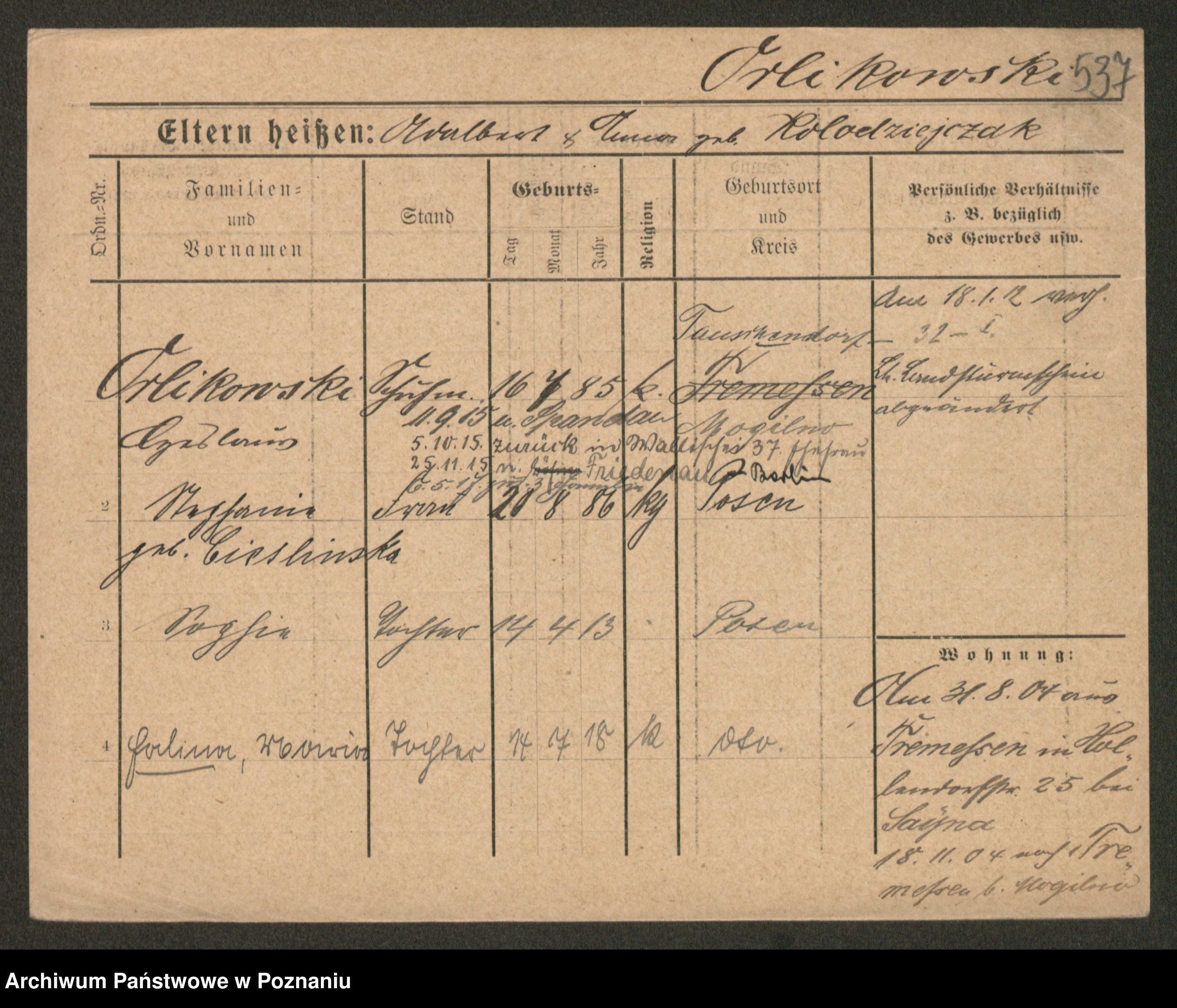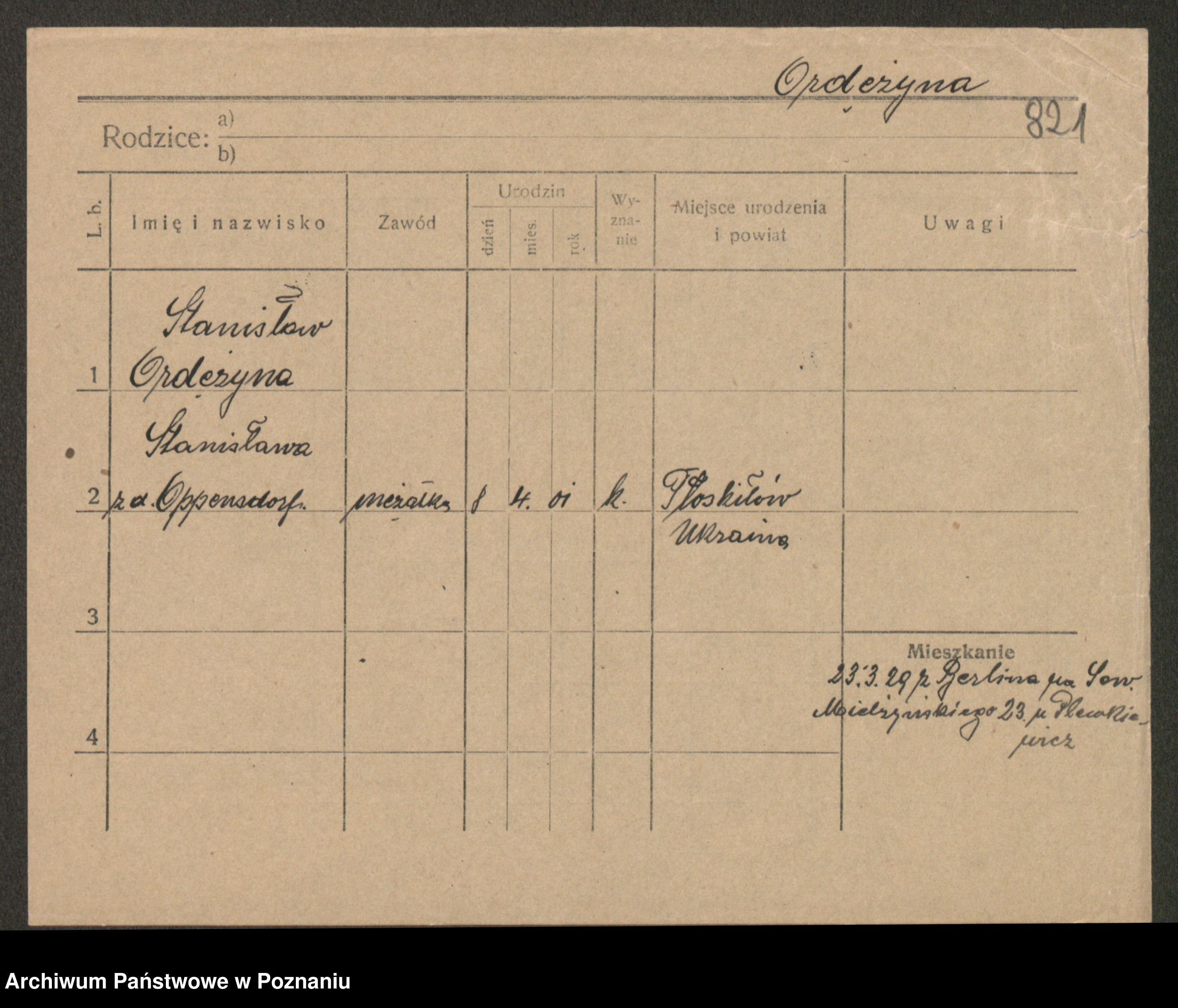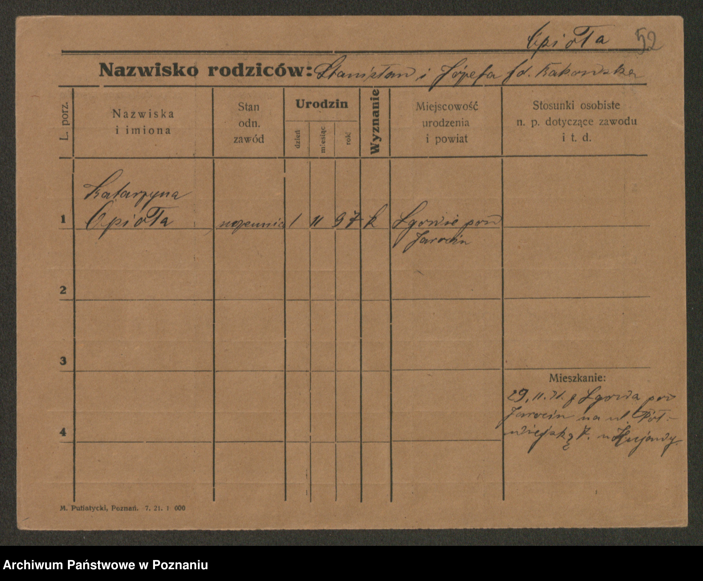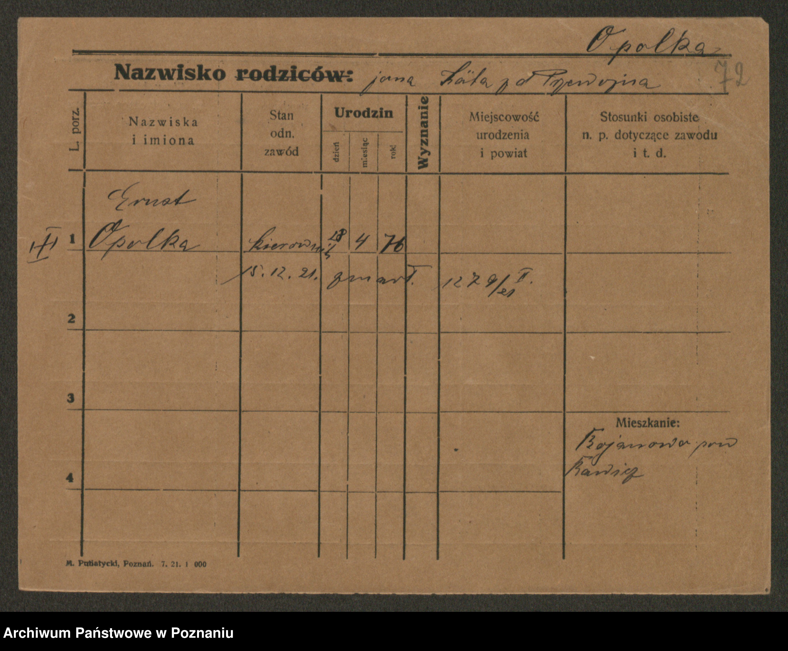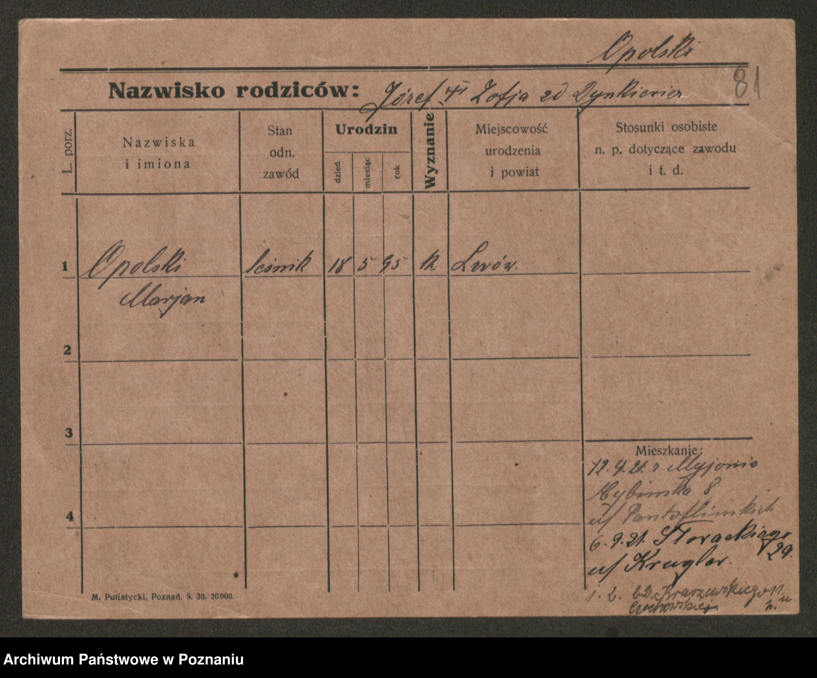 Opilinski z d. Kompf I voto Brychczynski, Marie