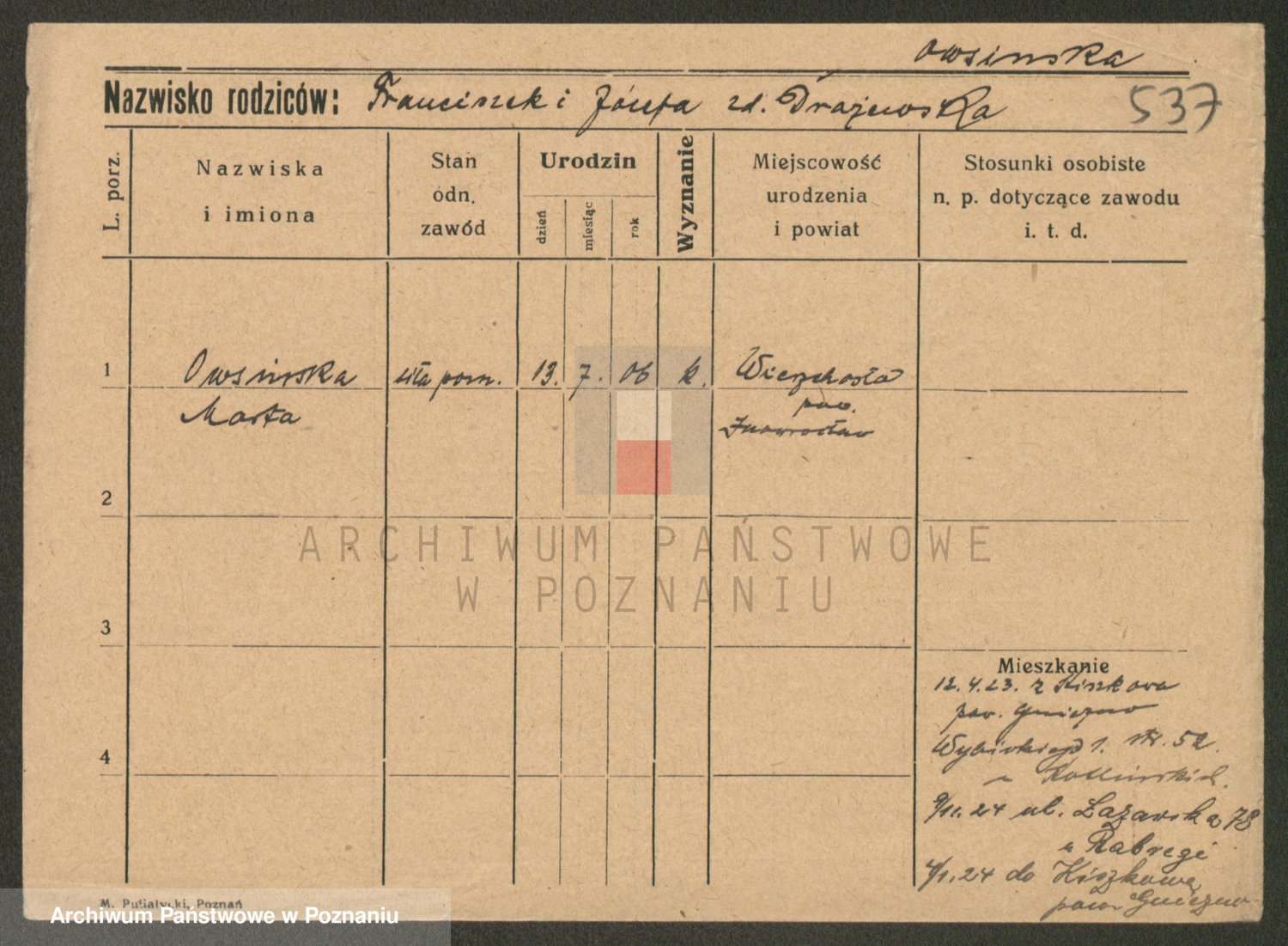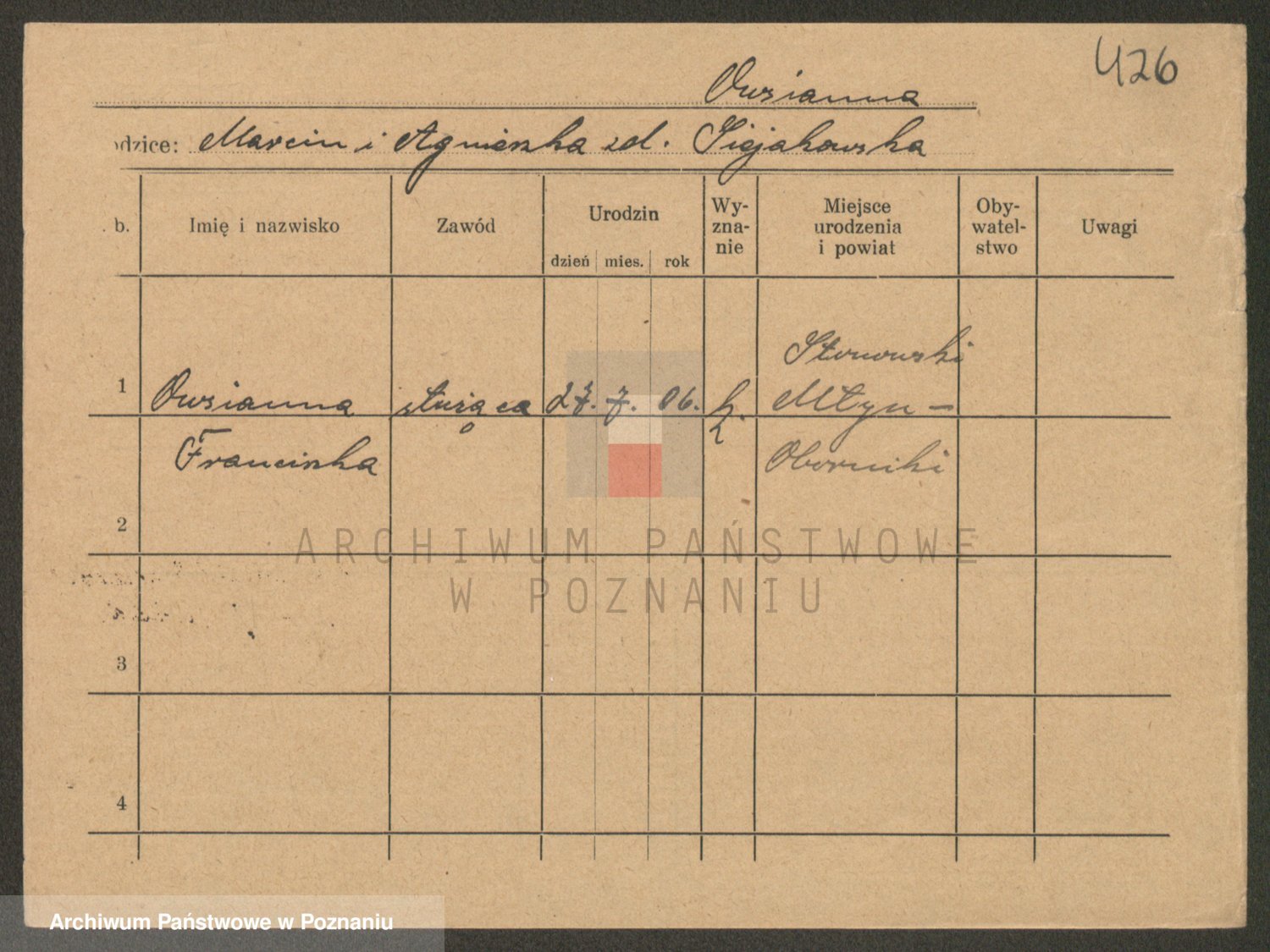 Owczarzak (Owczarczak) z.d. Markiewicz, Marie