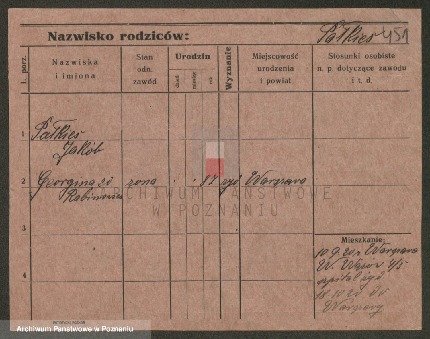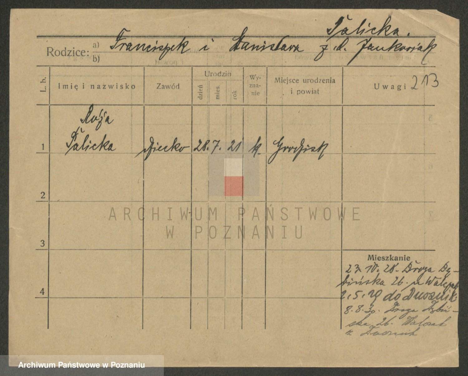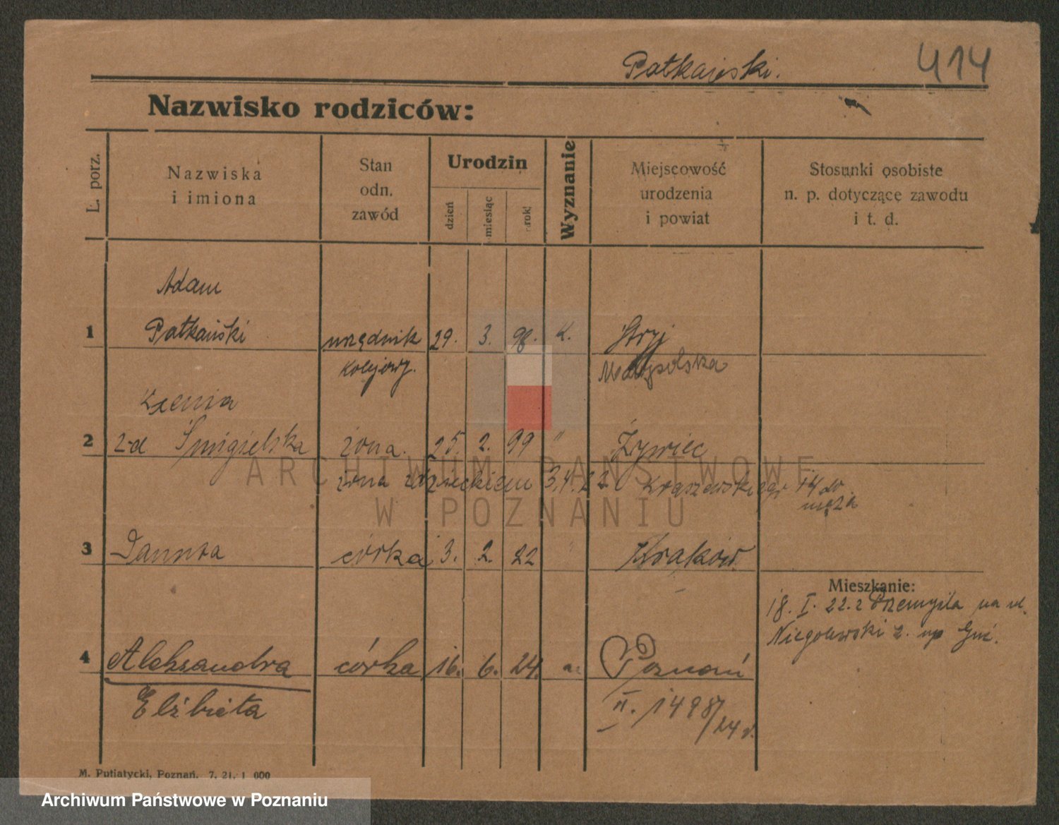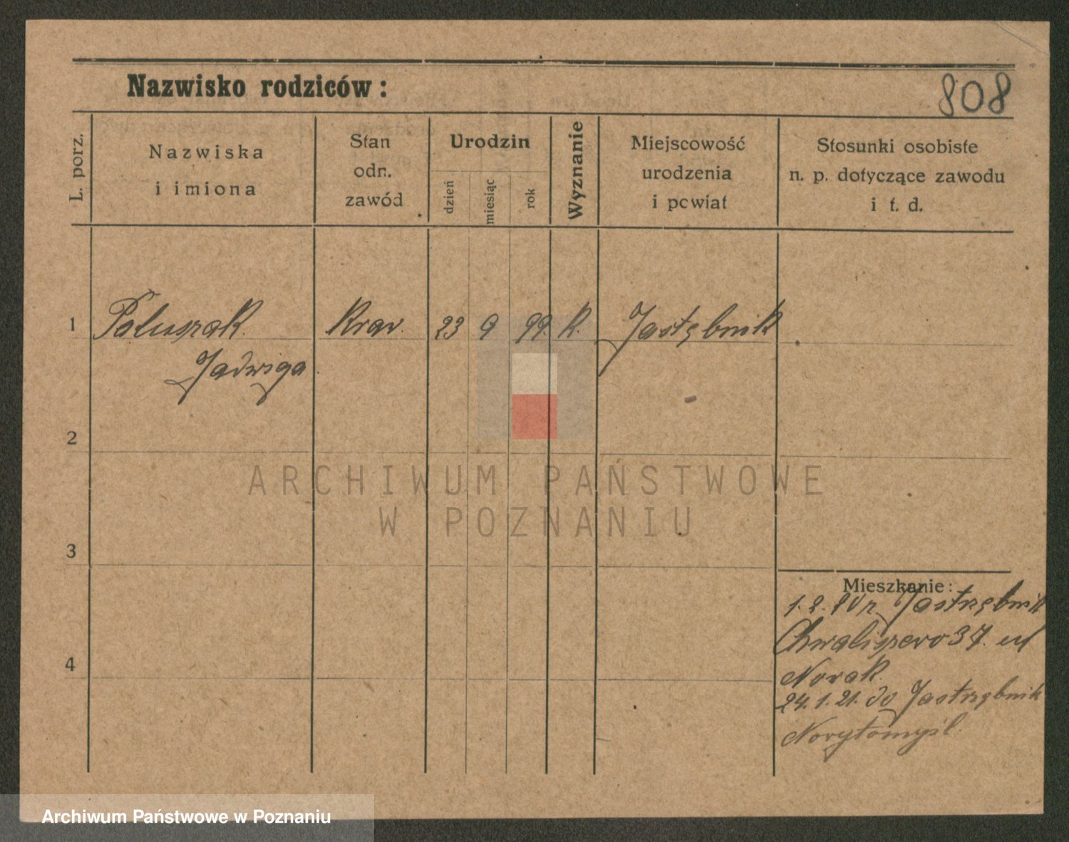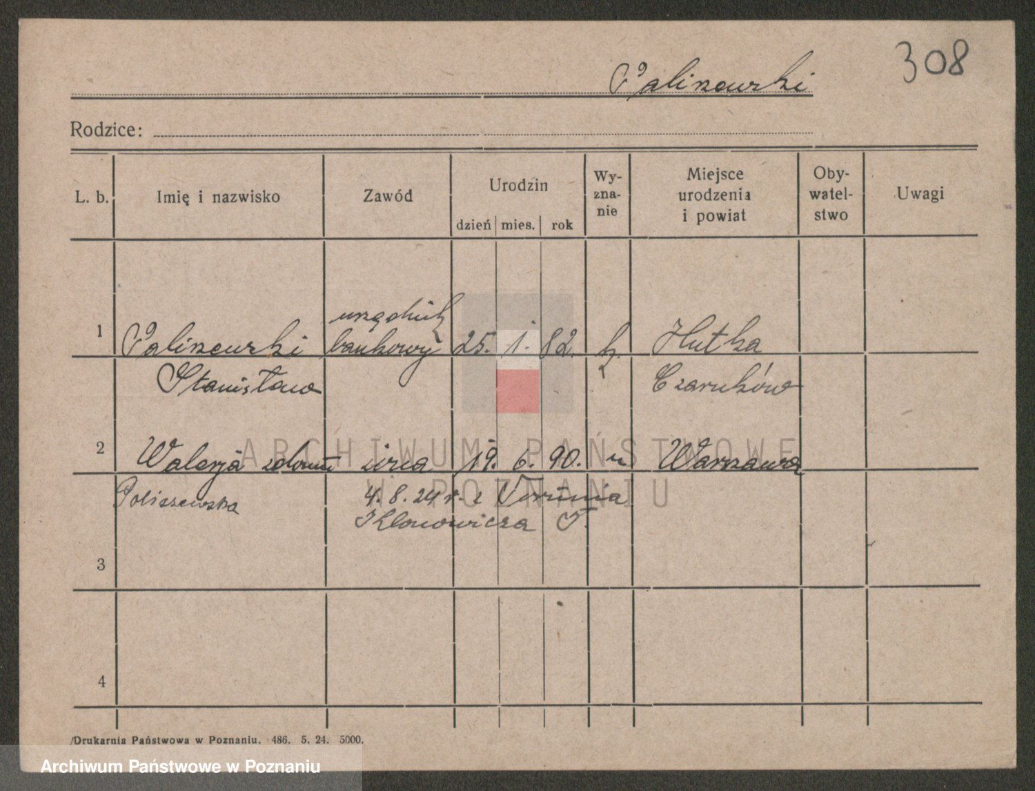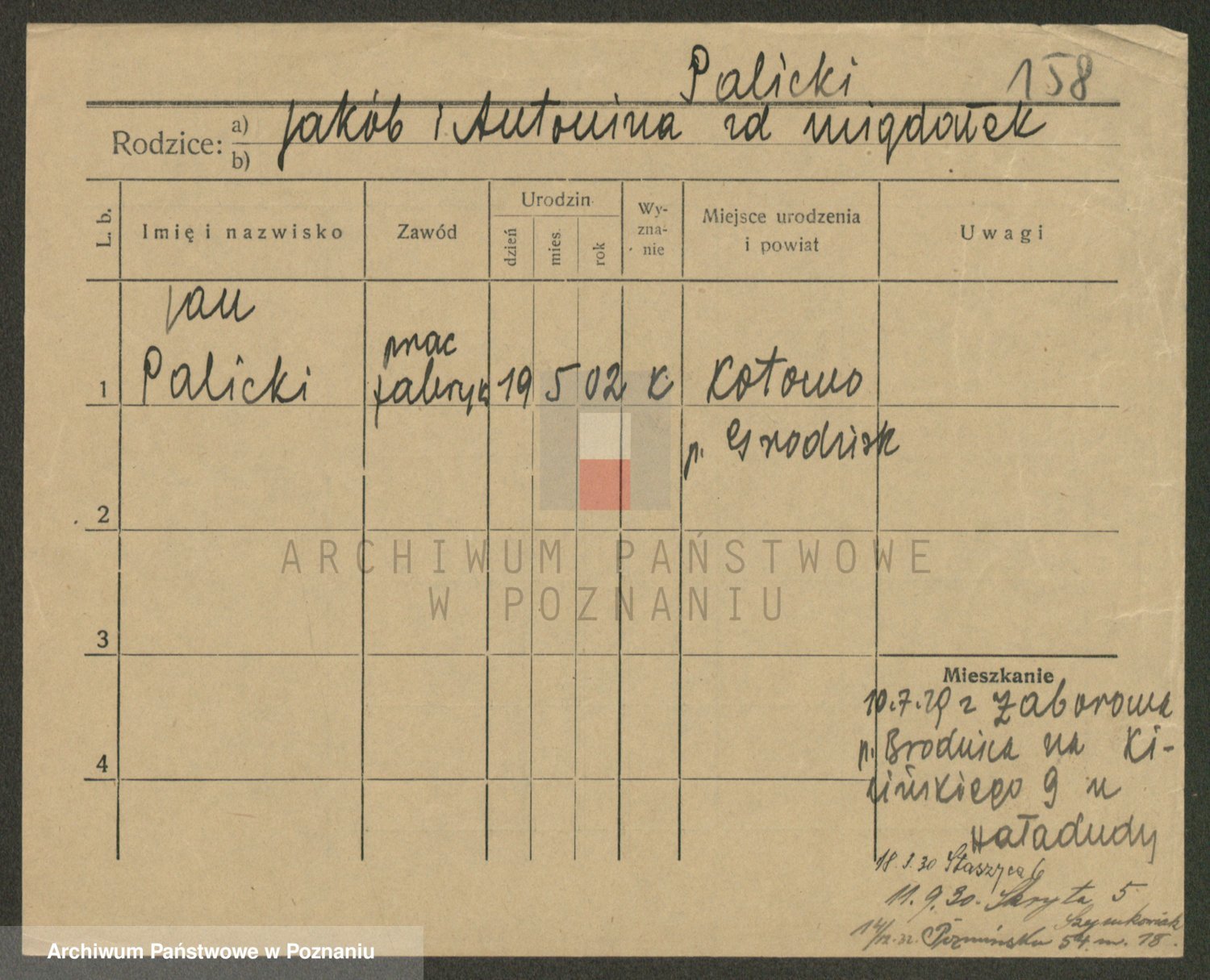 Podgląd karty osobowej dostępny jest po kliknięciu na nazwisko lub ikonkę karty. Można dokonywać powiększenia (ikony na górze) lub przechodzić między kolejnymi skanami (strzałki po bokach).