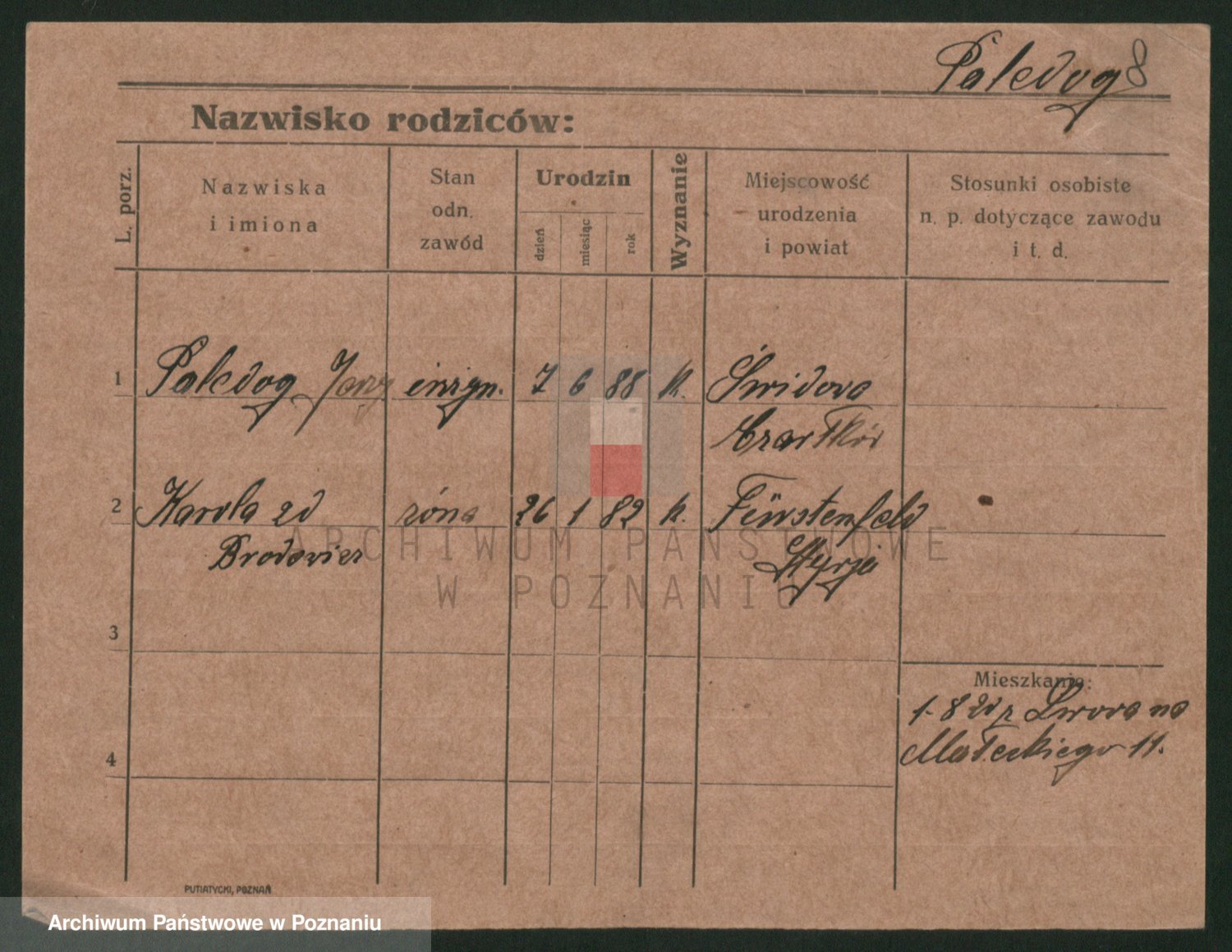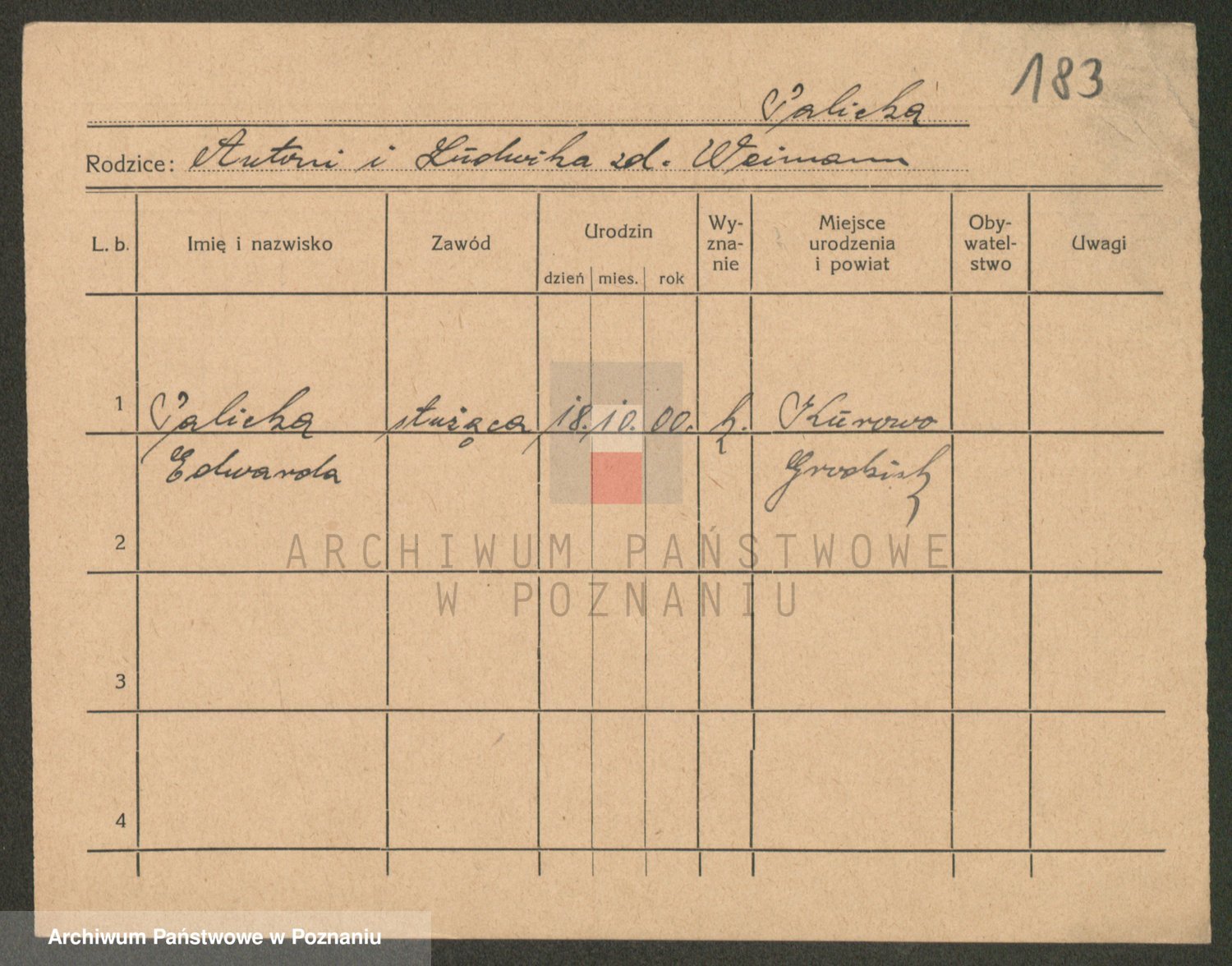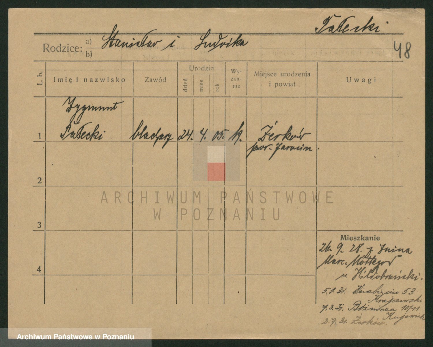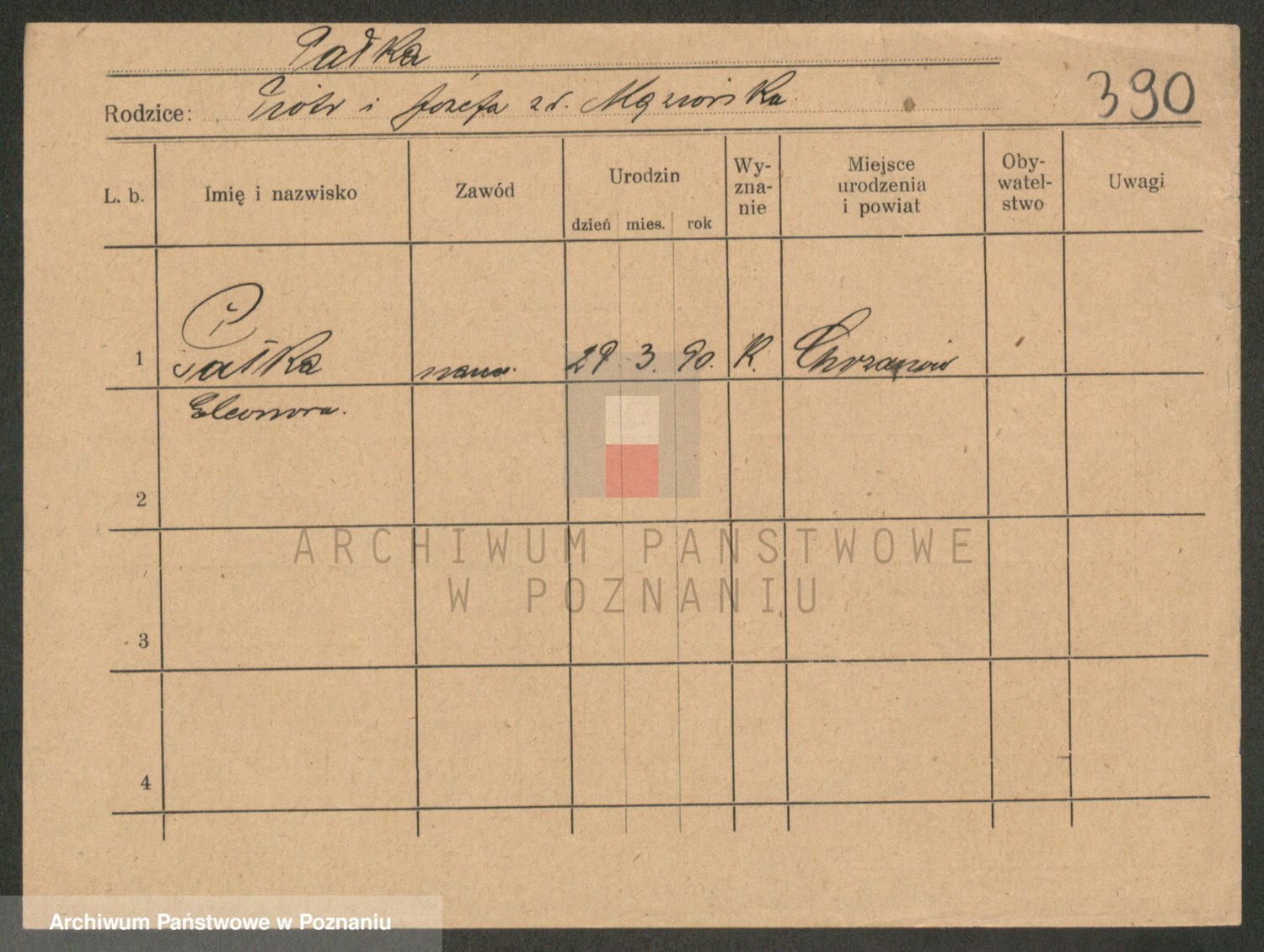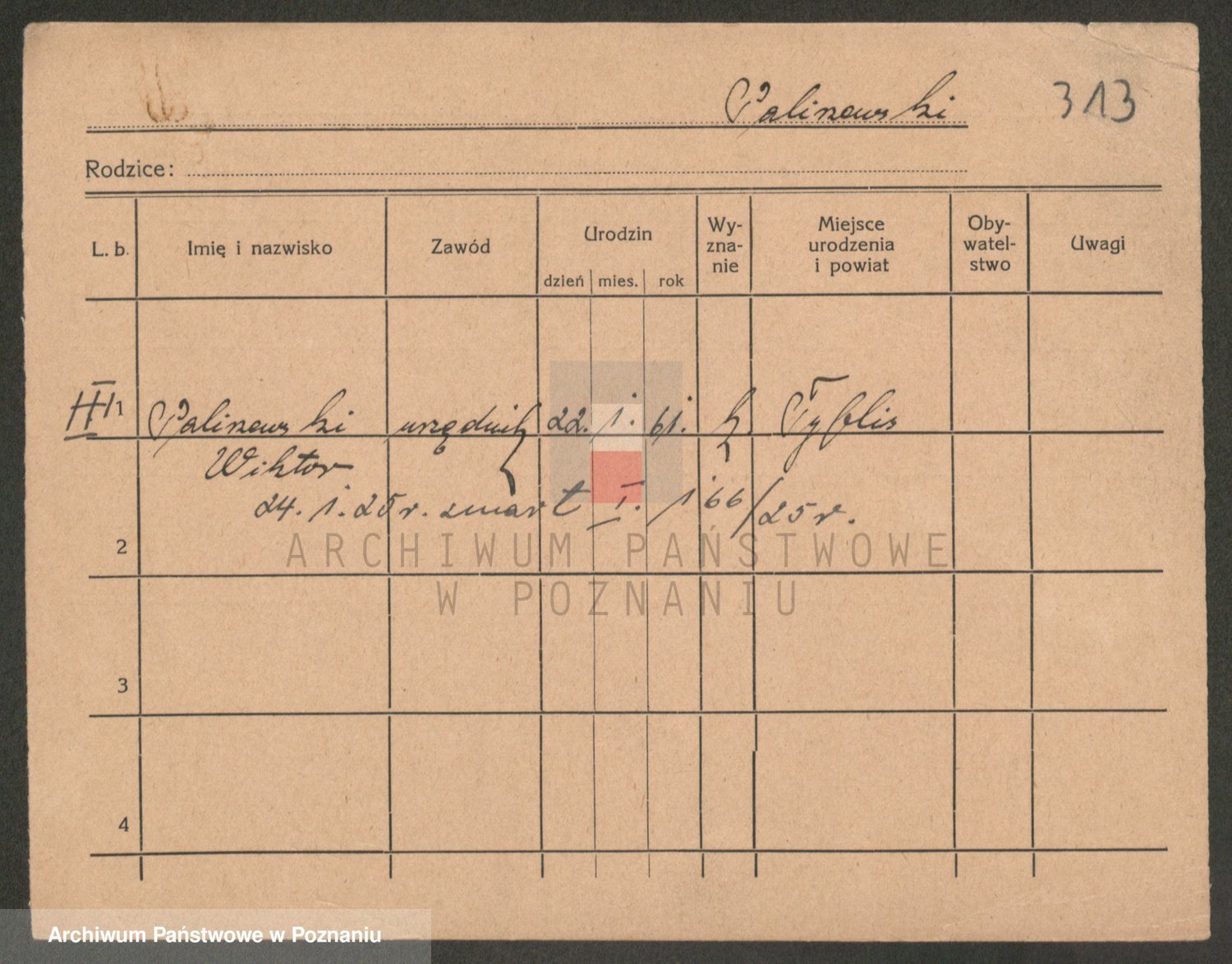 Podgląd karty osobowej dostępny jest po kliknięciu na nazwisko lub ikonkę karty. Można dokonywać powiększenia (ikony na górze) lub przechodzić między kolejnymi skanami (strzałki po bokach).